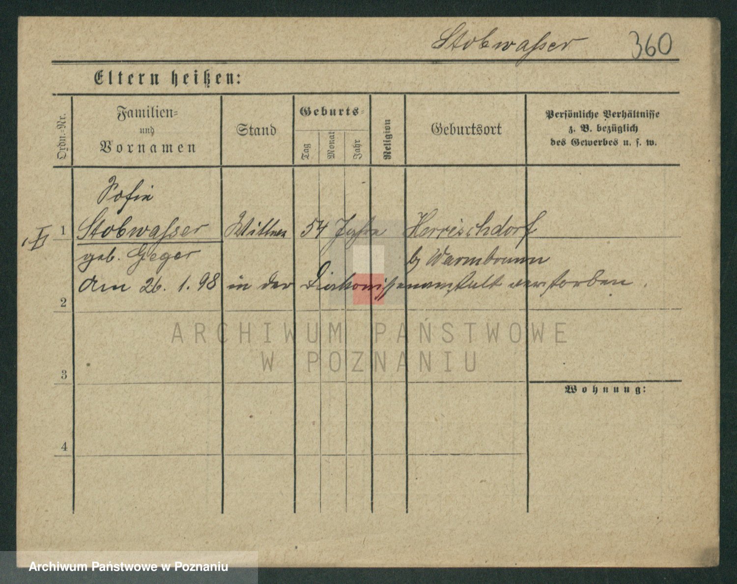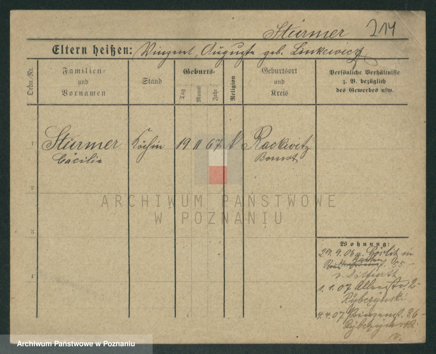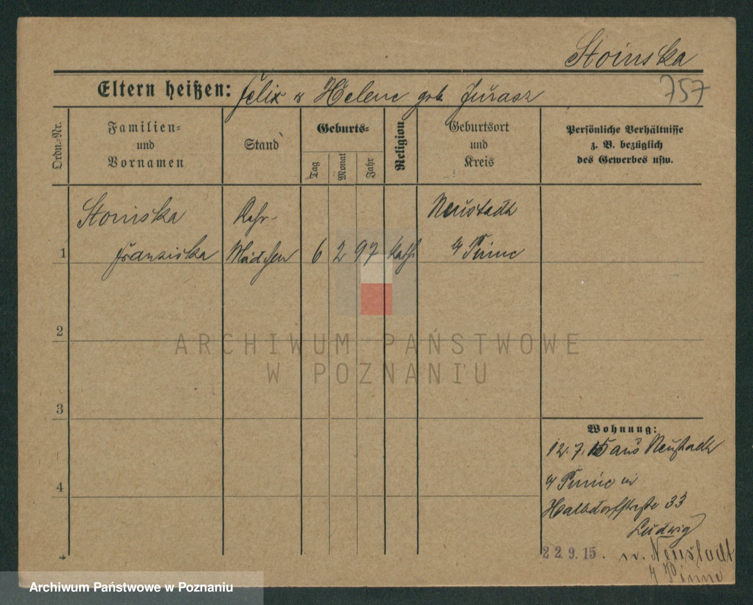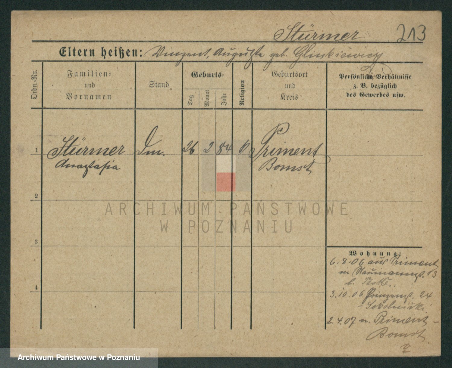 Stürmer zd. Baraniak, Maria