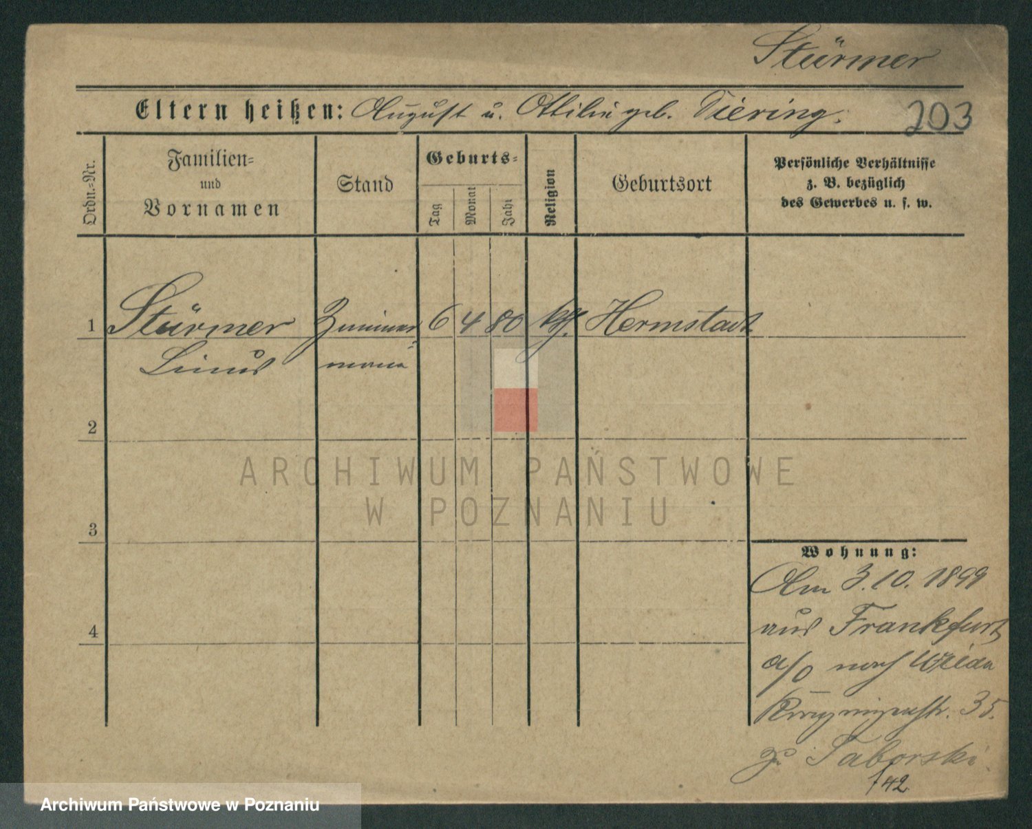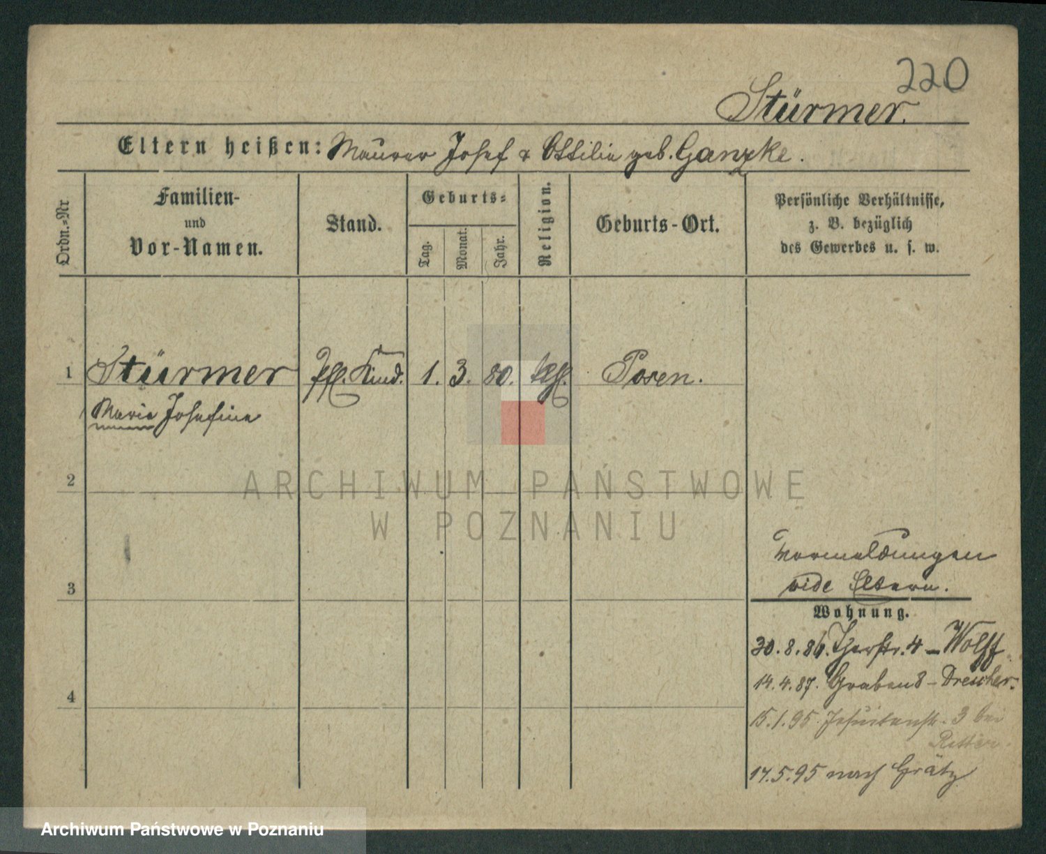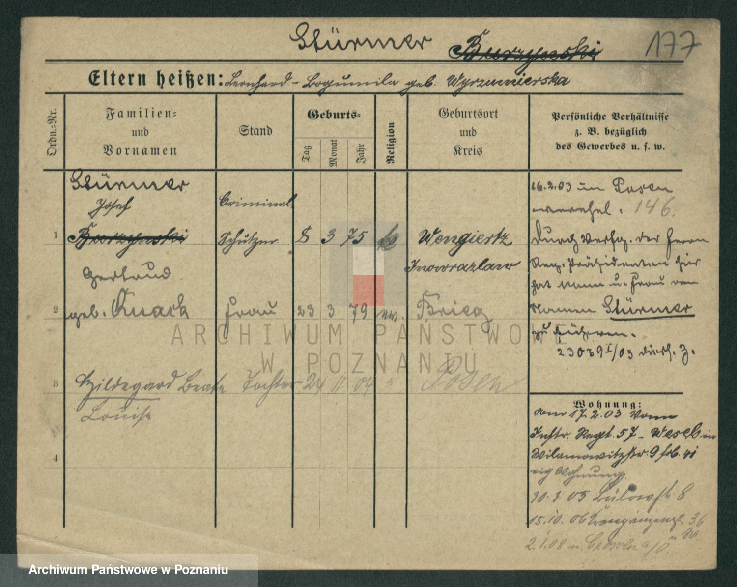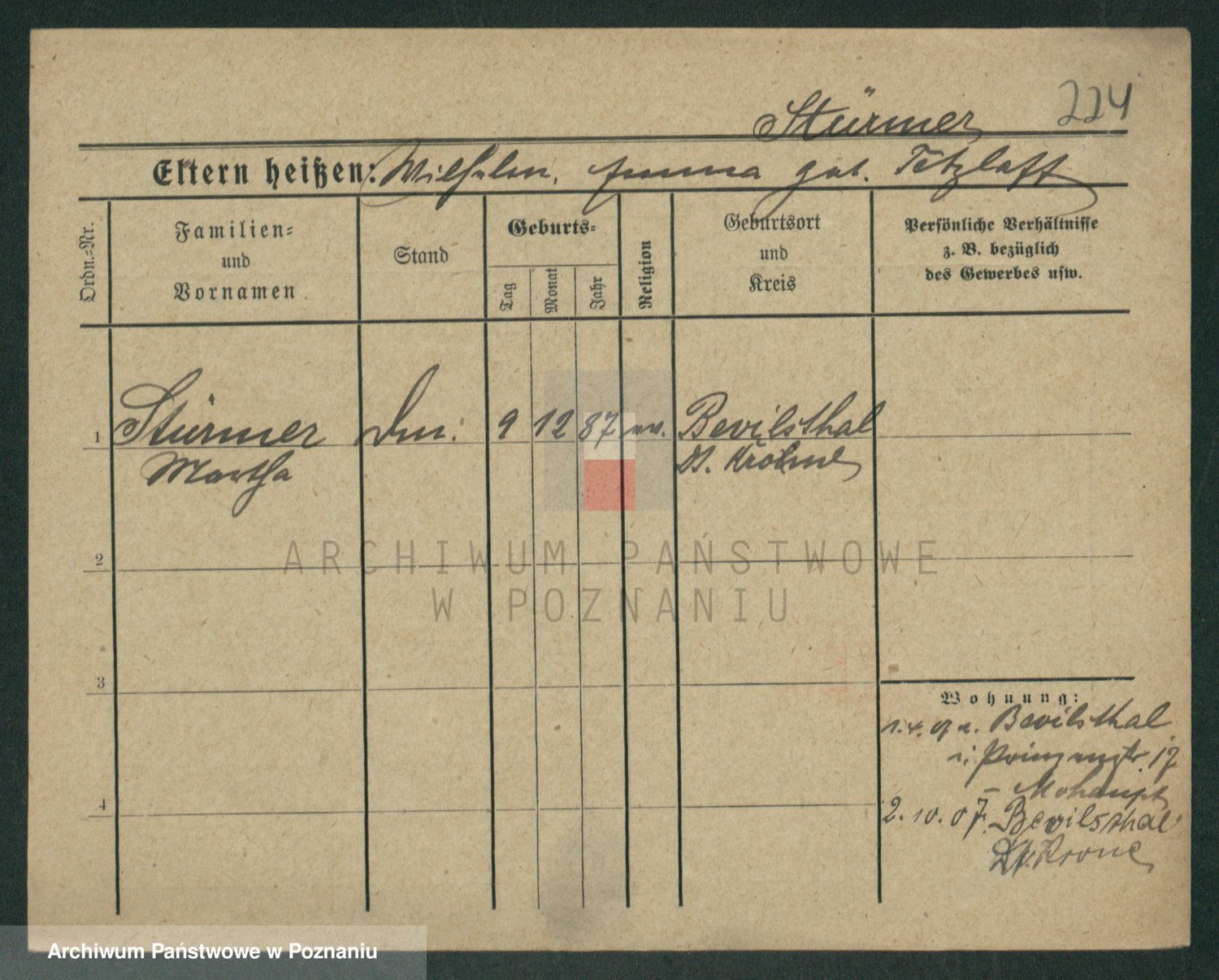 Stürmer zd. Baraniak, Maria