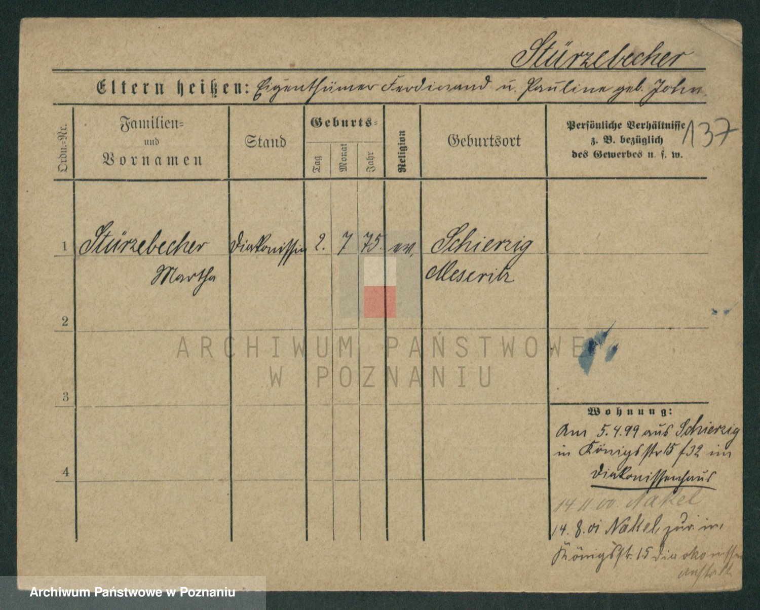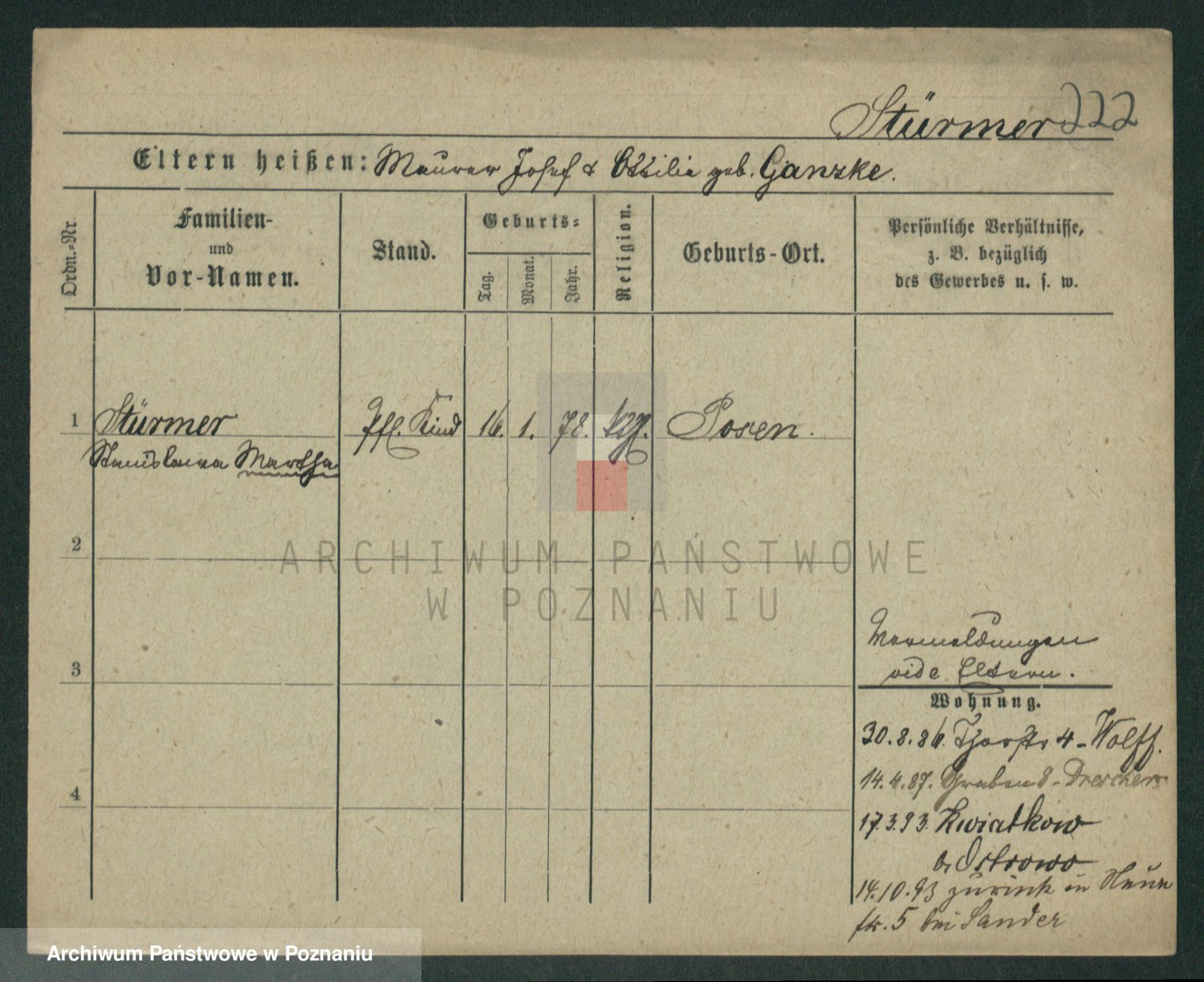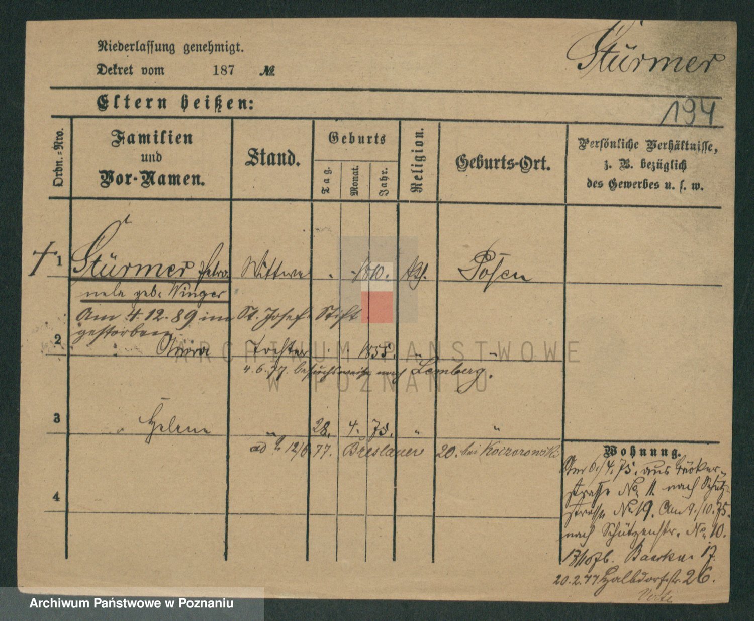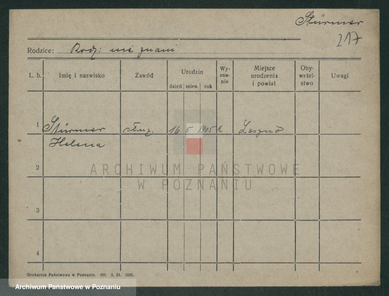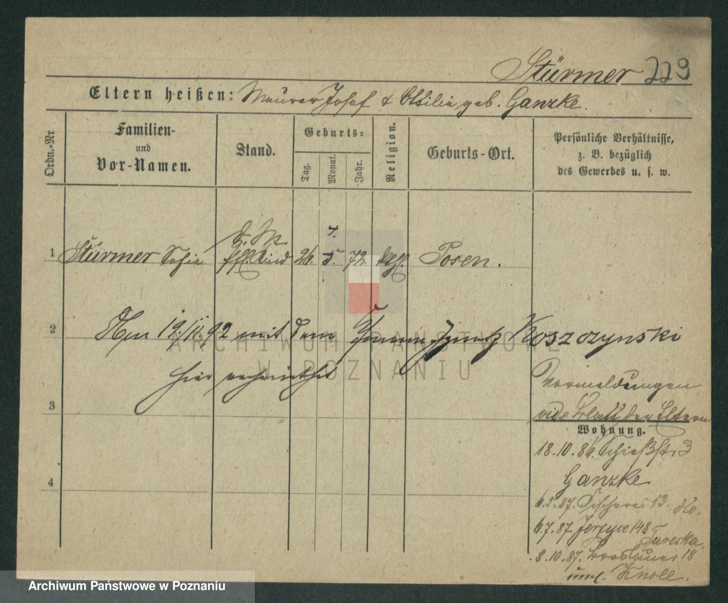 Stürmer zd. Baraniak, Maria