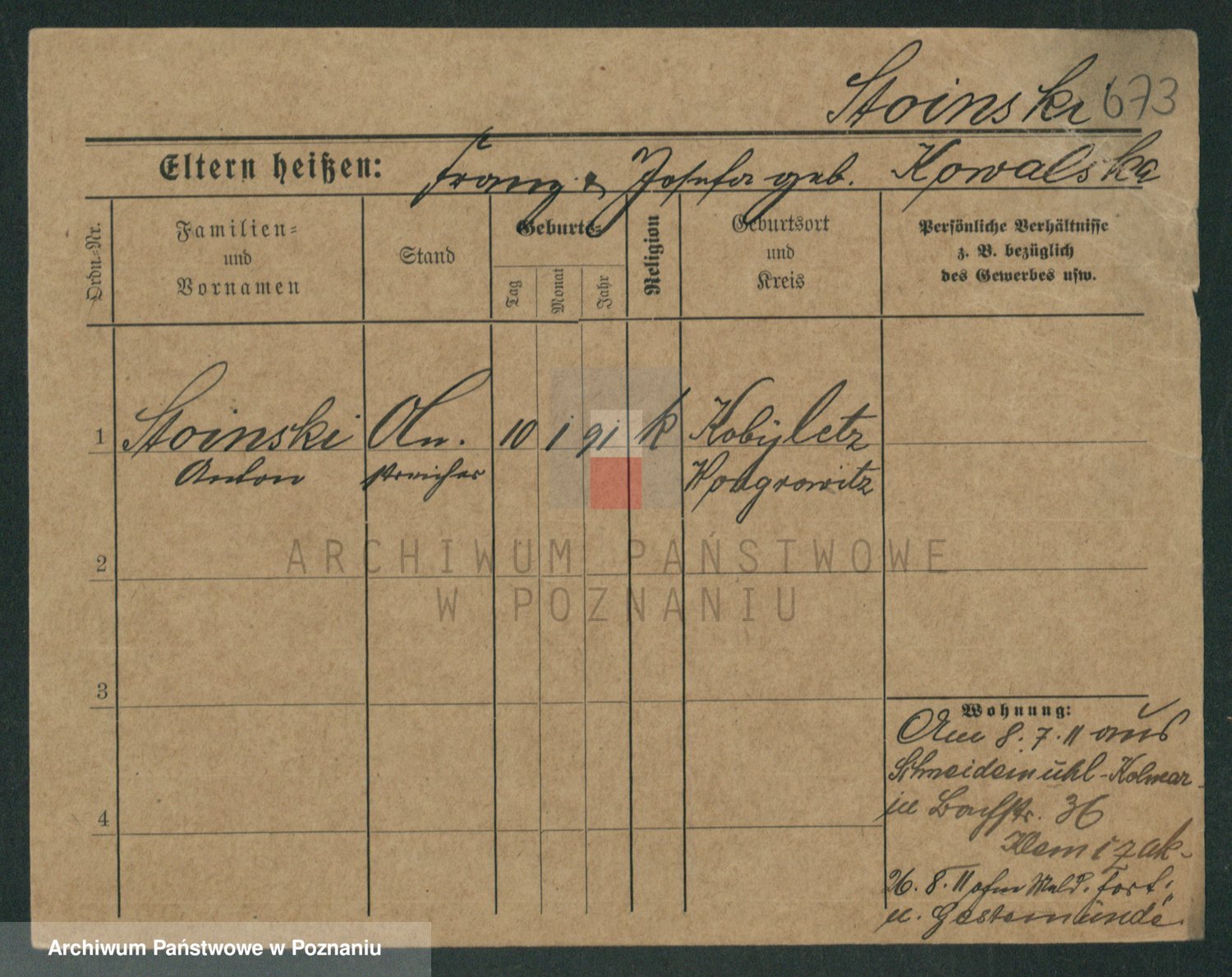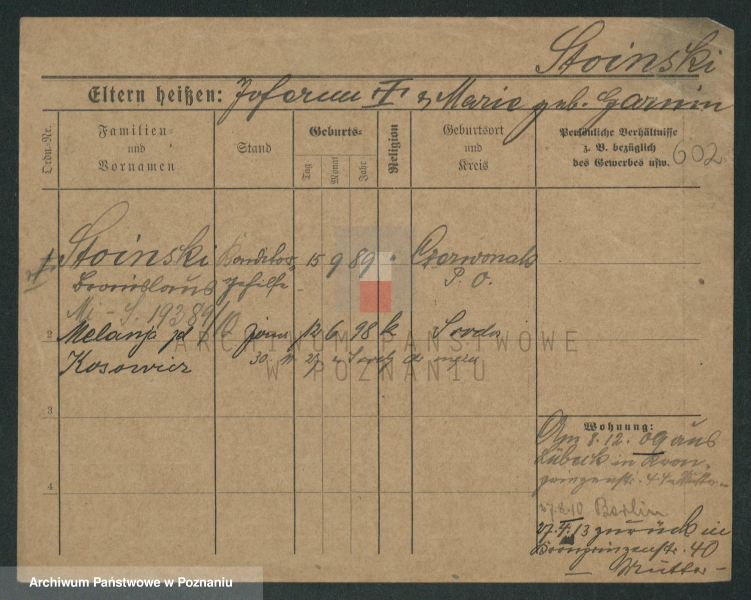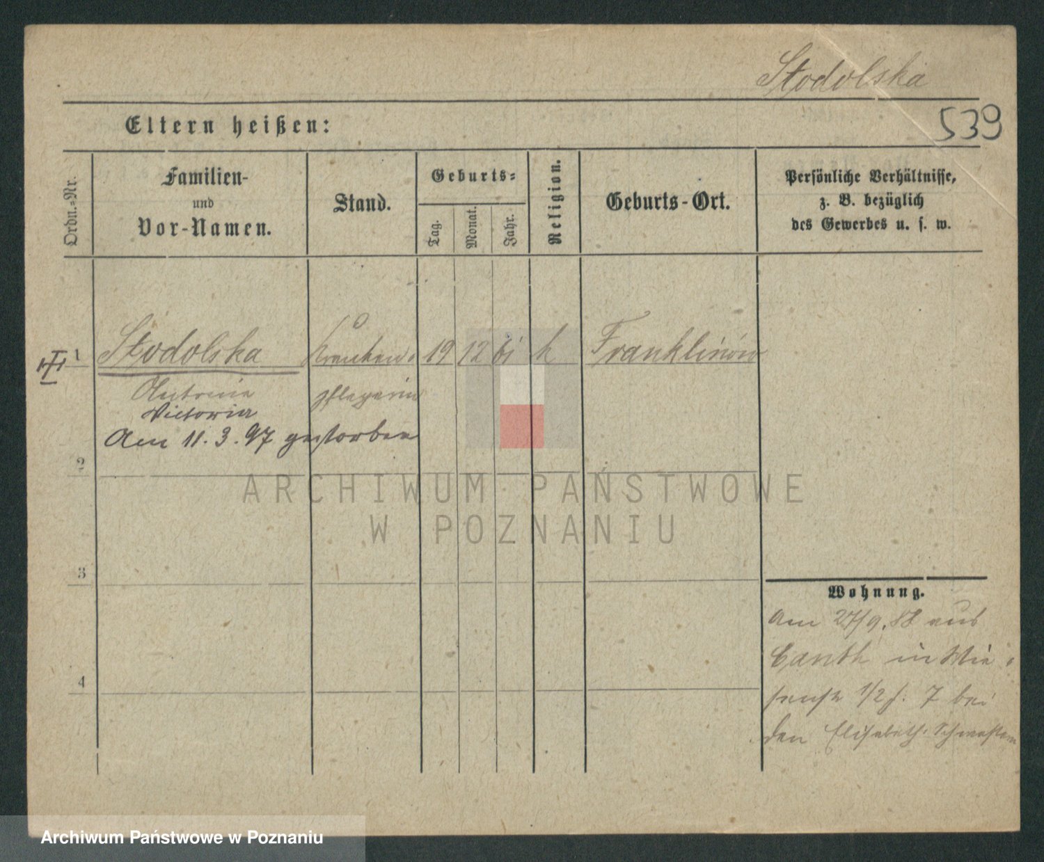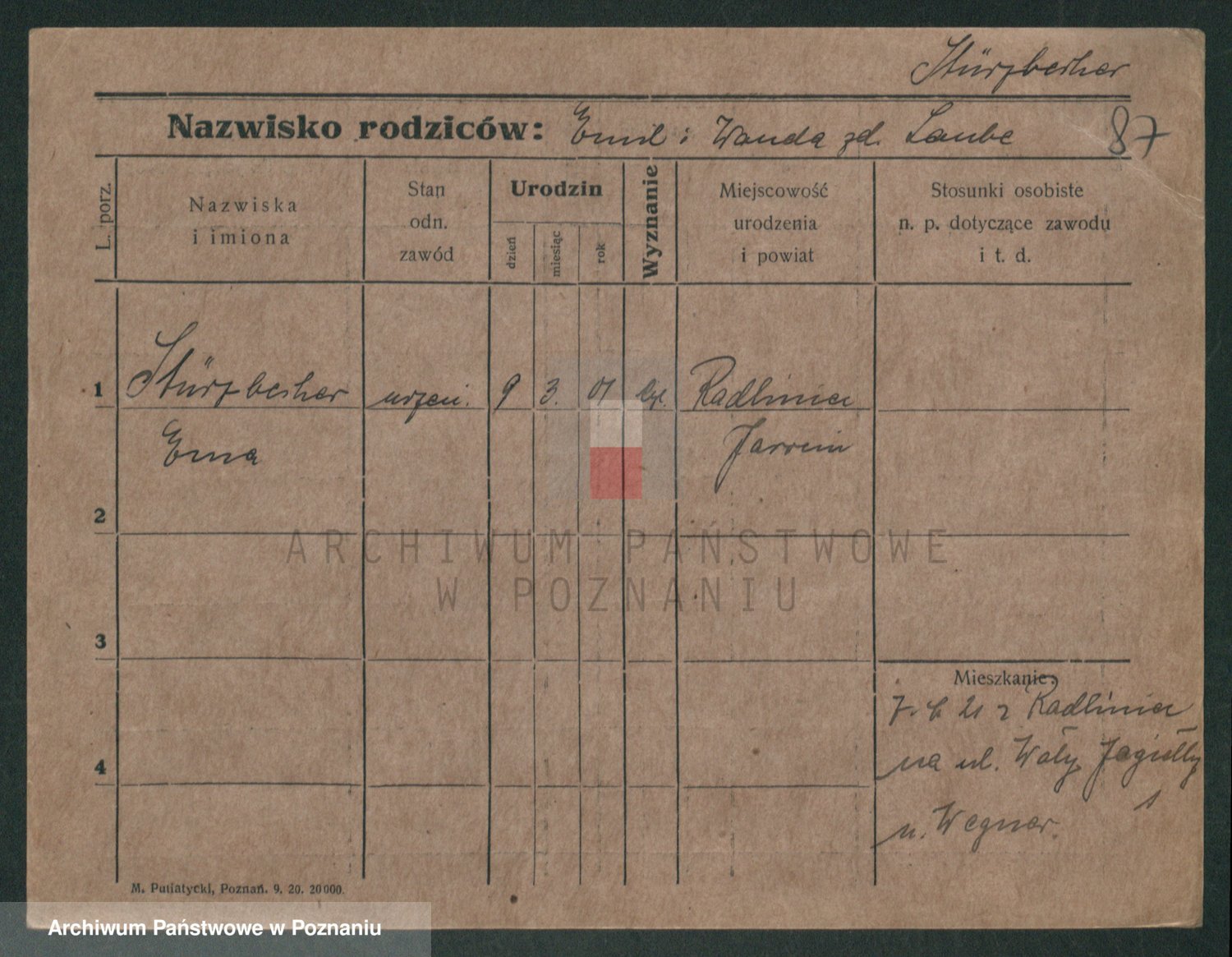 Stürmer zd. Baraniak, Maria