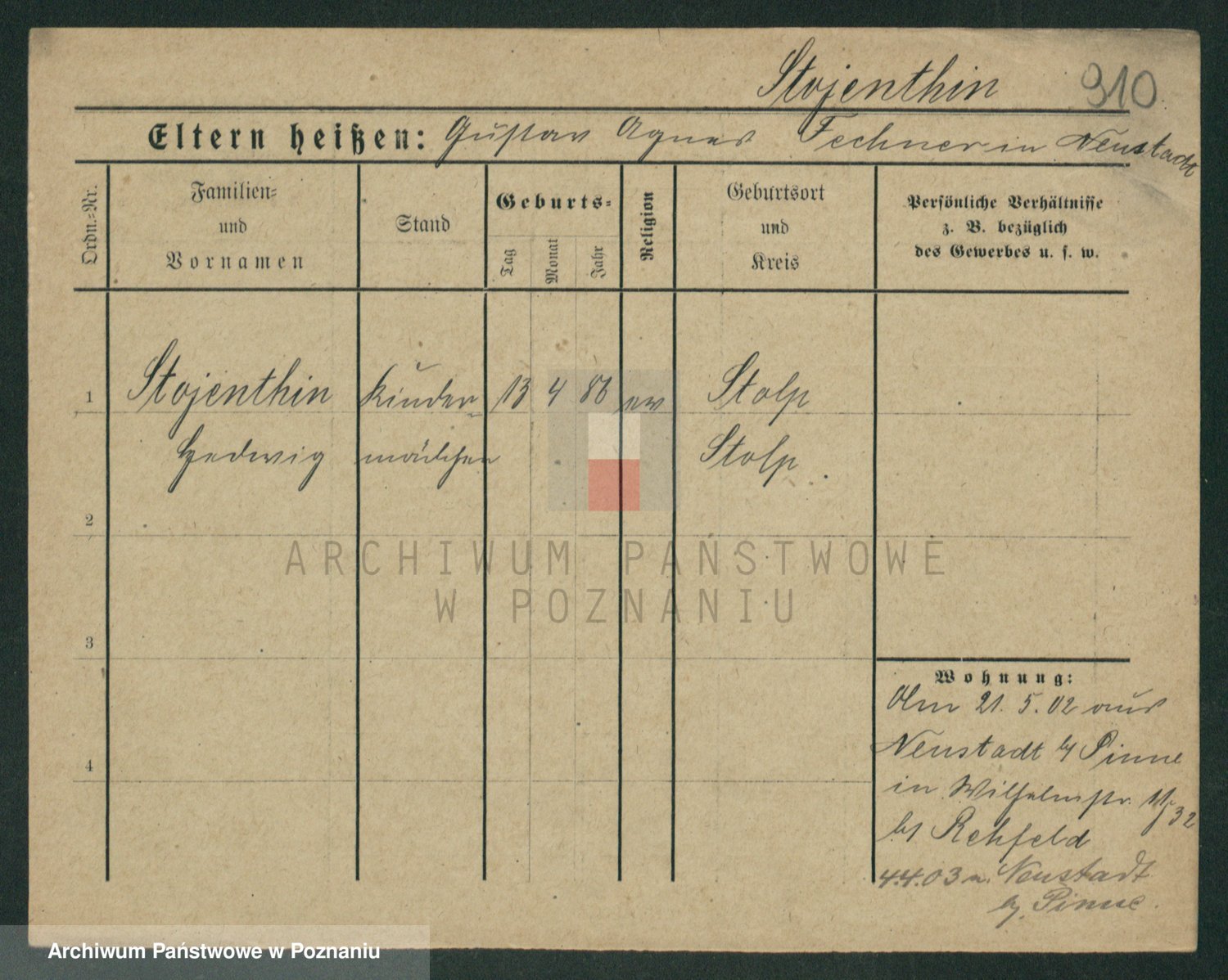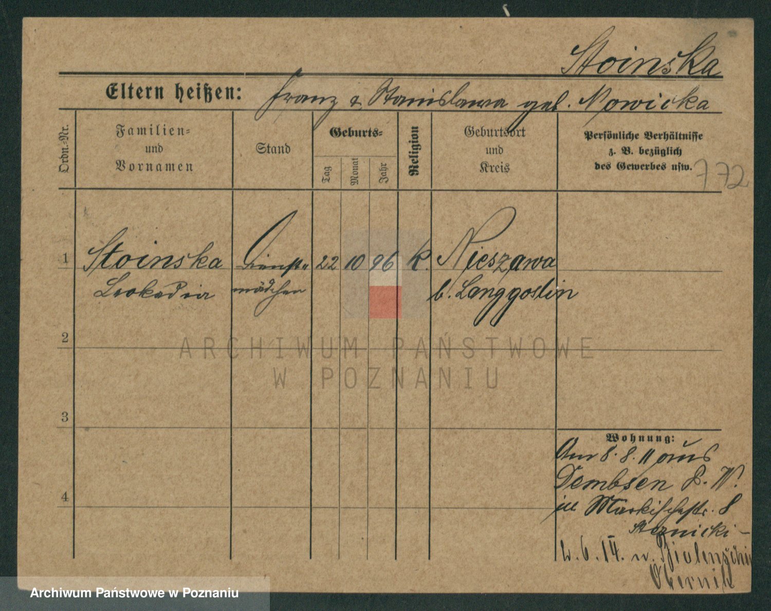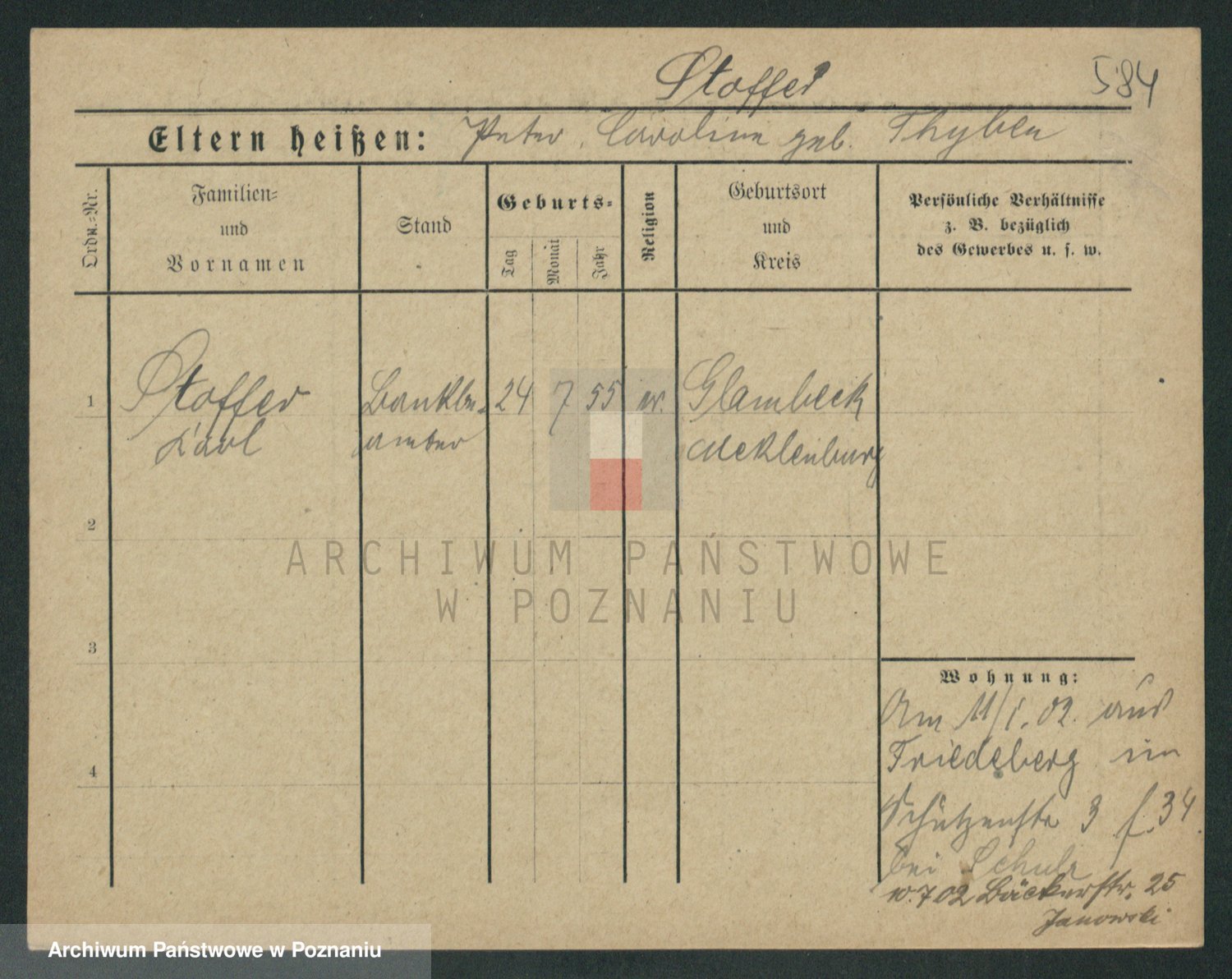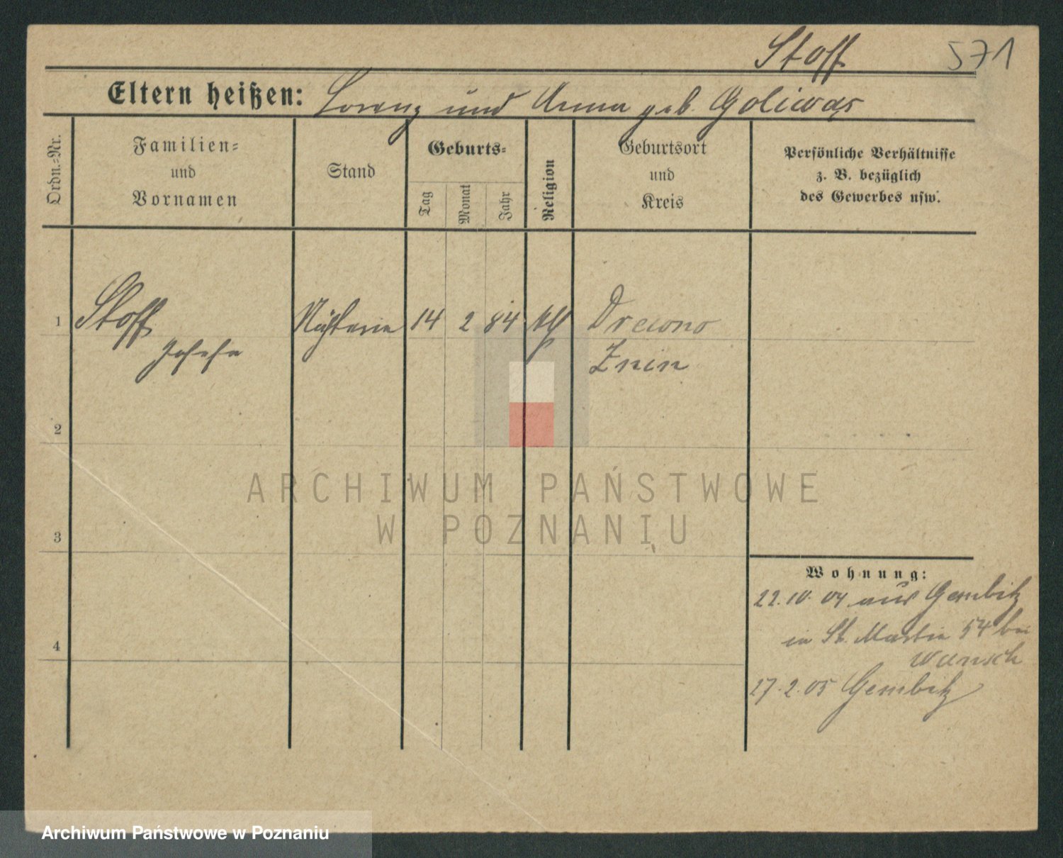 Stojentin v. zd. Getzel, Katharina