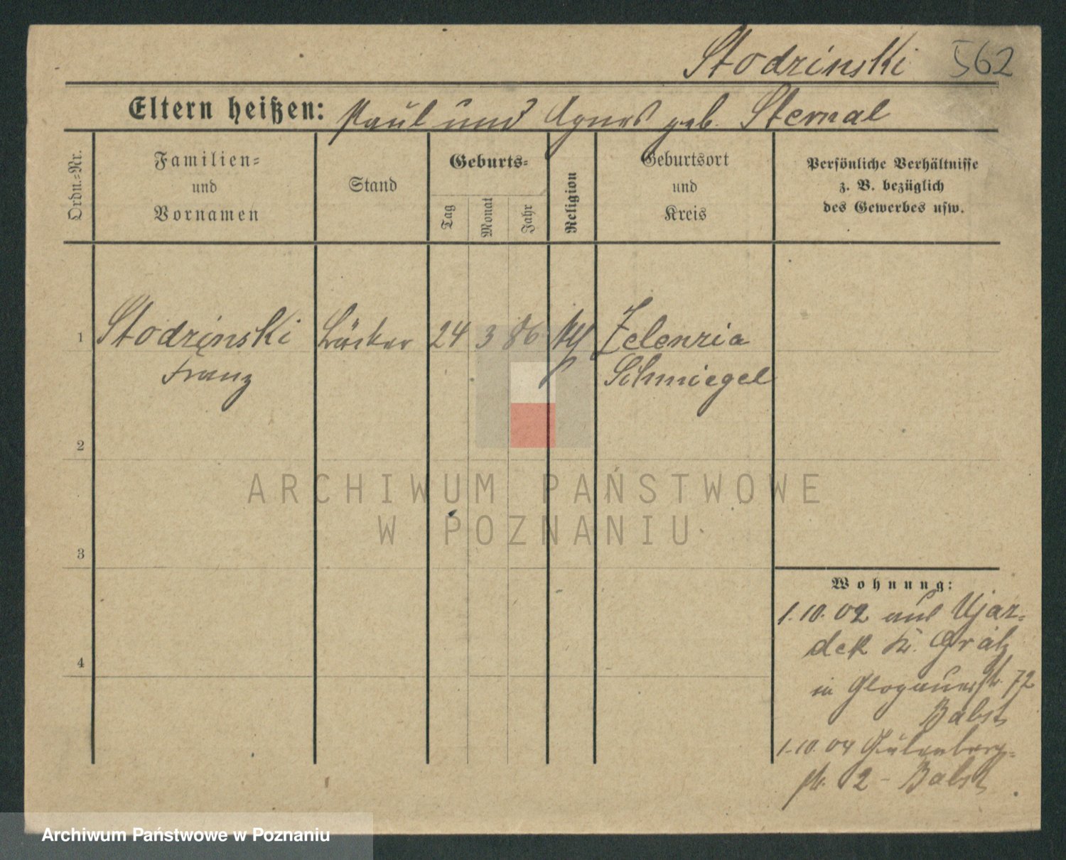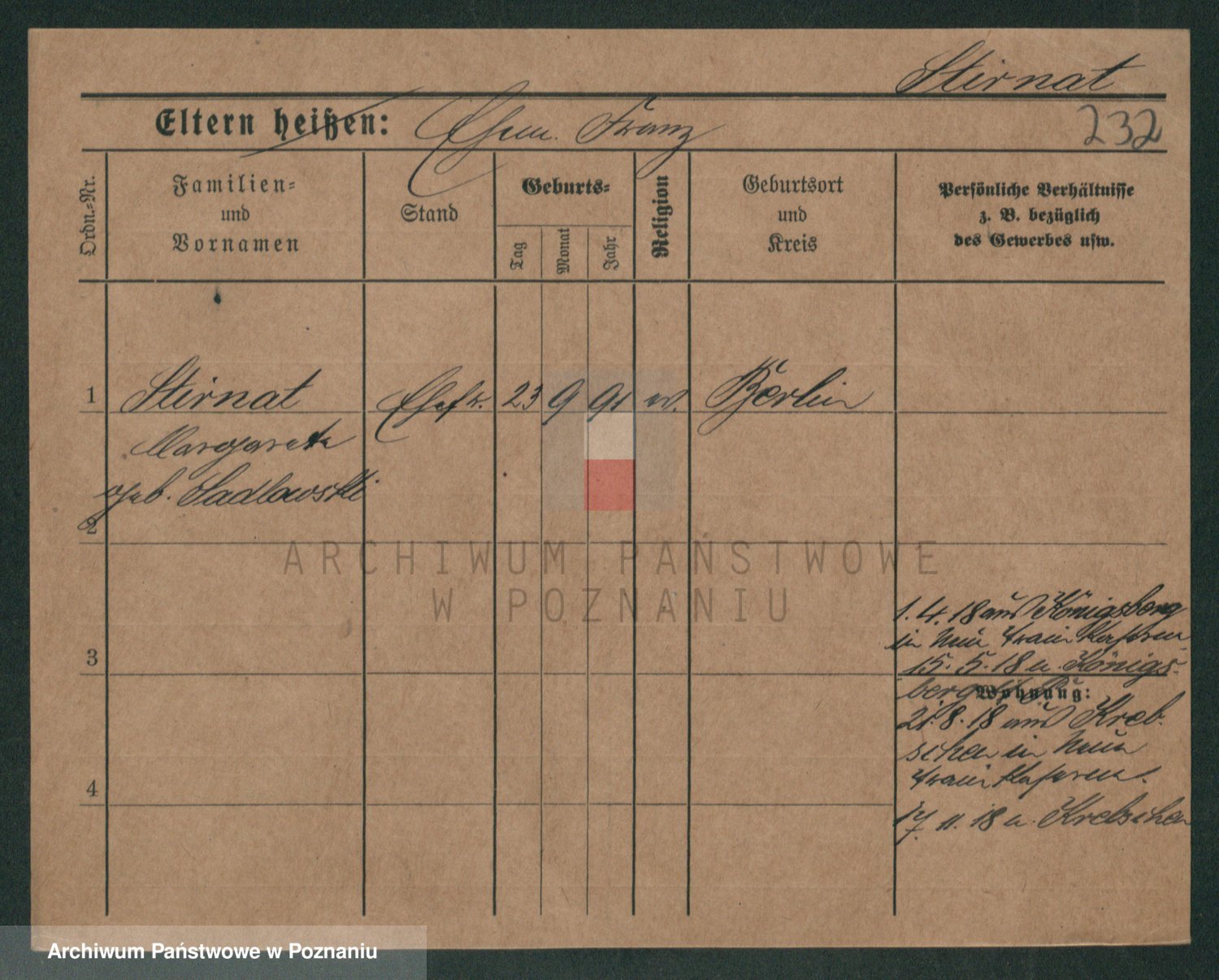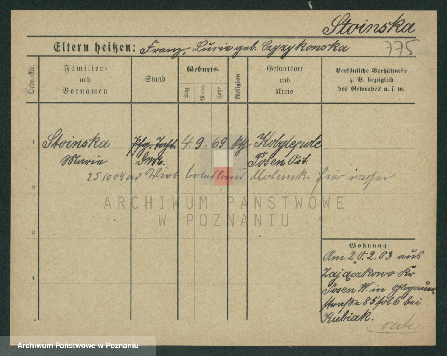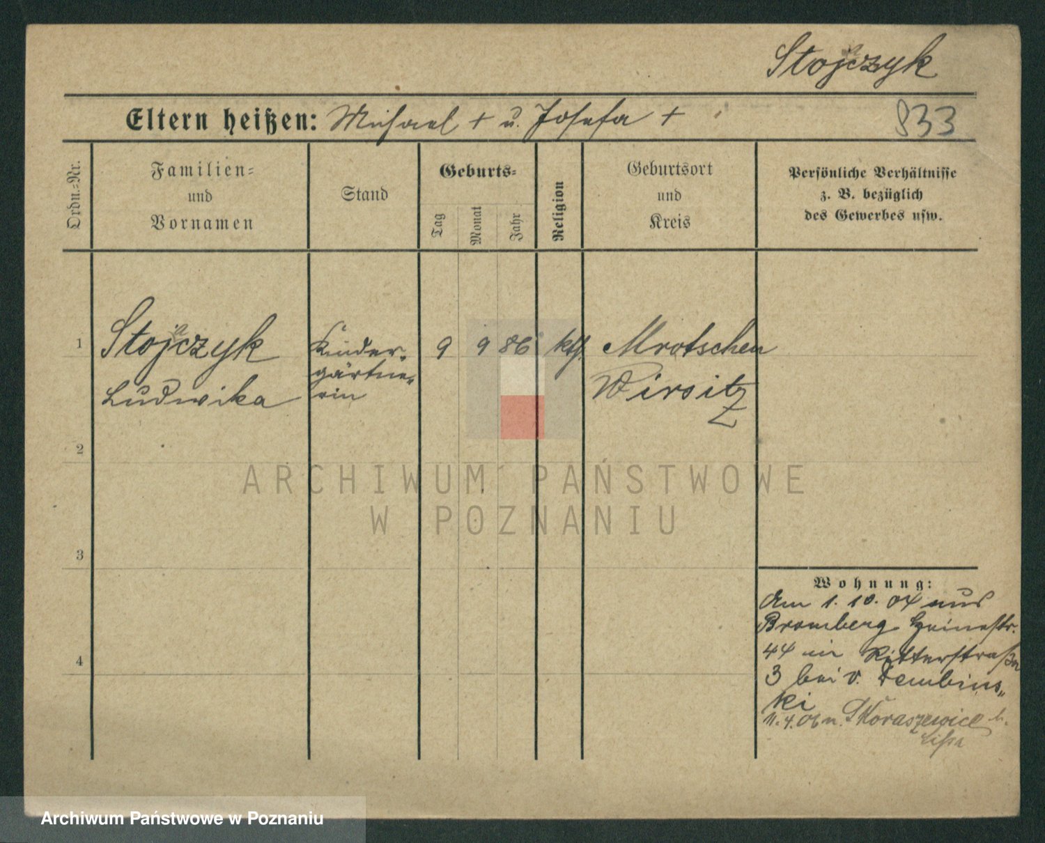 Stojentin v. zd. Getzel, Katharina