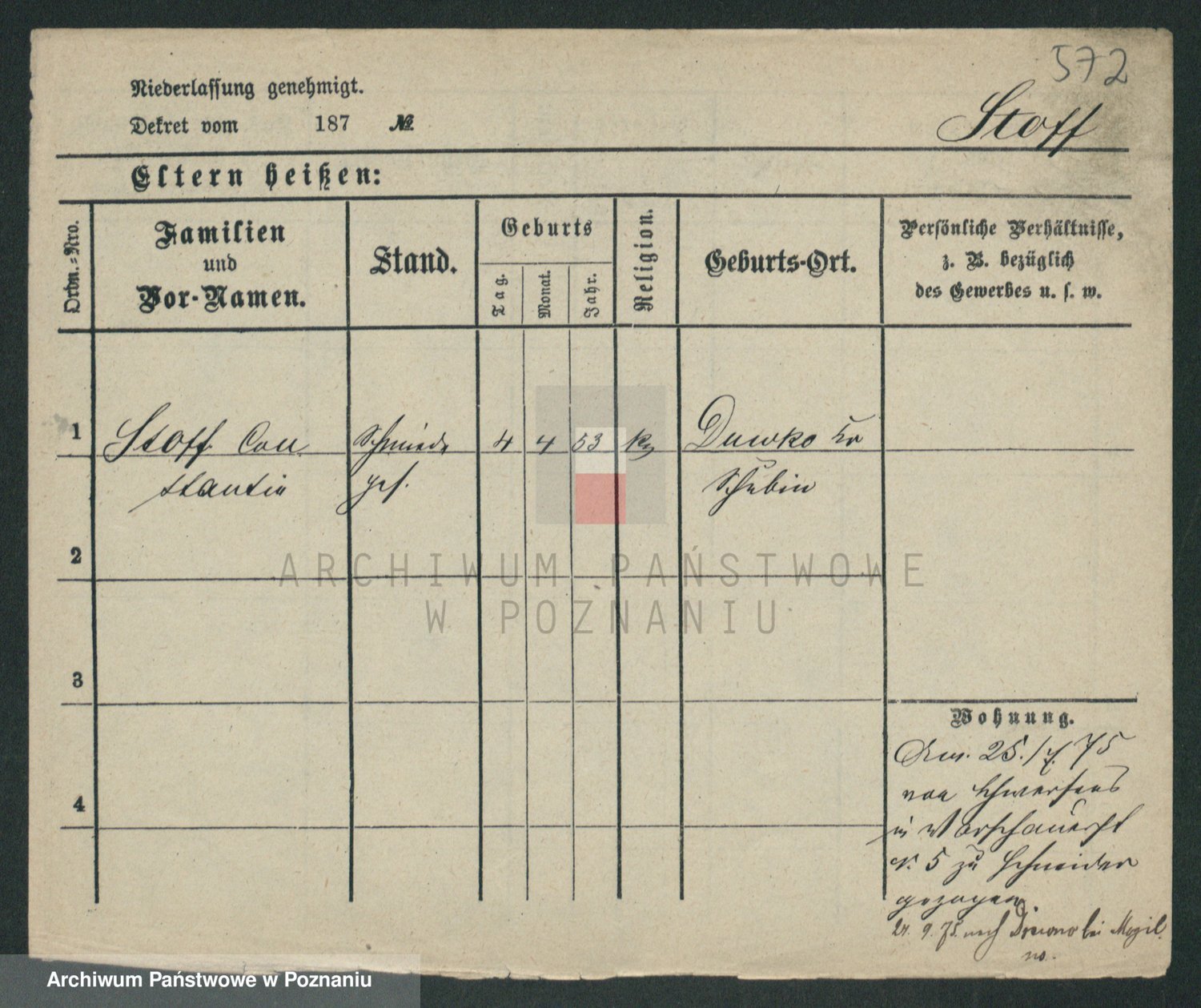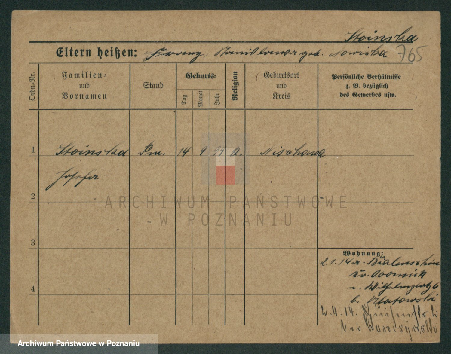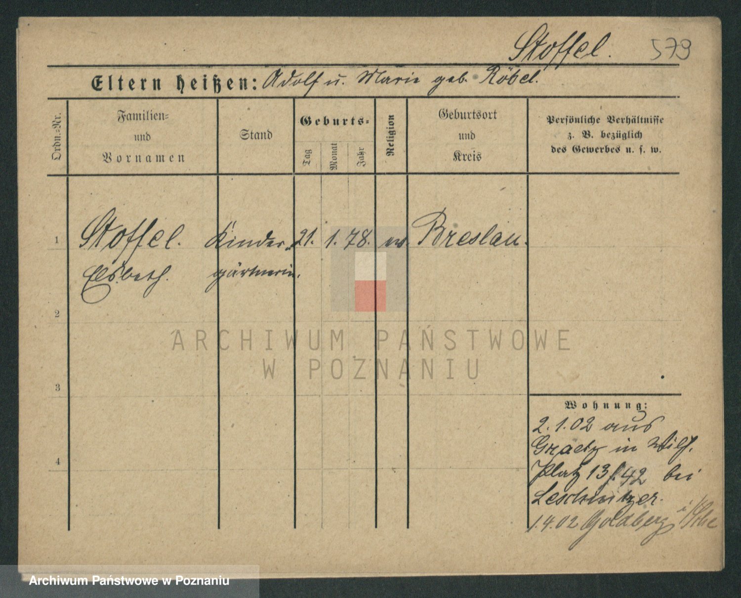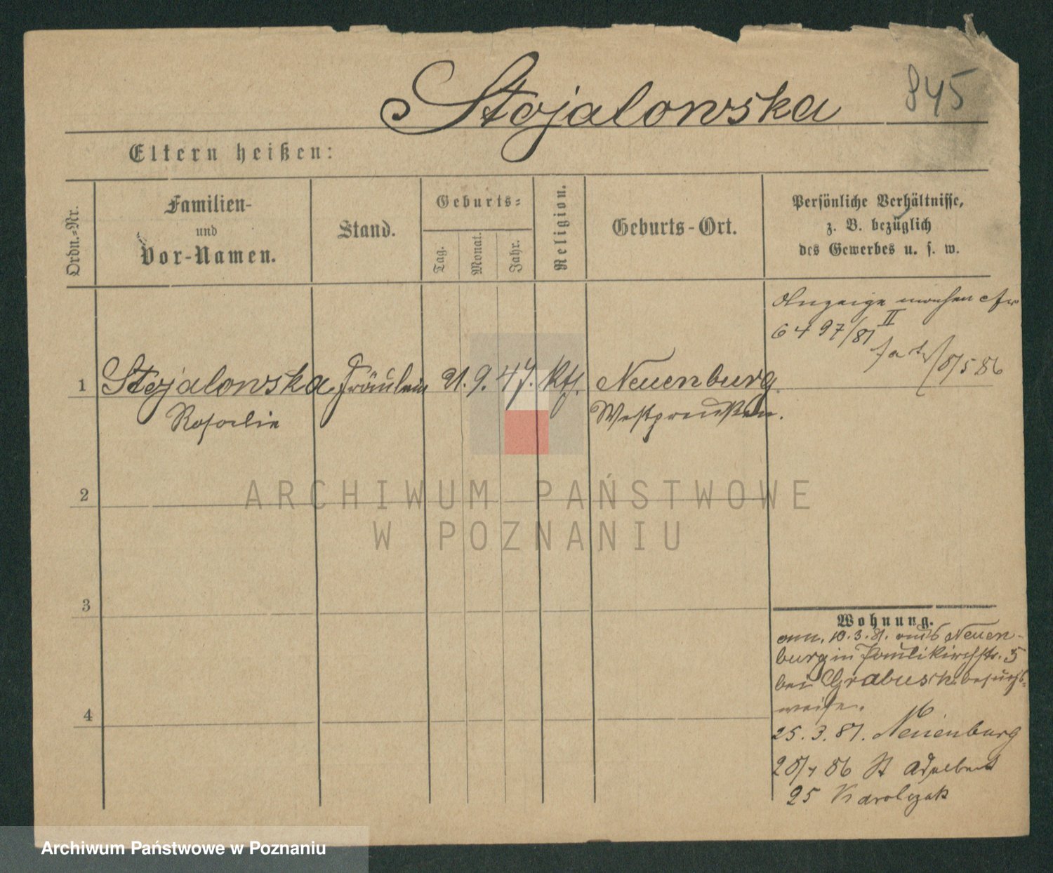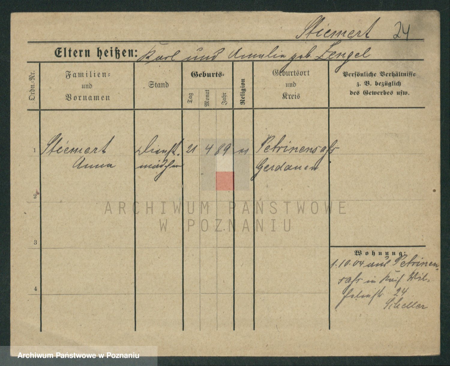 Stojentin v. zd. Getzel, Katharina