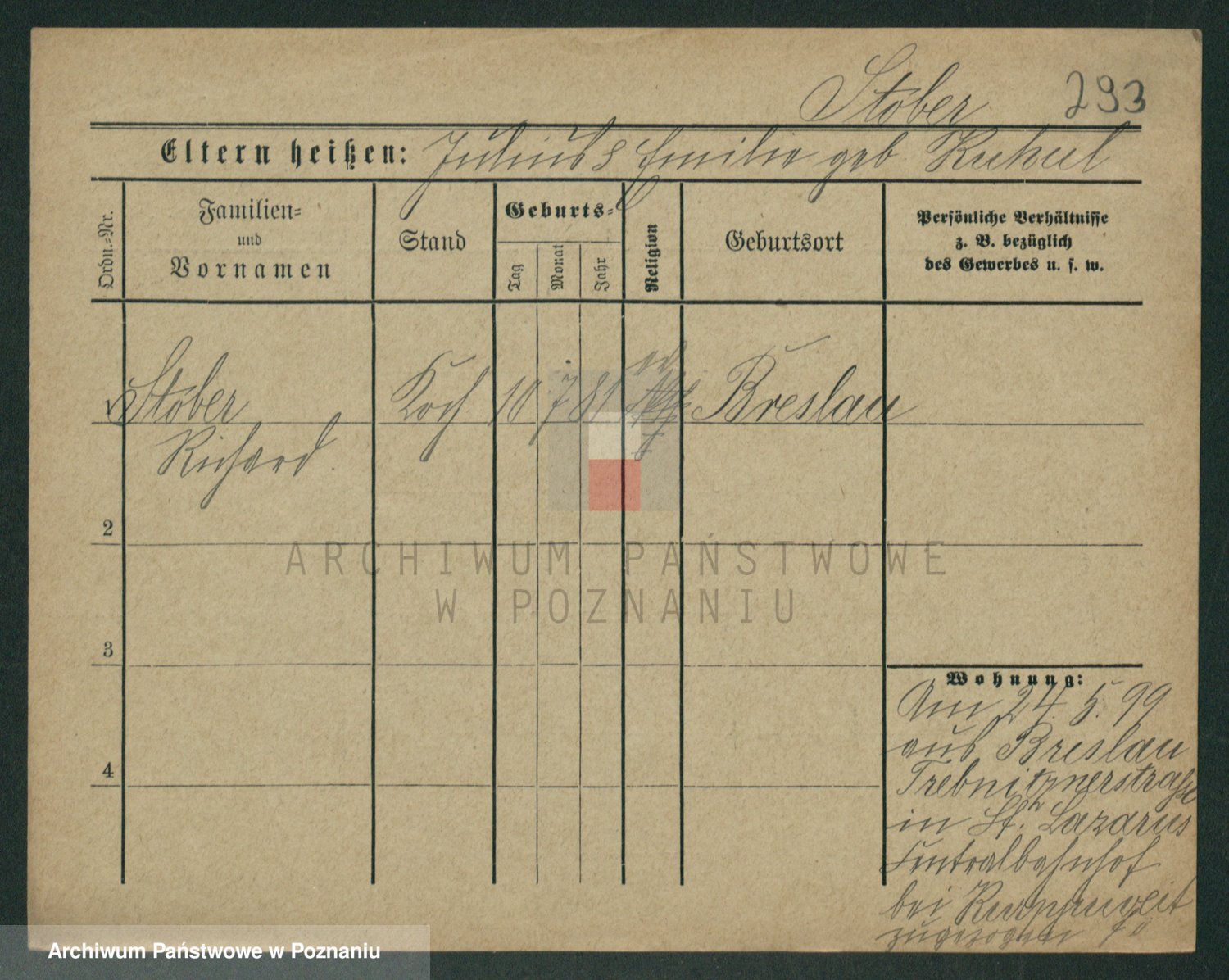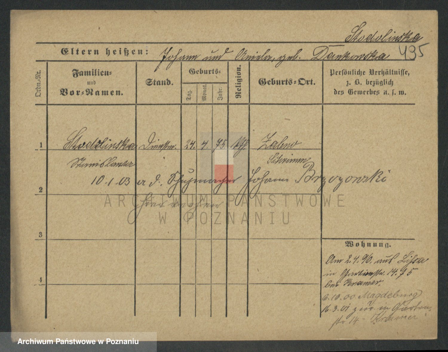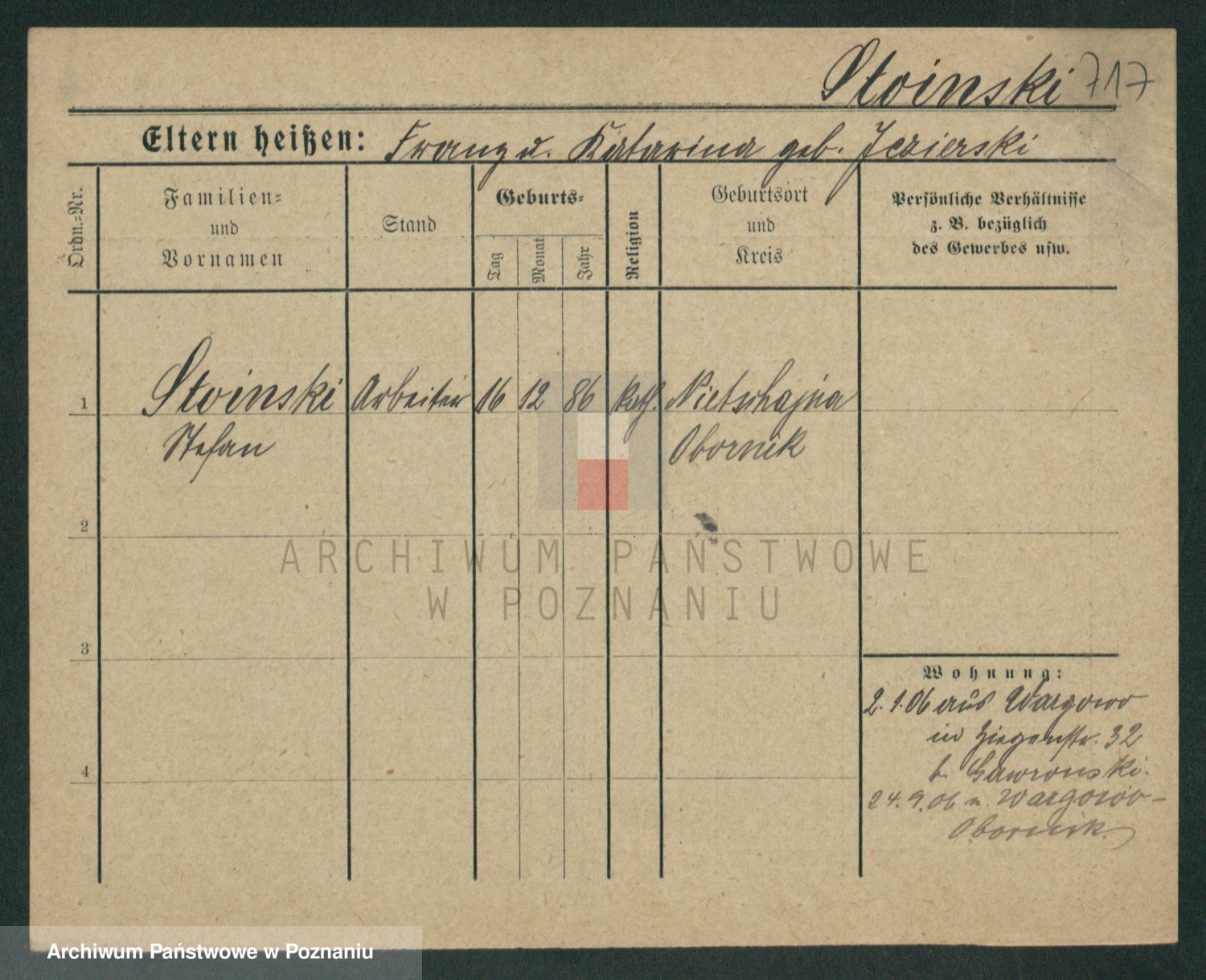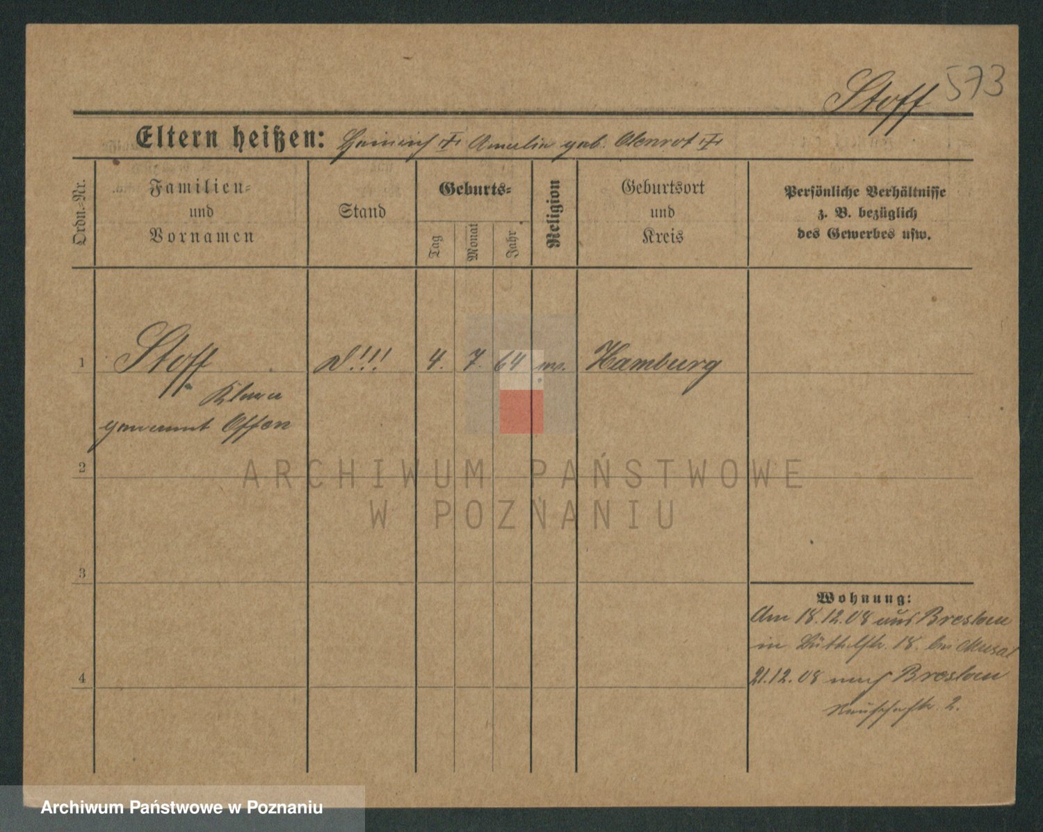 Stojentin v. zd. Getzel, Katharina