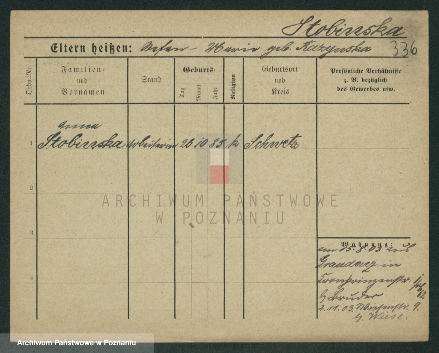 Stojczyk zd. Baua al. Bauer, Marie