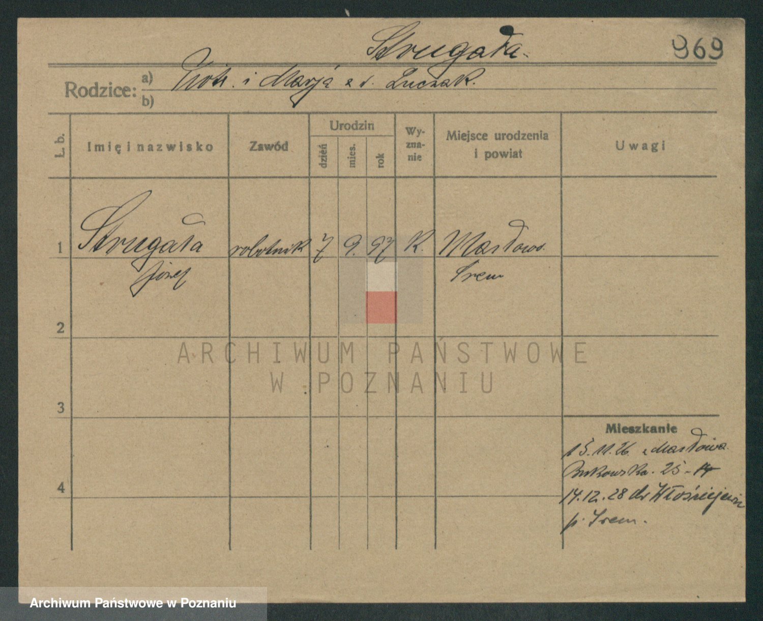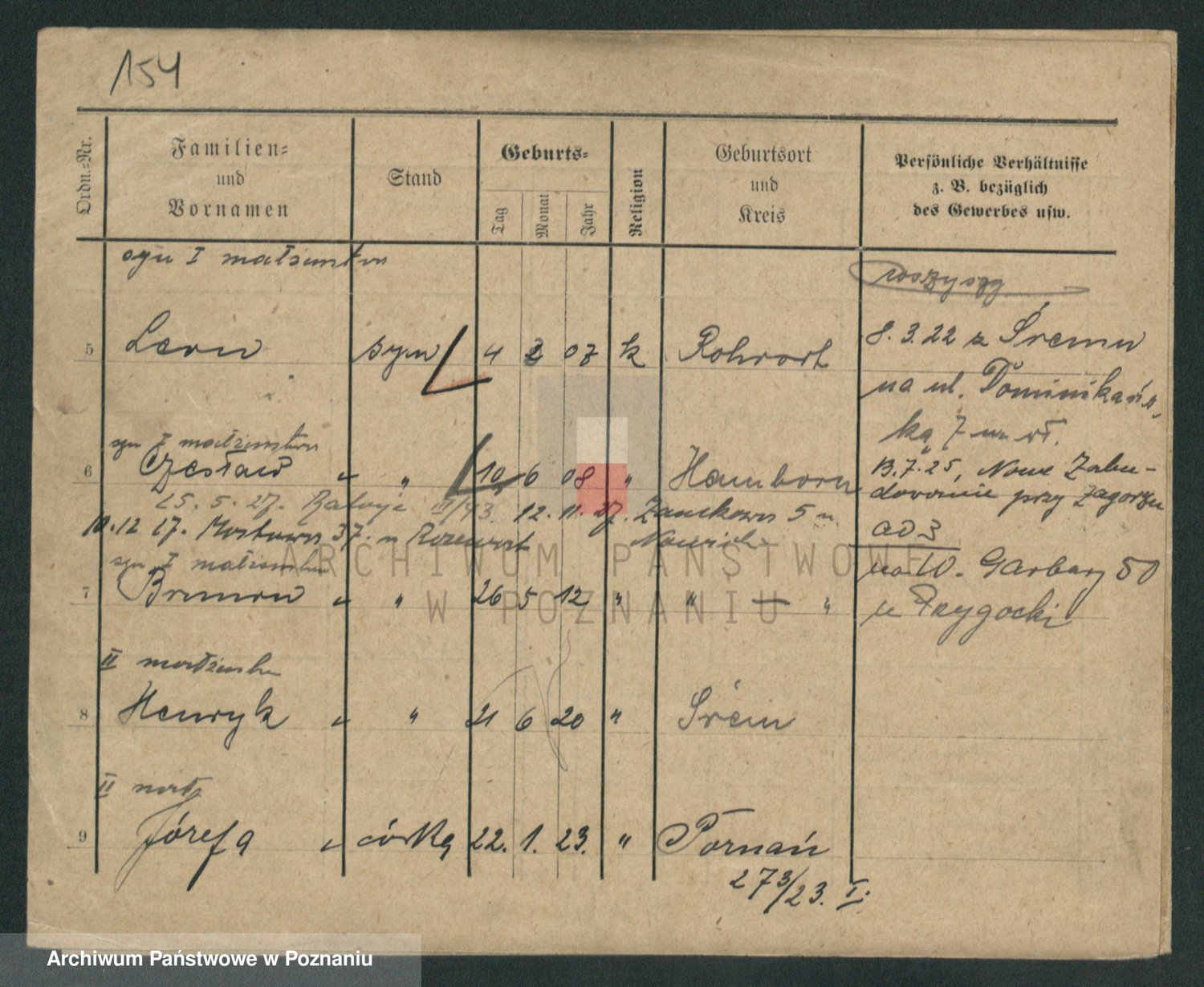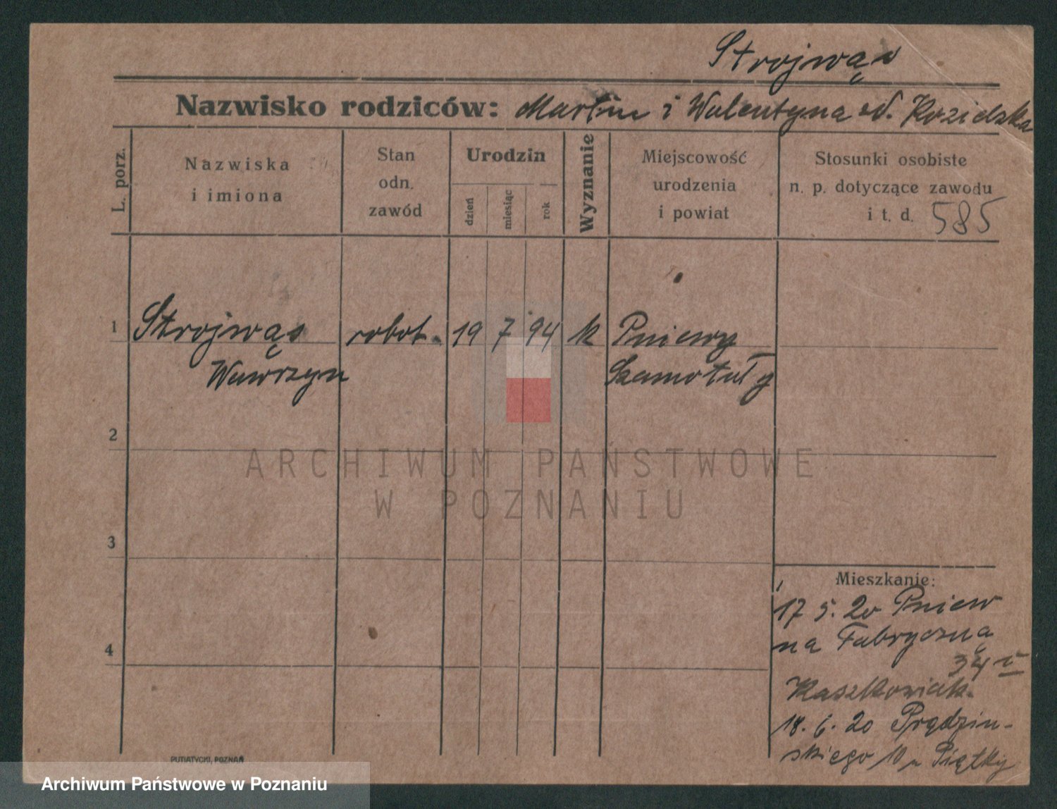 Podgląd karty osobowej dostępny jest po kliknięciu na nazwisko lub ikonkę karty. Można dokonywać powiększenia (ikony na górze) lub przechodzić między kolejnymi skanami (strzałki po bokach).