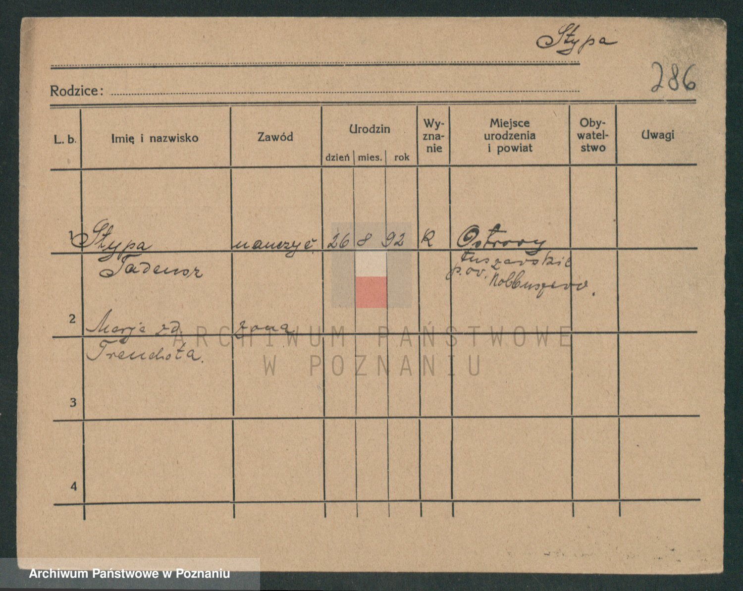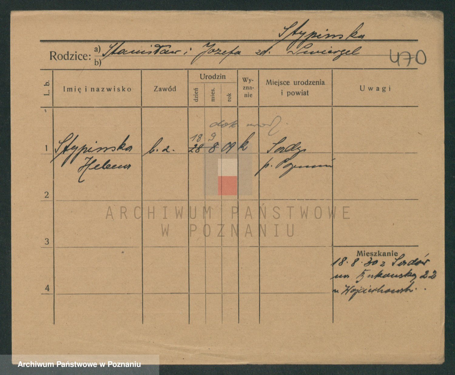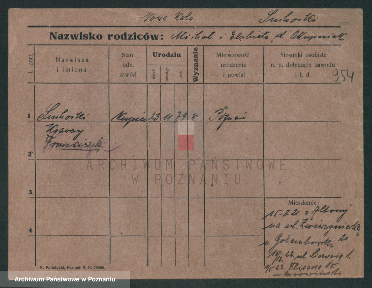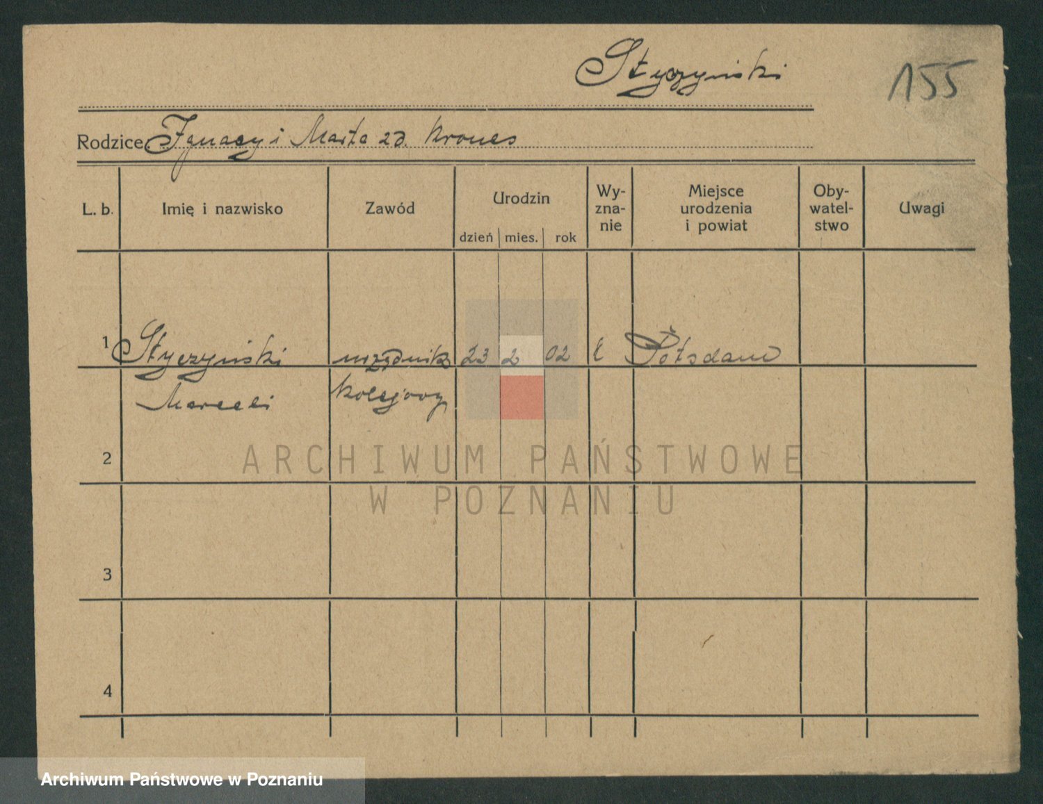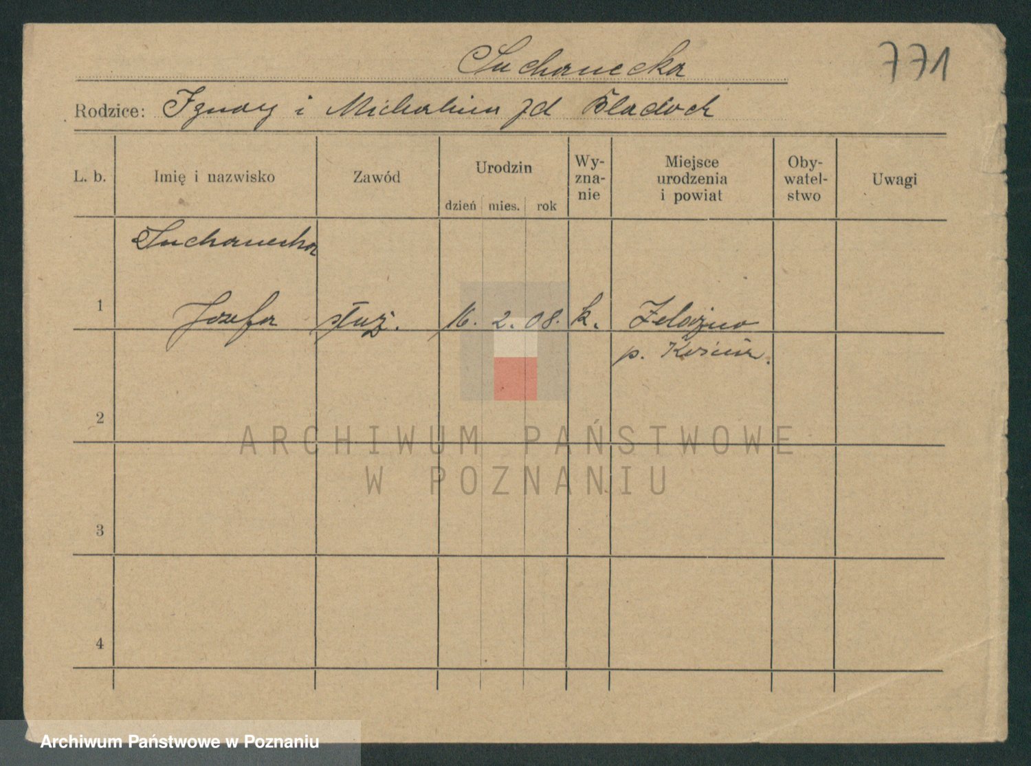 Podgląd karty osobowej dostępny jest po kliknięciu na nazwisko lub ikonkę karty. Można dokonywać powiększenia (ikony na górze) lub przechodzić między kolejnymi skanami (strzałki po bokach).