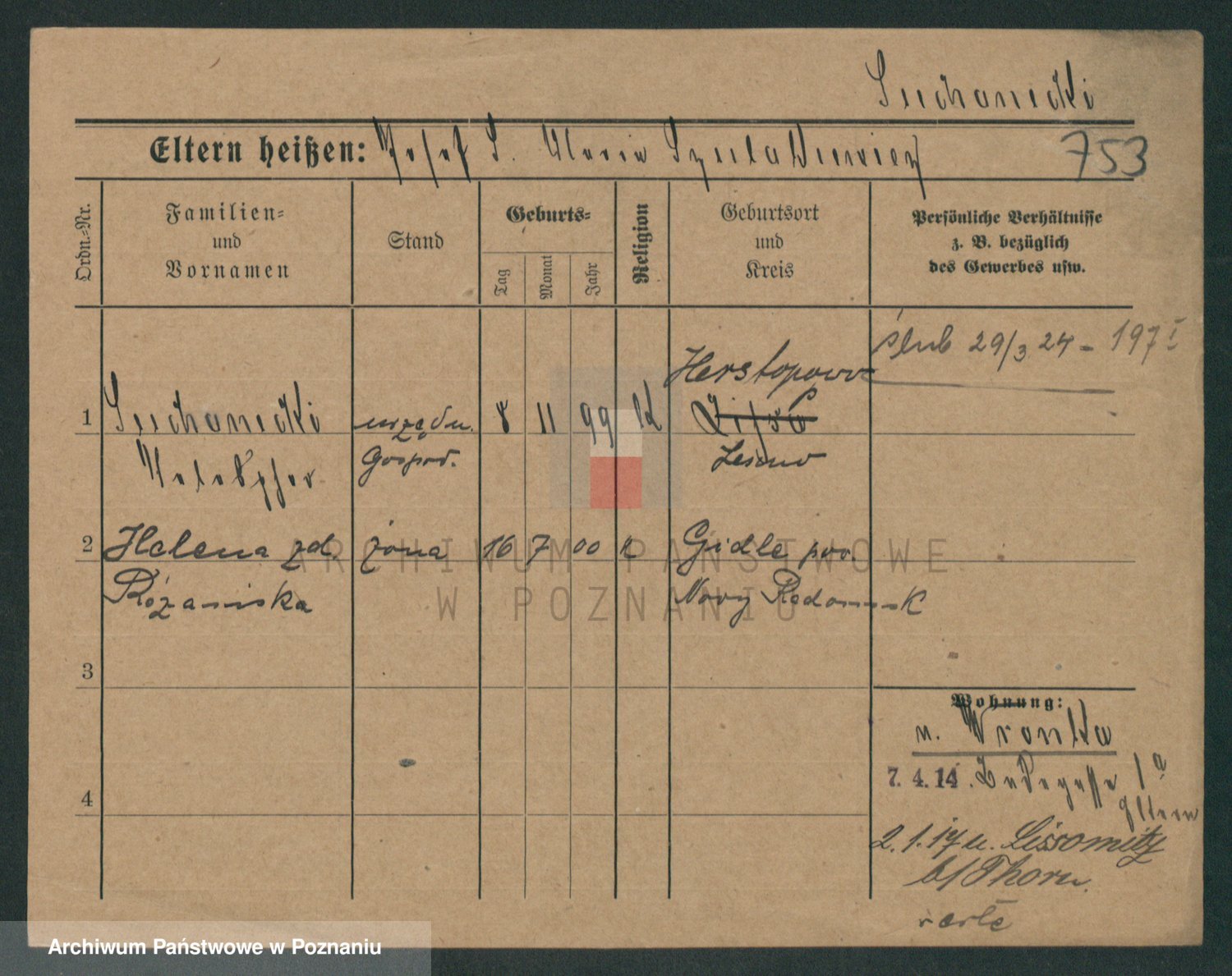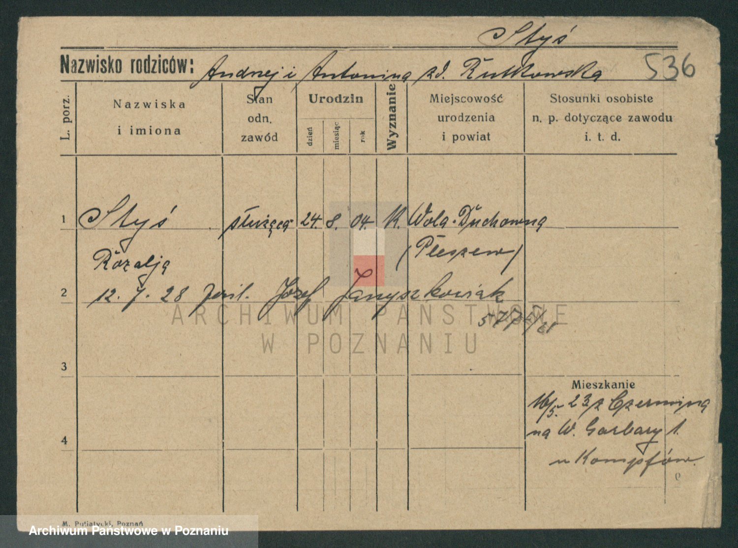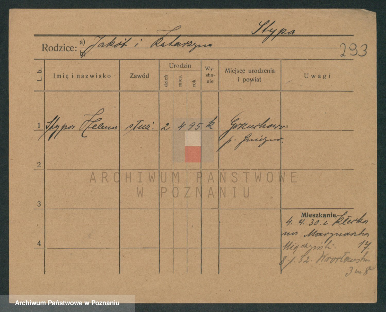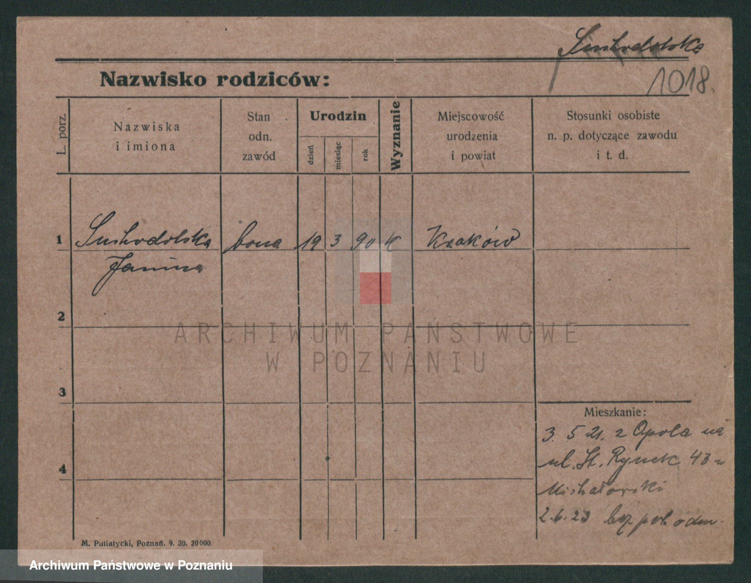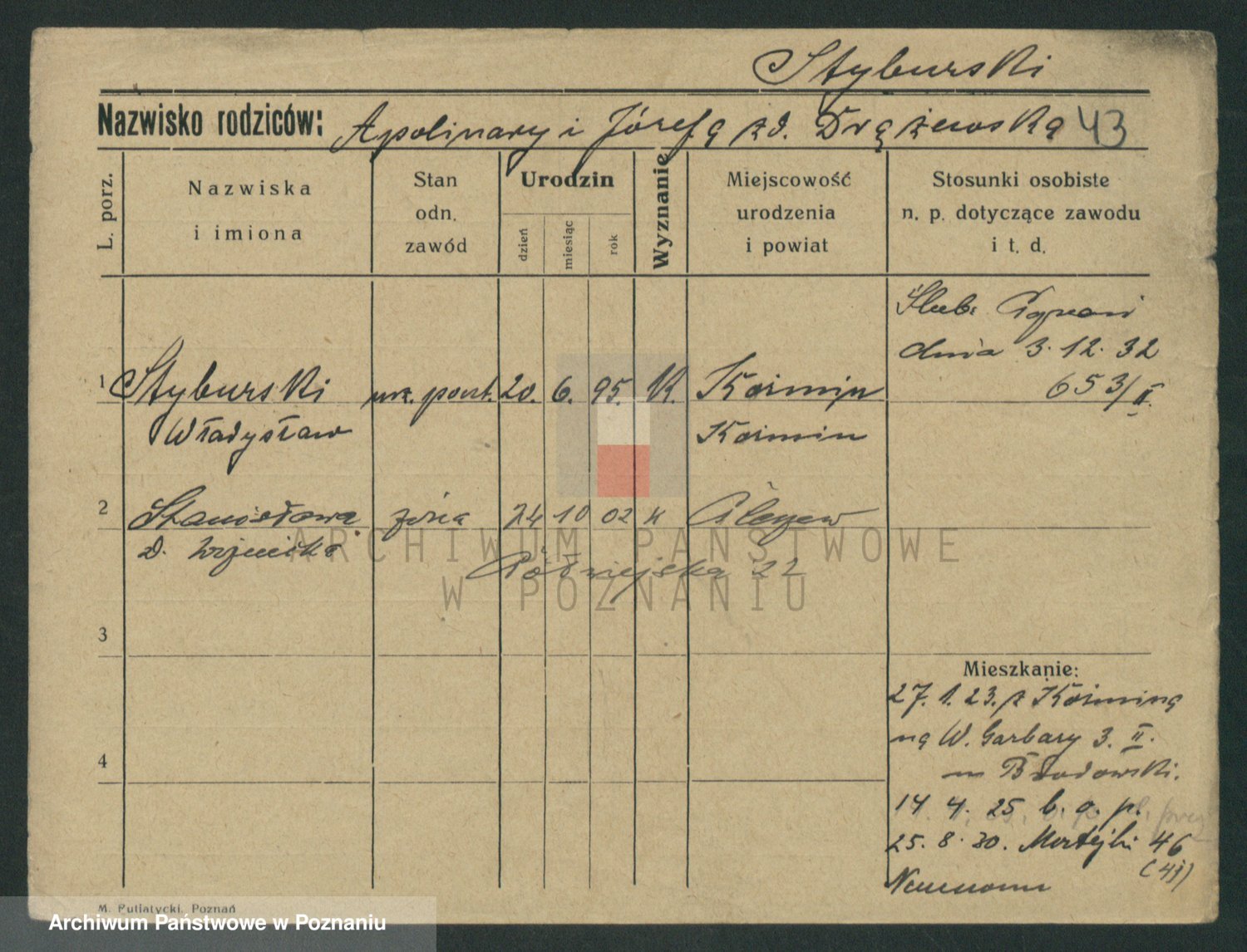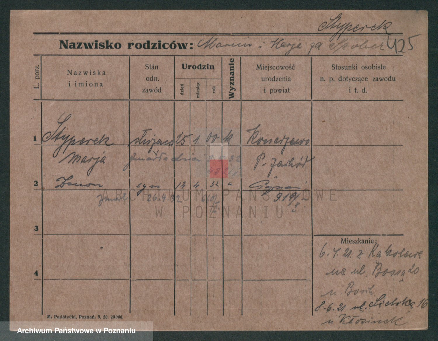 Podgląd karty osobowej dostępny jest po kliknięciu na nazwisko lub ikonkę karty. Można dokonywać powiększenia (ikony na górze) lub przechodzić między kolejnymi skanami (strzałki po bokach).
