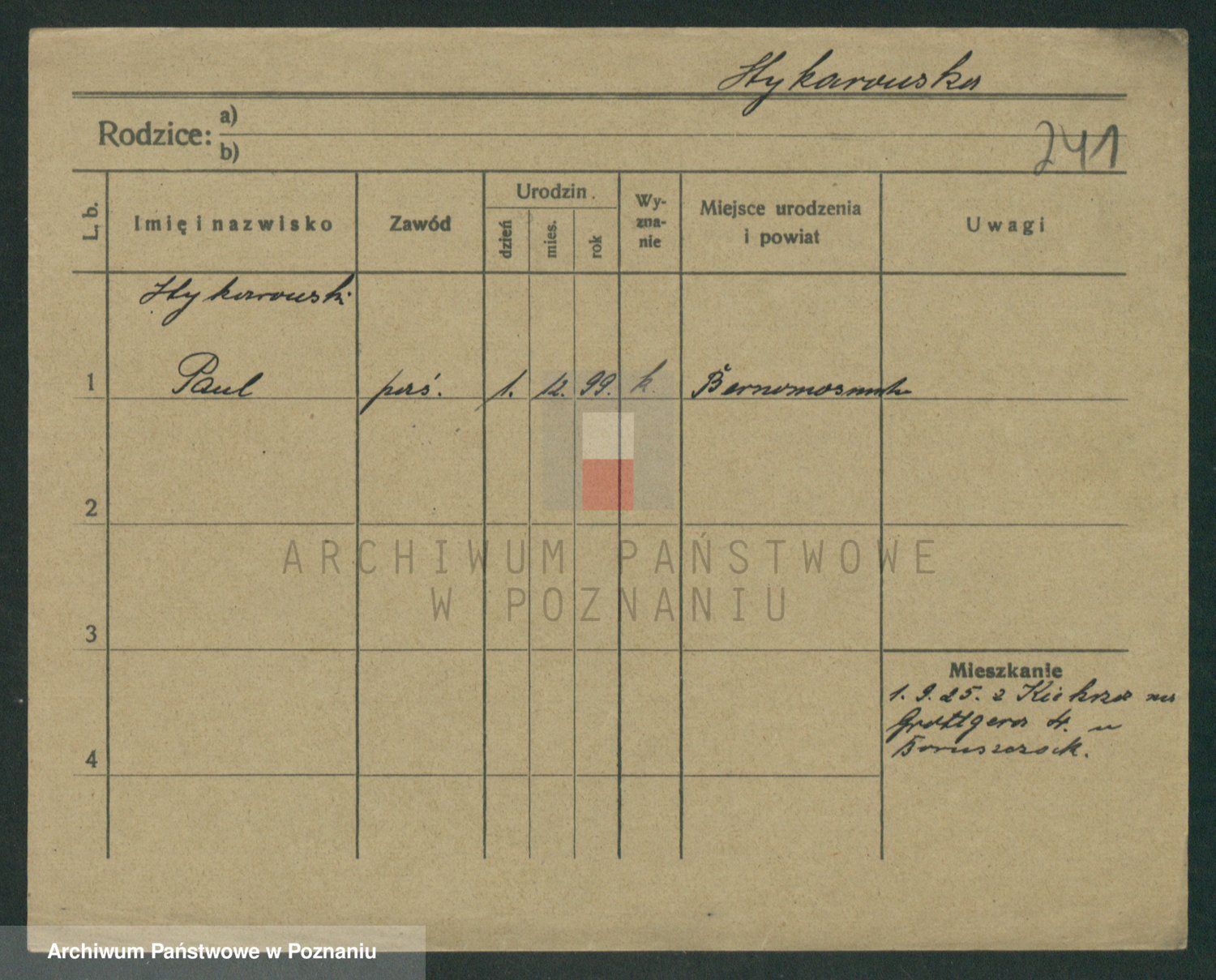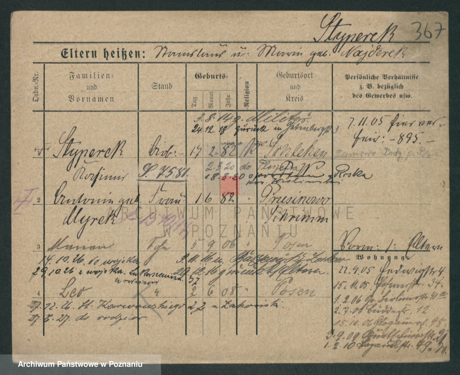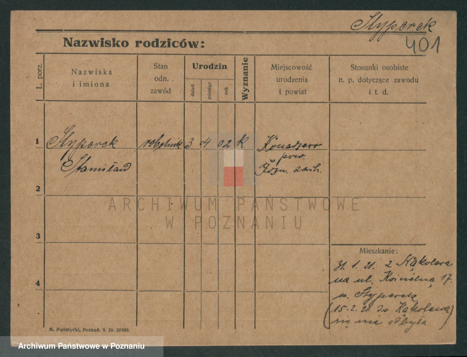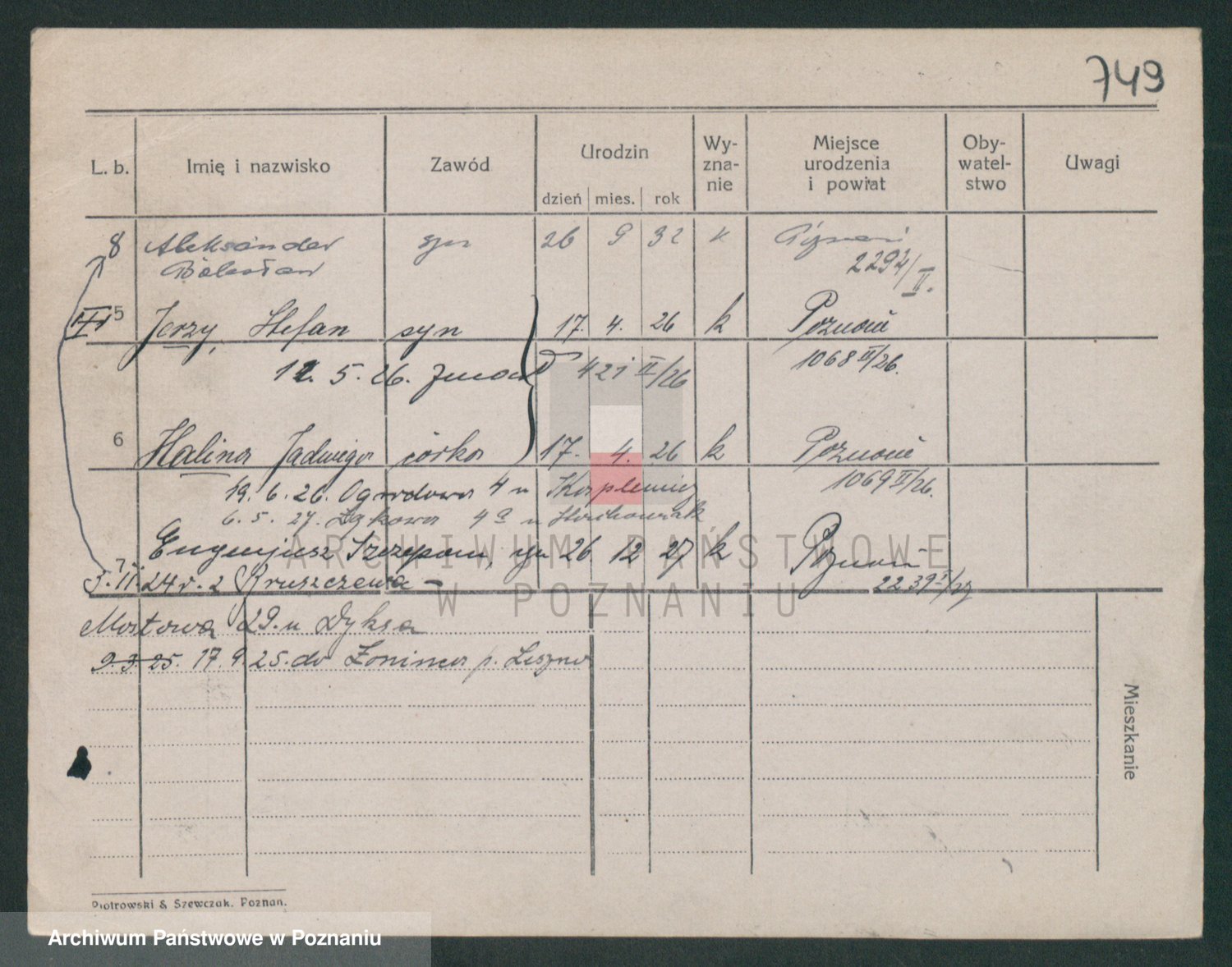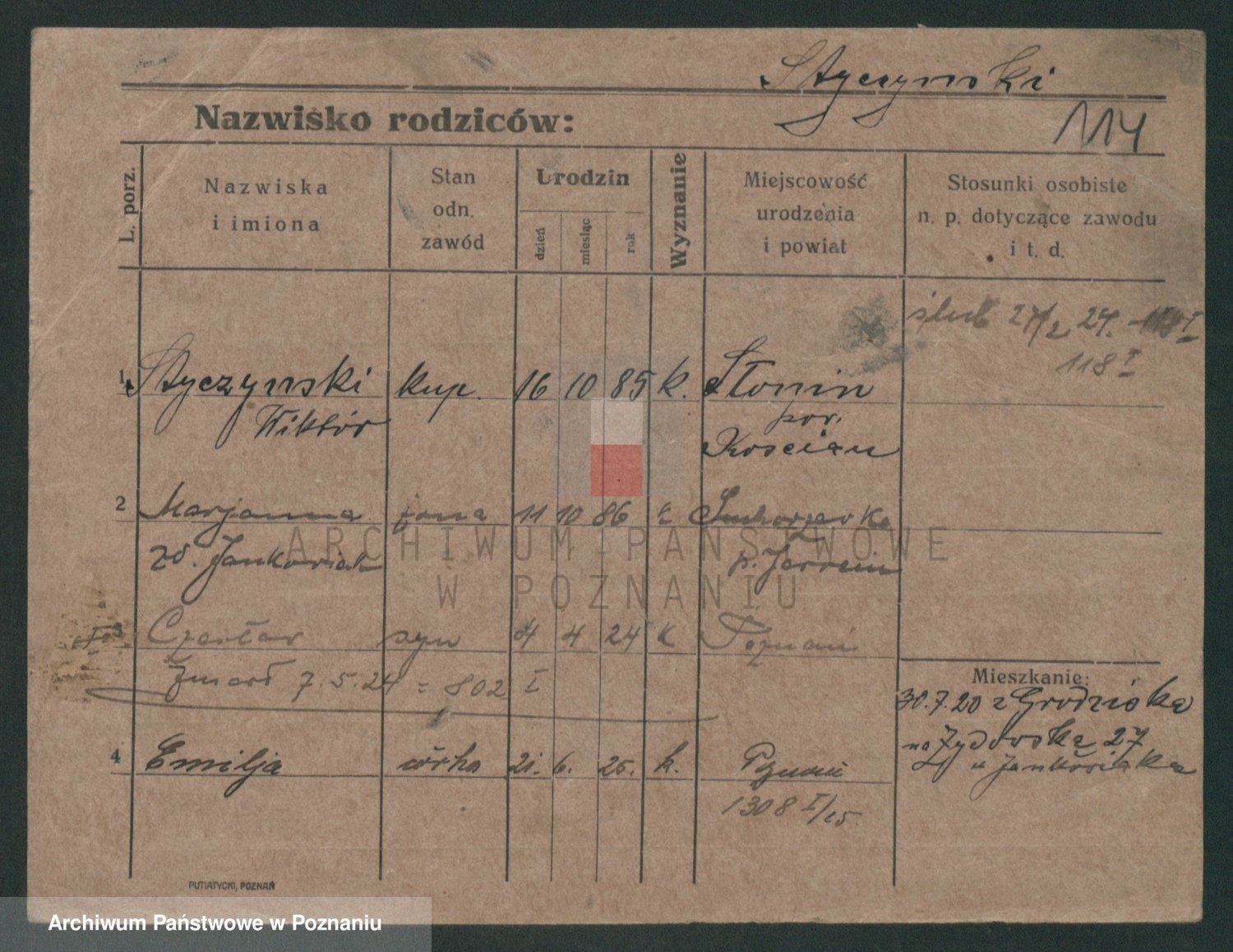 Podgląd karty osobowej dostępny jest po kliknięciu na nazwisko lub ikonkę karty. Można dokonywać powiększenia (ikony na górze) lub przechodzić między kolejnymi skanami (strzałki po bokach).