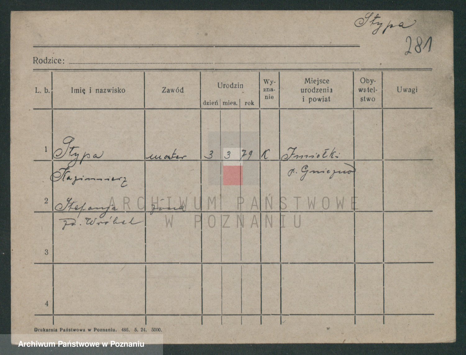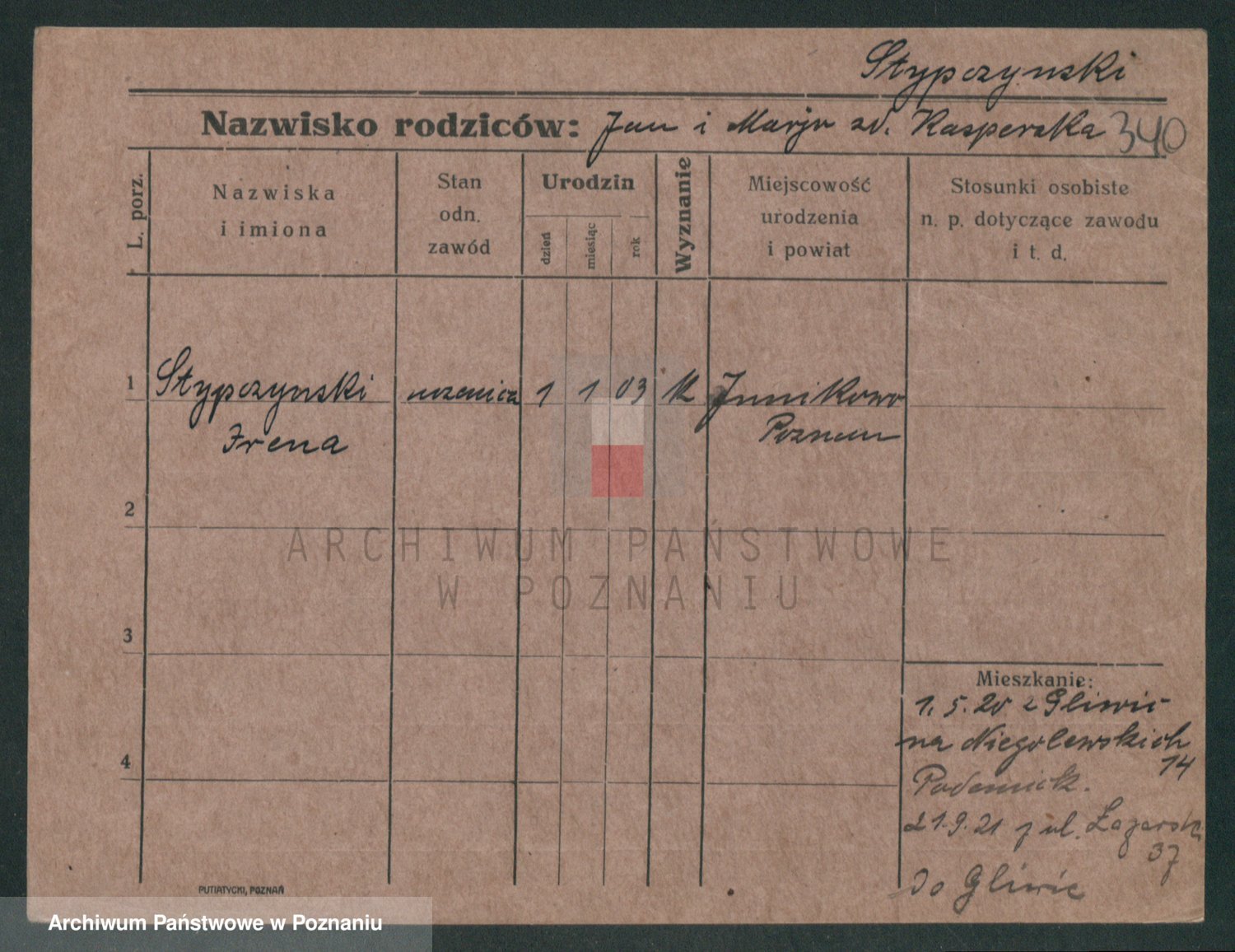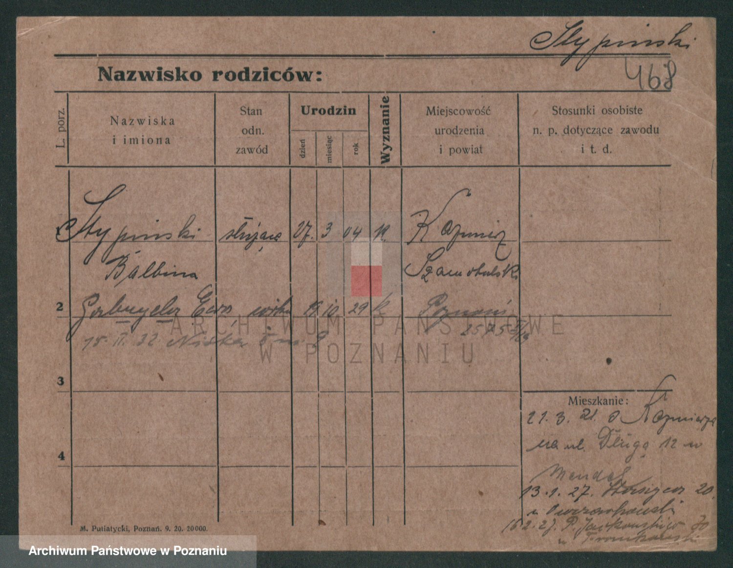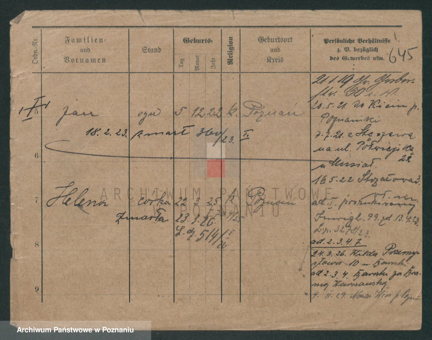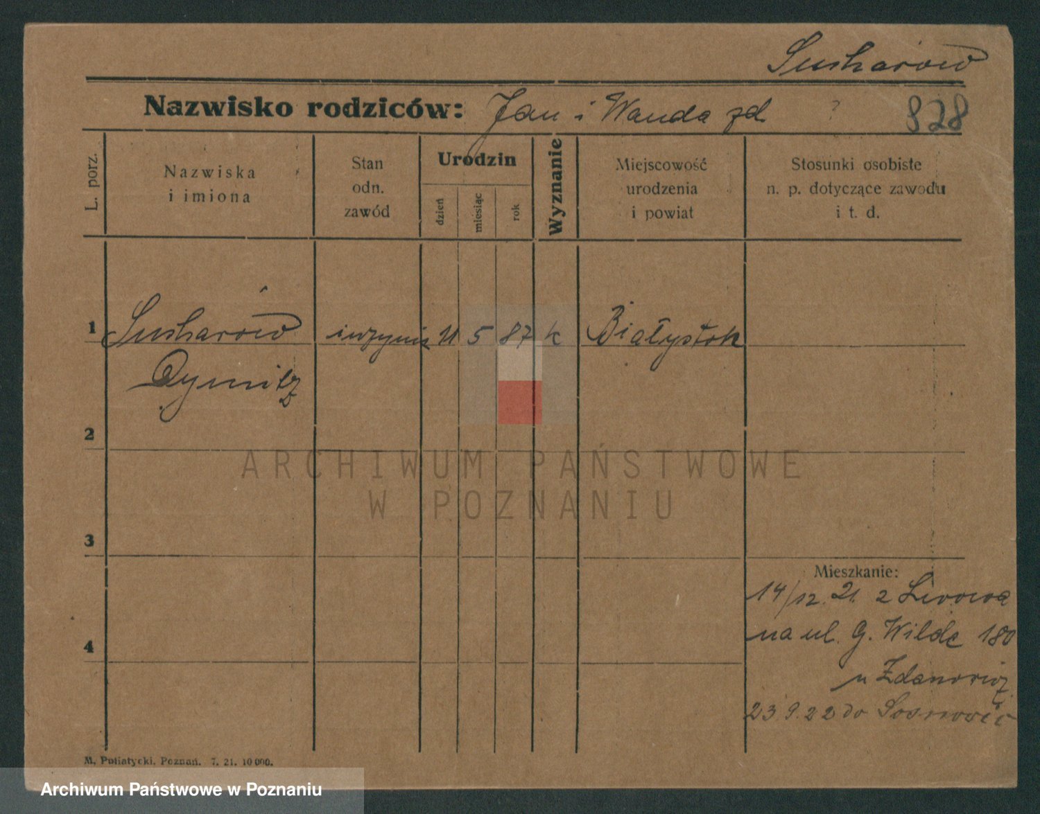 Podgląd karty osobowej dostępny jest po kliknięciu na nazwisko lub ikonkę karty. Można dokonywać powiększenia (ikony na górze) lub przechodzić między kolejnymi skanami (strzałki po bokach).