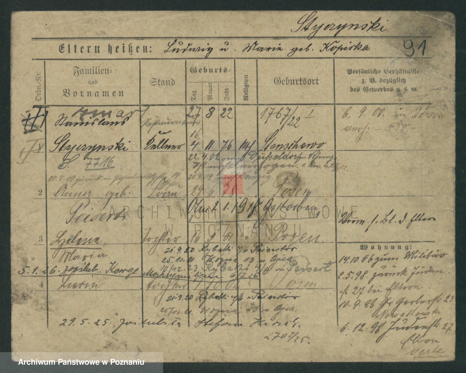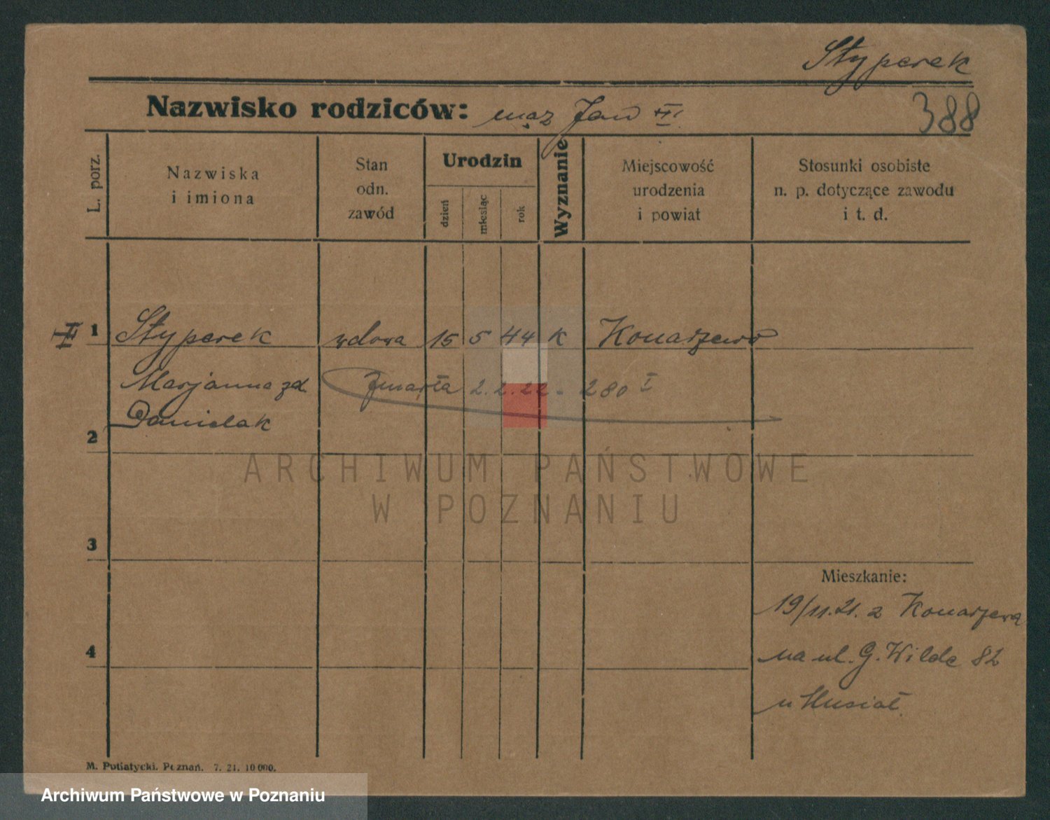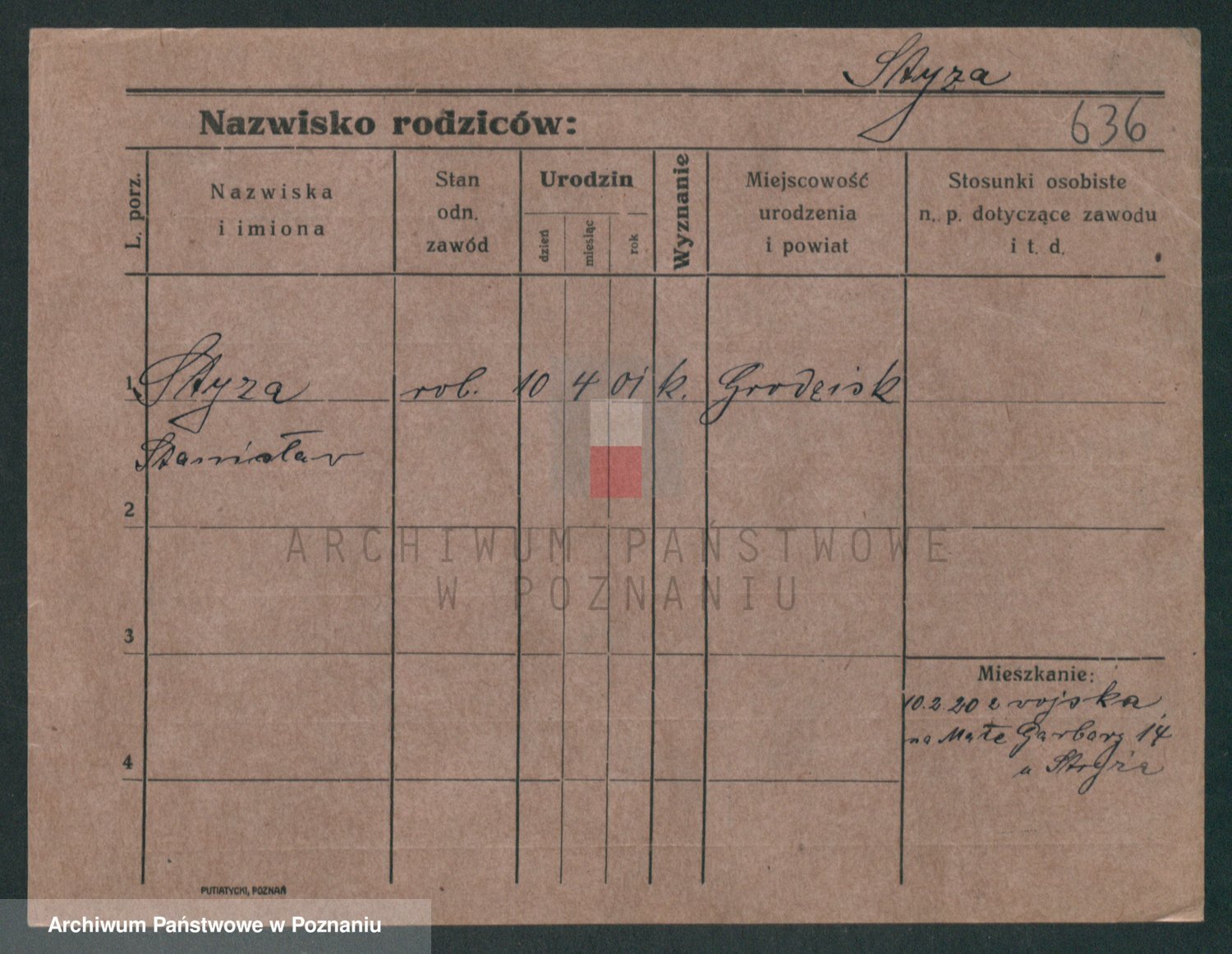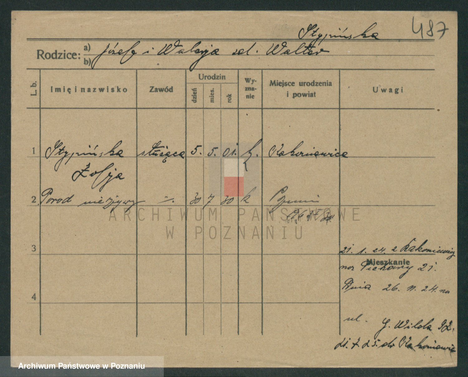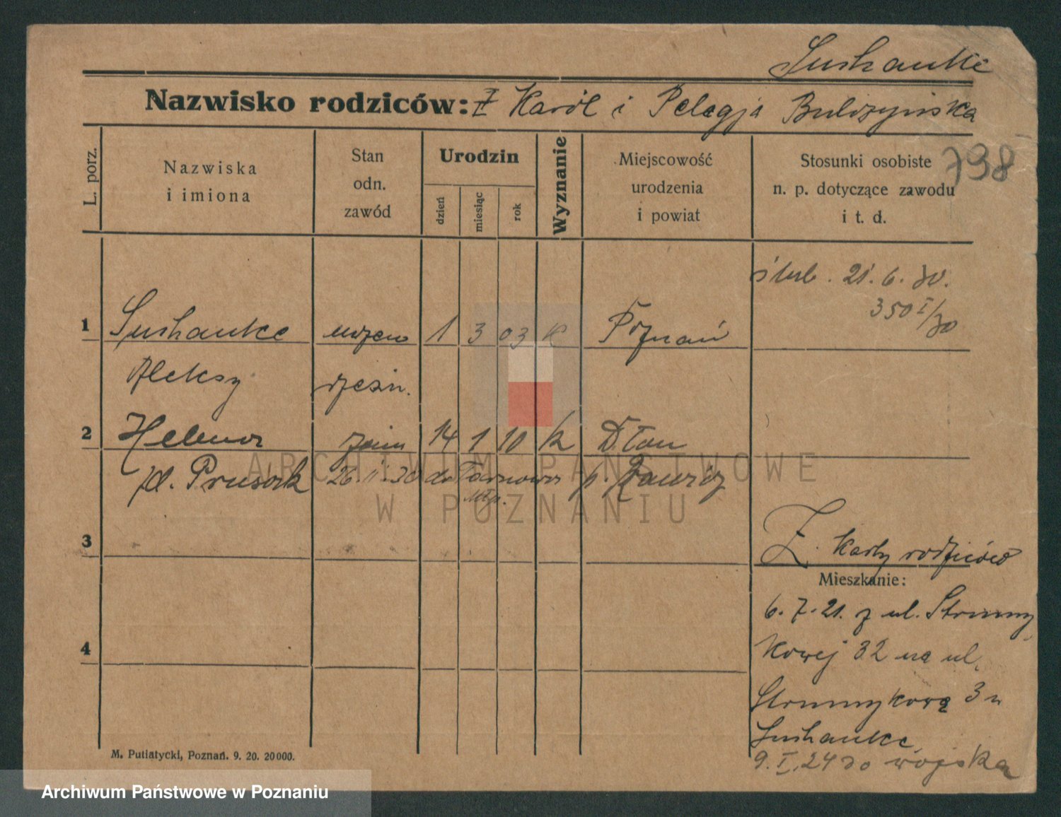 Podgląd karty osobowej dostępny jest po kliknięciu na nazwisko lub ikonkę karty. Można dokonywać powiększenia (ikony na górze) lub przechodzić między kolejnymi skanami (strzałki po bokach).