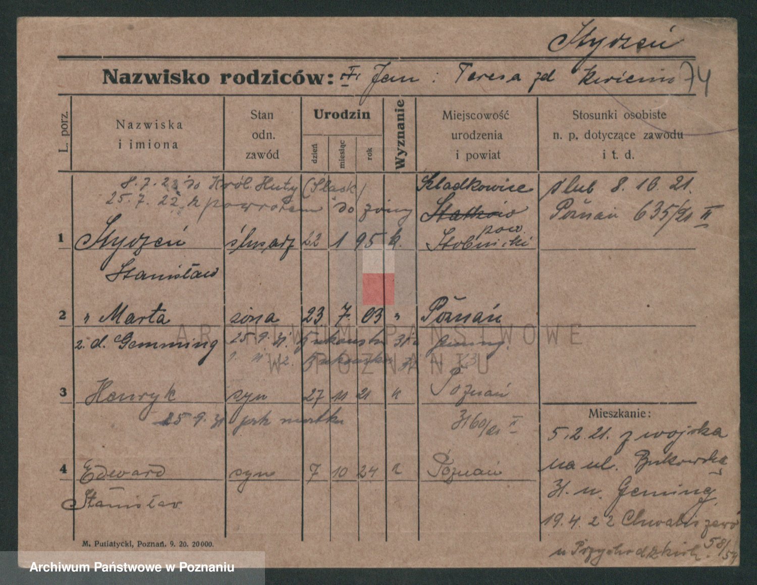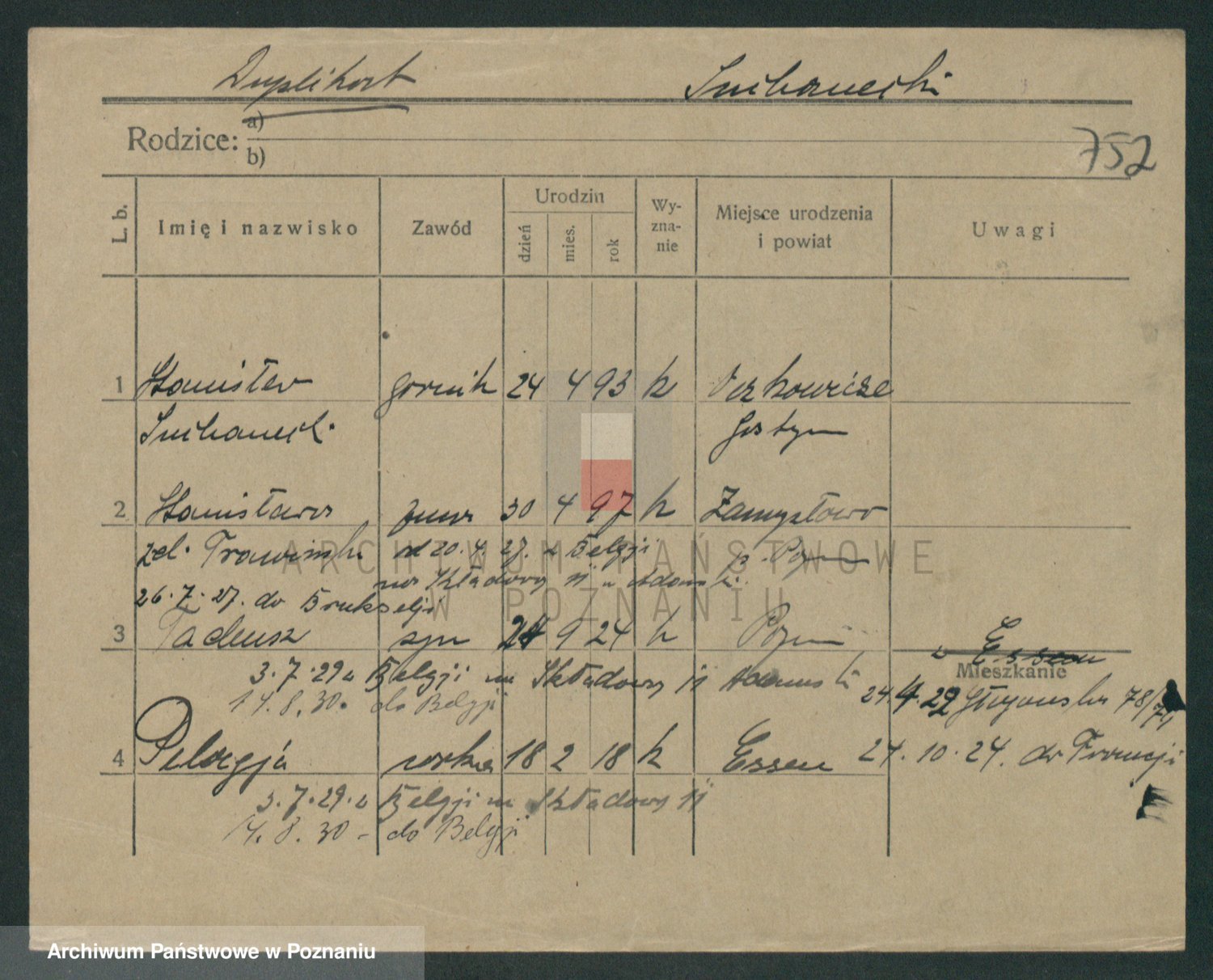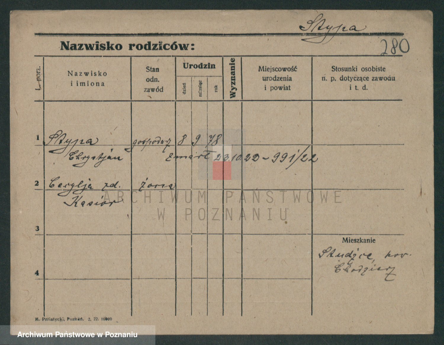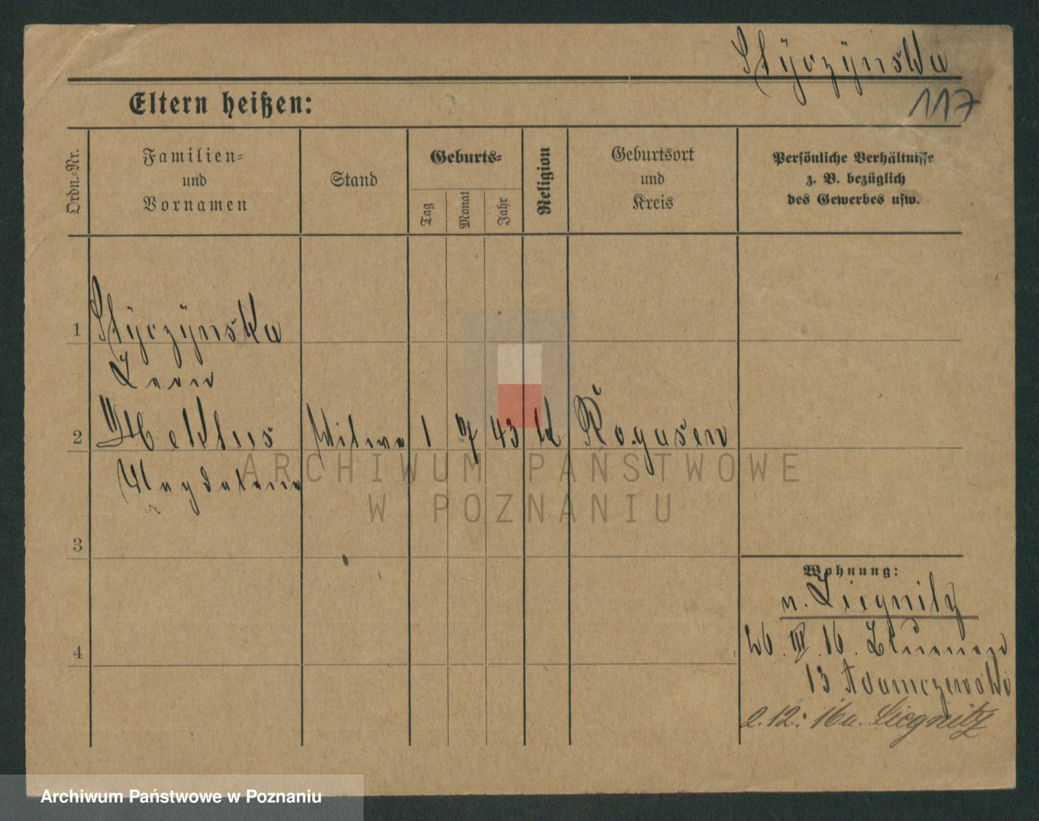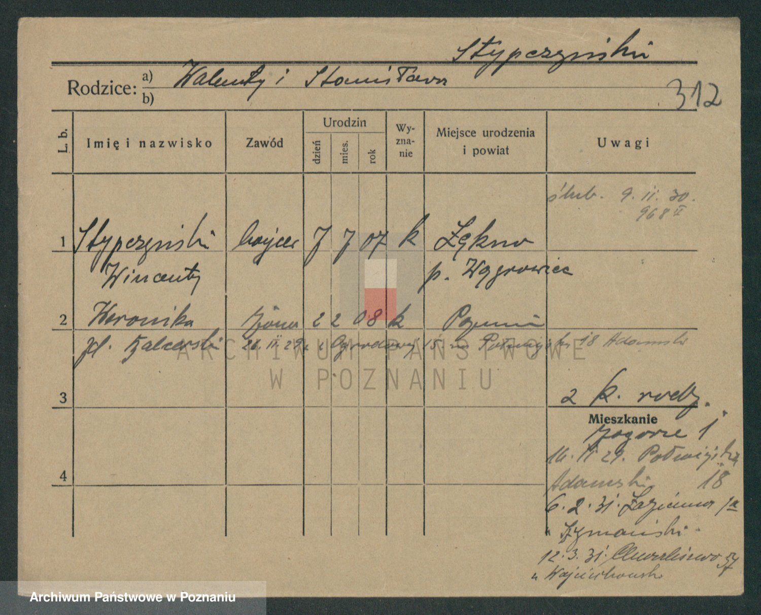 Podgląd karty osobowej dostępny jest po kliknięciu na nazwisko lub ikonkę karty. Można dokonywać powiększenia (ikony na górze) lub przechodzić między kolejnymi skanami (strzałki po bokach).