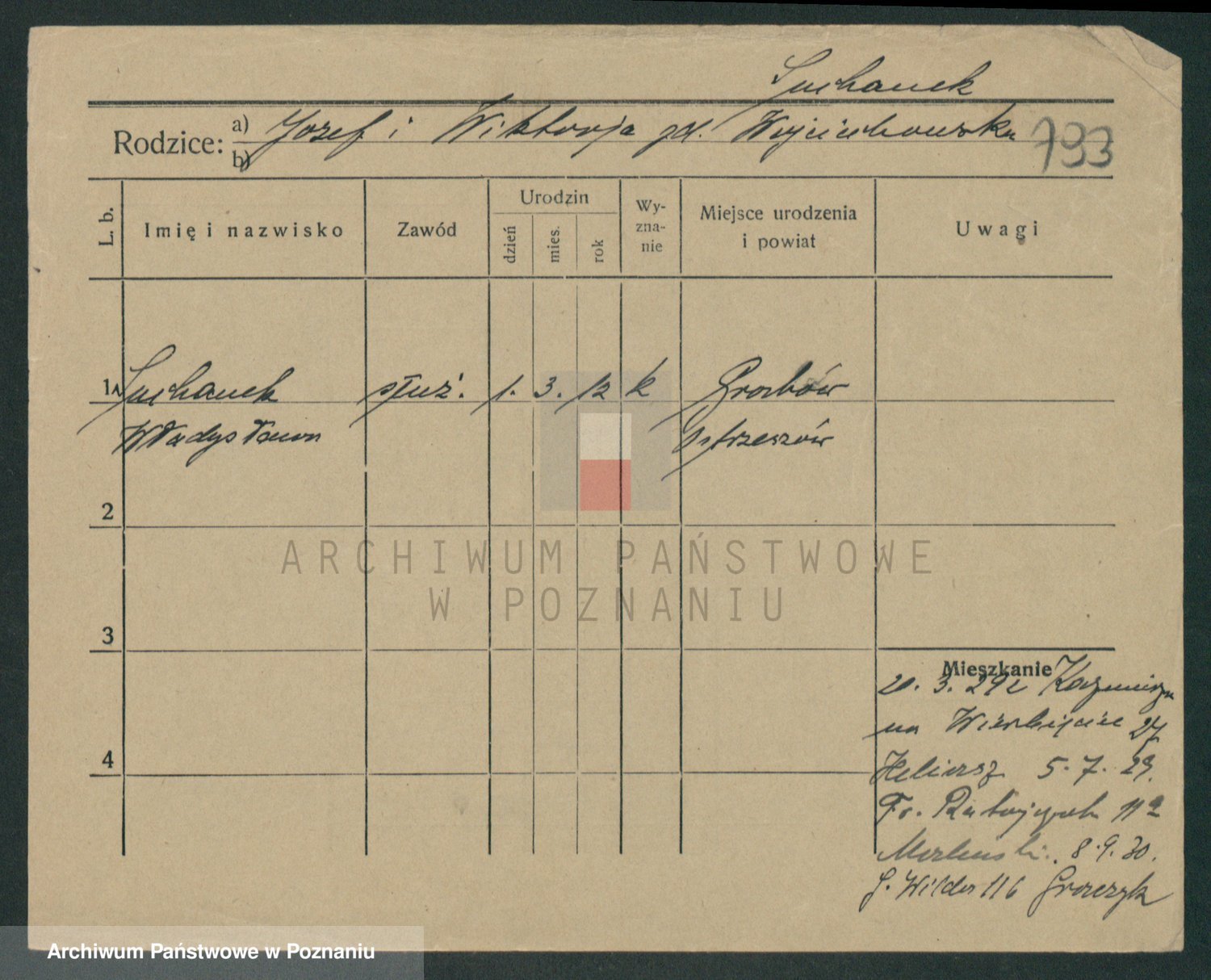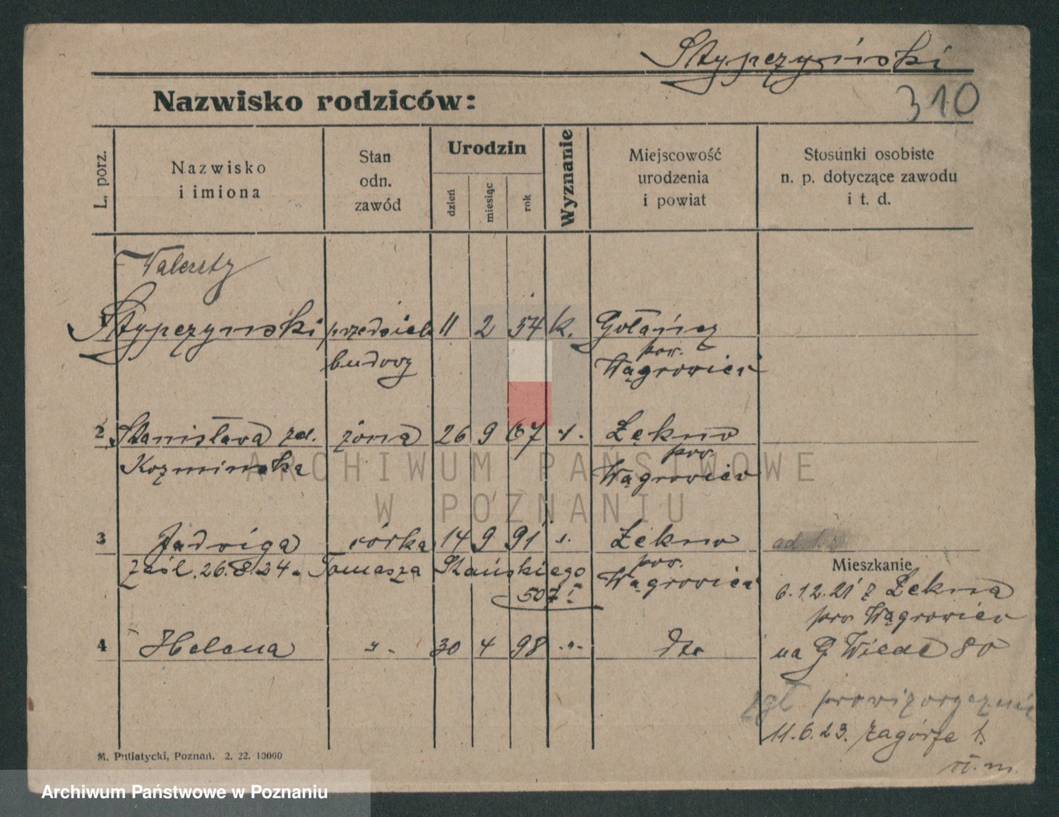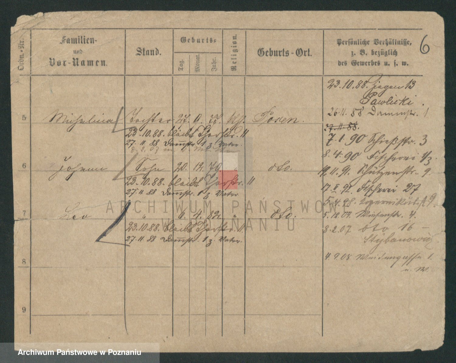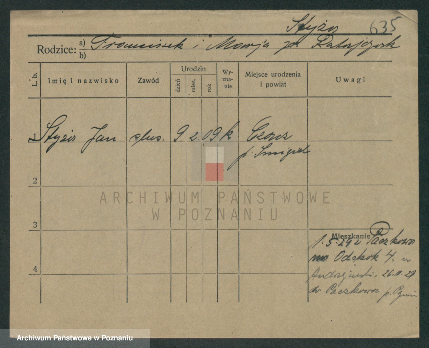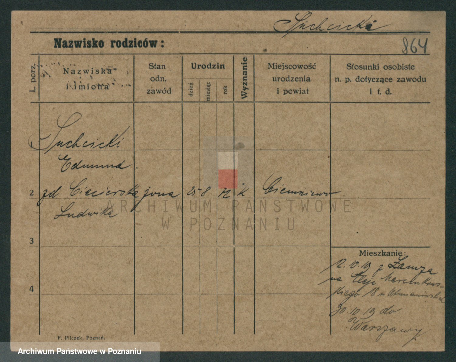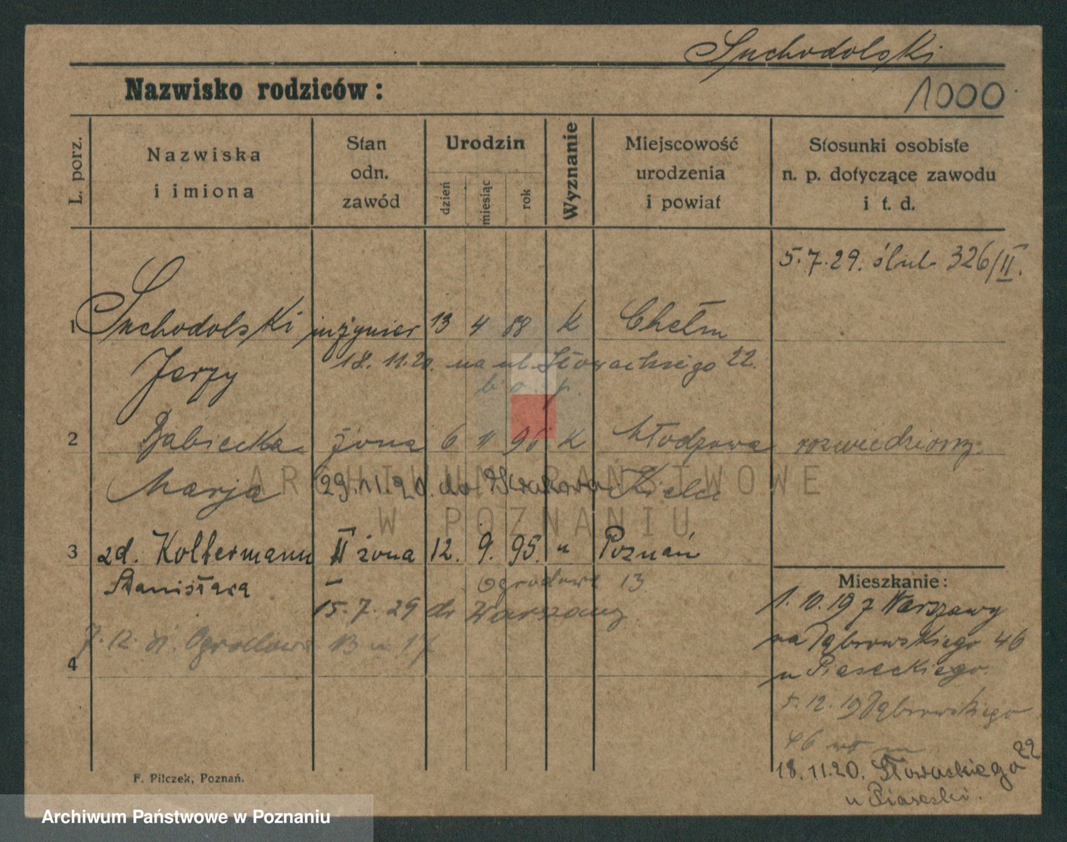 Podgląd karty osobowej dostępny jest po kliknięciu na nazwisko lub ikonkę karty. Można dokonywać powiększenia (ikony na górze) lub przechodzić między kolejnymi skanami (strzałki po bokach).