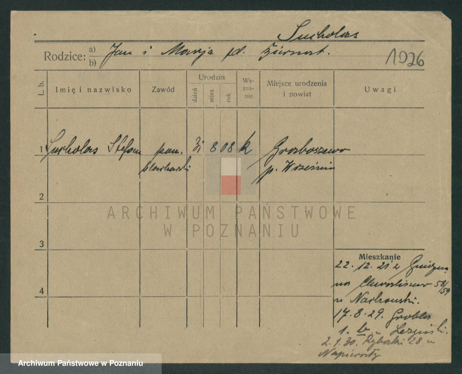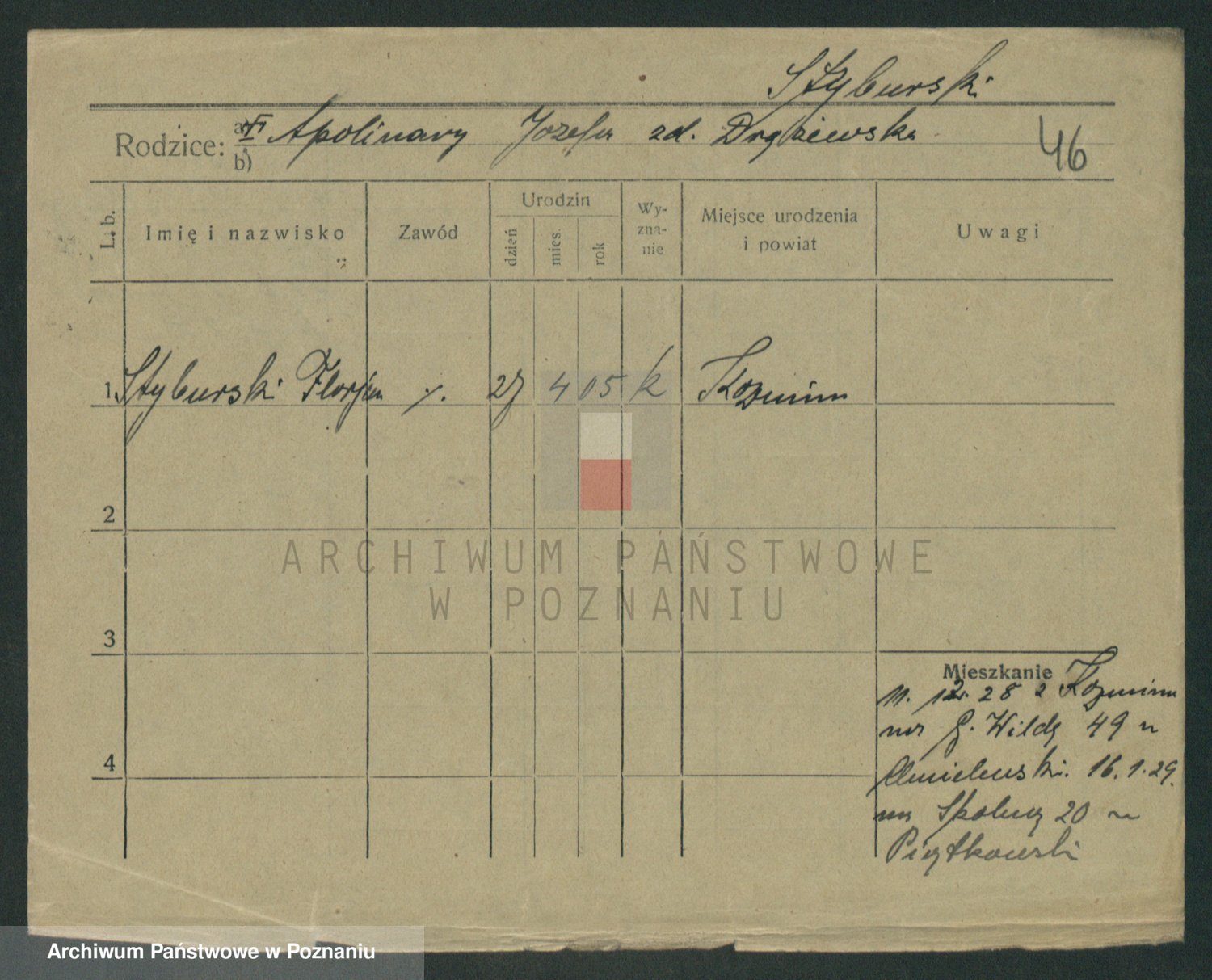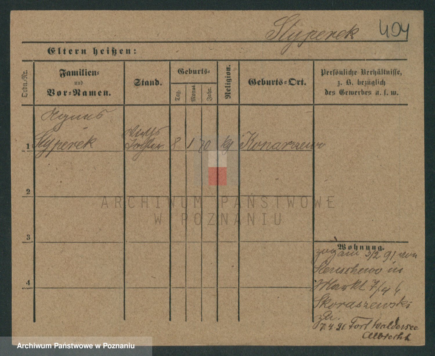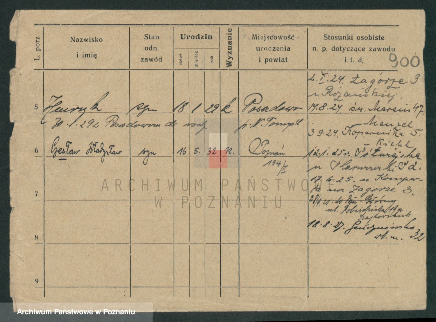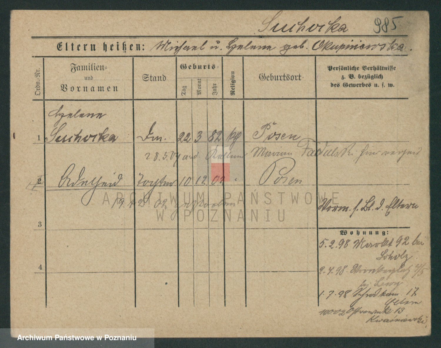 Podgląd karty osobowej dostępny jest po kliknięciu na nazwisko lub ikonkę karty. Można dokonywać powiększenia (ikony na górze) lub przechodzić między kolejnymi skanami (strzałki po bokach).