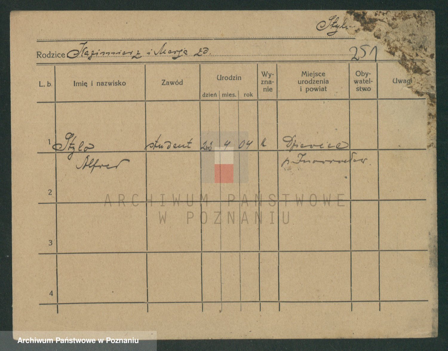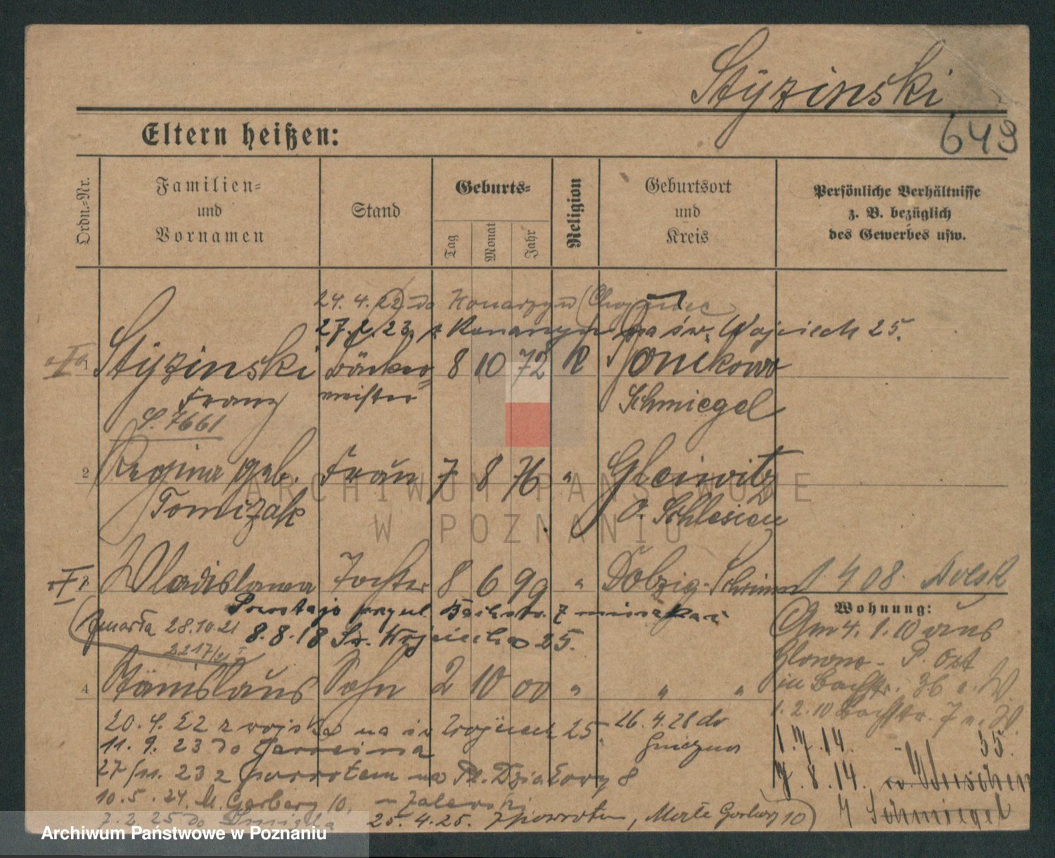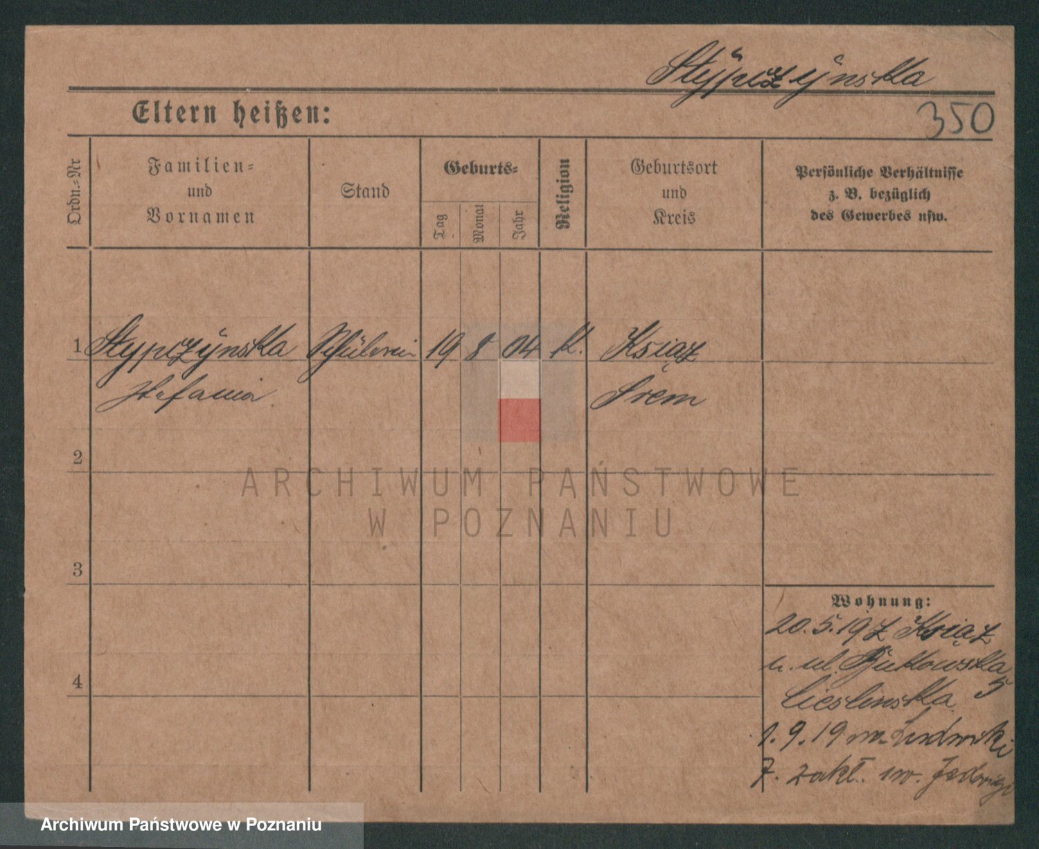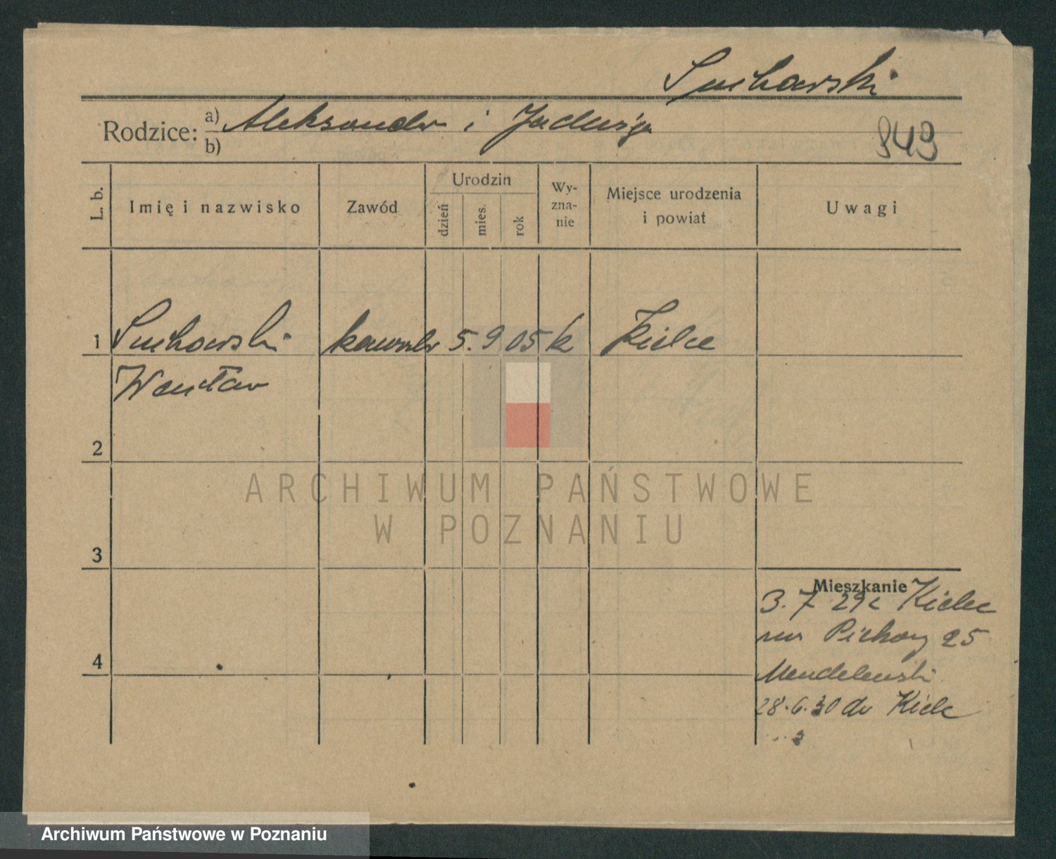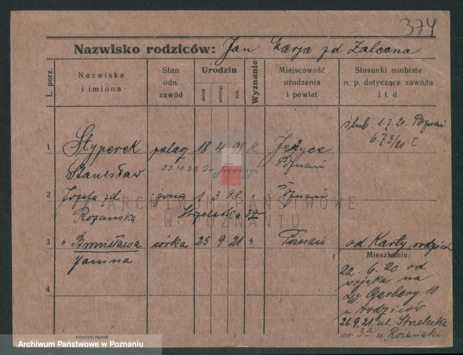Podgląd karty osobowej dostępny jest po kliknięciu na nazwisko lub ikonkę karty. Można dokonywać powiększenia (ikony na górze) lub przechodzić między kolejnymi skanami (strzałki po bokach).