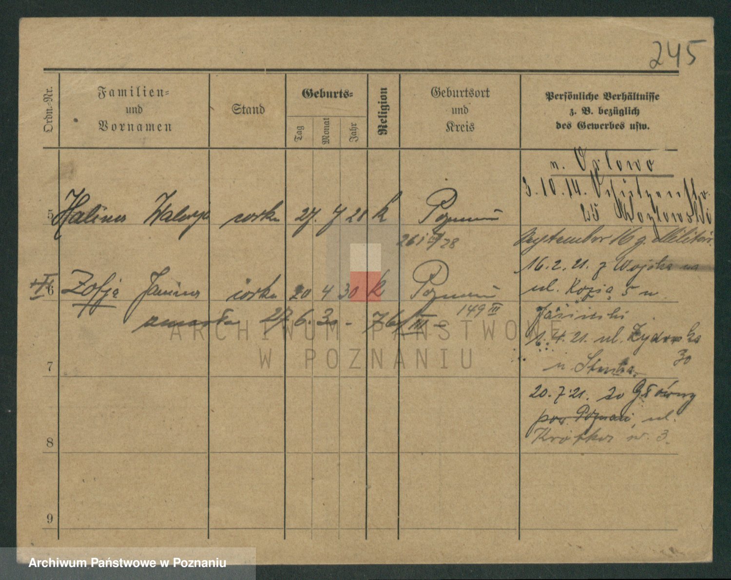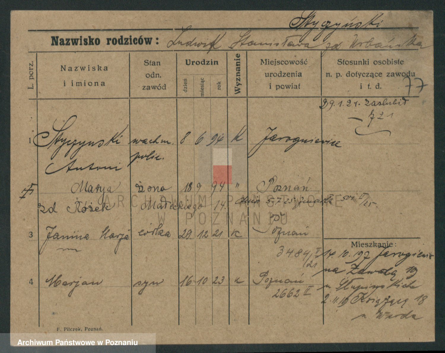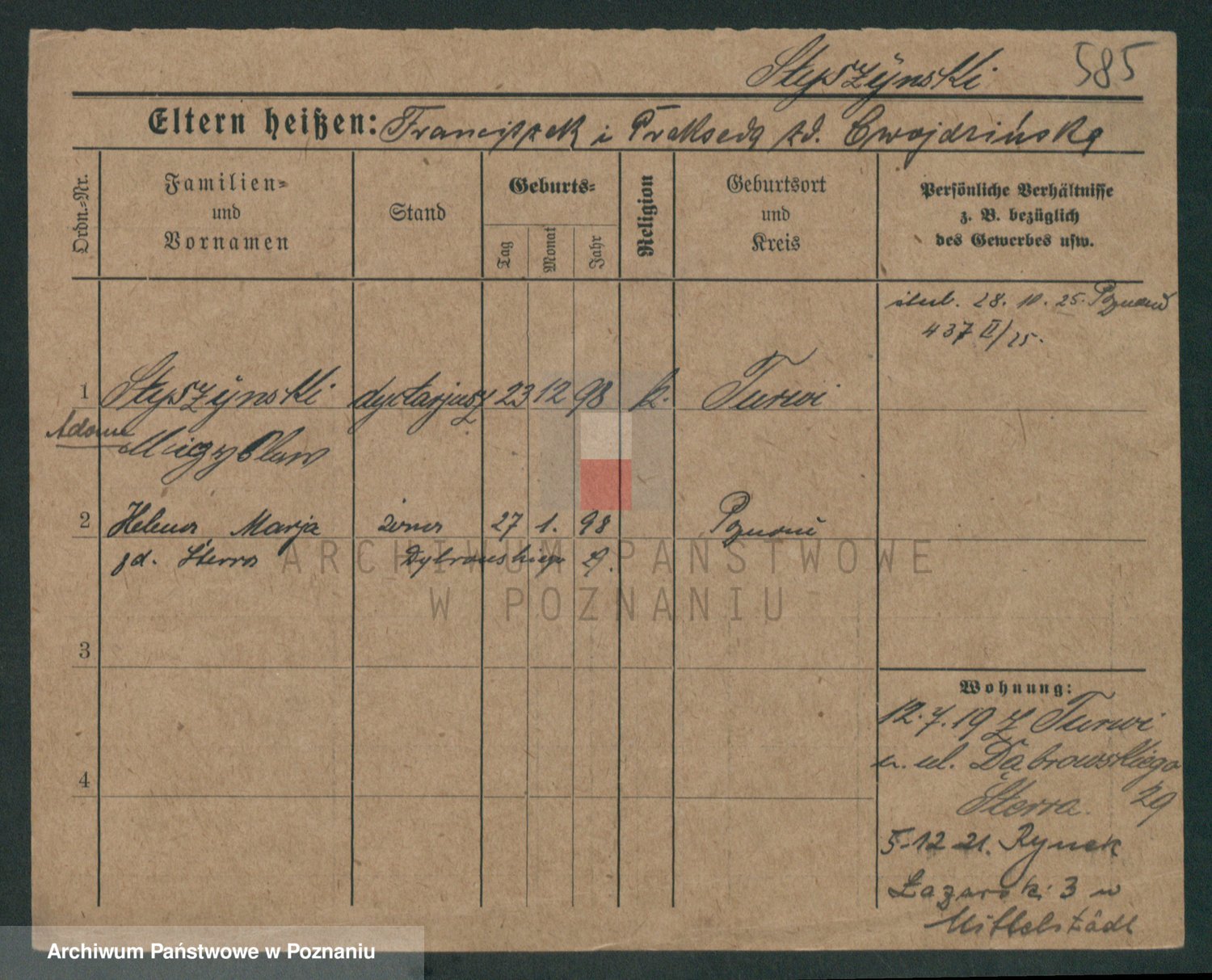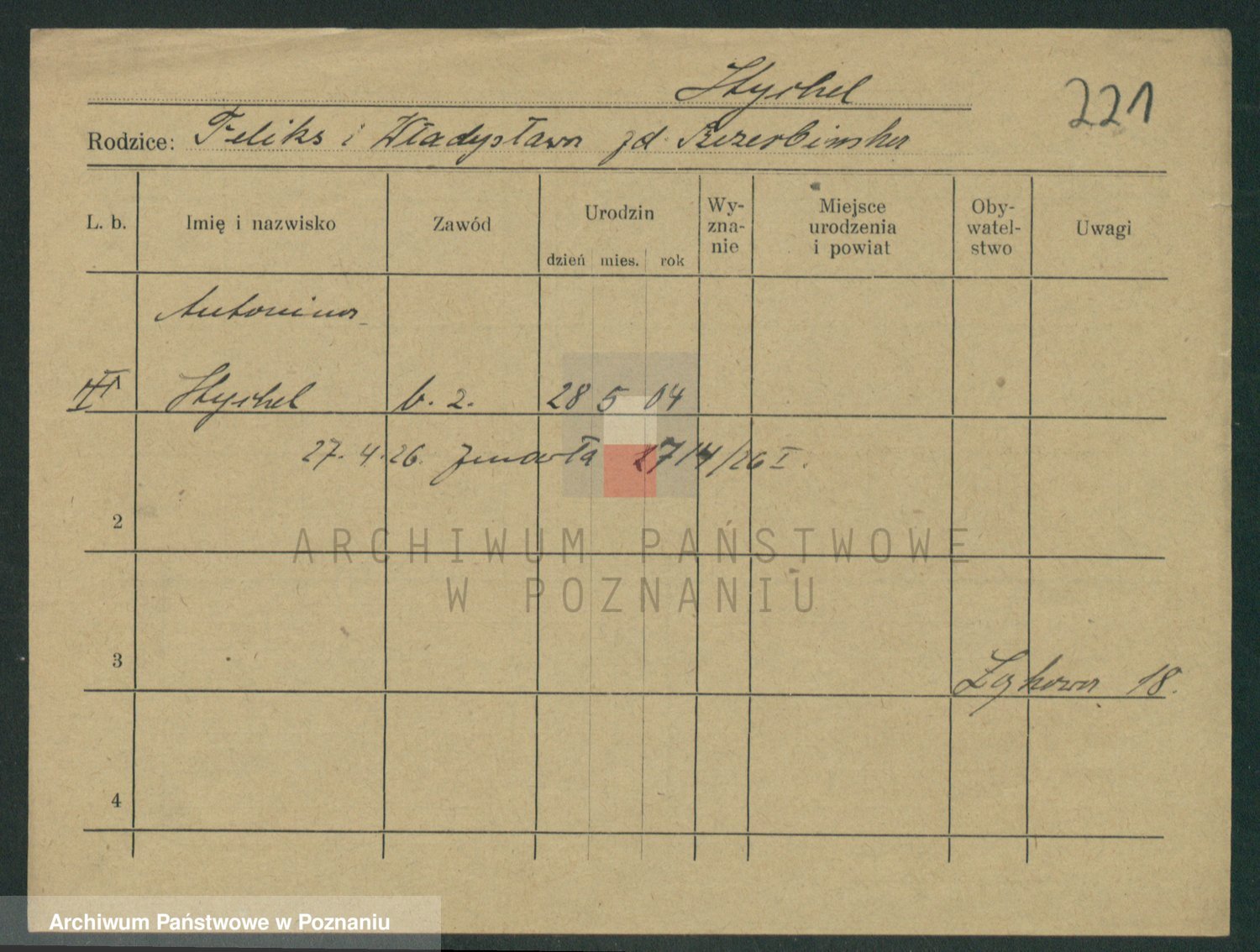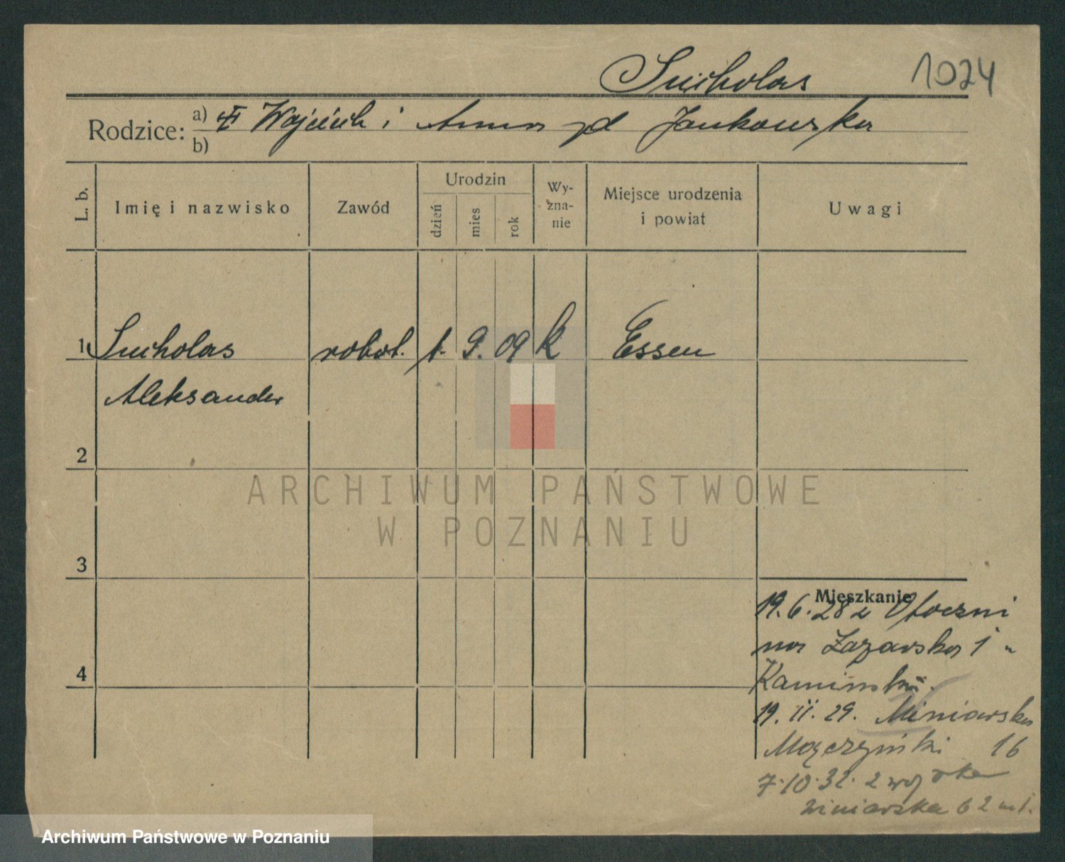 Podgląd karty osobowej dostępny jest po kliknięciu na nazwisko lub ikonkę karty. Można dokonywać powiększenia (ikony na górze) lub przechodzić między kolejnymi skanami (strzałki po bokach).