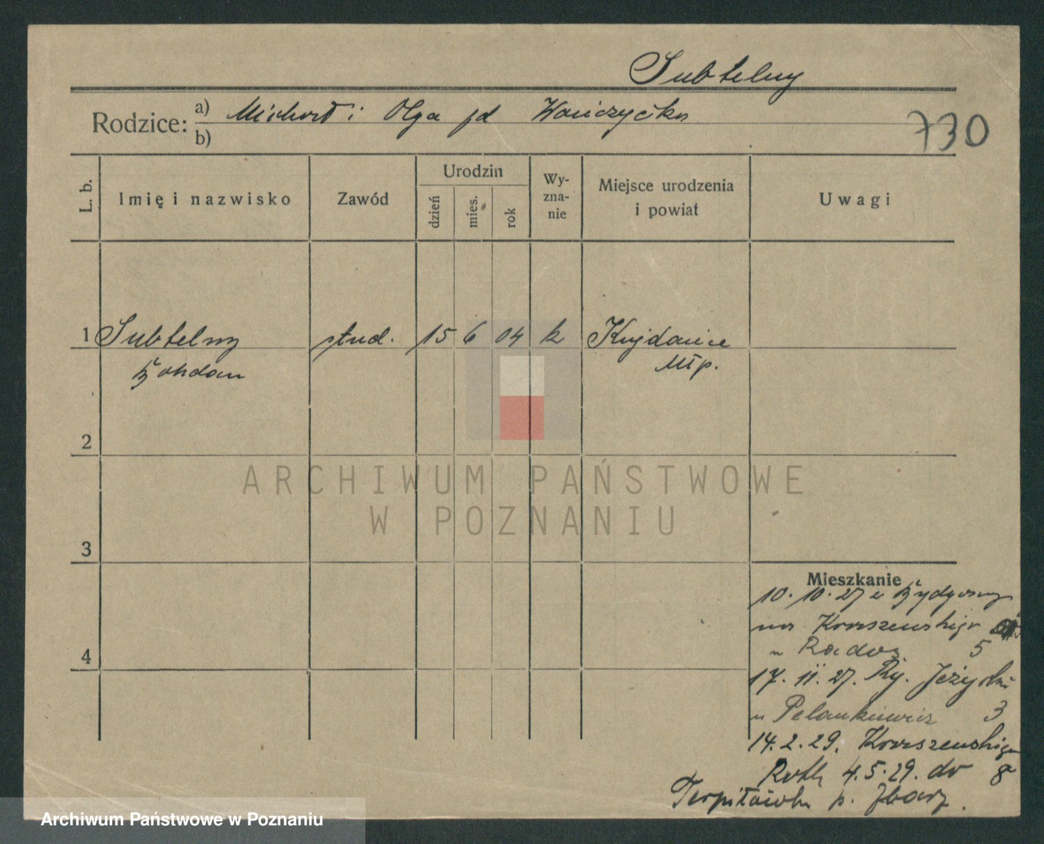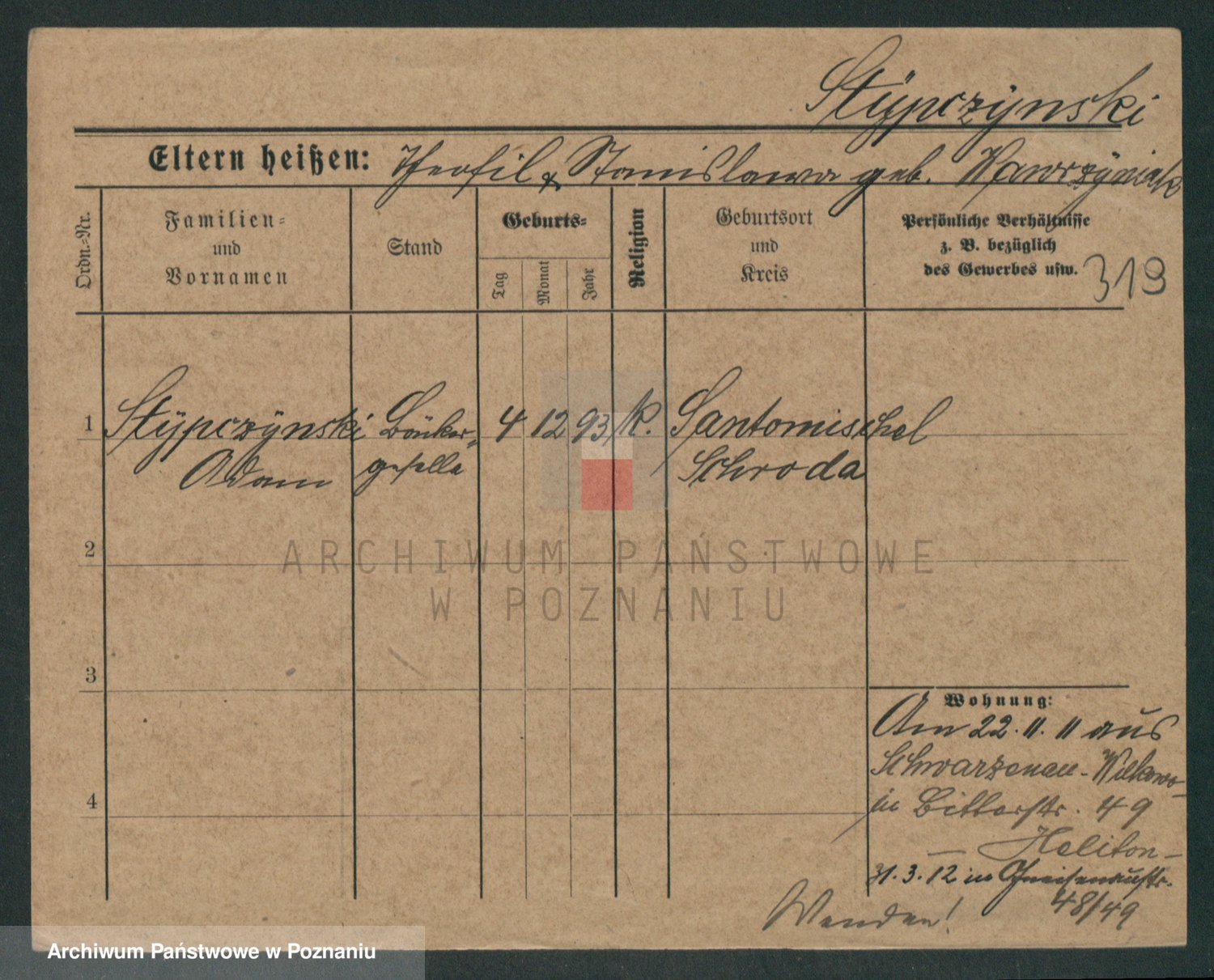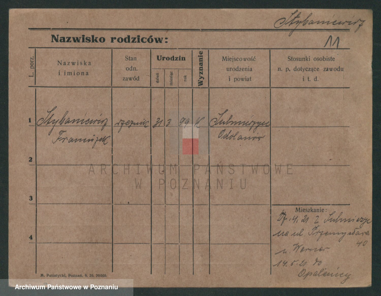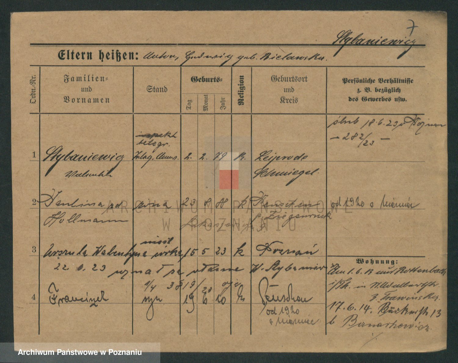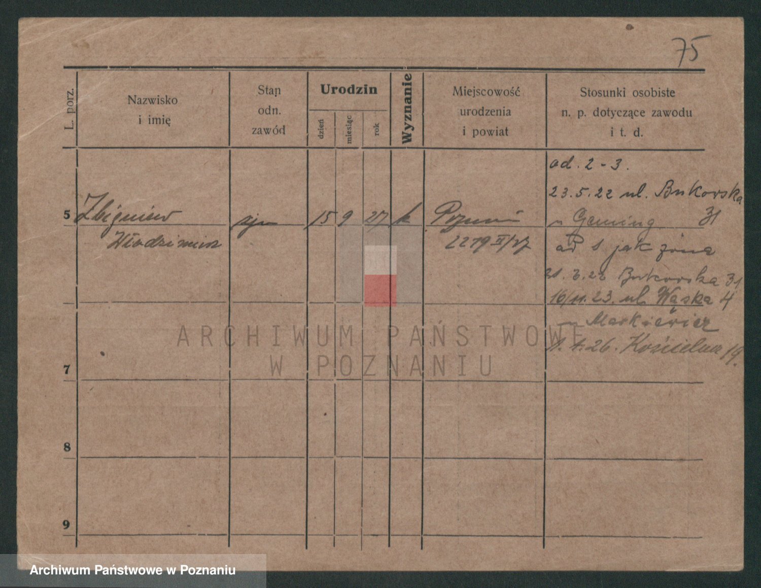 Podgląd karty osobowej dostępny jest po kliknięciu na nazwisko lub ikonkę karty. Można dokonywać powiększenia (ikony na górze) lub przechodzić między kolejnymi skanami (strzałki po bokach).