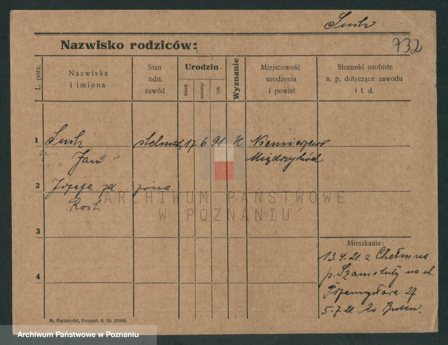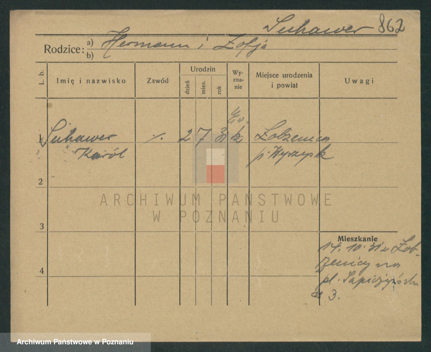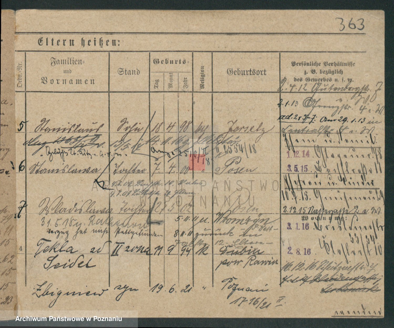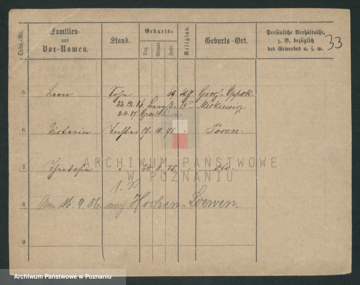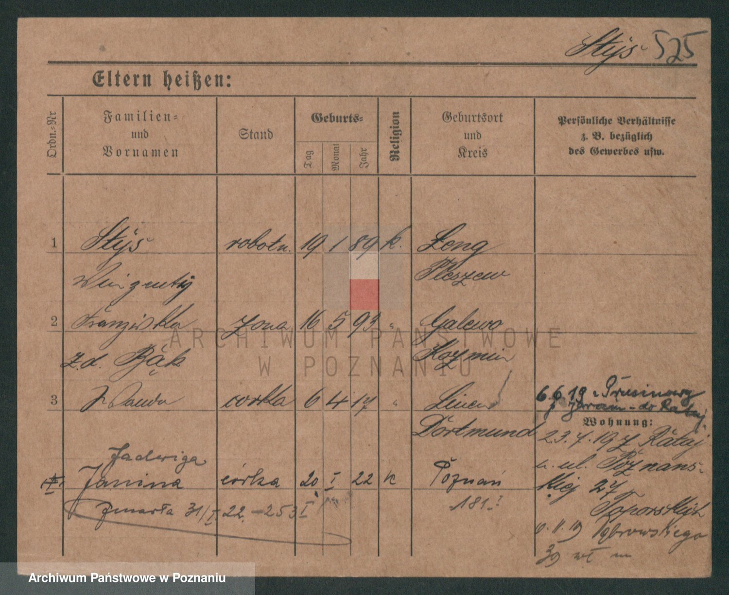 Podgląd karty osobowej dostępny jest po kliknięciu na nazwisko lub ikonkę karty. Można dokonywać powiększenia (ikony na górze) lub przechodzić między kolejnymi skanami (strzałki po bokach).