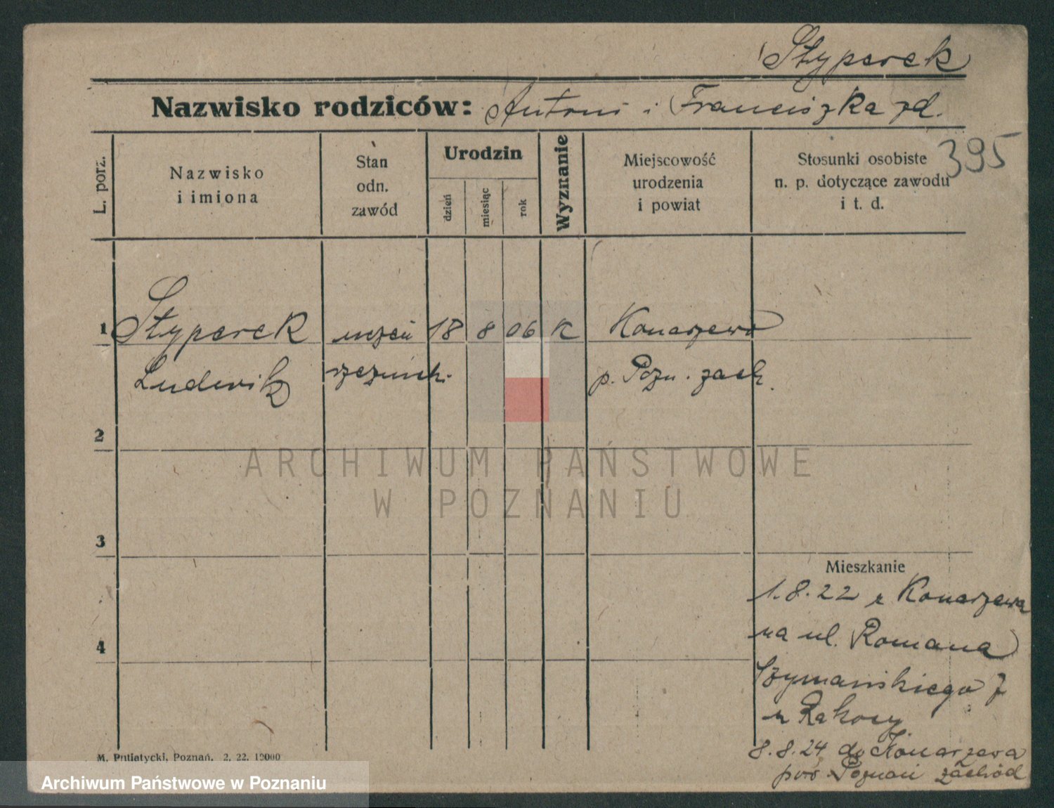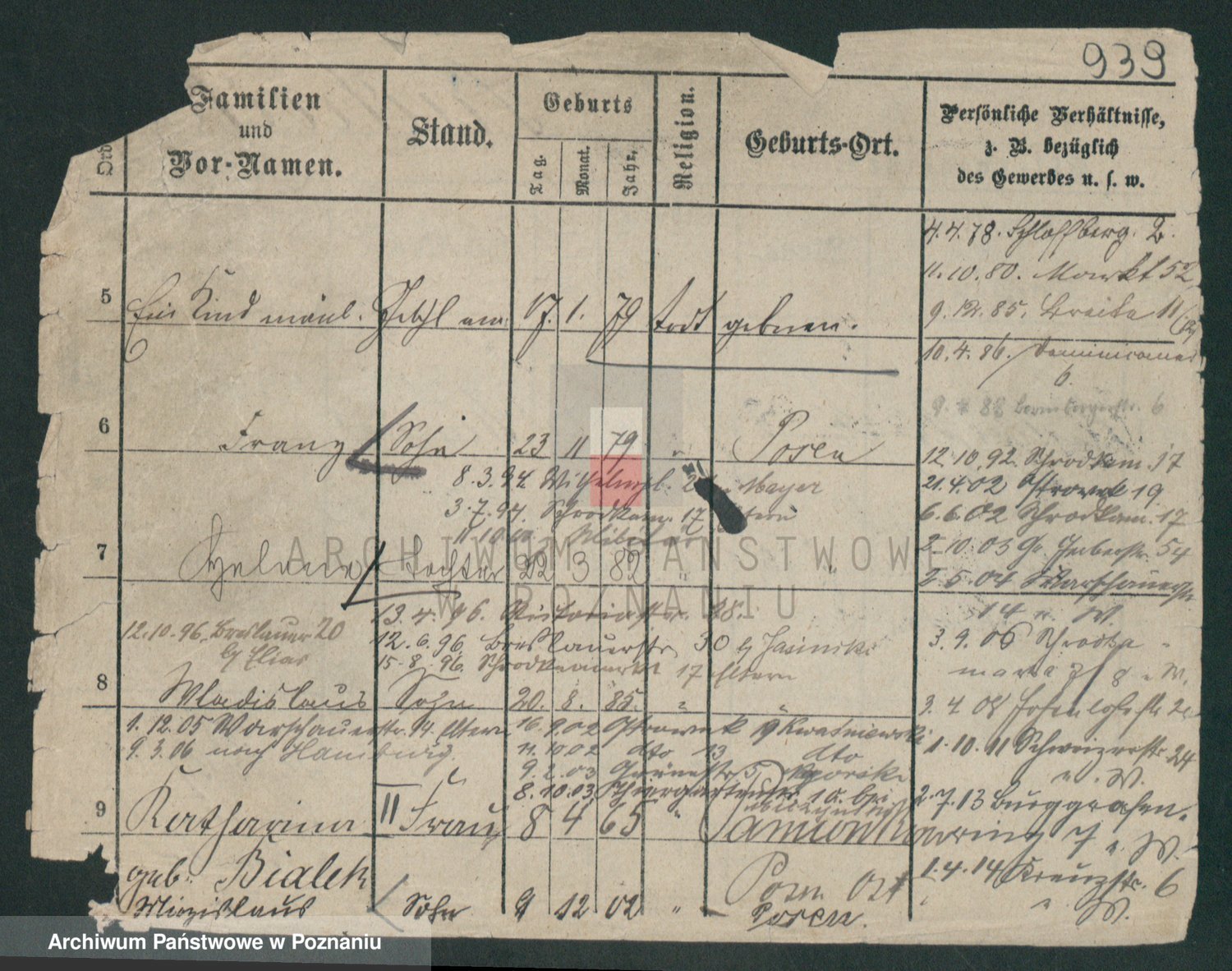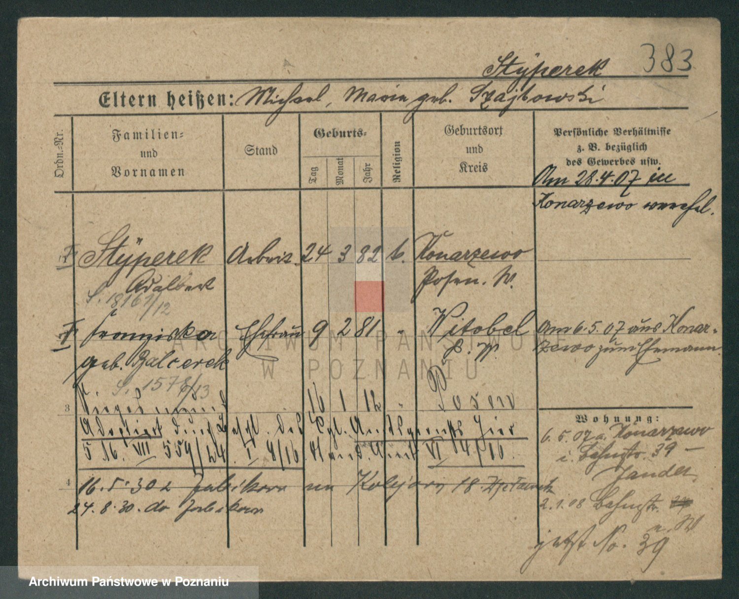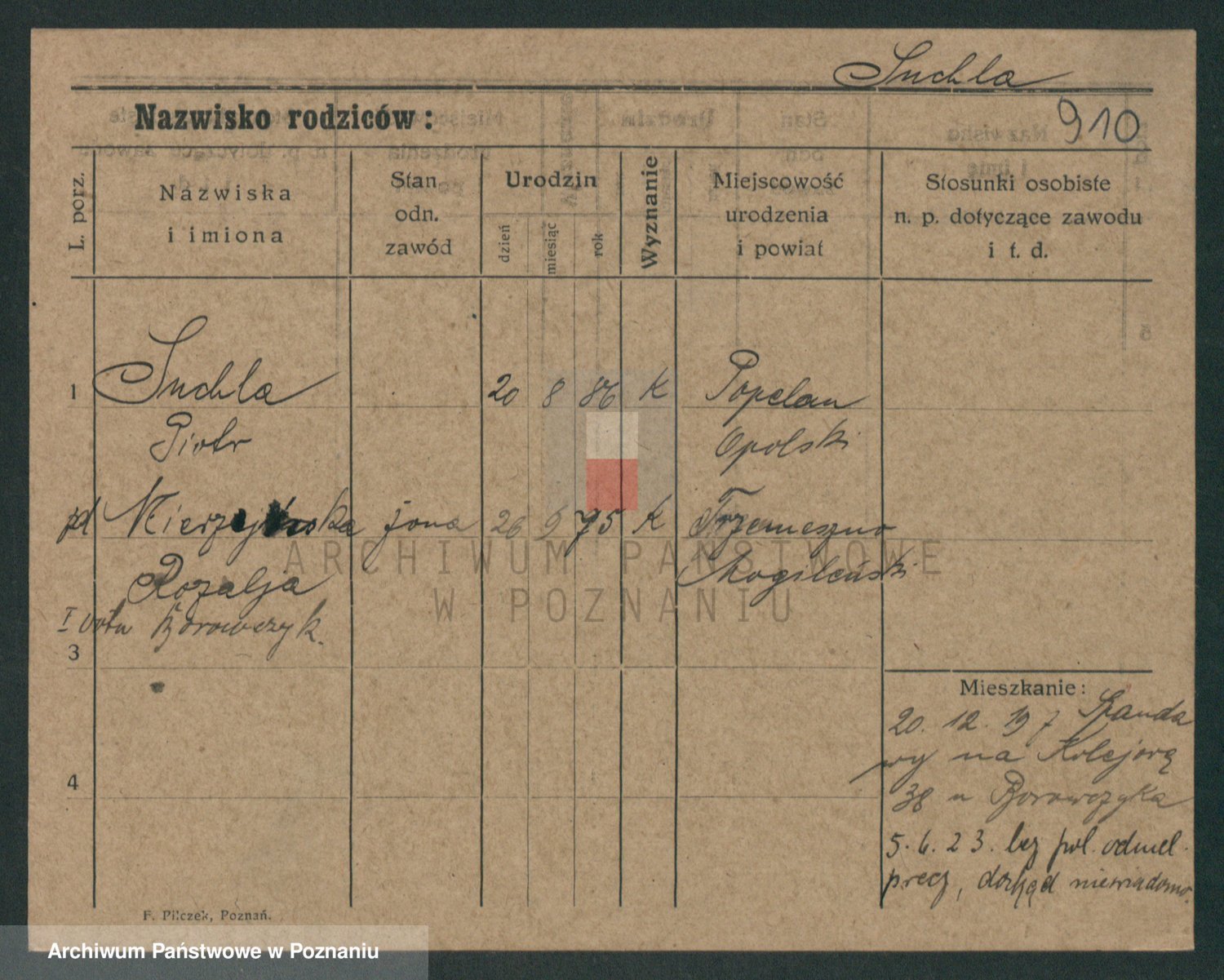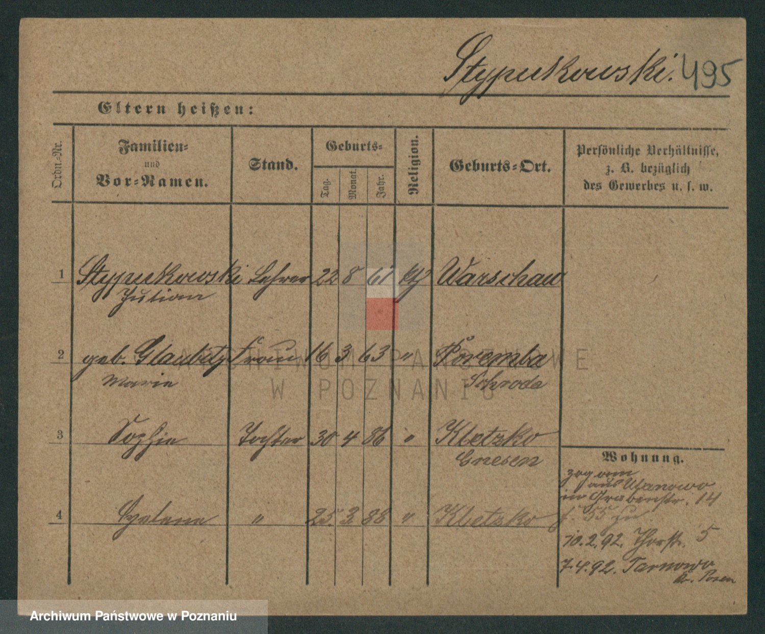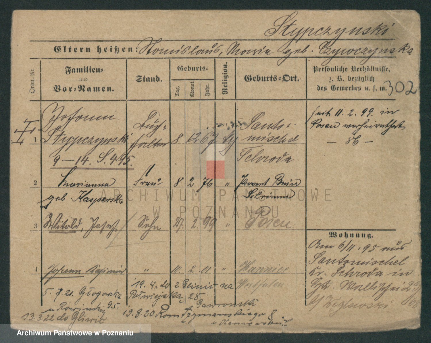 Podgląd karty osobowej dostępny jest po kliknięciu na nazwisko lub ikonkę karty. Można dokonywać powiększenia (ikony na górze) lub przechodzić między kolejnymi skanami (strzałki po bokach).