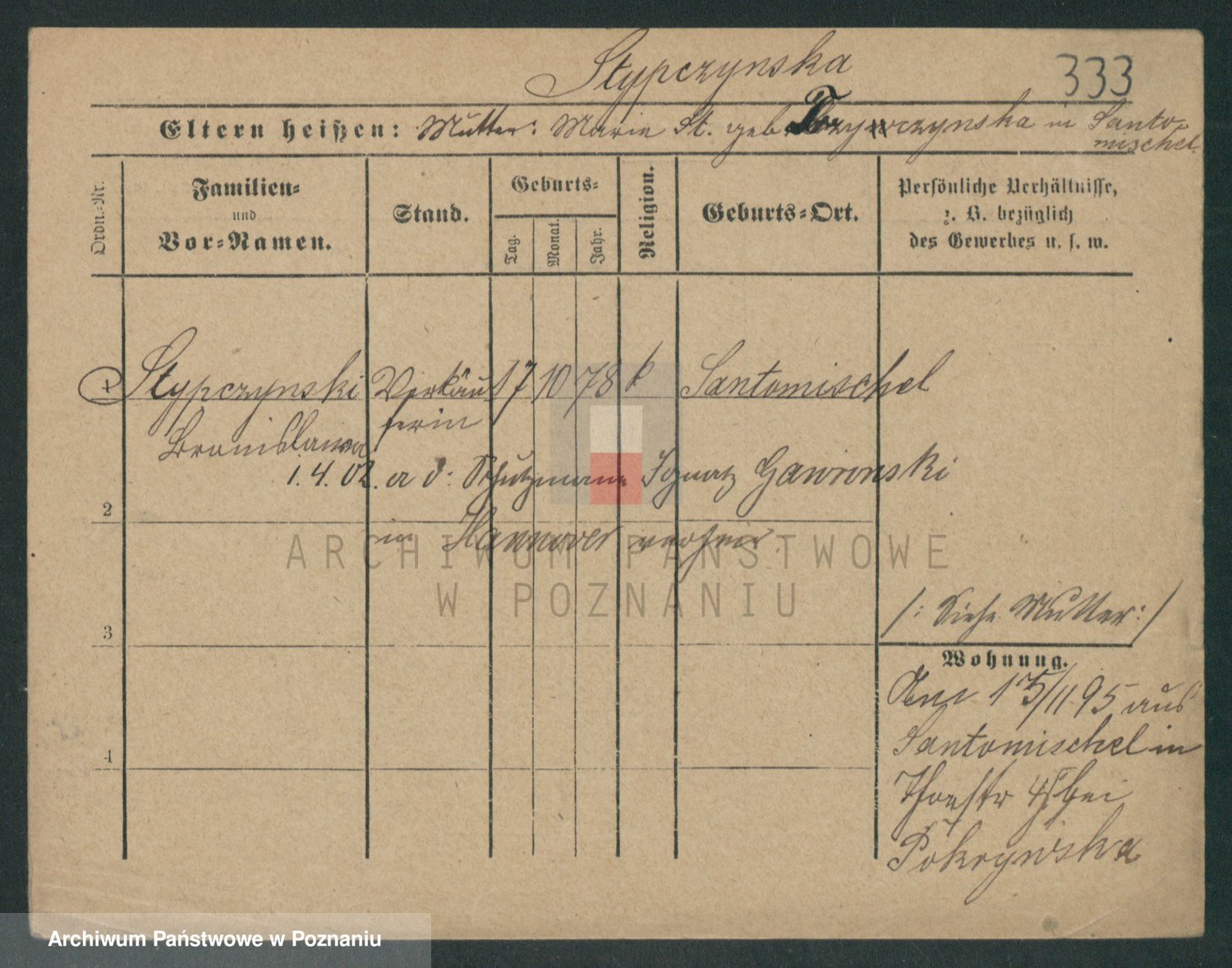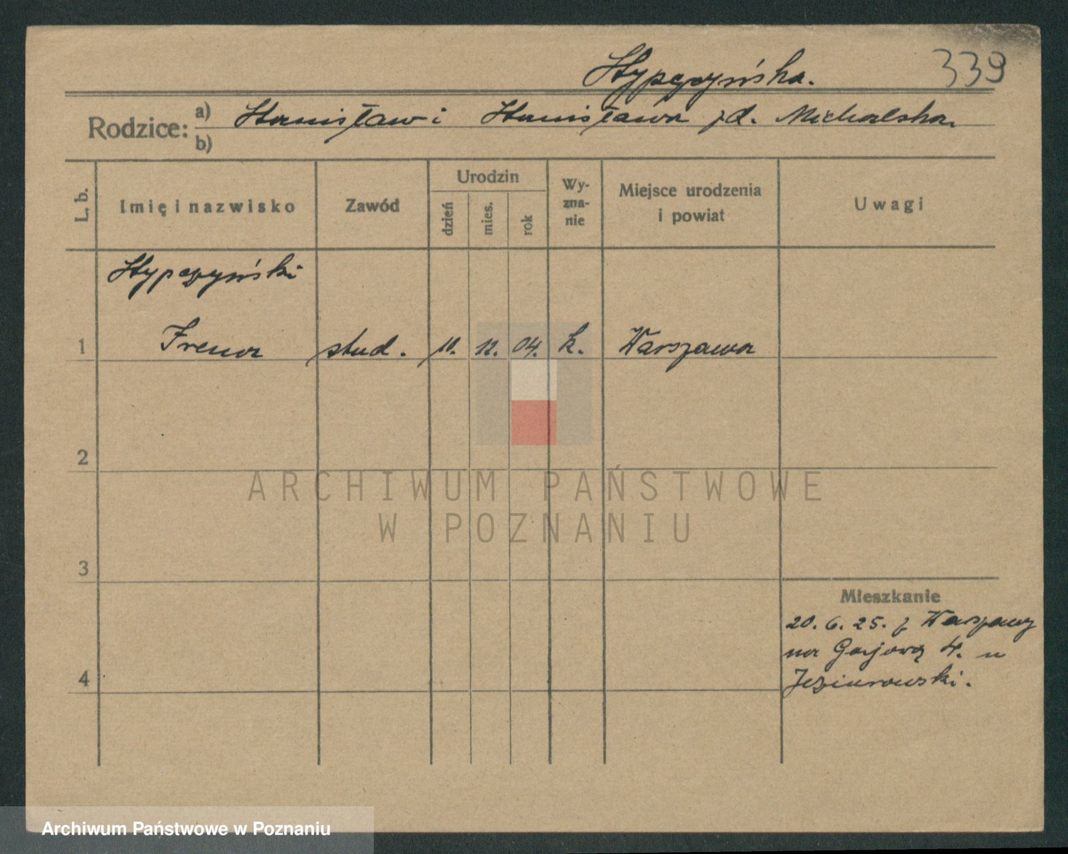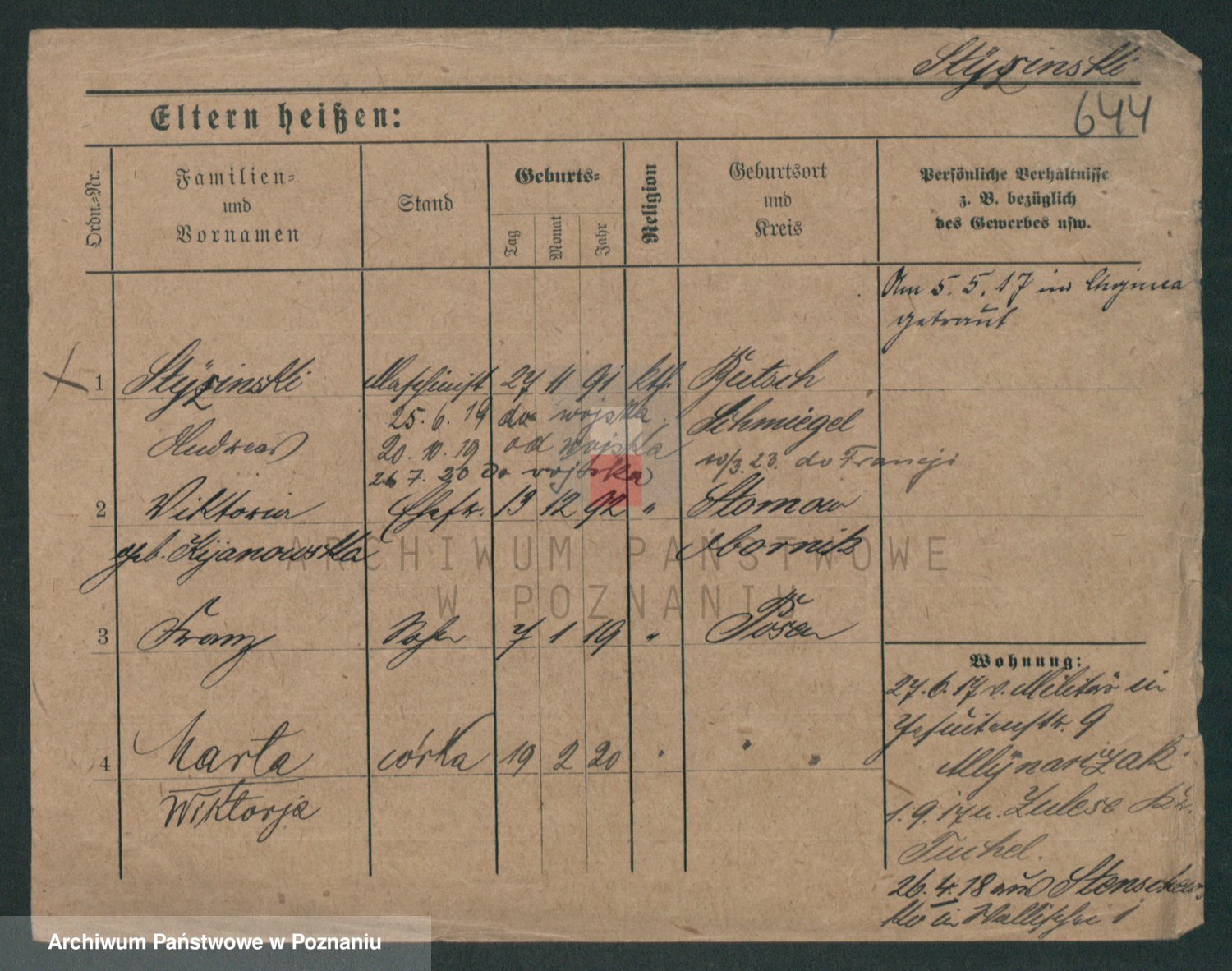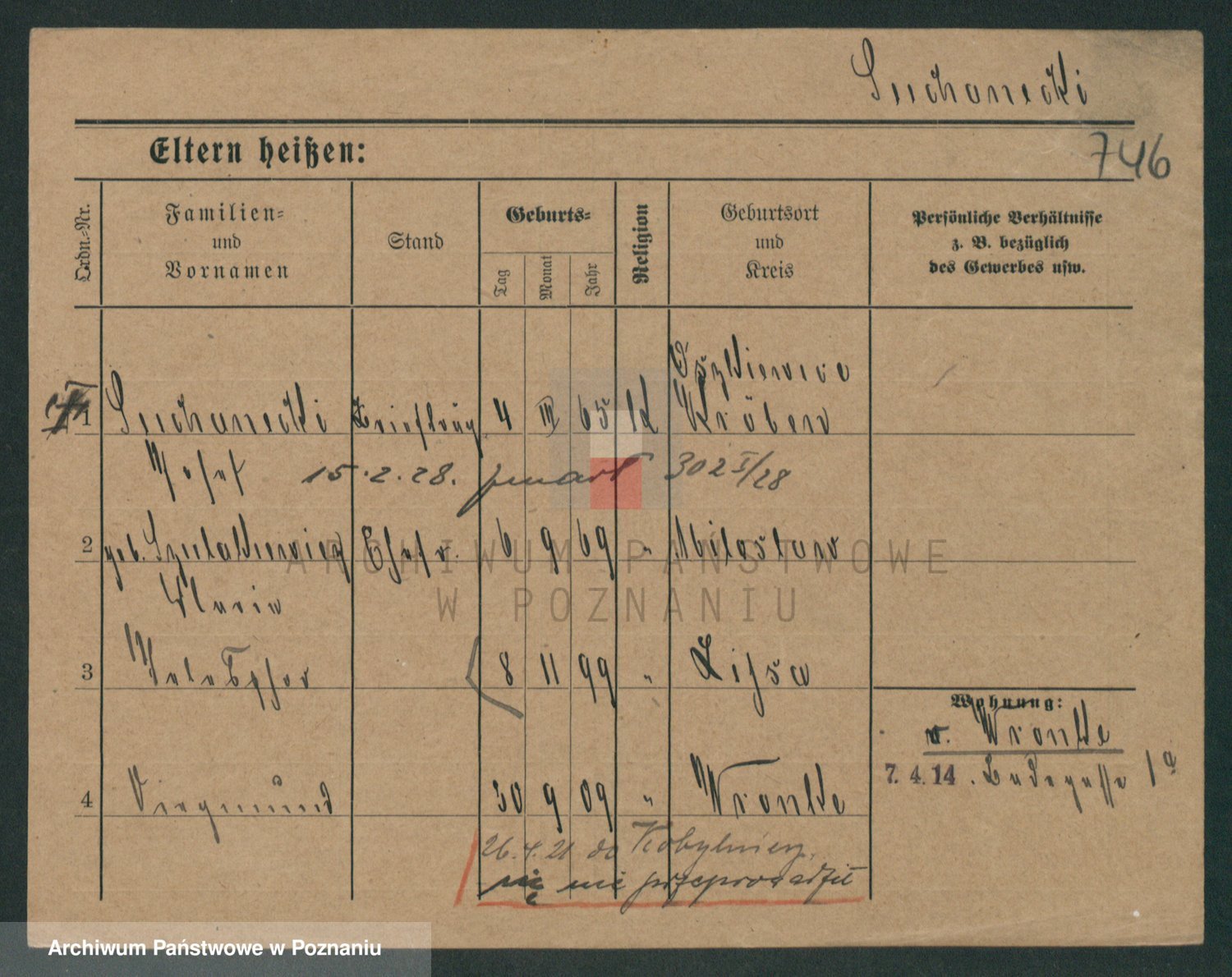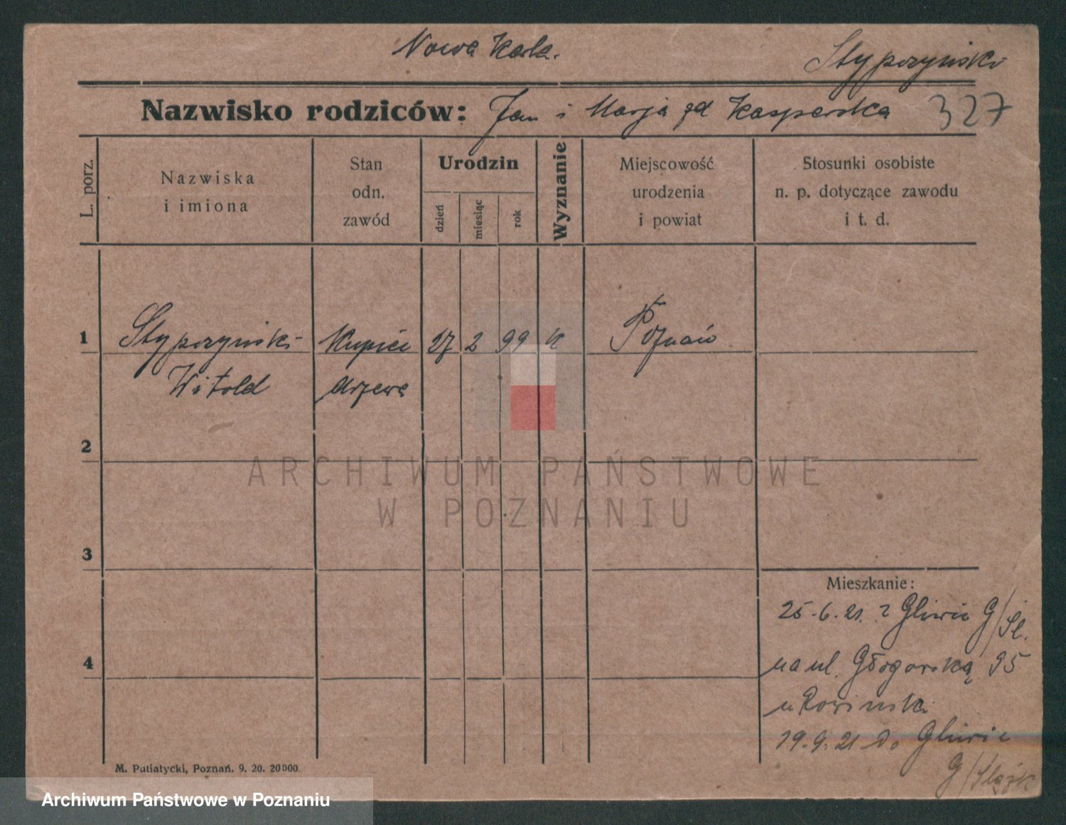 Podgląd karty osobowej dostępny jest po kliknięciu na nazwisko lub ikonkę karty. Można dokonywać powiększenia (ikony na górze) lub przechodzić między kolejnymi skanami (strzałki po bokach).