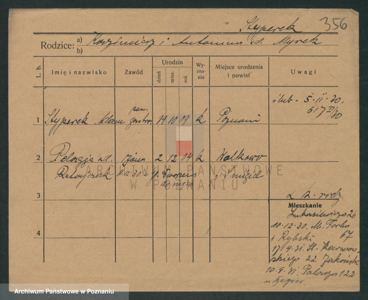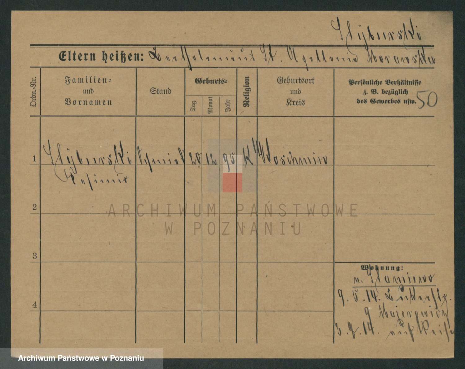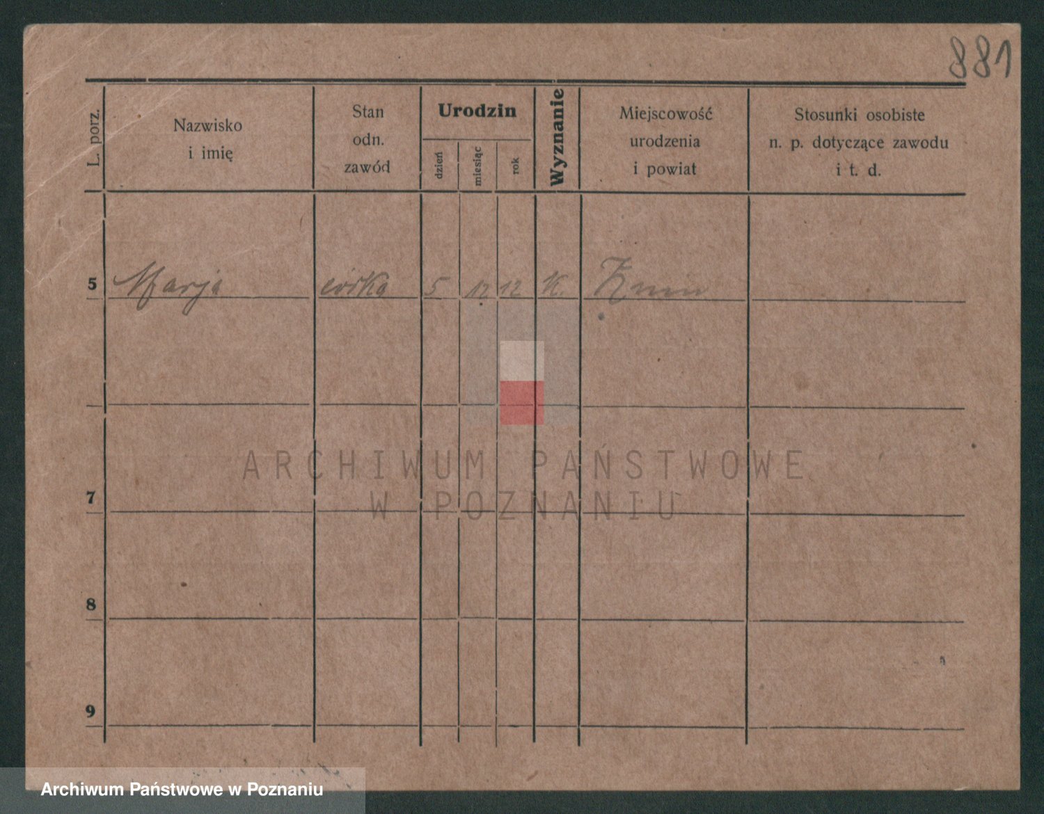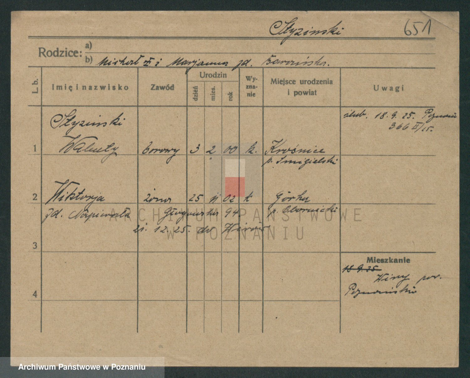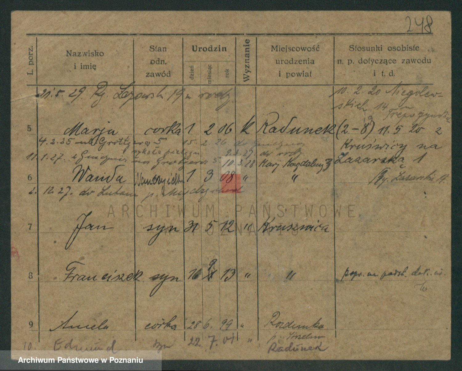 Podgląd karty osobowej dostępny jest po kliknięciu na nazwisko lub ikonkę karty. Można dokonywać powiększenia (ikony na górze) lub przechodzić między kolejnymi skanami (strzałki po bokach).