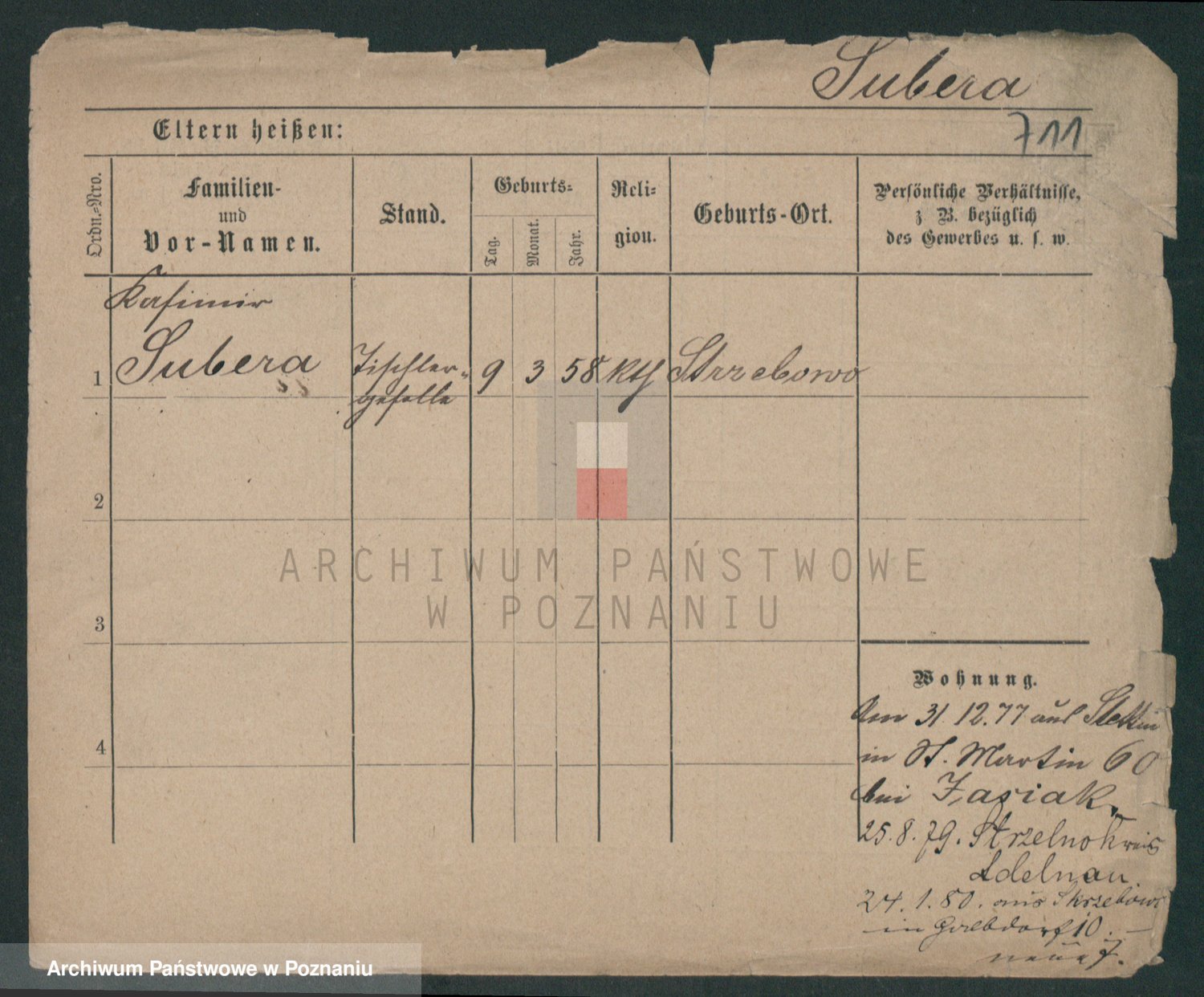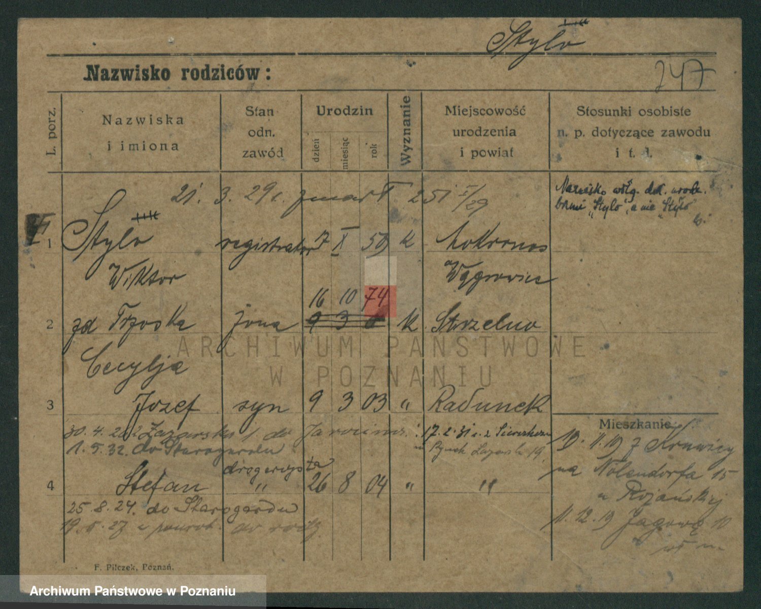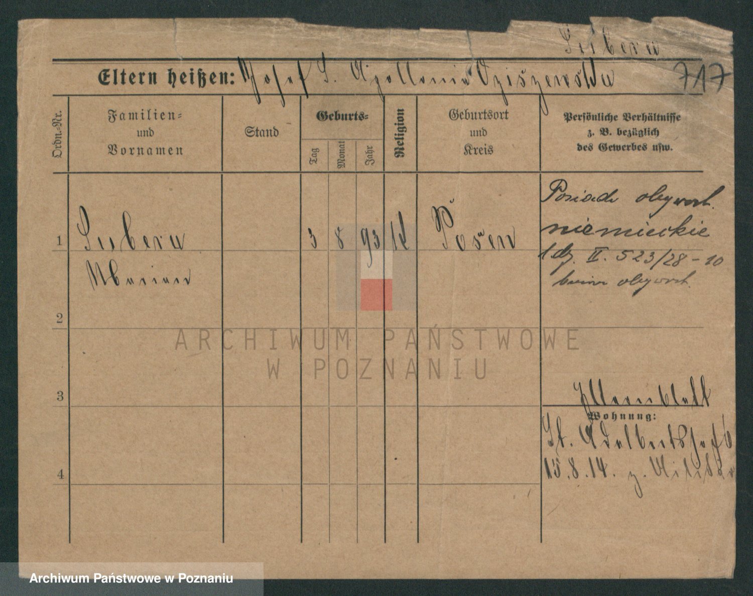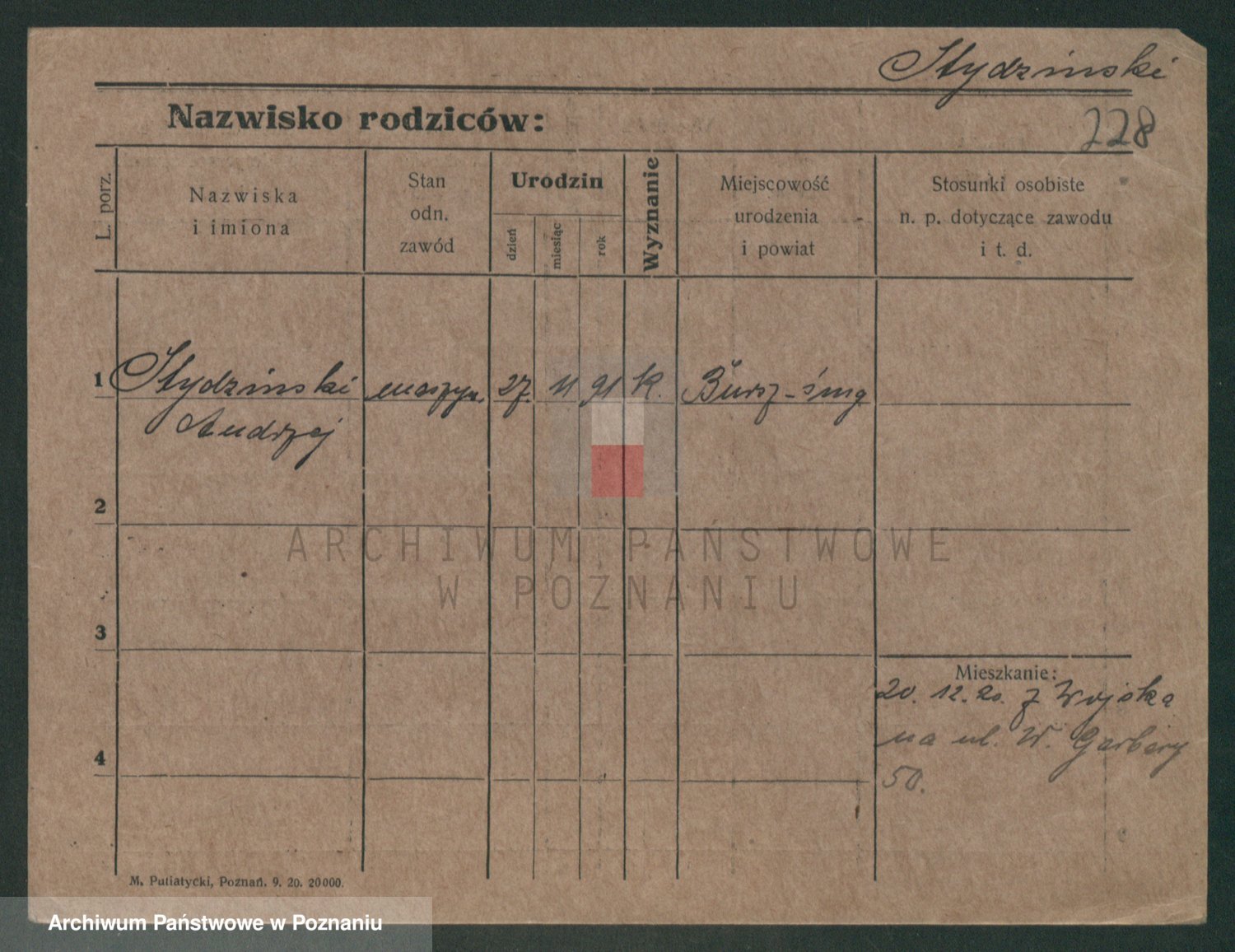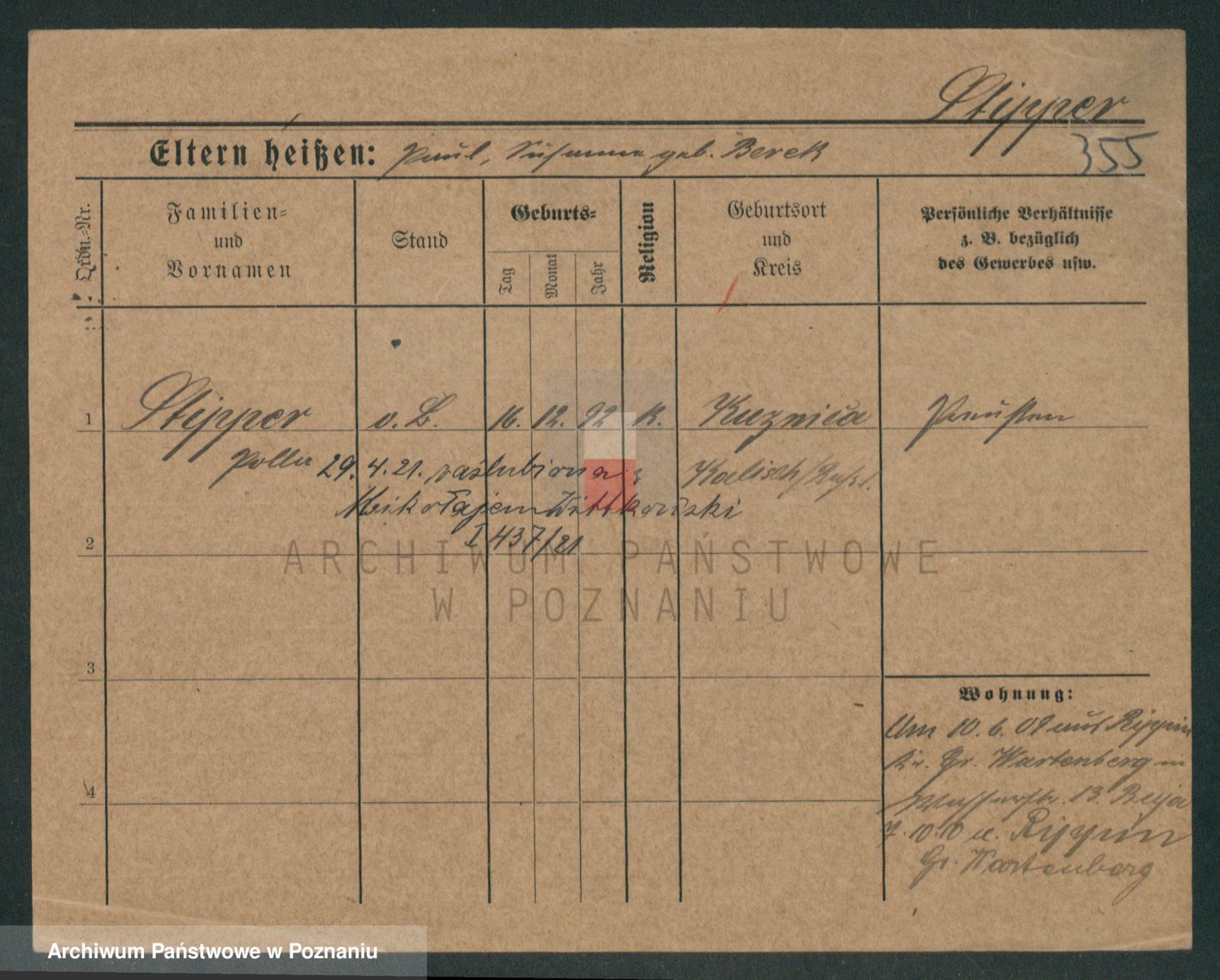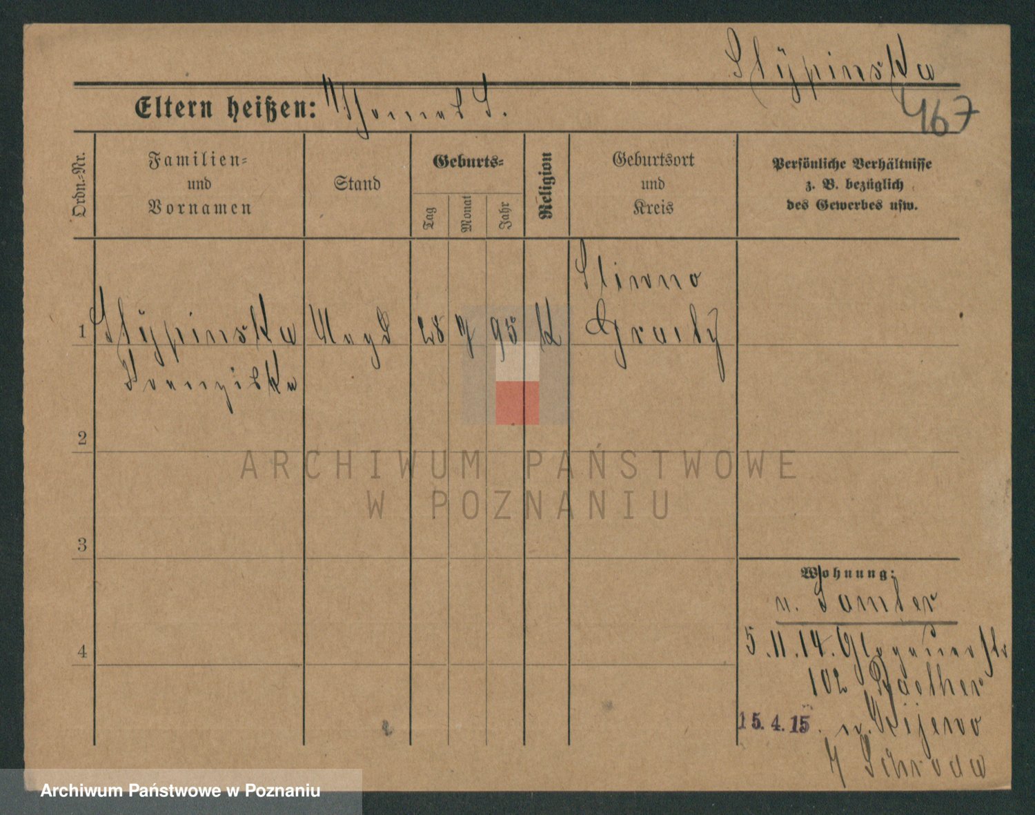 Podgląd karty osobowej dostępny jest po kliknięciu na nazwisko lub ikonkę karty. Można dokonywać powiększenia (ikony na górze) lub przechodzić między kolejnymi skanami (strzałki po bokach).