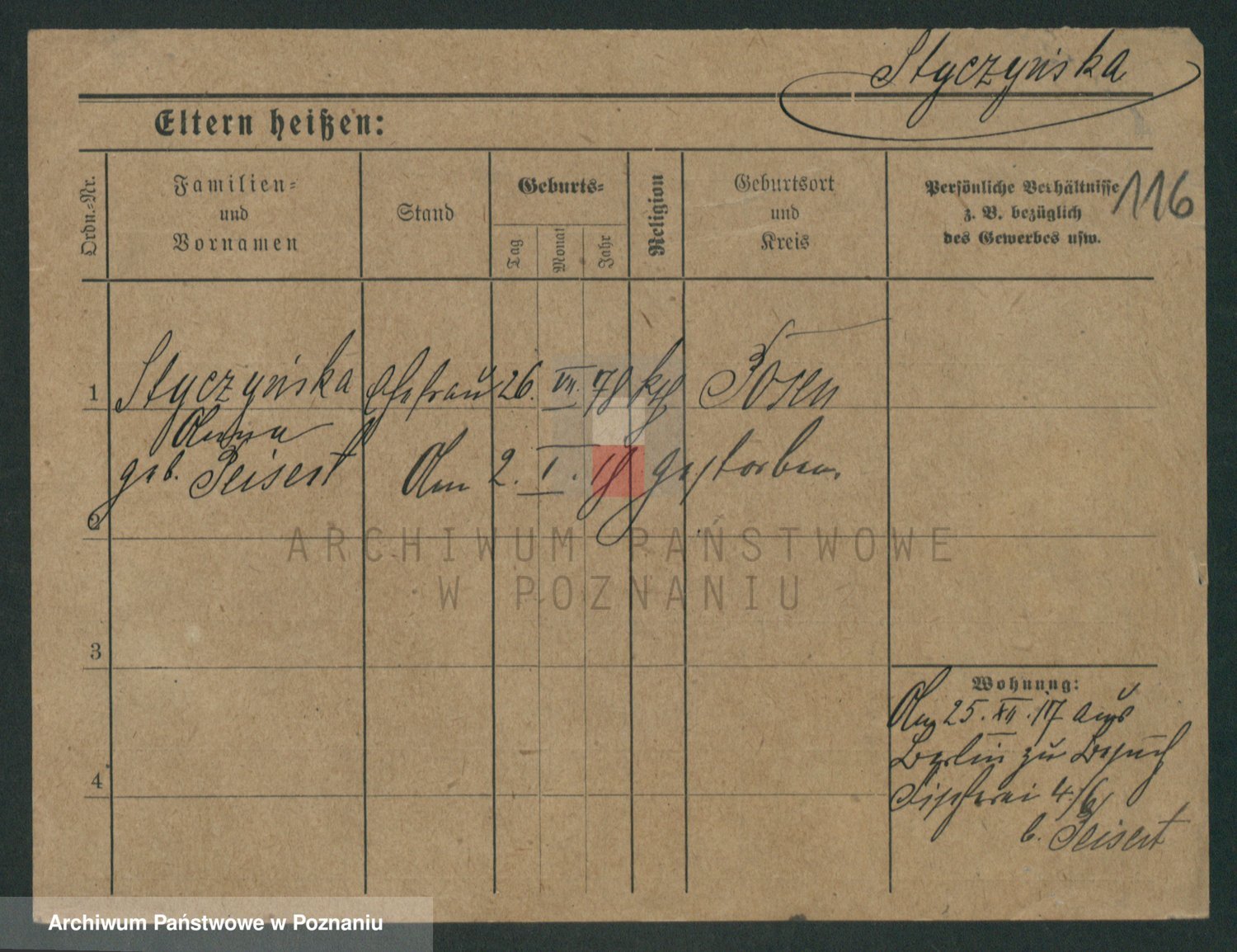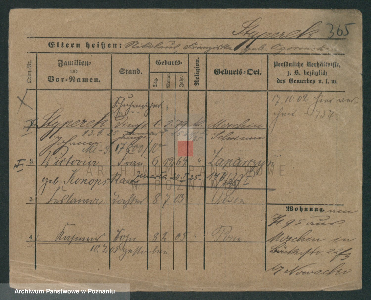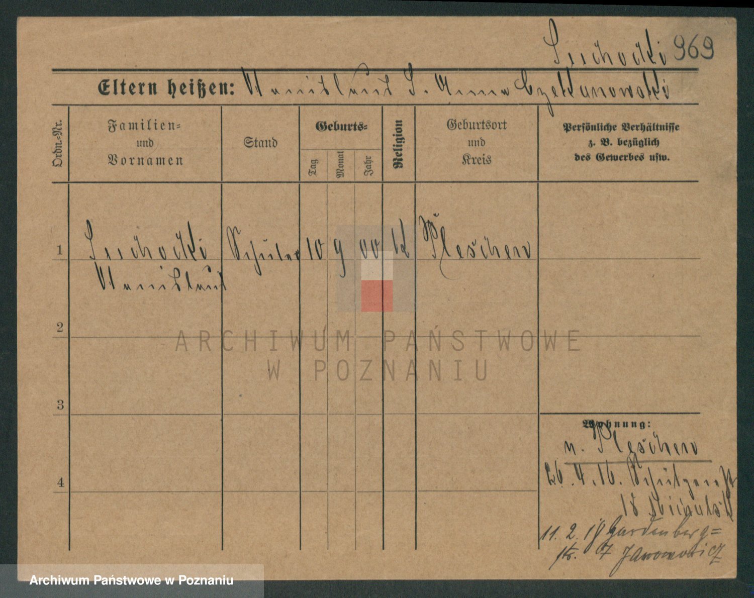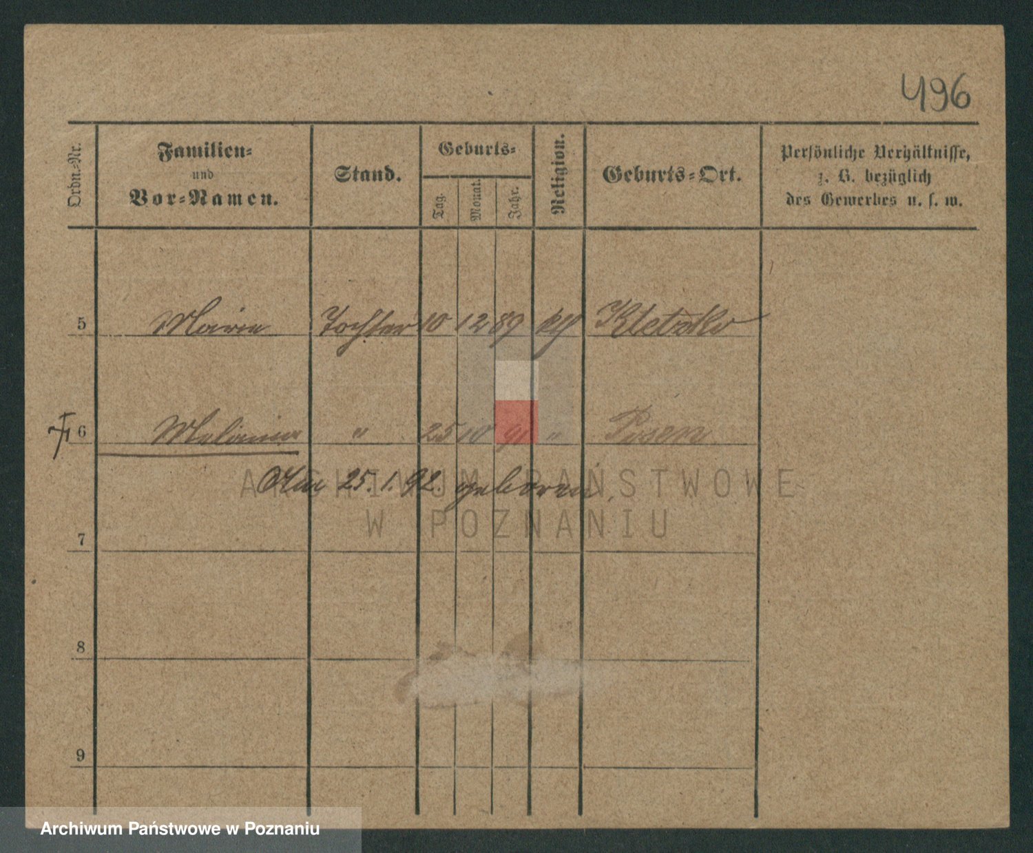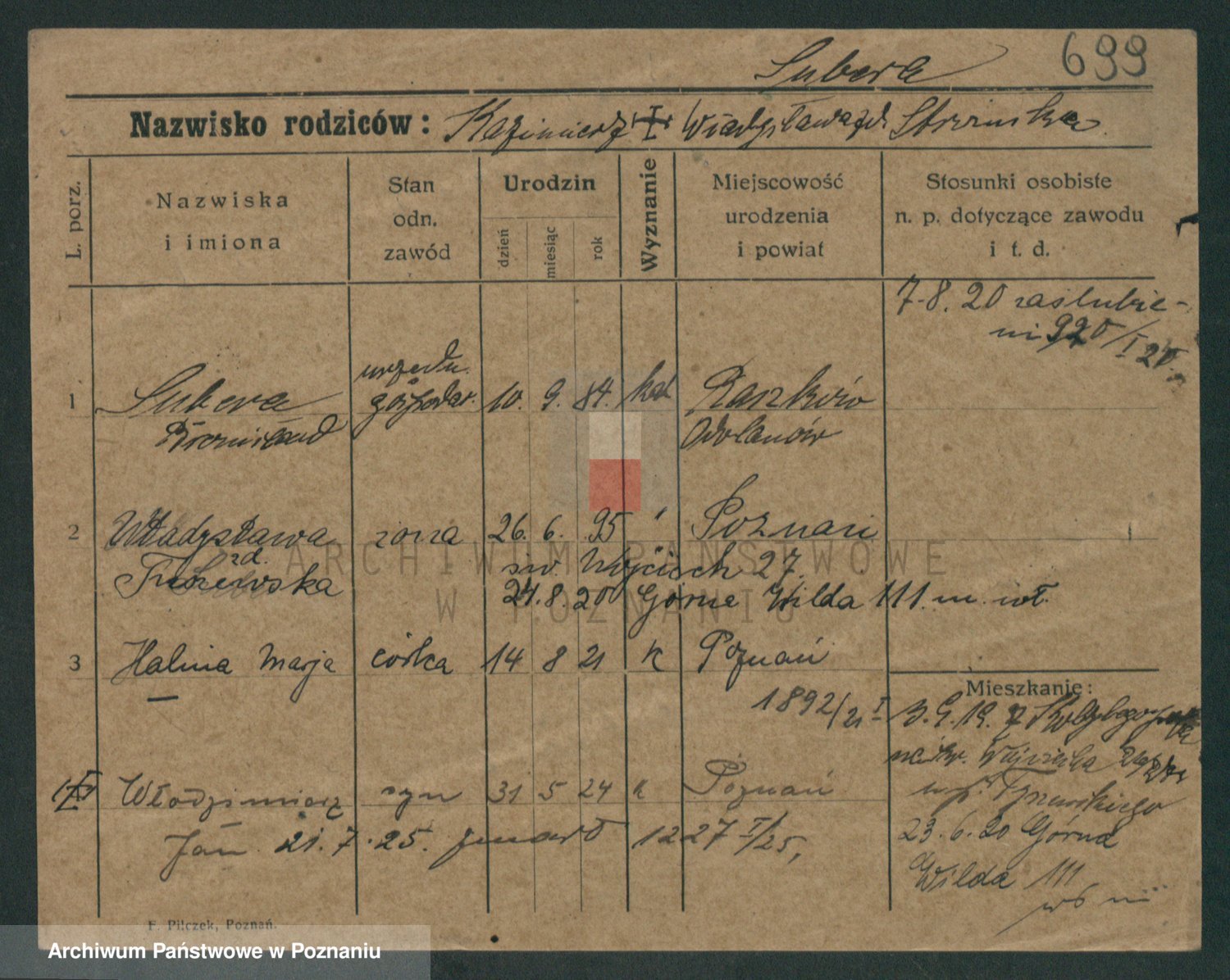 Podgląd karty osobowej dostępny jest po kliknięciu na nazwisko lub ikonkę karty. Można dokonywać powiększenia (ikony na górze) lub przechodzić między kolejnymi skanami (strzałki po bokach).