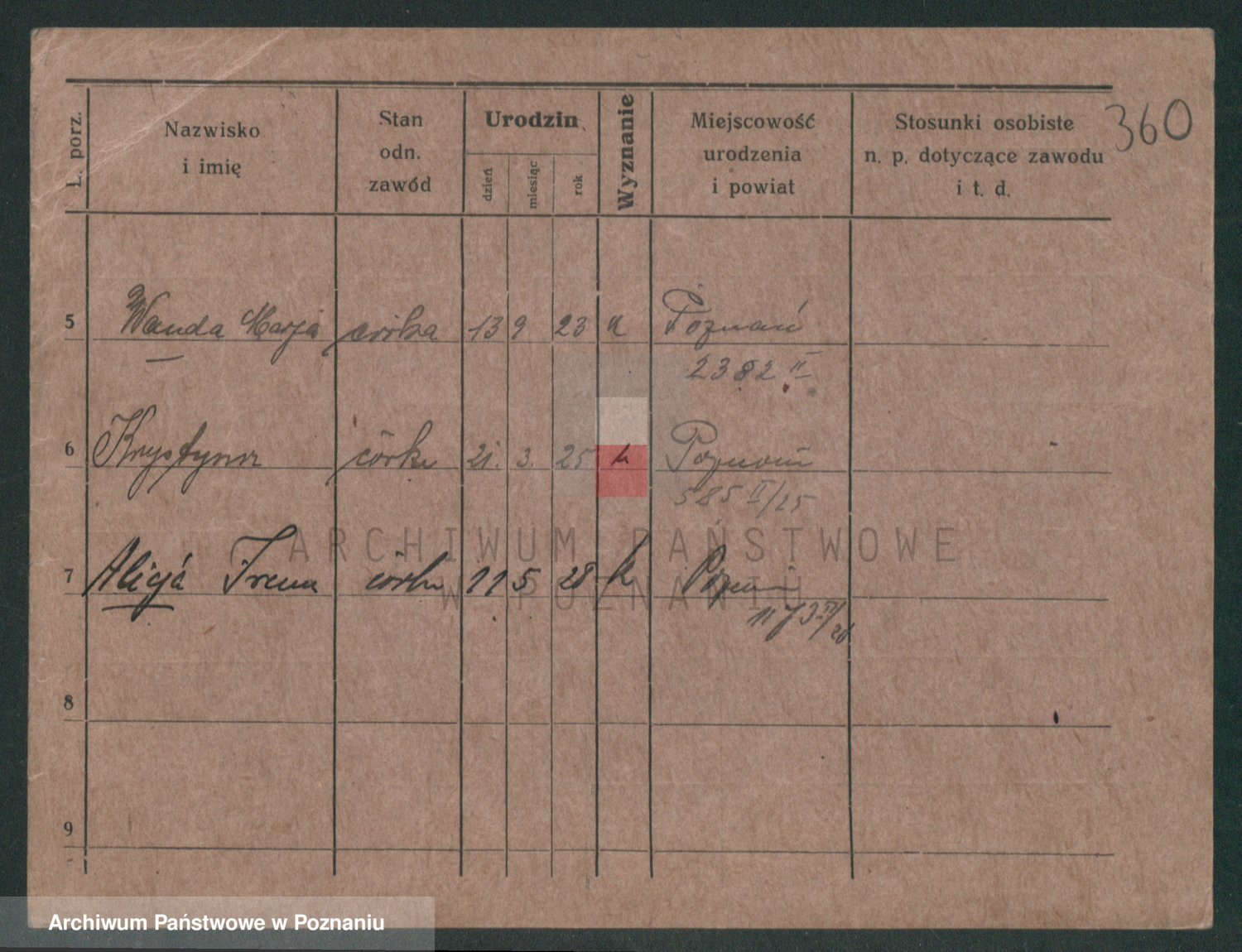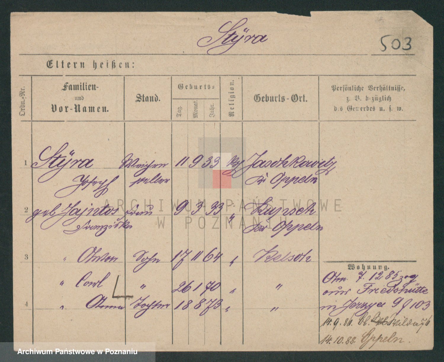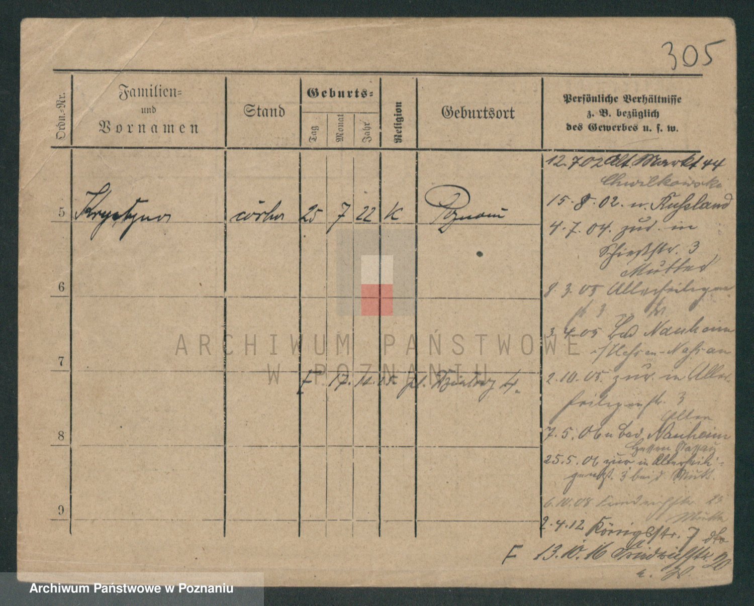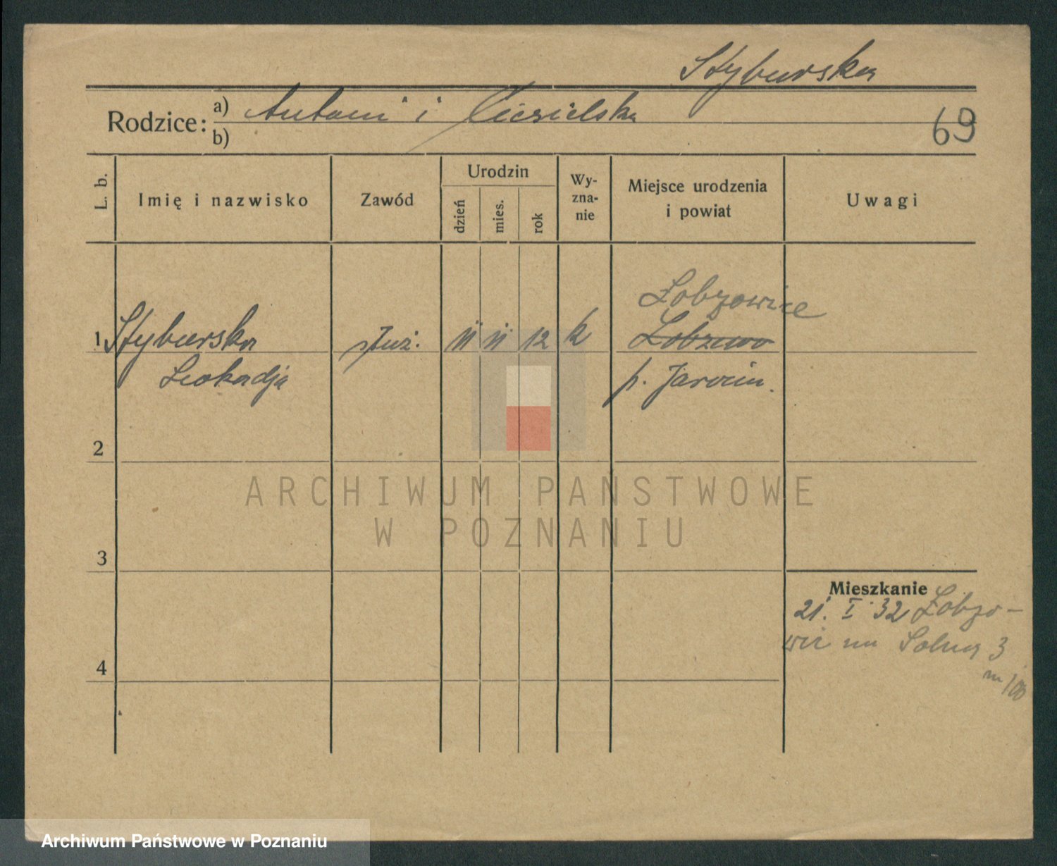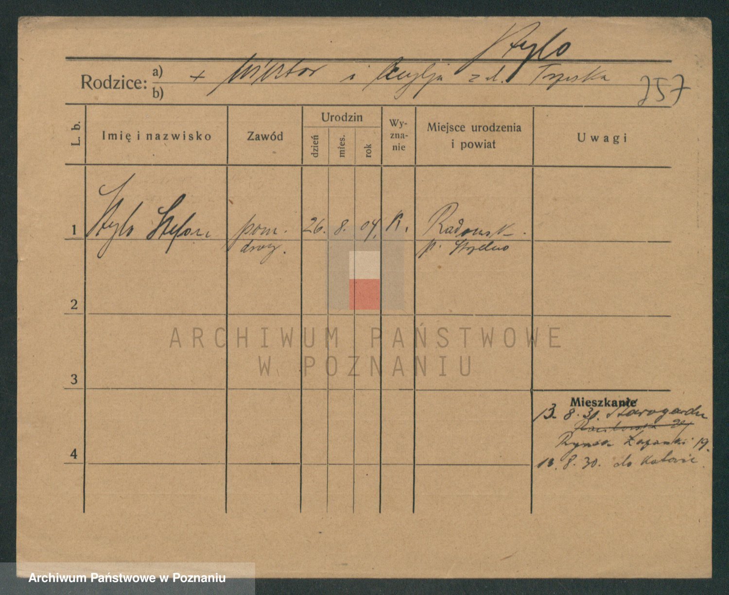Podgląd karty osobowej dostępny jest po kliknięciu na nazwisko lub ikonkę karty. Można dokonywać powiększenia (ikony na górze) lub przechodzić między kolejnymi skanami (strzałki po bokach).