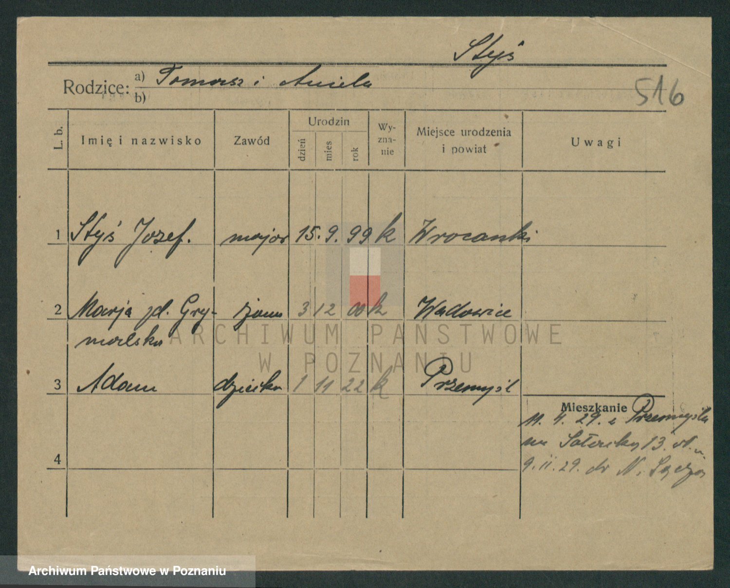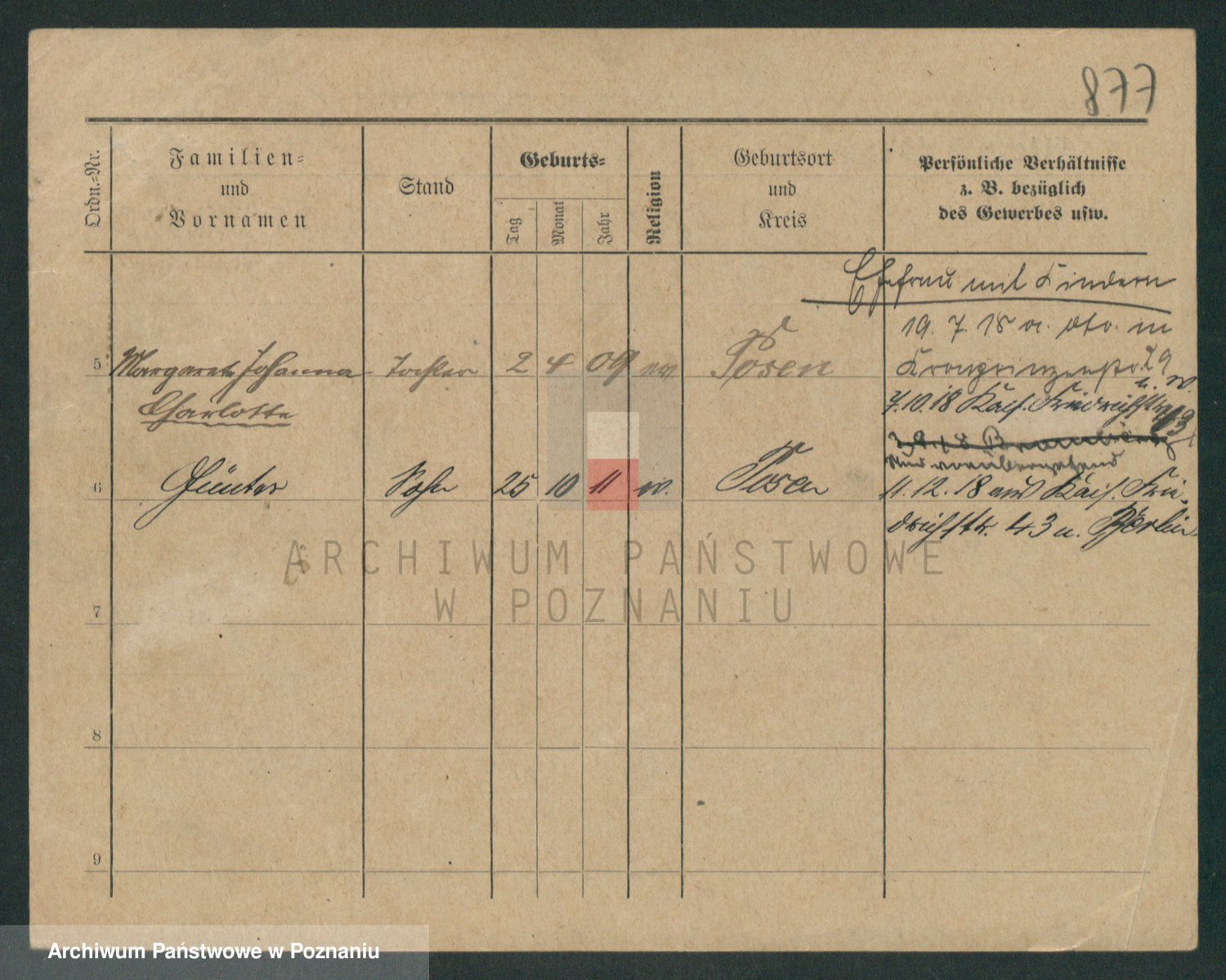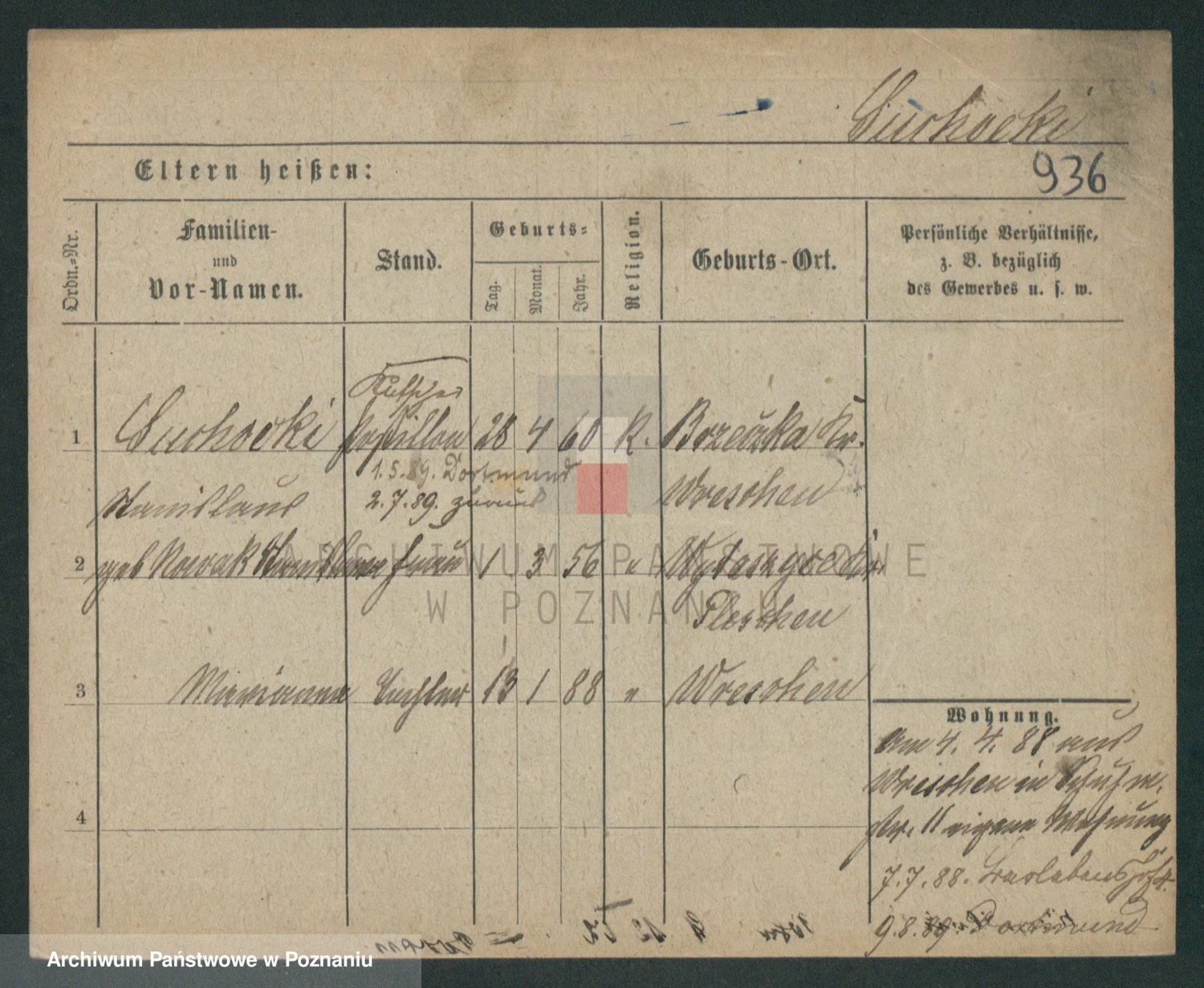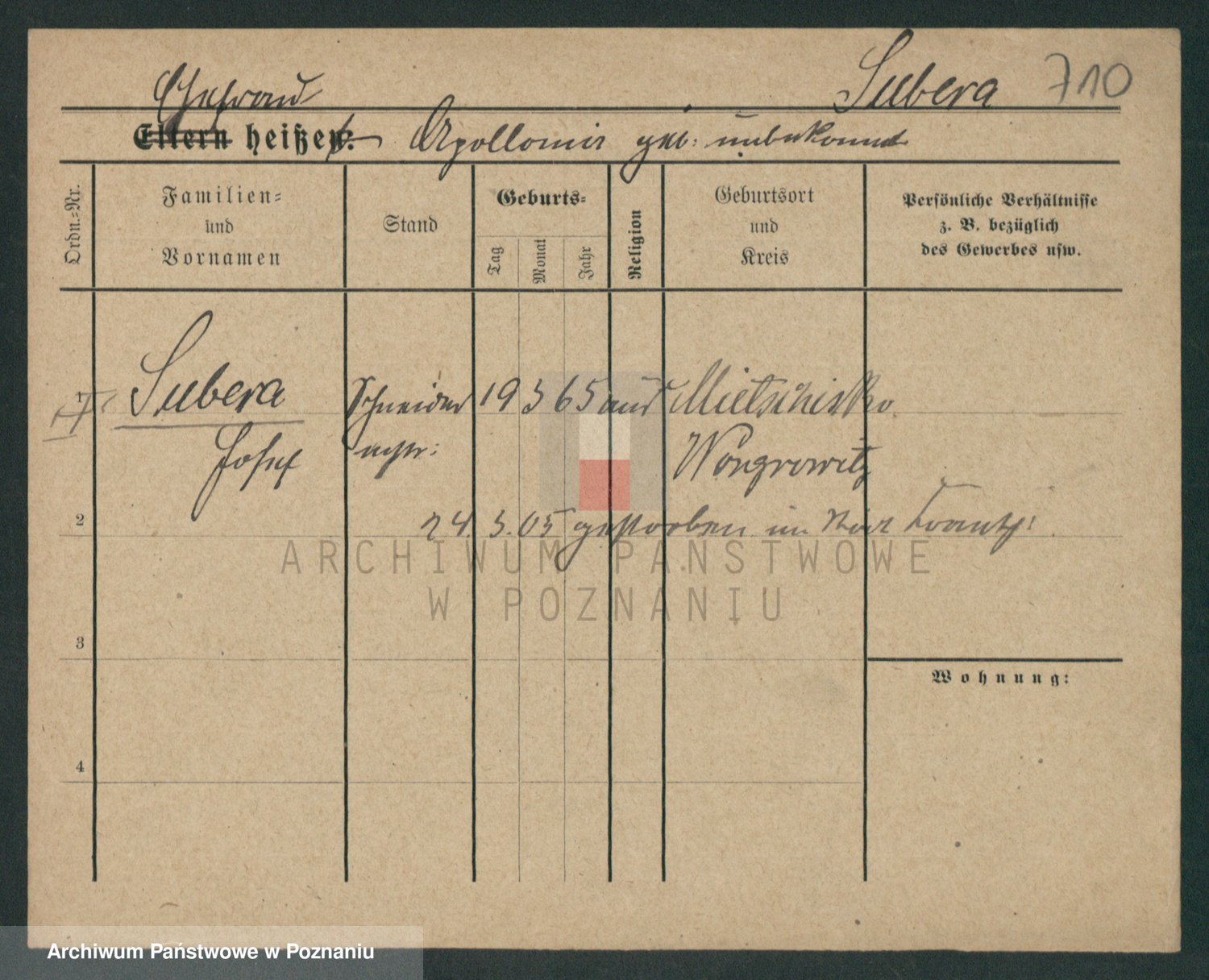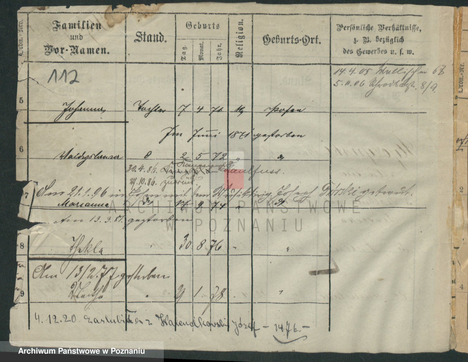 Podgląd karty osobowej dostępny jest po kliknięciu na nazwisko lub ikonkę karty. Można dokonywać powiększenia (ikony na górze) lub przechodzić między kolejnymi skanami (strzałki po bokach).