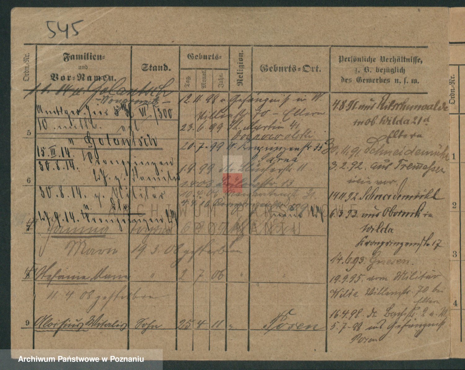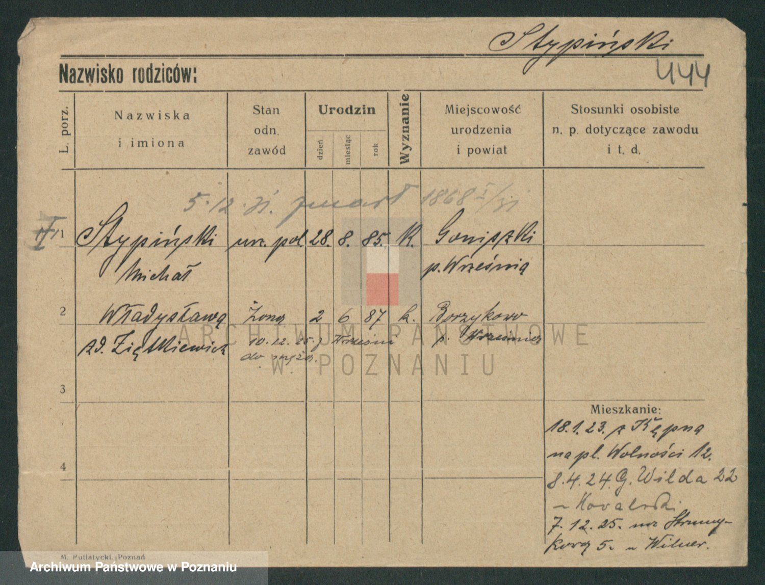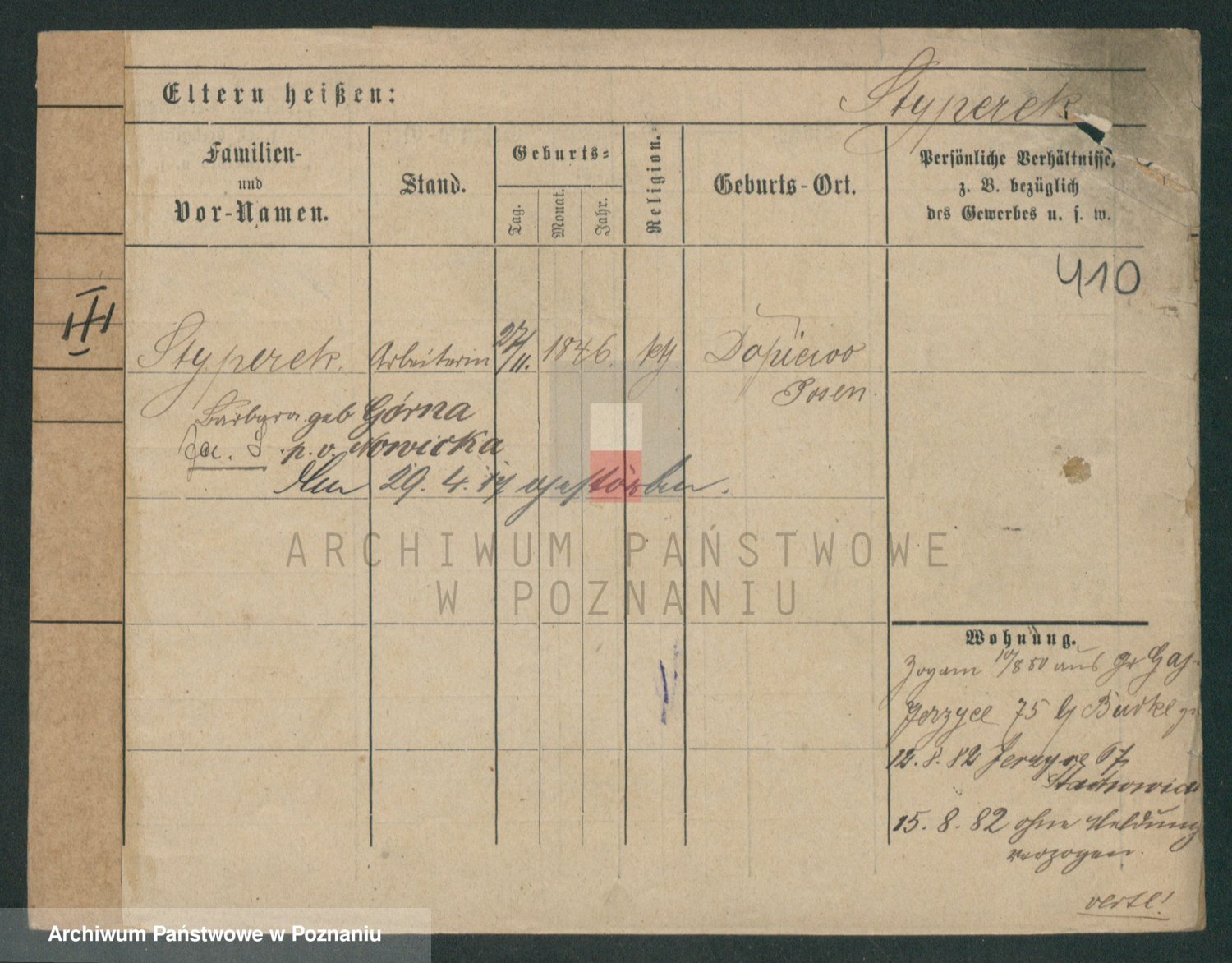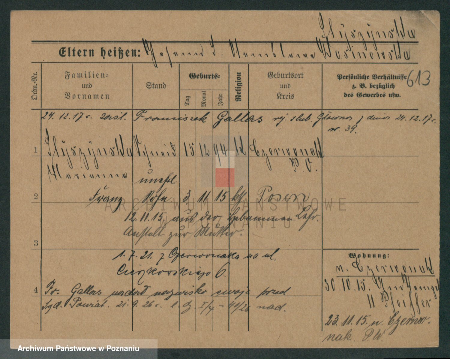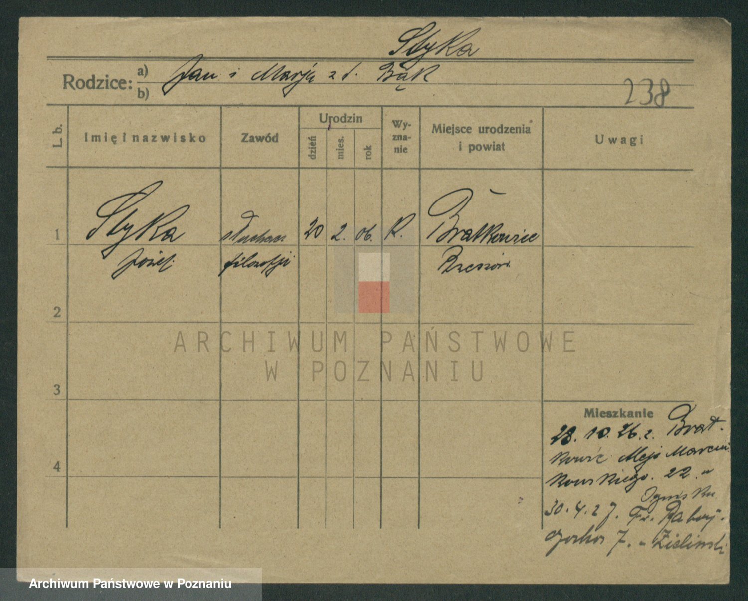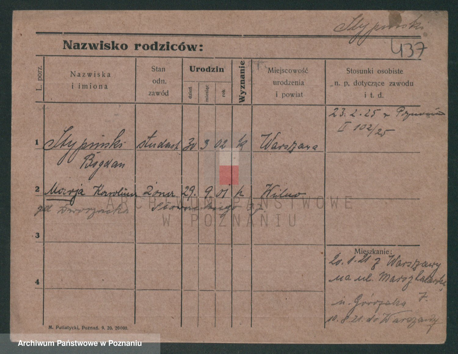 Podgląd karty osobowej dostępny jest po kliknięciu na nazwisko lub ikonkę karty. Można dokonywać powiększenia (ikony na górze) lub przechodzić między kolejnymi skanami (strzałki po bokach).