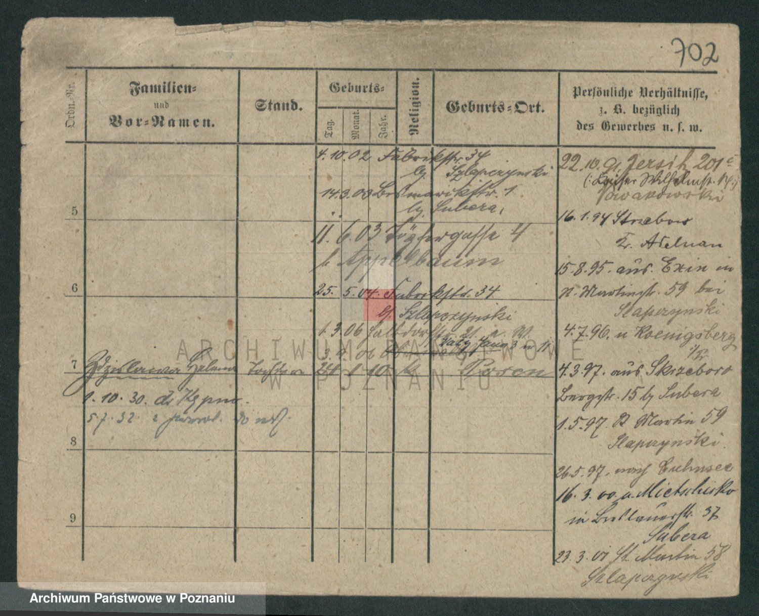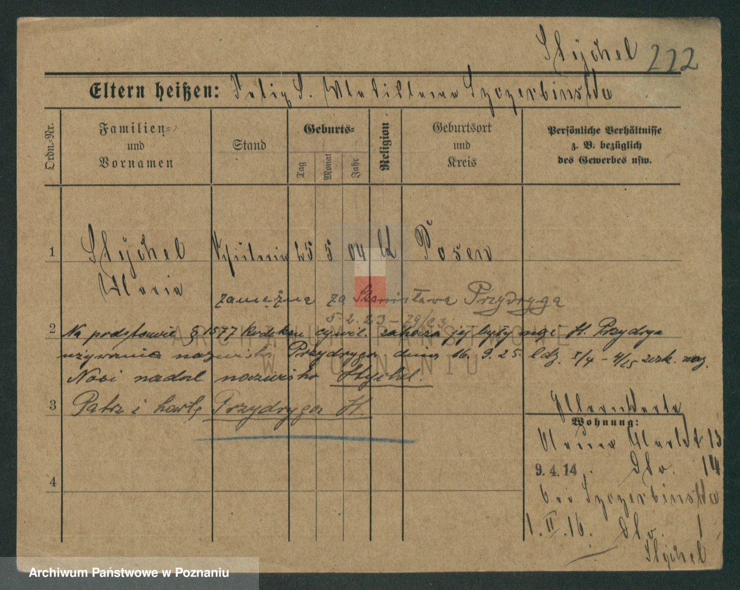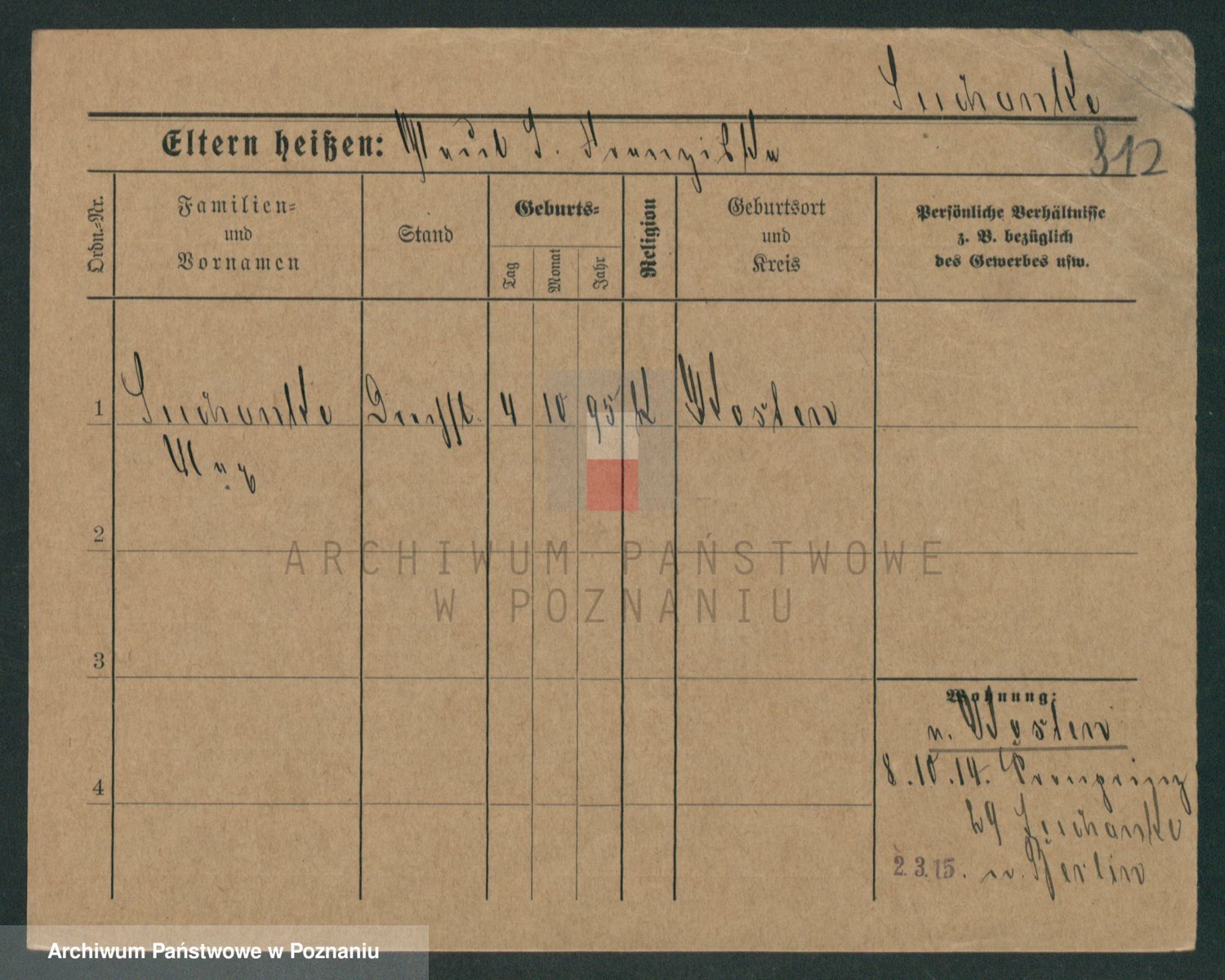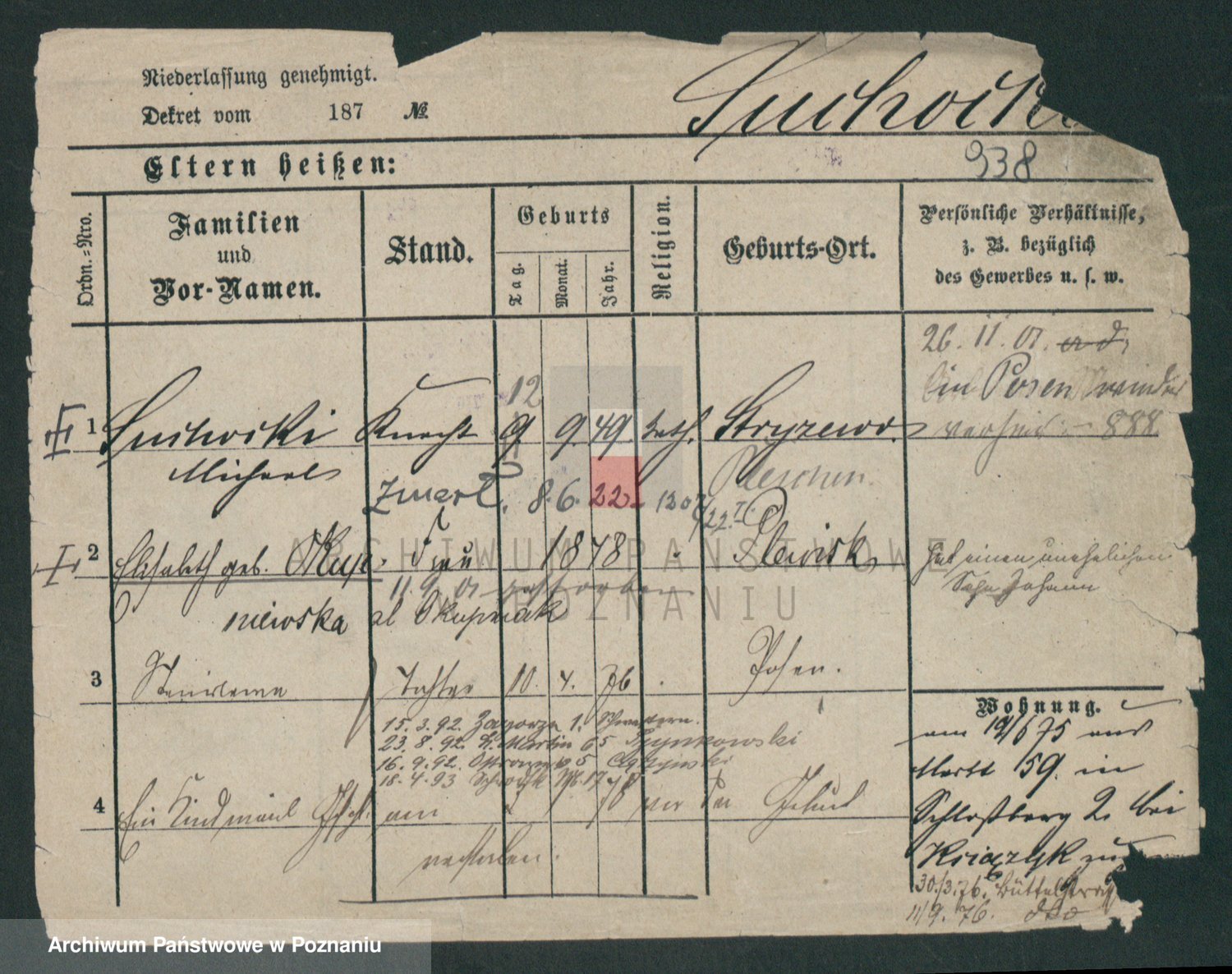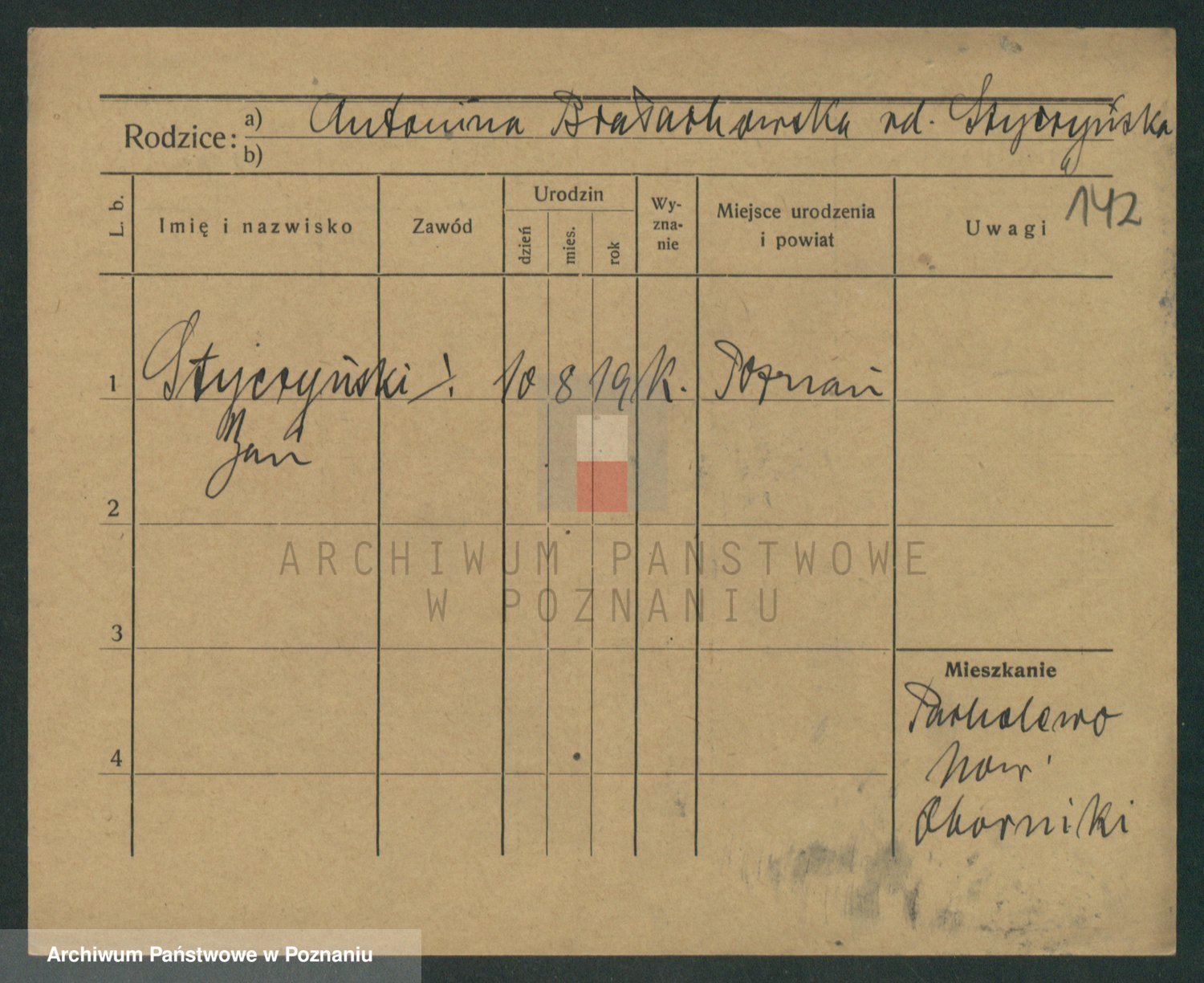 Podgląd karty osobowej dostępny jest po kliknięciu na nazwisko lub ikonkę karty. Można dokonywać powiększenia (ikony na górze) lub przechodzić między kolejnymi skanami (strzałki po bokach).