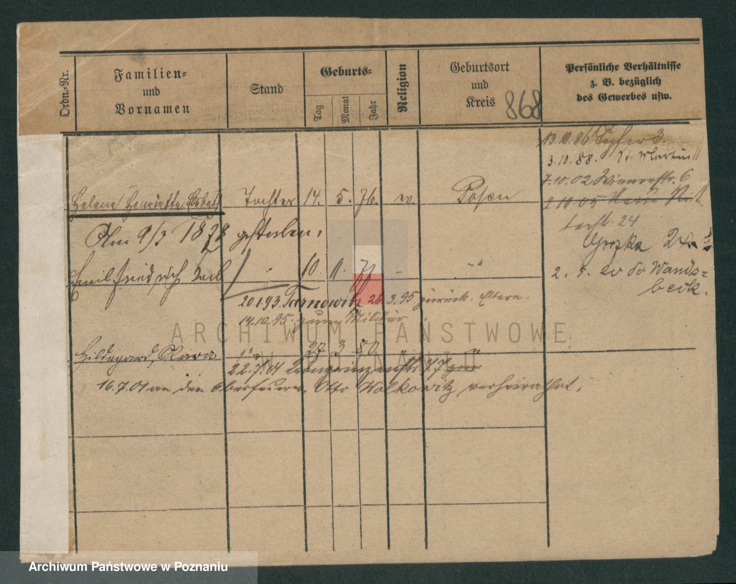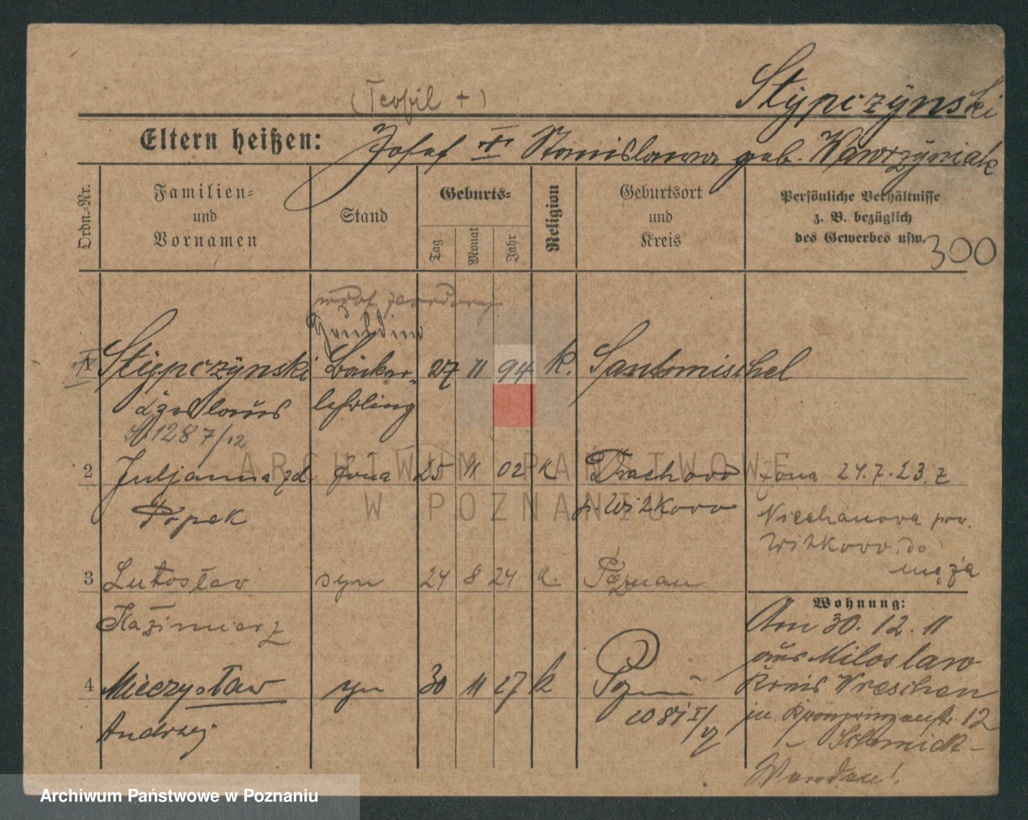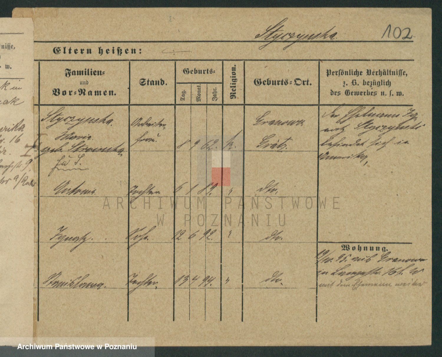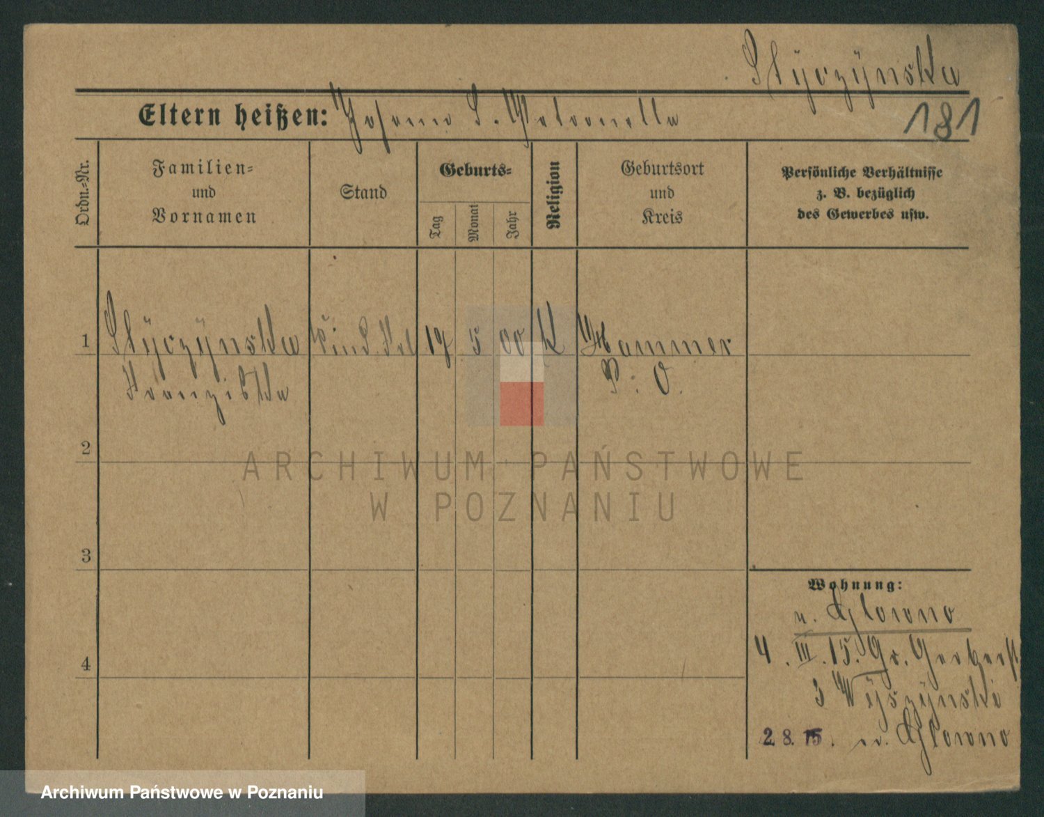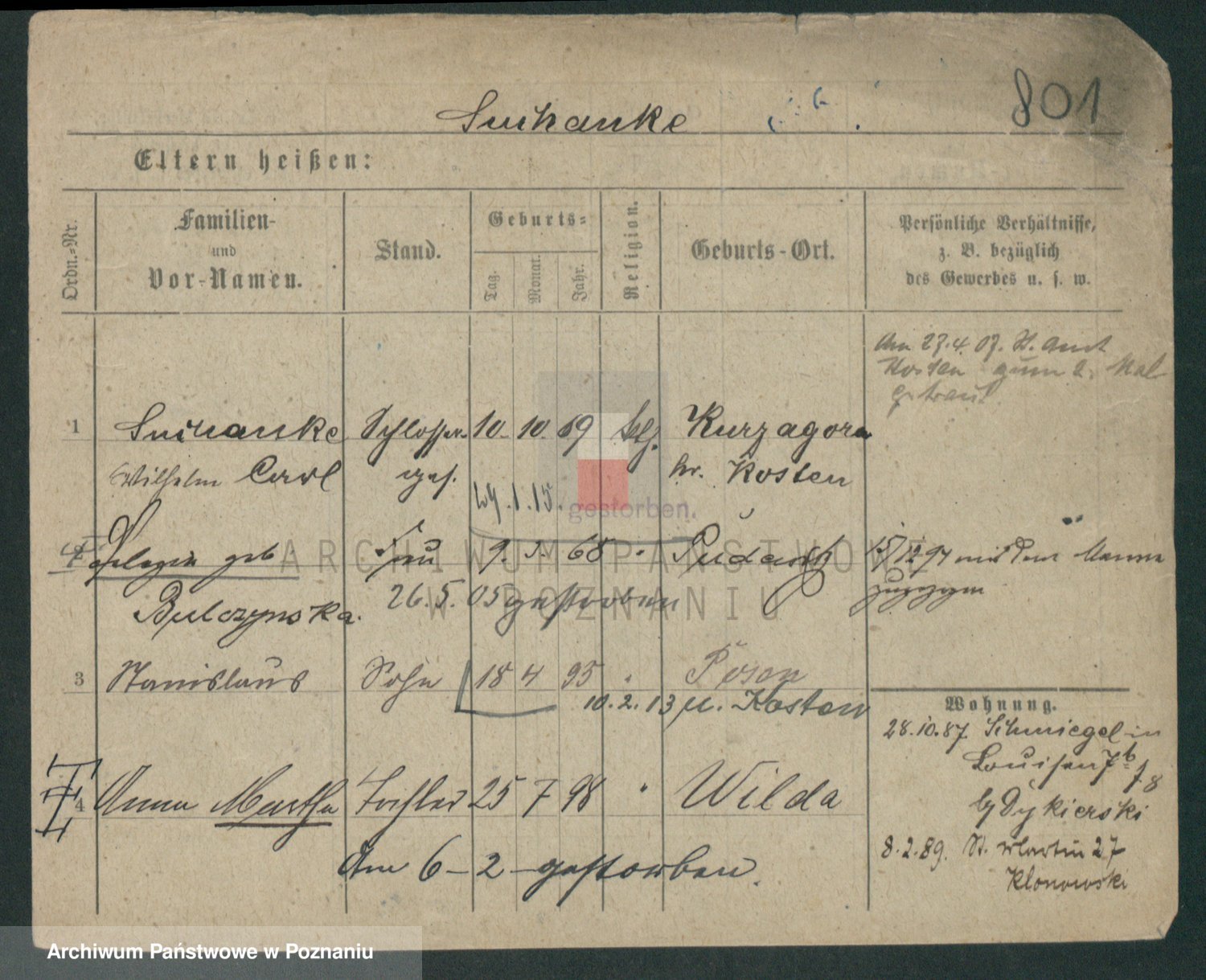Podgląd karty osobowej dostępny jest po kliknięciu na nazwisko lub ikonkę karty. Można dokonywać powiększenia (ikony na górze) lub przechodzić między kolejnymi skanami (strzałki po bokach).