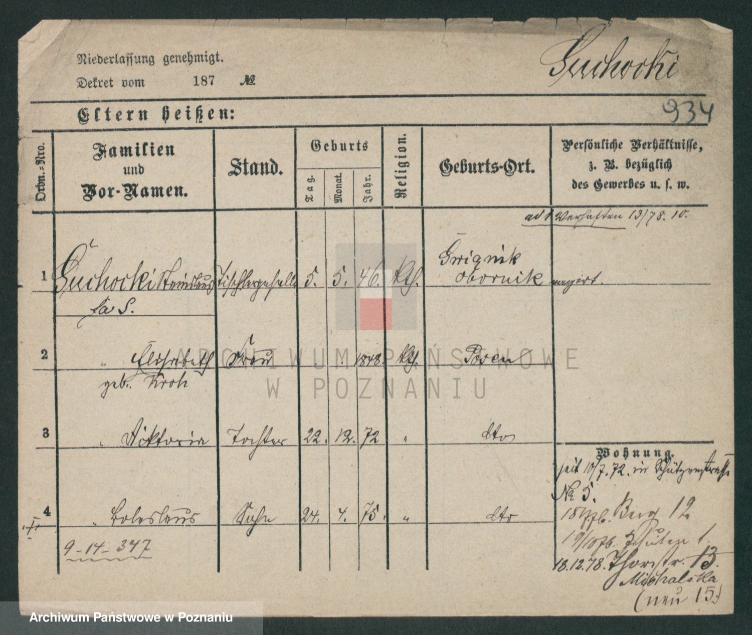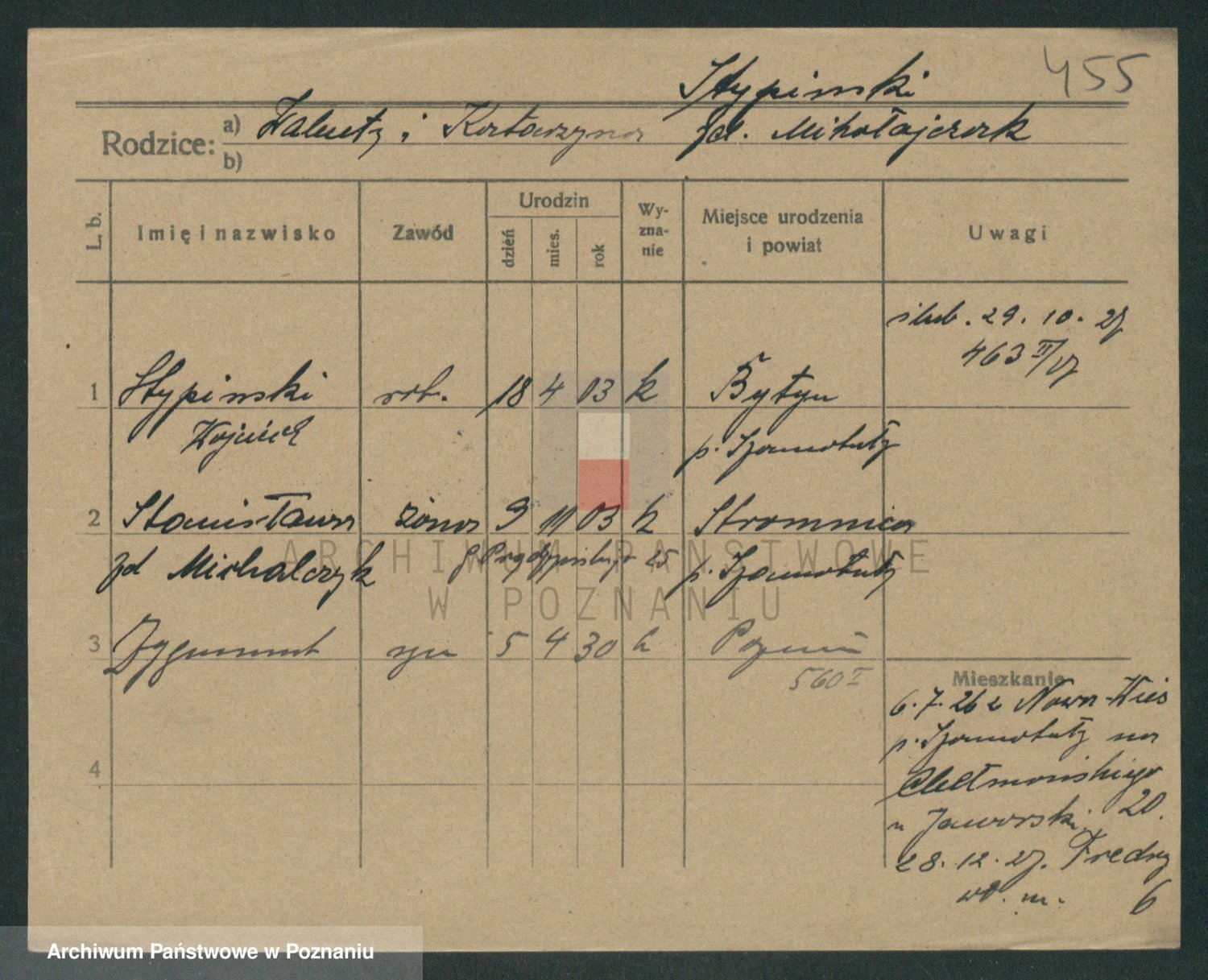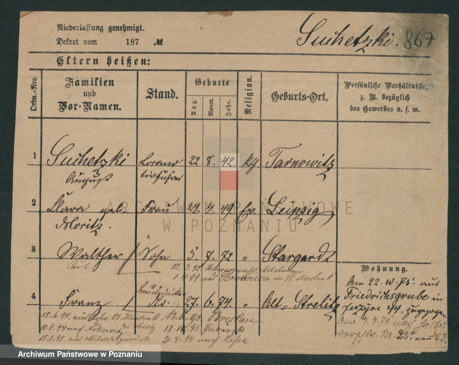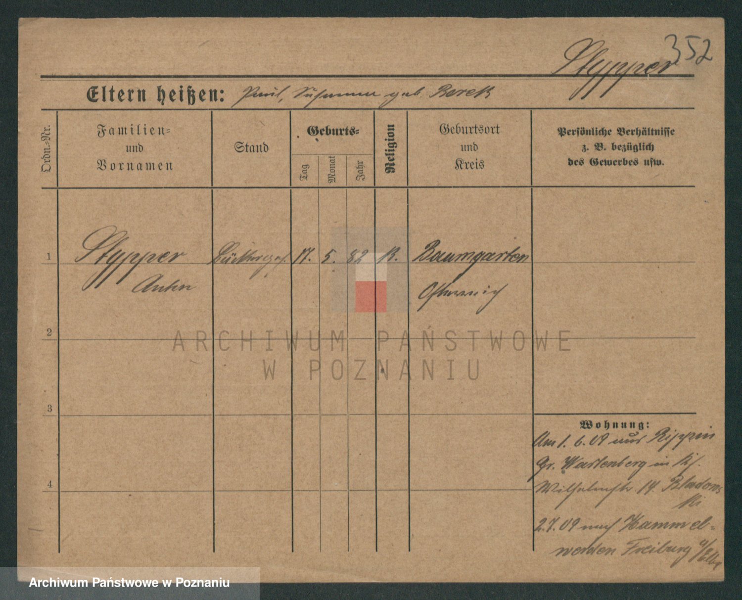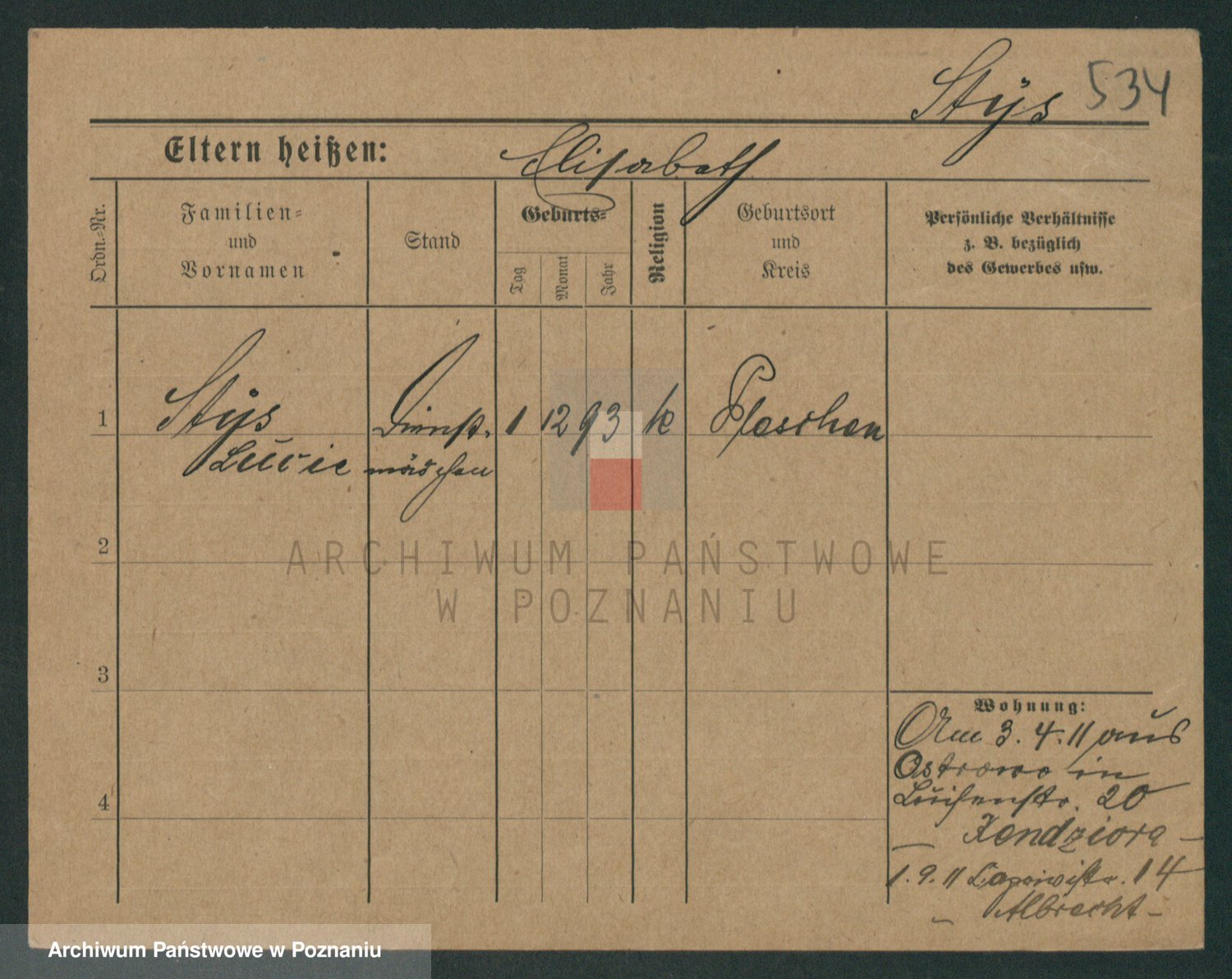 Podgląd karty osobowej dostępny jest po kliknięciu na nazwisko lub ikonkę karty. Można dokonywać powiększenia (ikony na górze) lub przechodzić między kolejnymi skanami (strzałki po bokach).