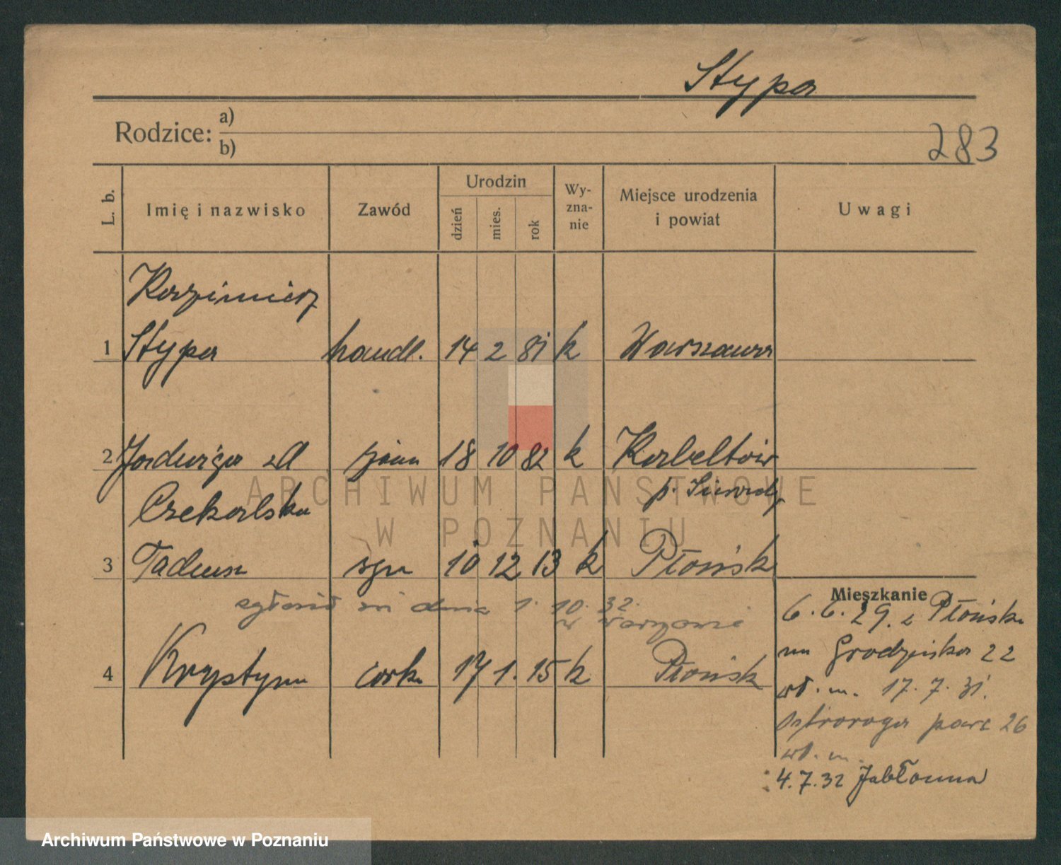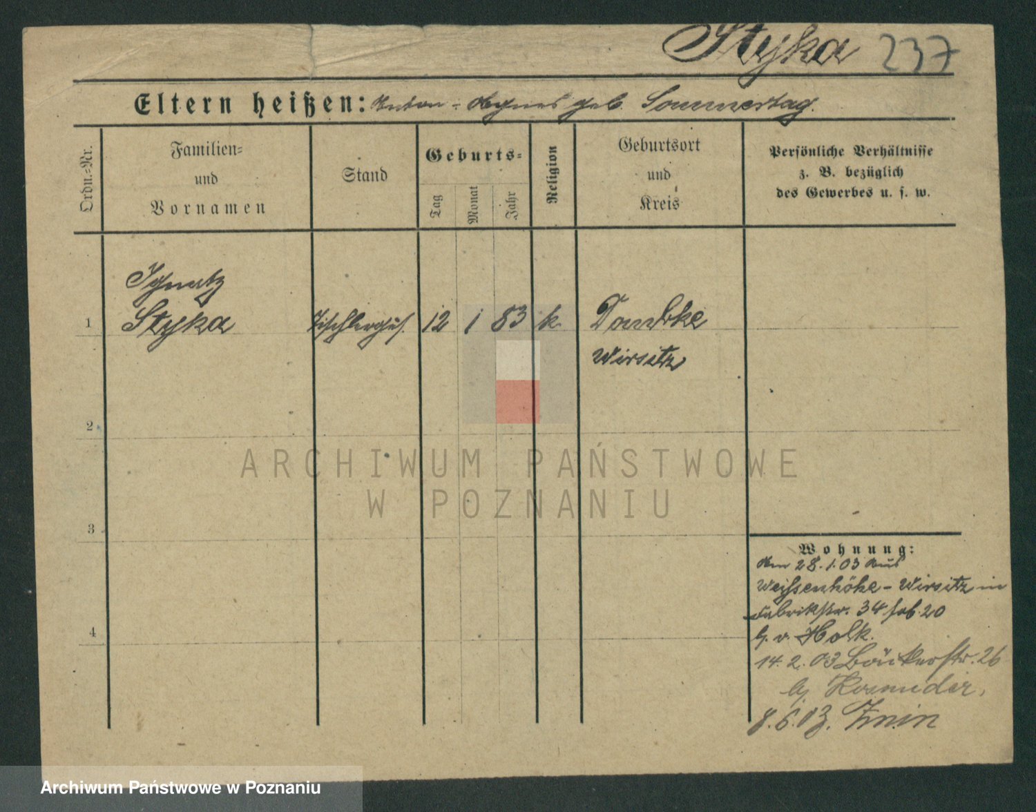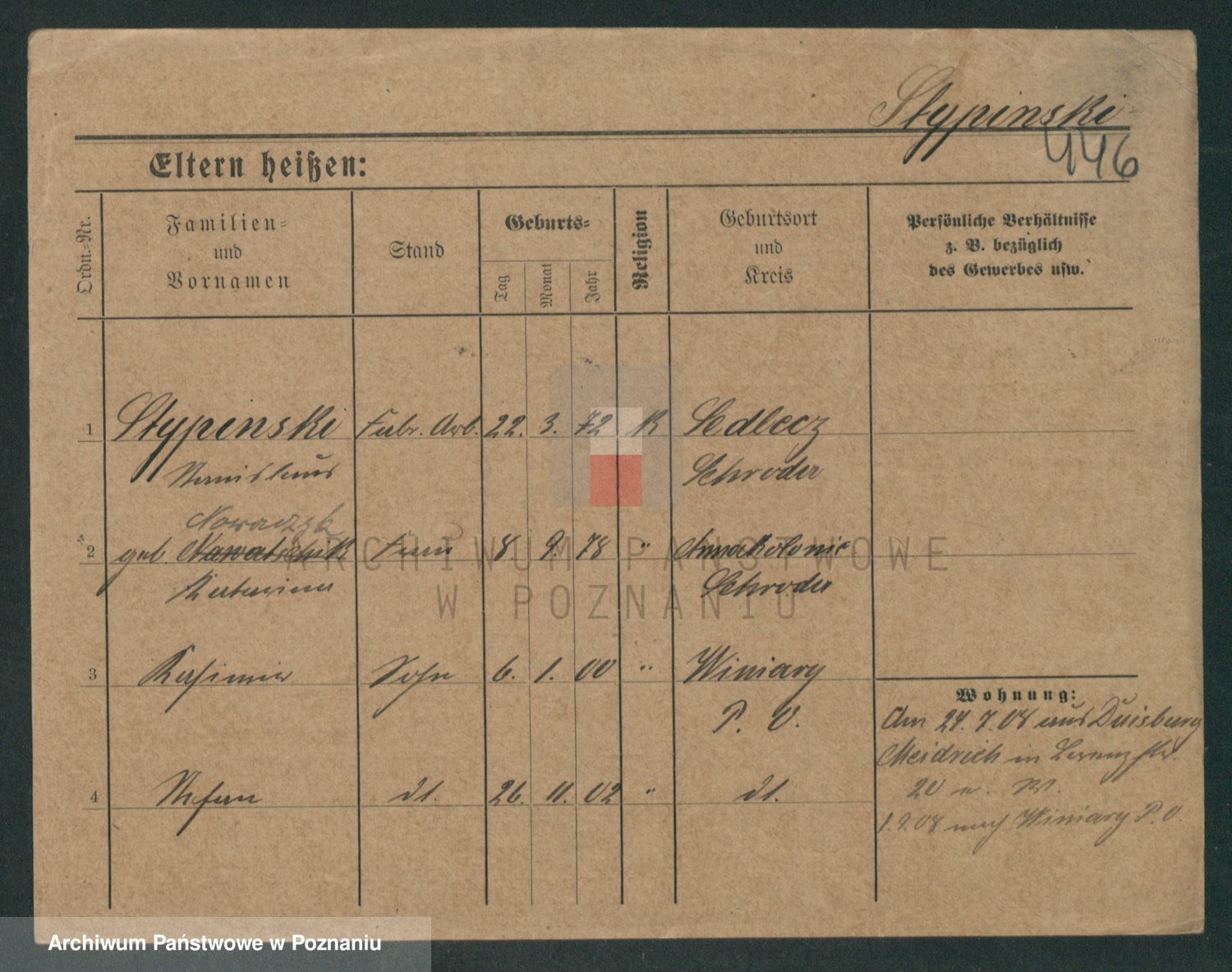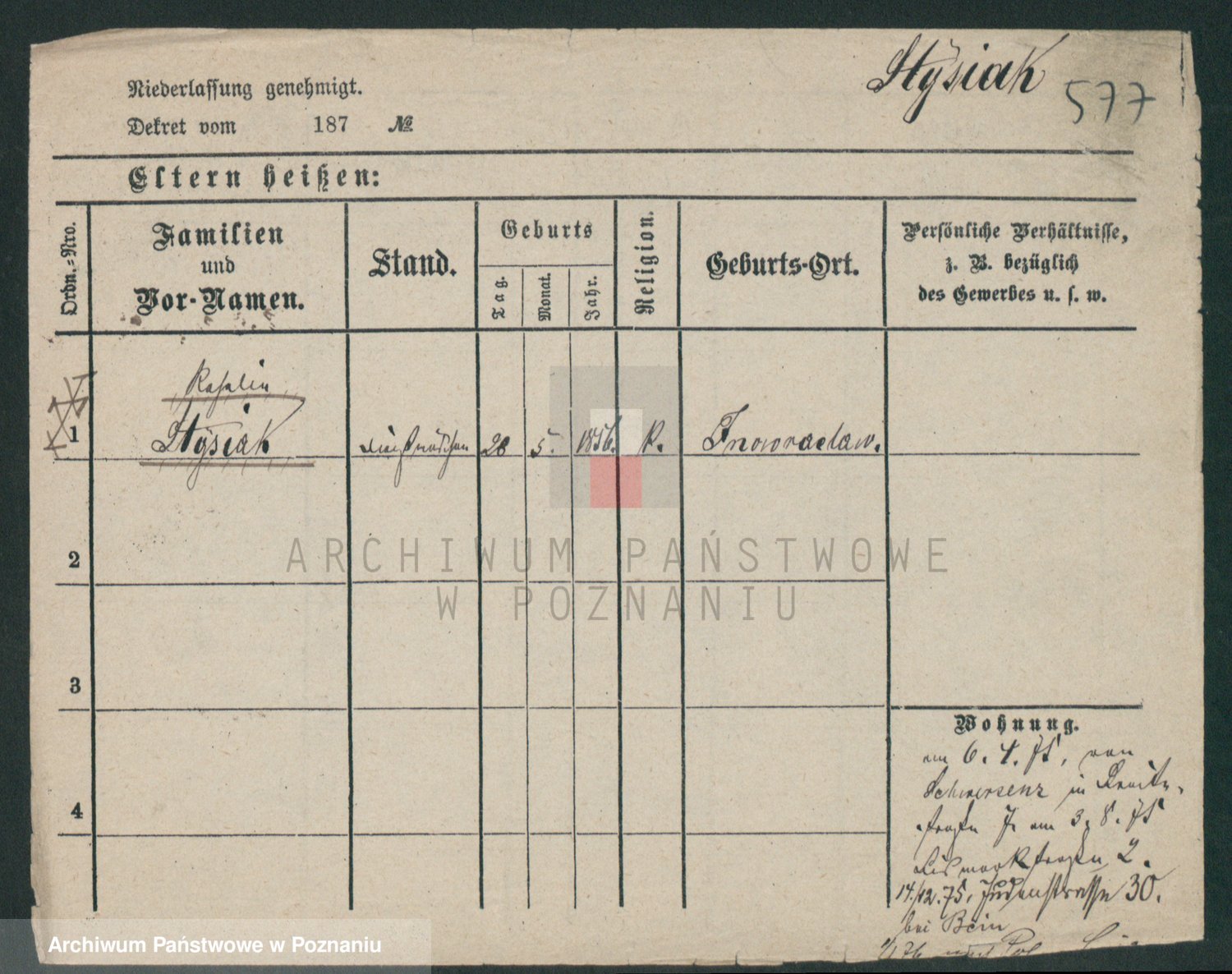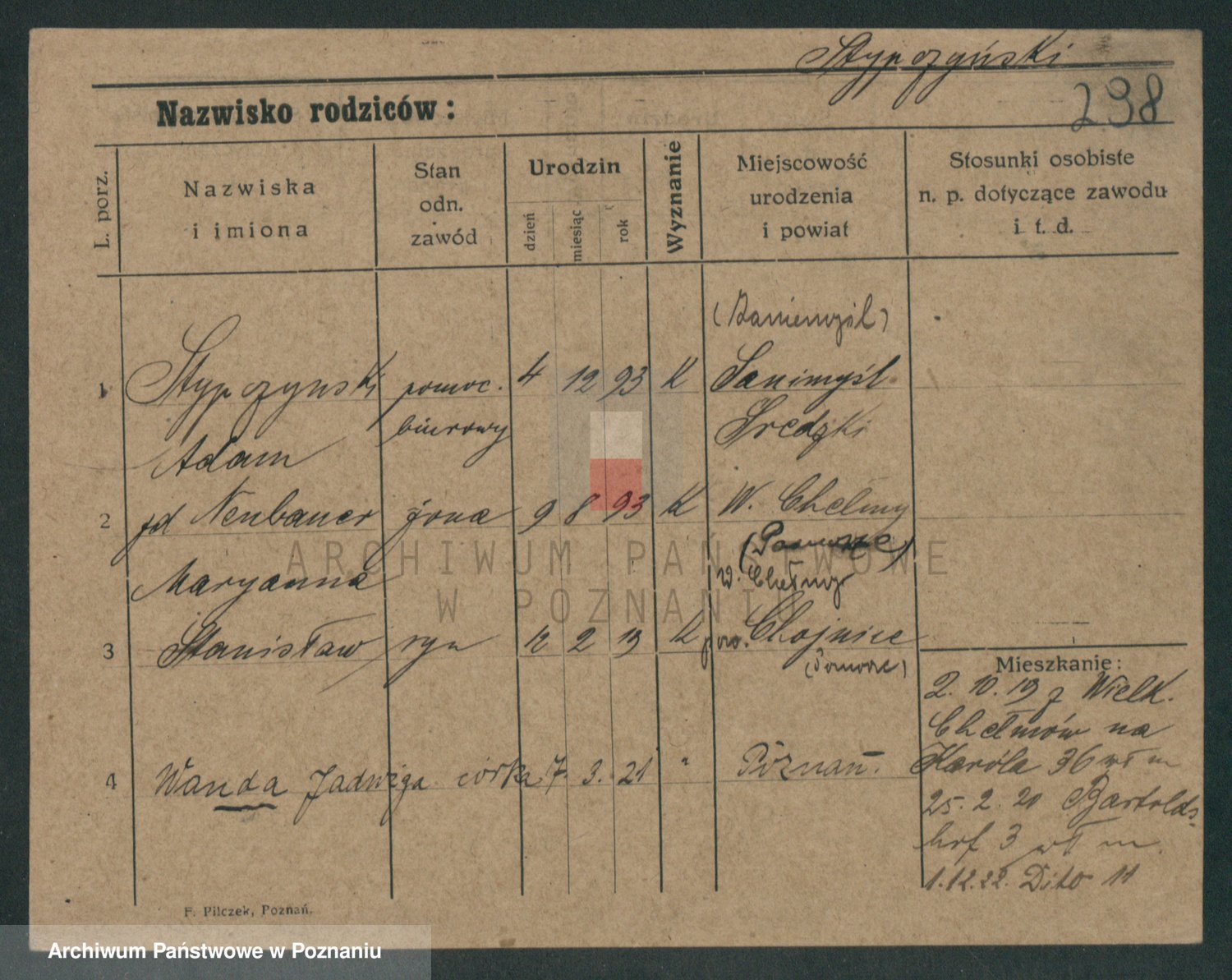 Podgląd karty osobowej dostępny jest po kliknięciu na nazwisko lub ikonkę karty. Można dokonywać powiększenia (ikony na górze) lub przechodzić między kolejnymi skanami (strzałki po bokach).