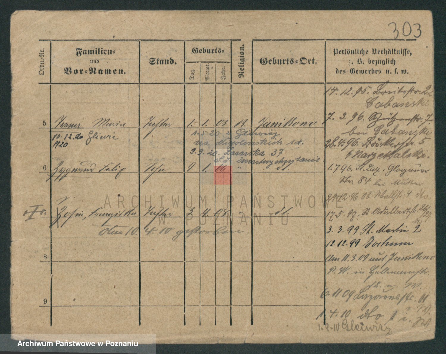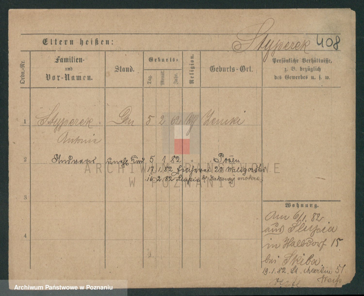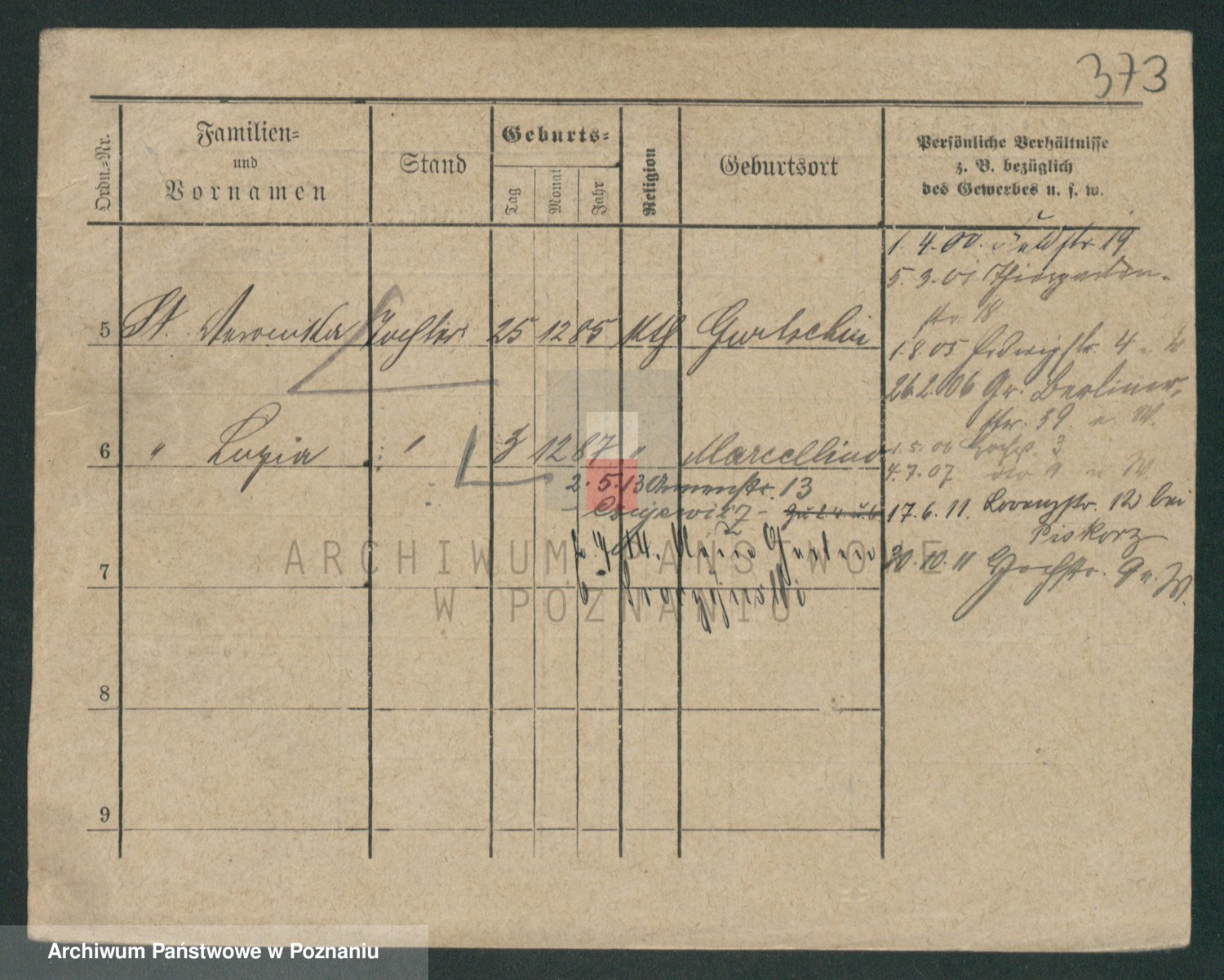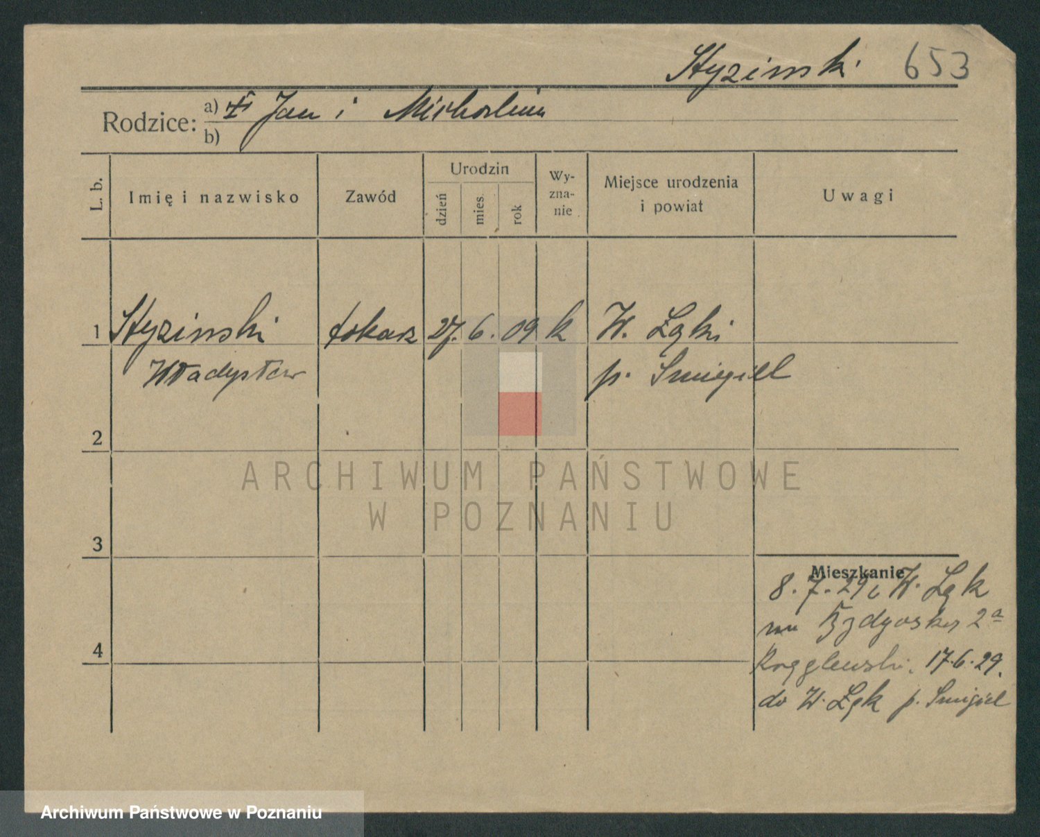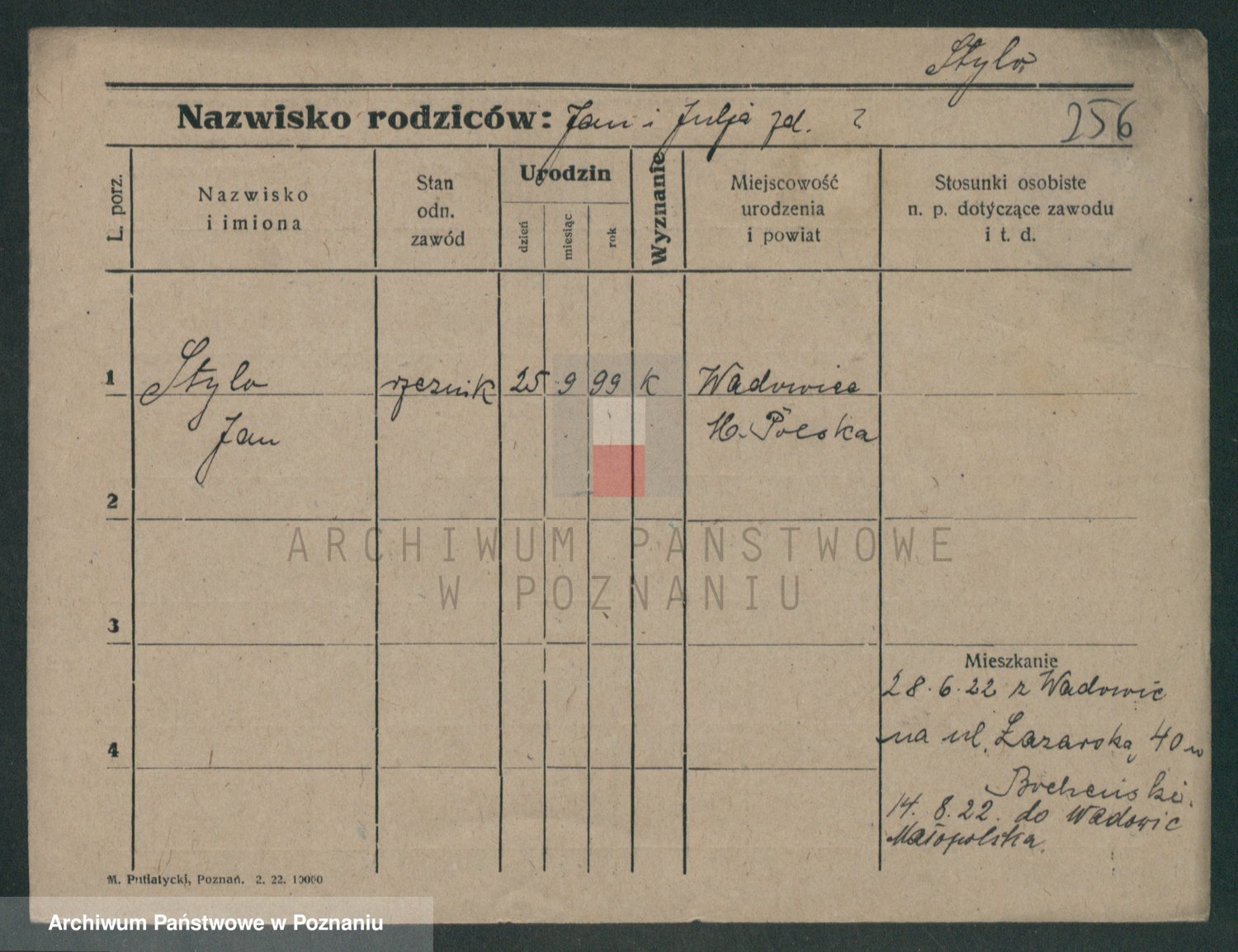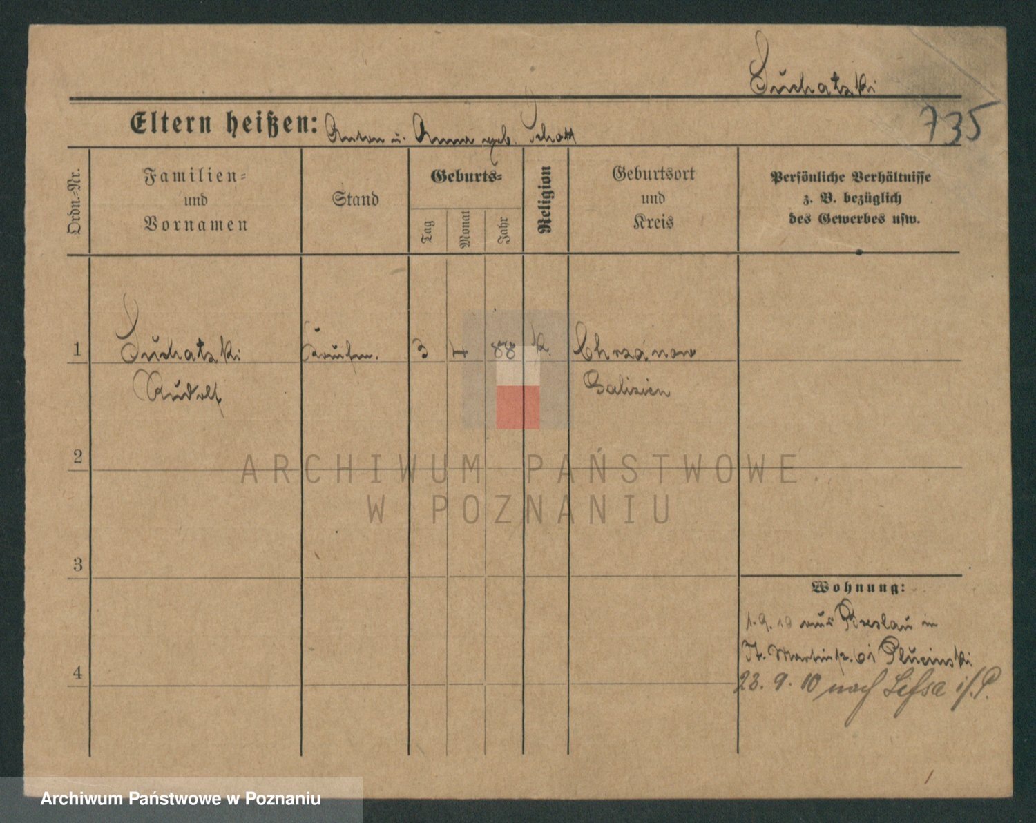 Podgląd karty osobowej dostępny jest po kliknięciu na nazwisko lub ikonkę karty. Można dokonywać powiększenia (ikony na górze) lub przechodzić między kolejnymi skanami (strzałki po bokach).