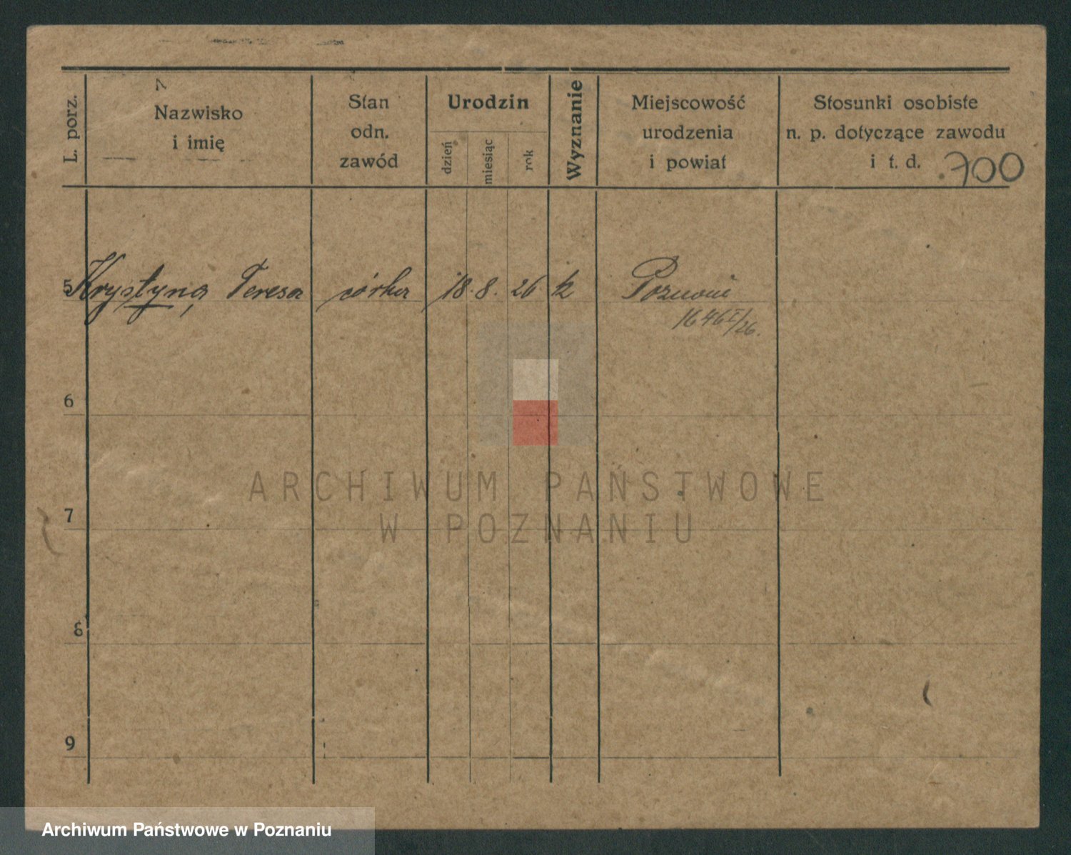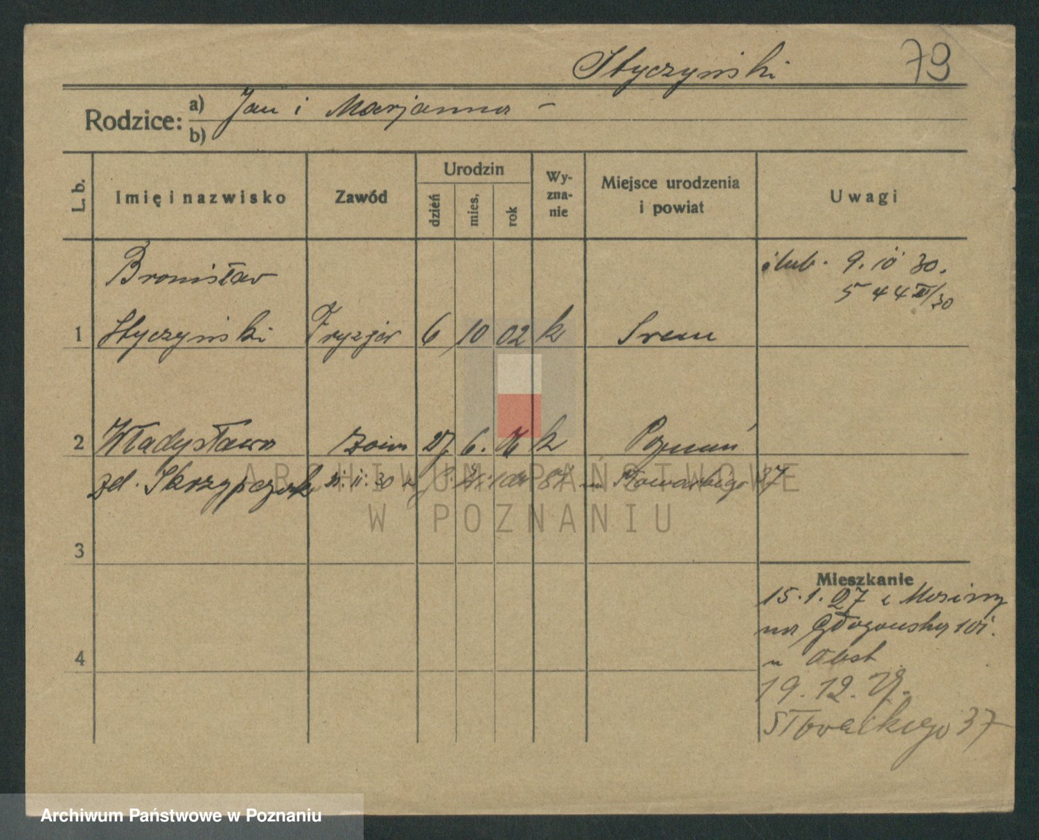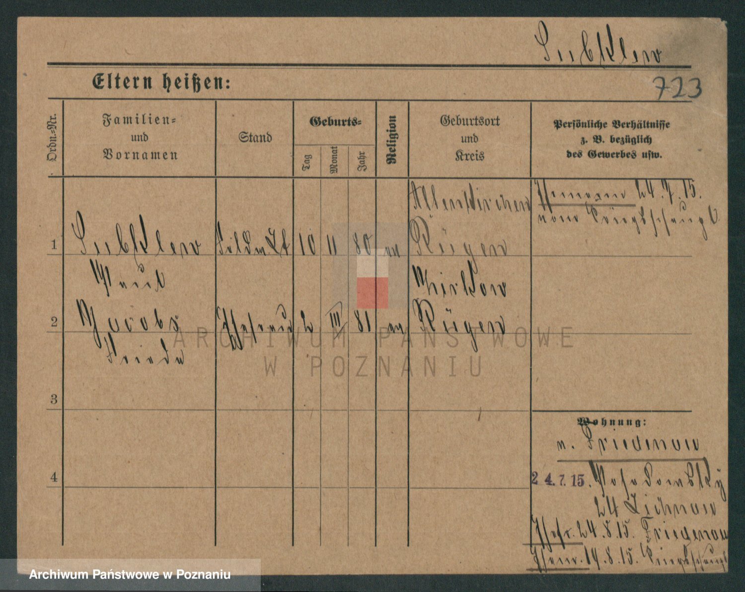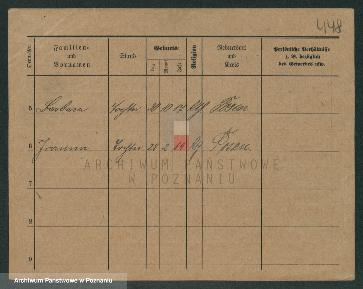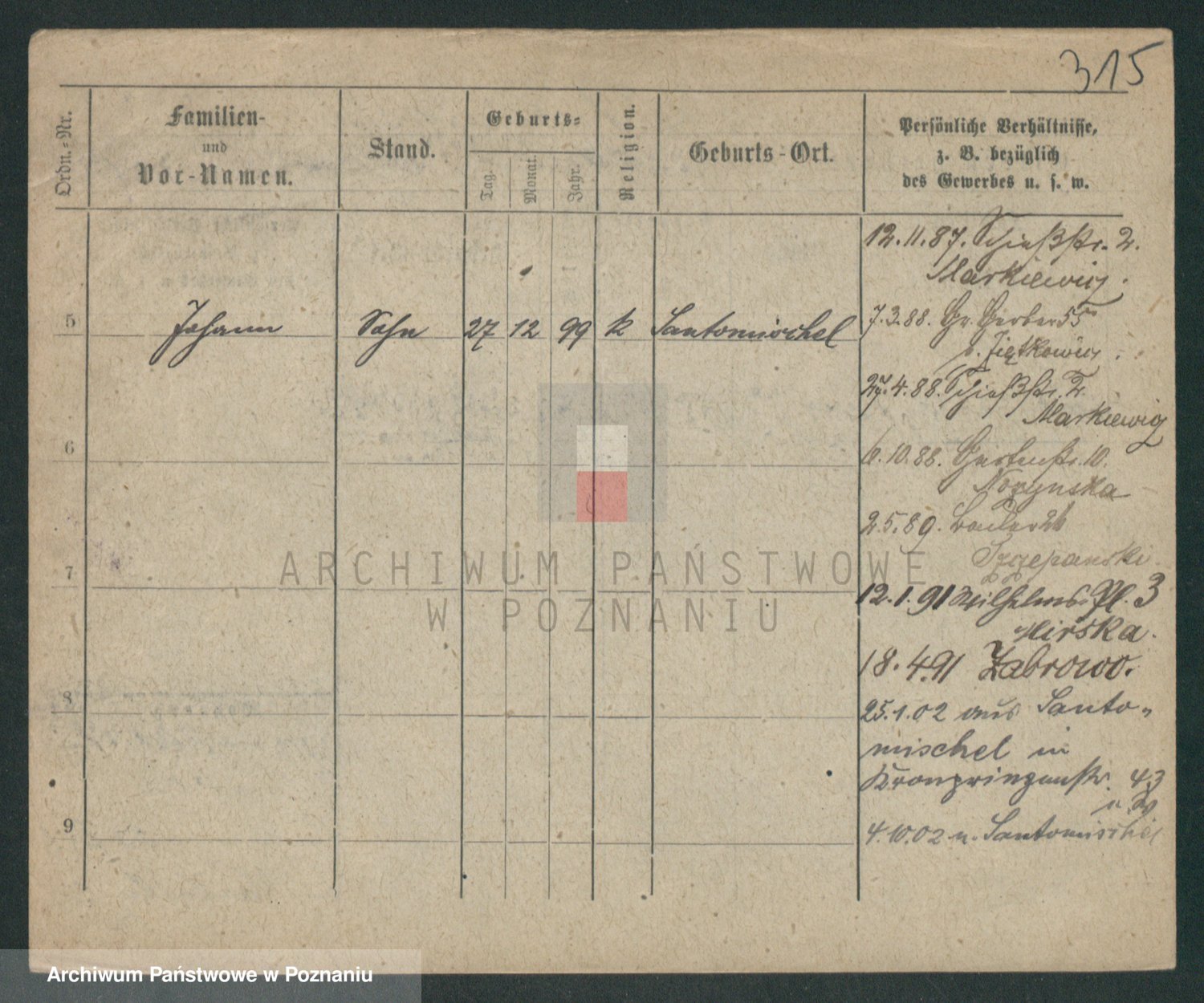Podgląd karty osobowej dostępny jest po kliknięciu na nazwisko lub ikonkę karty. Można dokonywać powiększenia (ikony na górze) lub przechodzić między kolejnymi skanami (strzałki po bokach).
