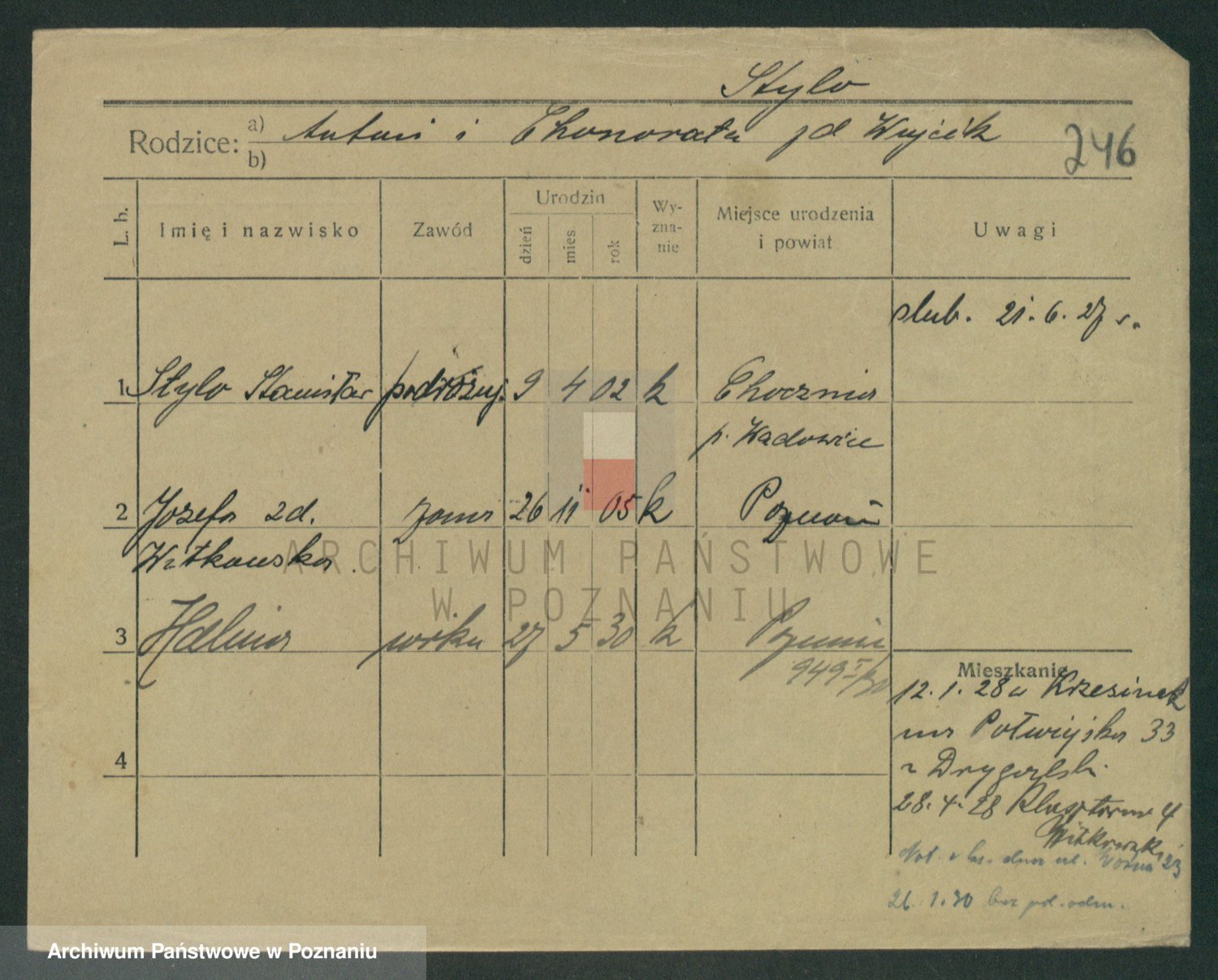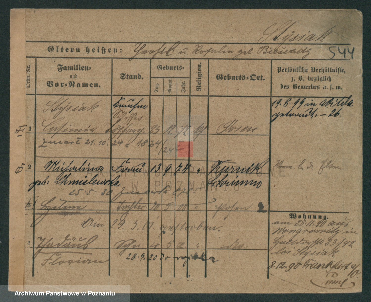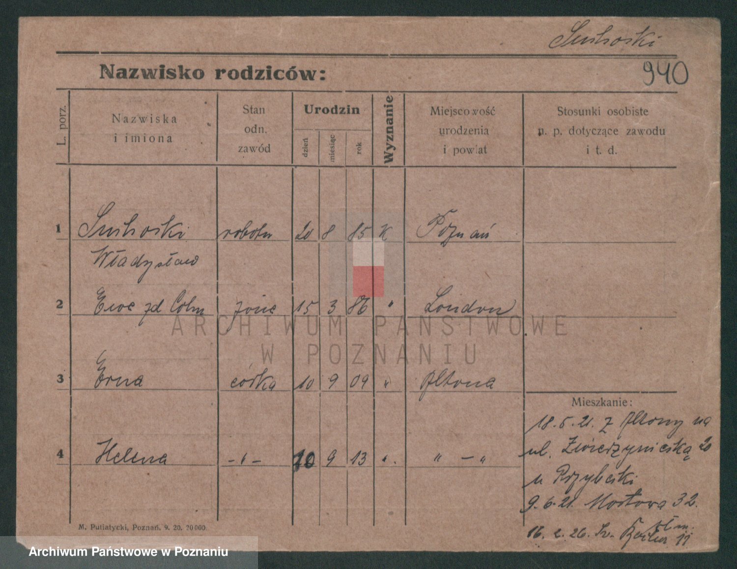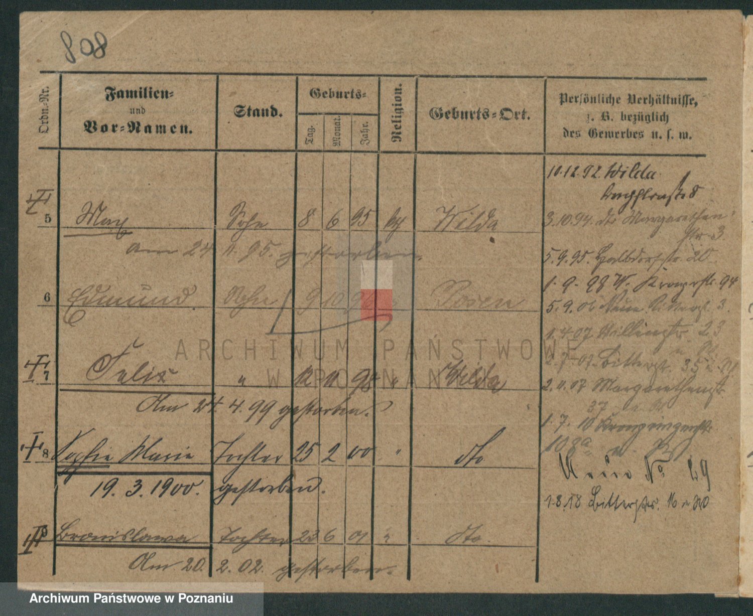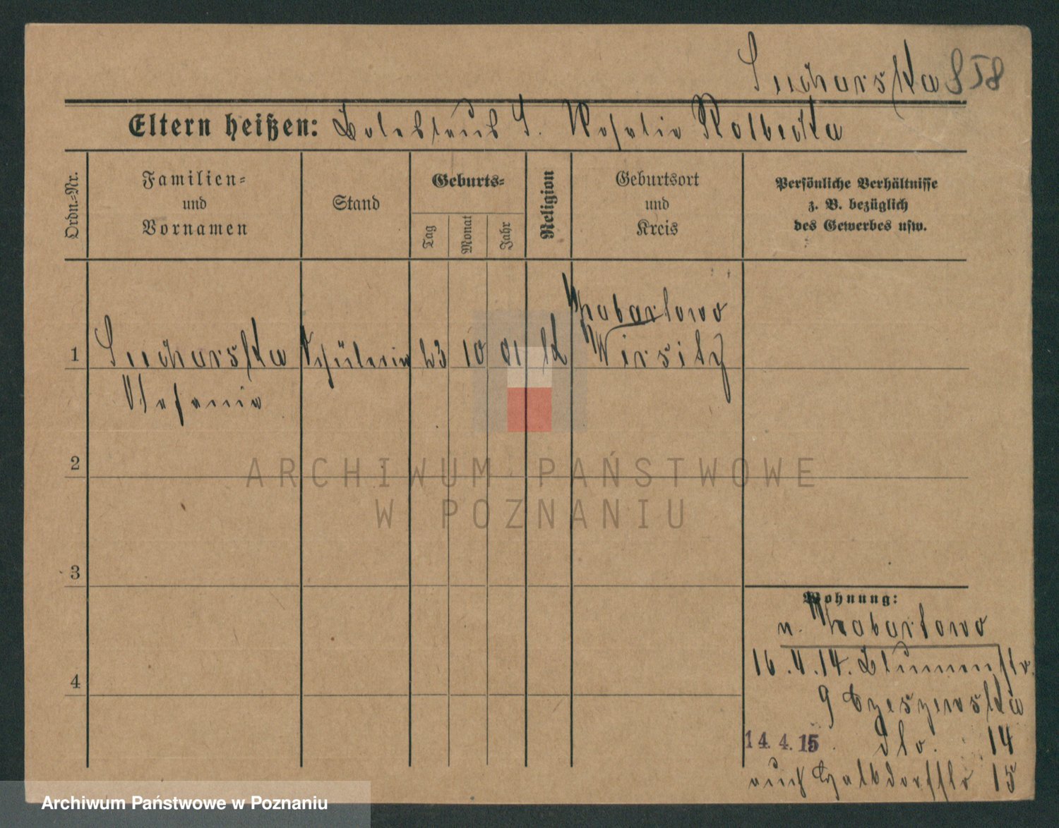 Podgląd karty osobowej dostępny jest po kliknięciu na nazwisko lub ikonkę karty. Można dokonywać powiększenia (ikony na górze) lub przechodzić między kolejnymi skanami (strzałki po bokach).