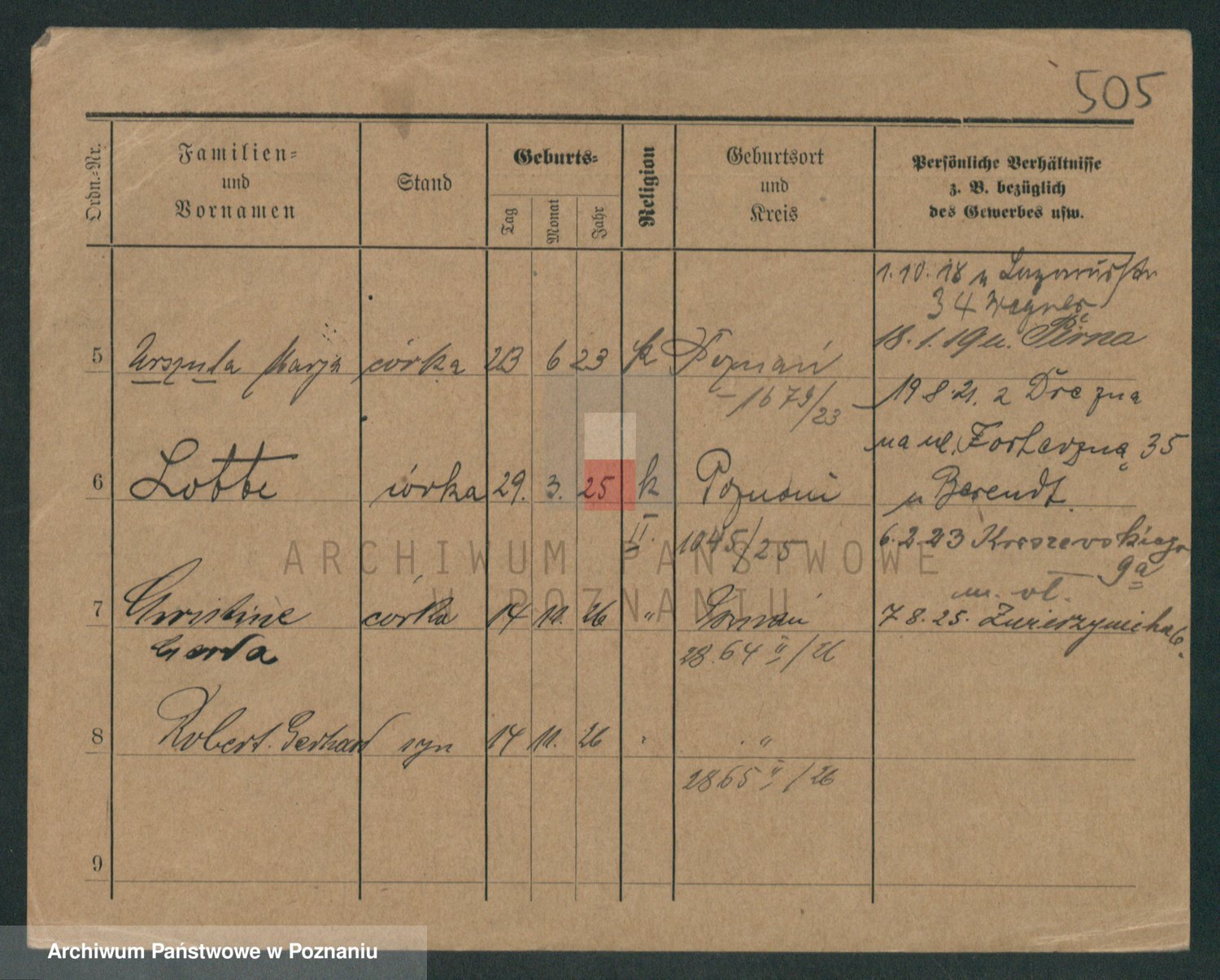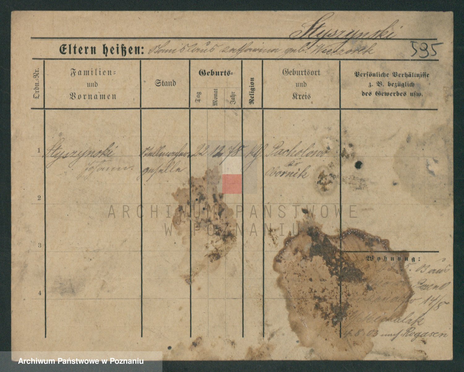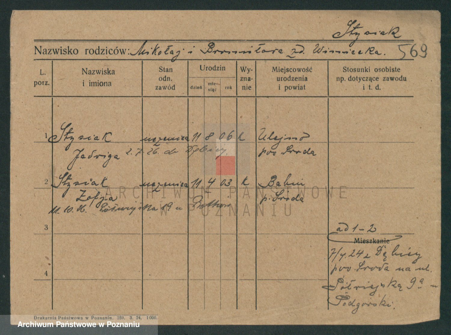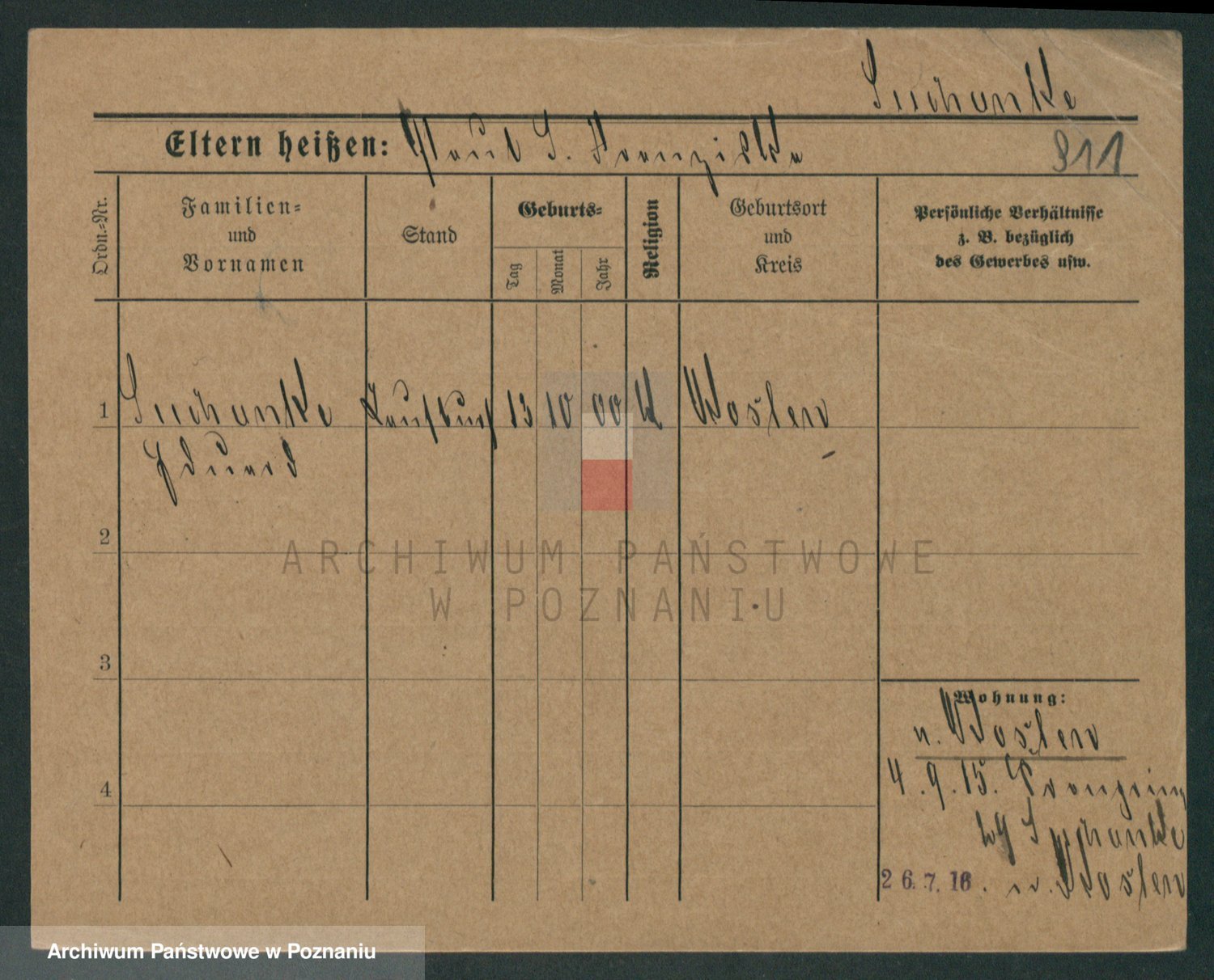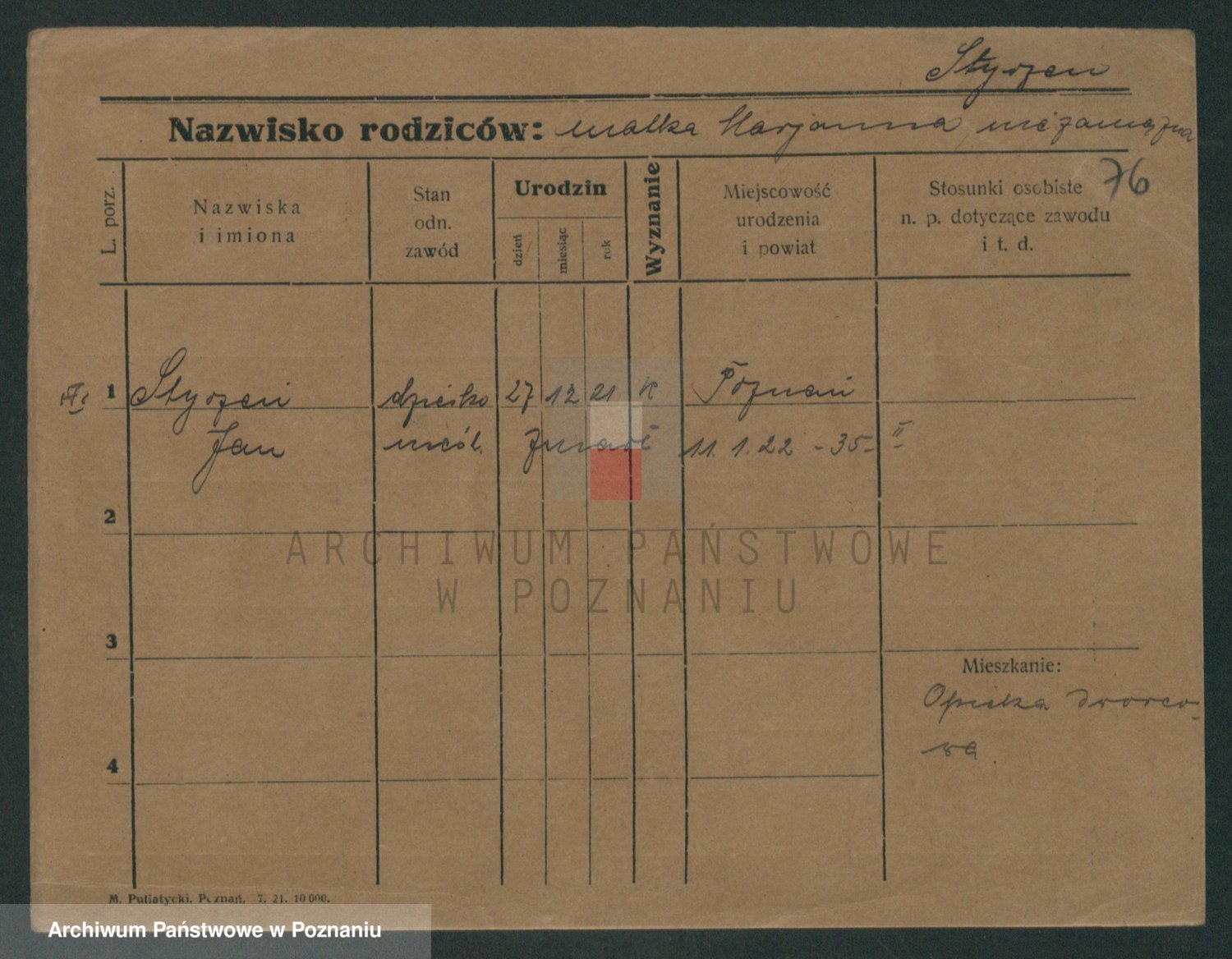Podgląd karty osobowej dostępny jest po kliknięciu na nazwisko lub ikonkę karty. Można dokonywać powiększenia (ikony na górze) lub przechodzić między kolejnymi skanami (strzałki po bokach).