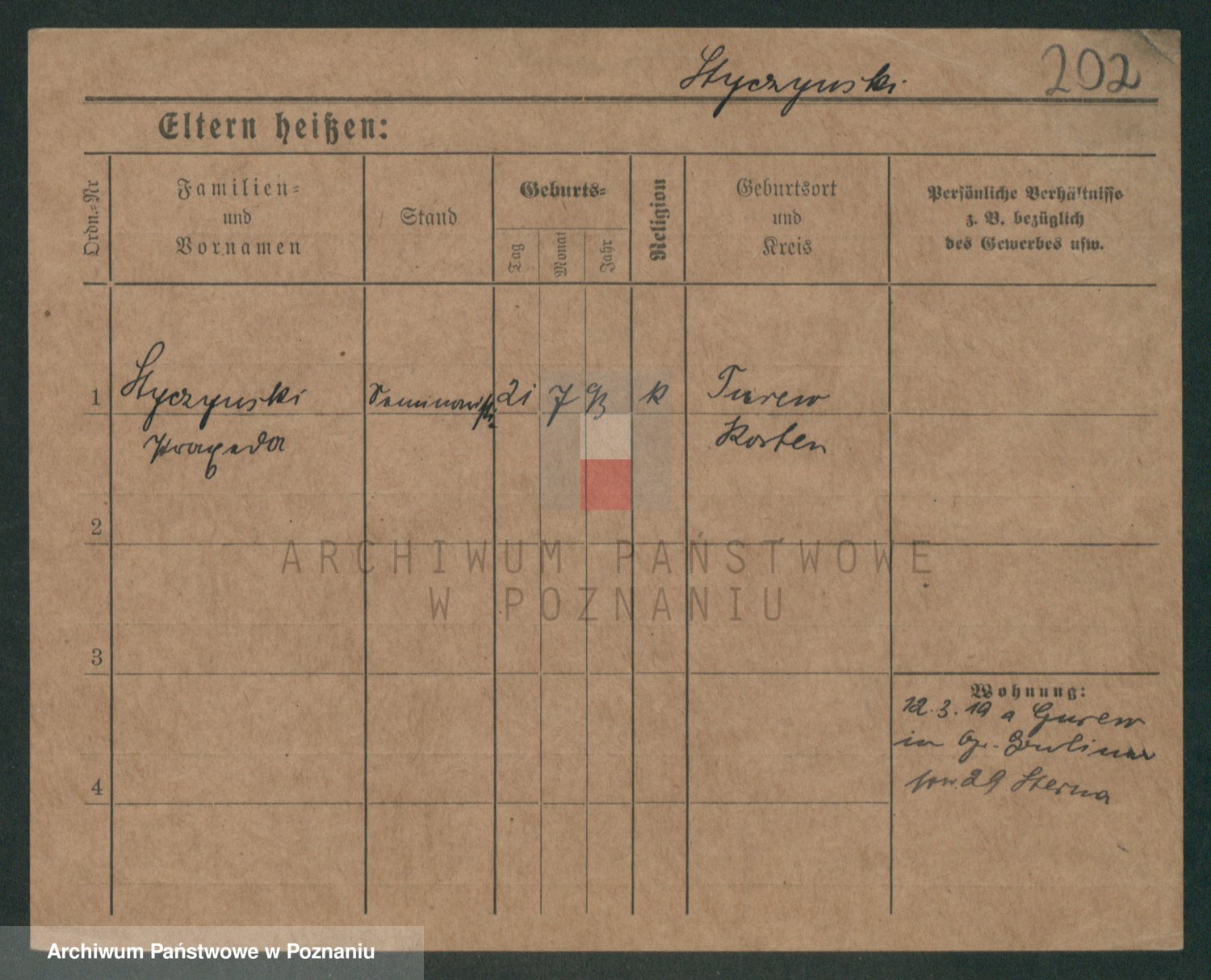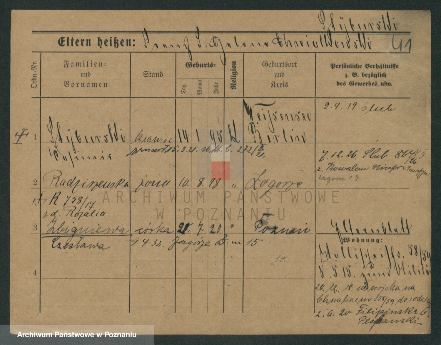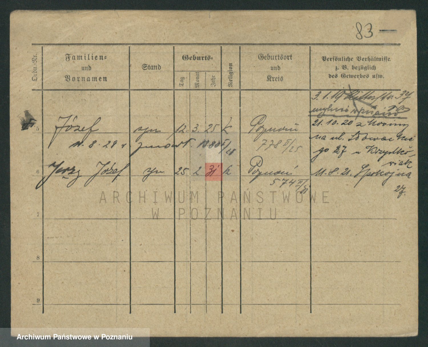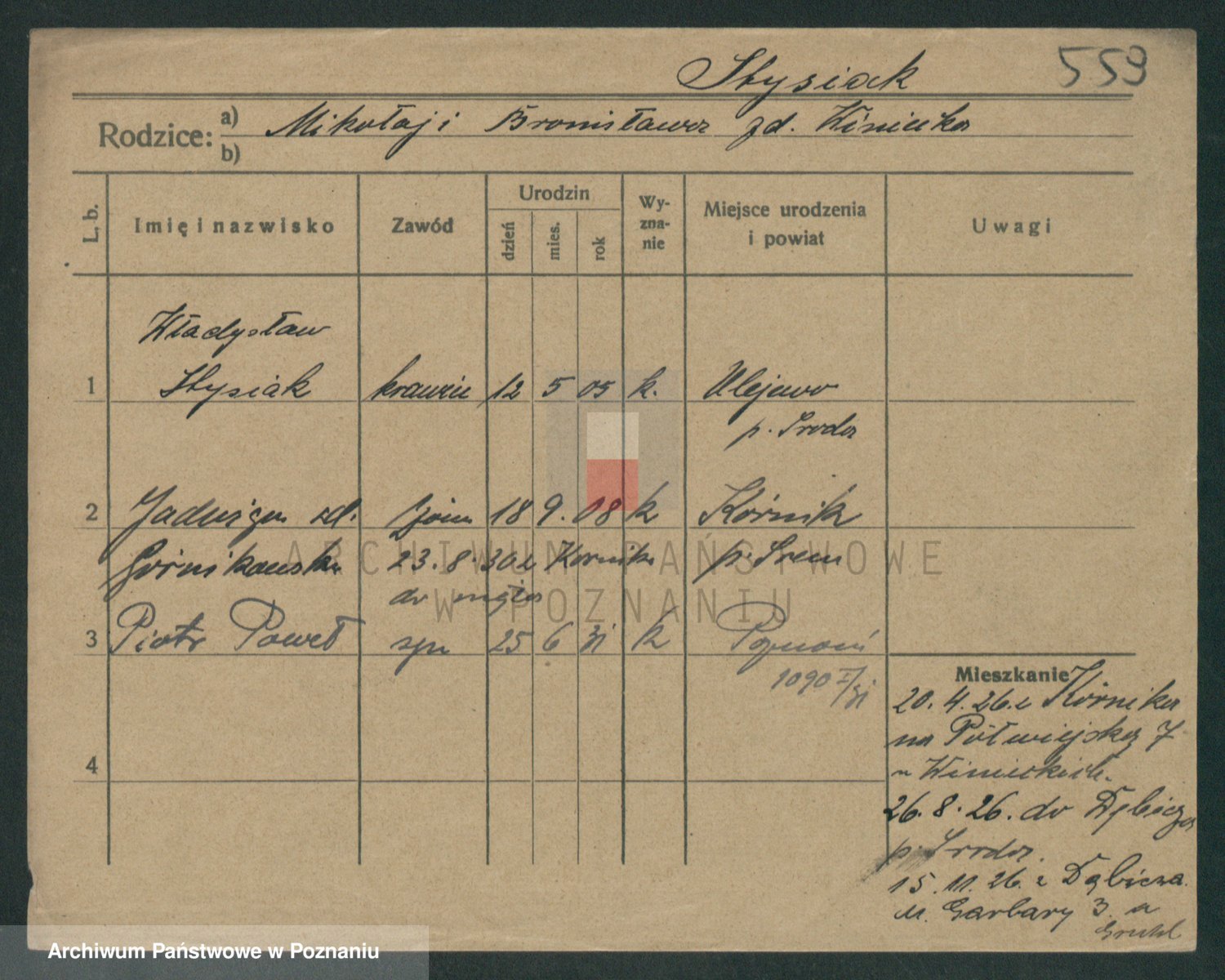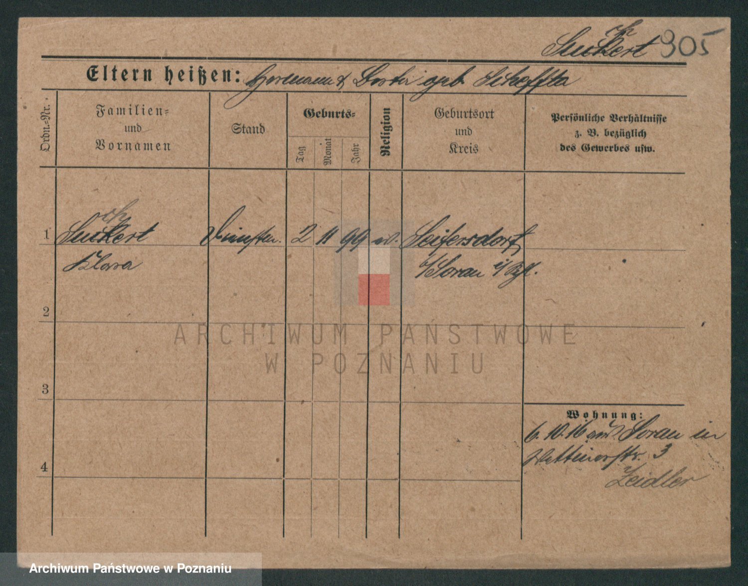 Podgląd karty osobowej dostępny jest po kliknięciu na nazwisko lub ikonkę karty. Można dokonywać powiększenia (ikony na górze) lub przechodzić między kolejnymi skanami (strzałki po bokach).