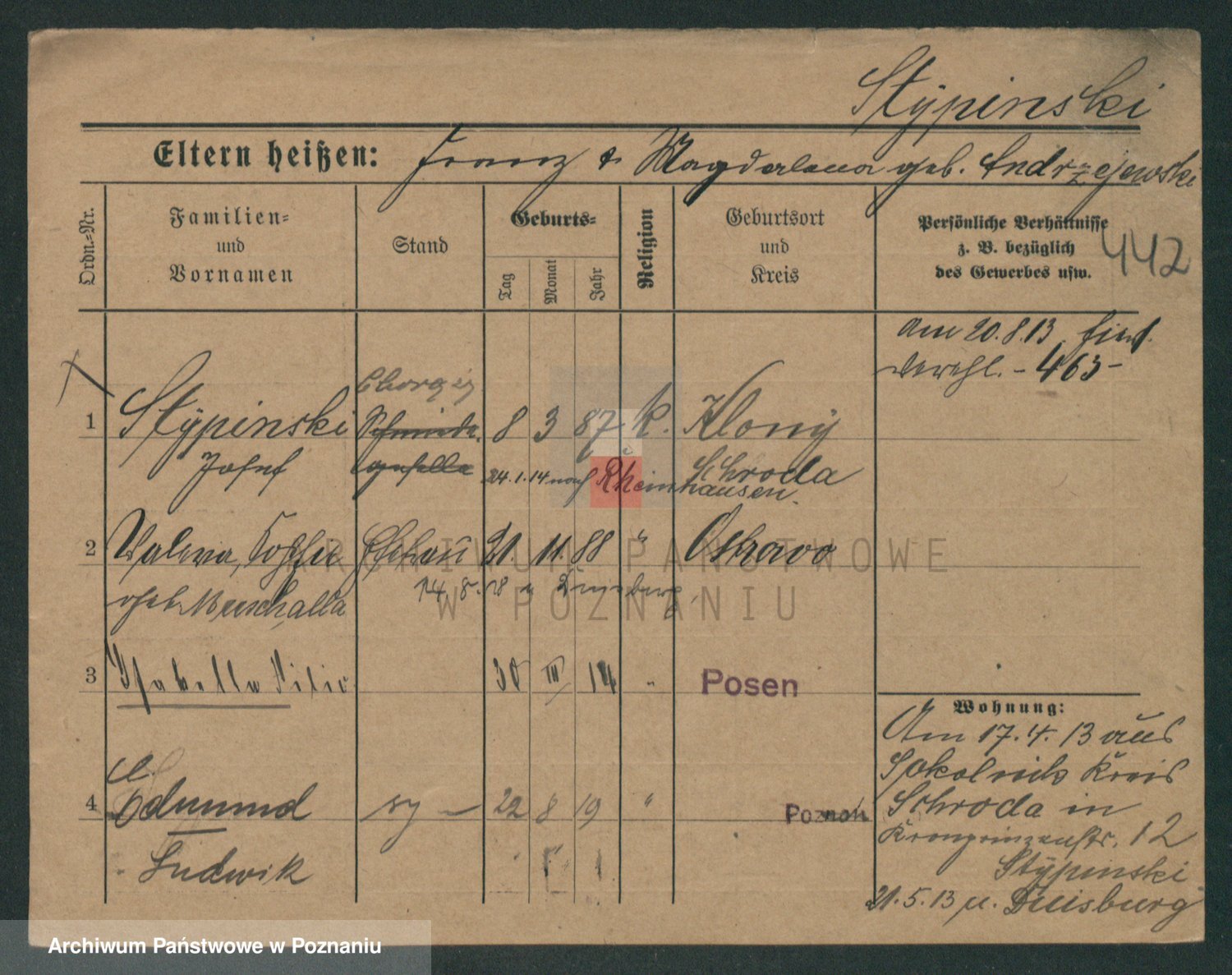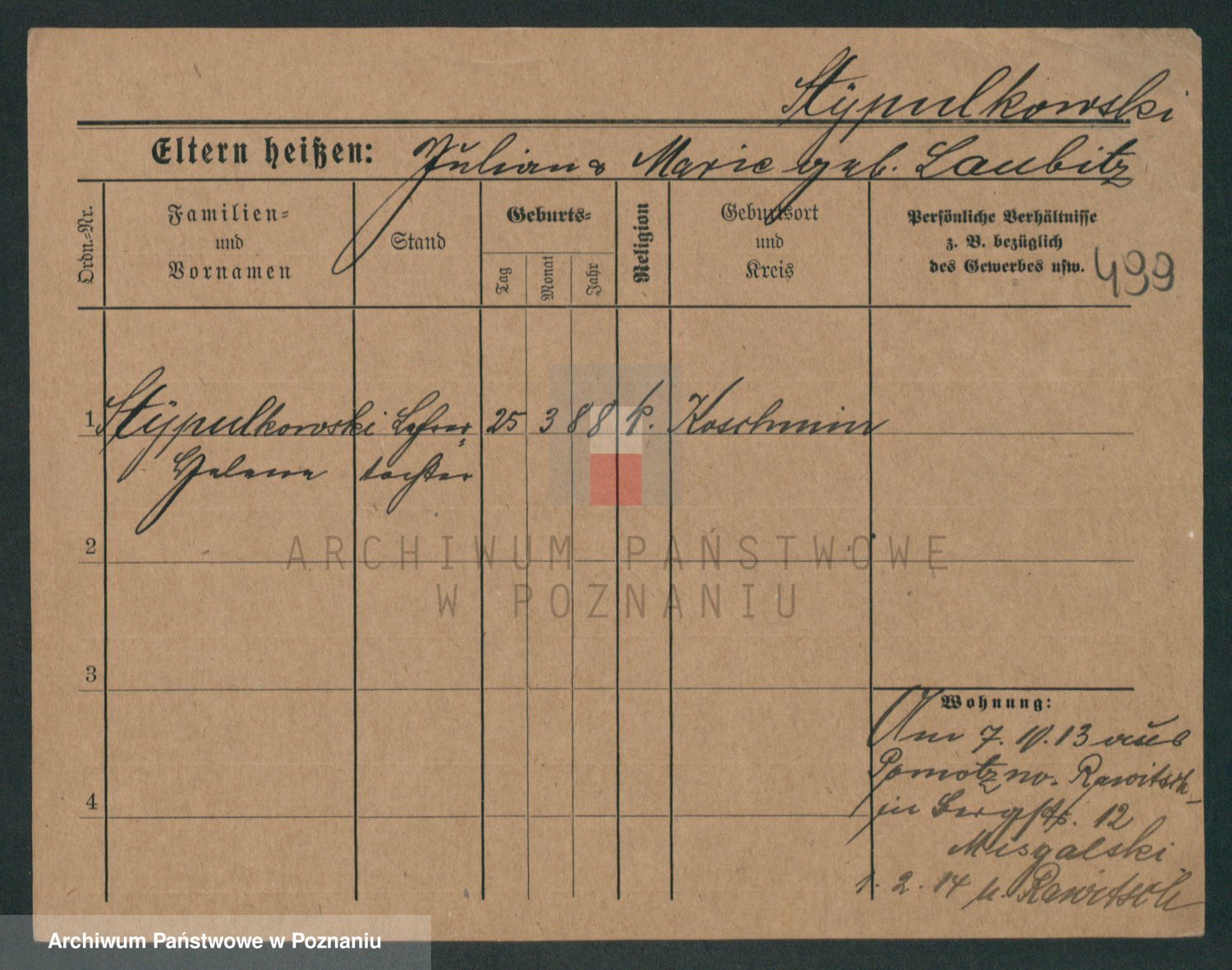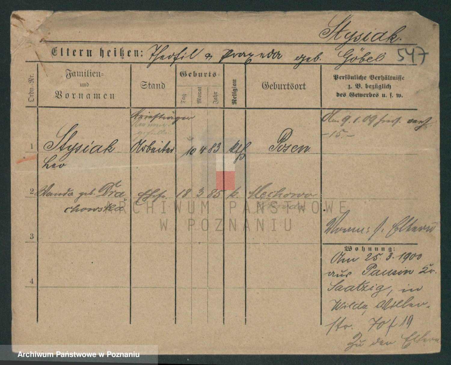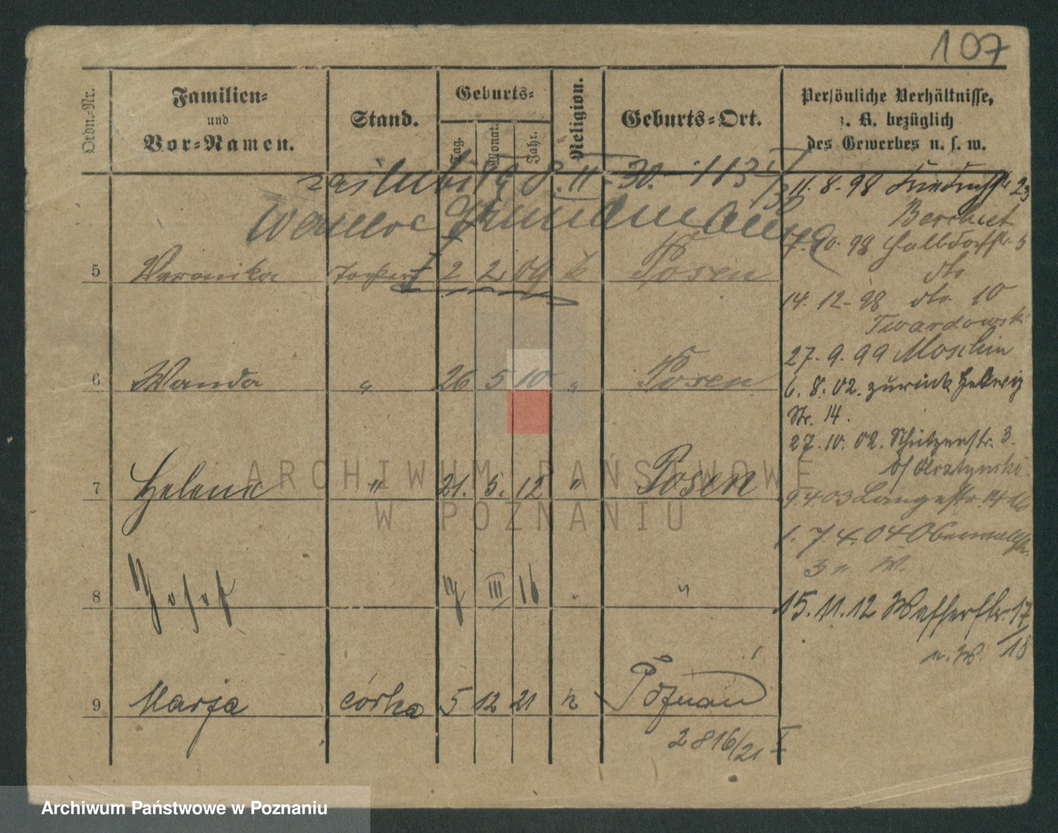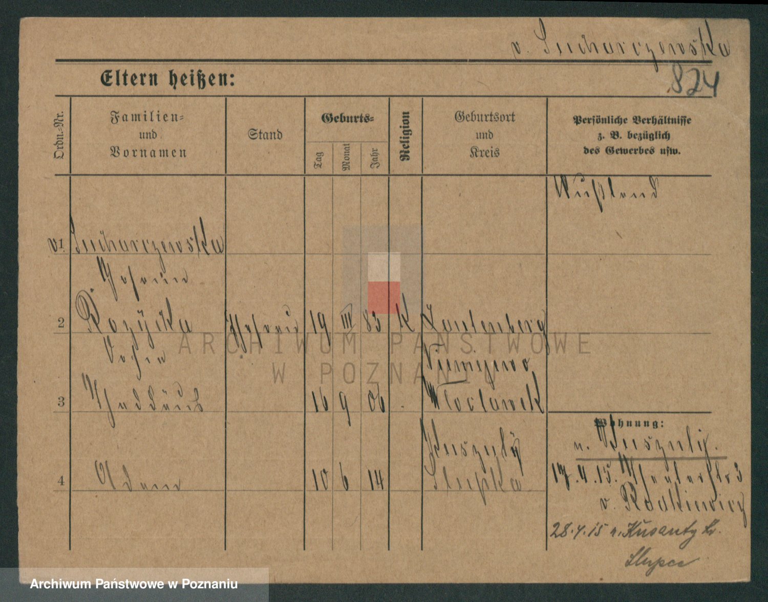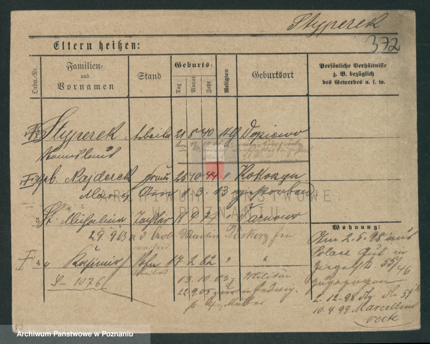 Podgląd karty osobowej dostępny jest po kliknięciu na nazwisko lub ikonkę karty. Można dokonywać powiększenia (ikony na górze) lub przechodzić między kolejnymi skanami (strzałki po bokach).