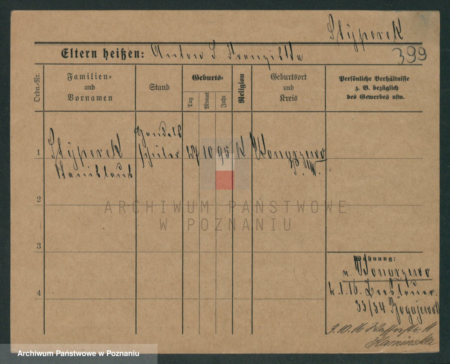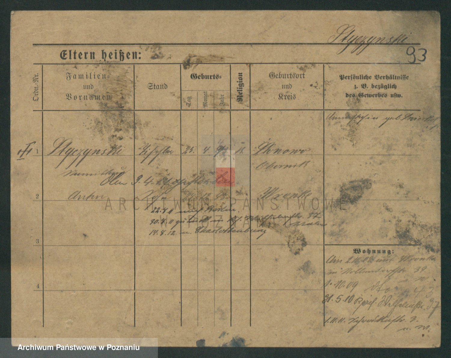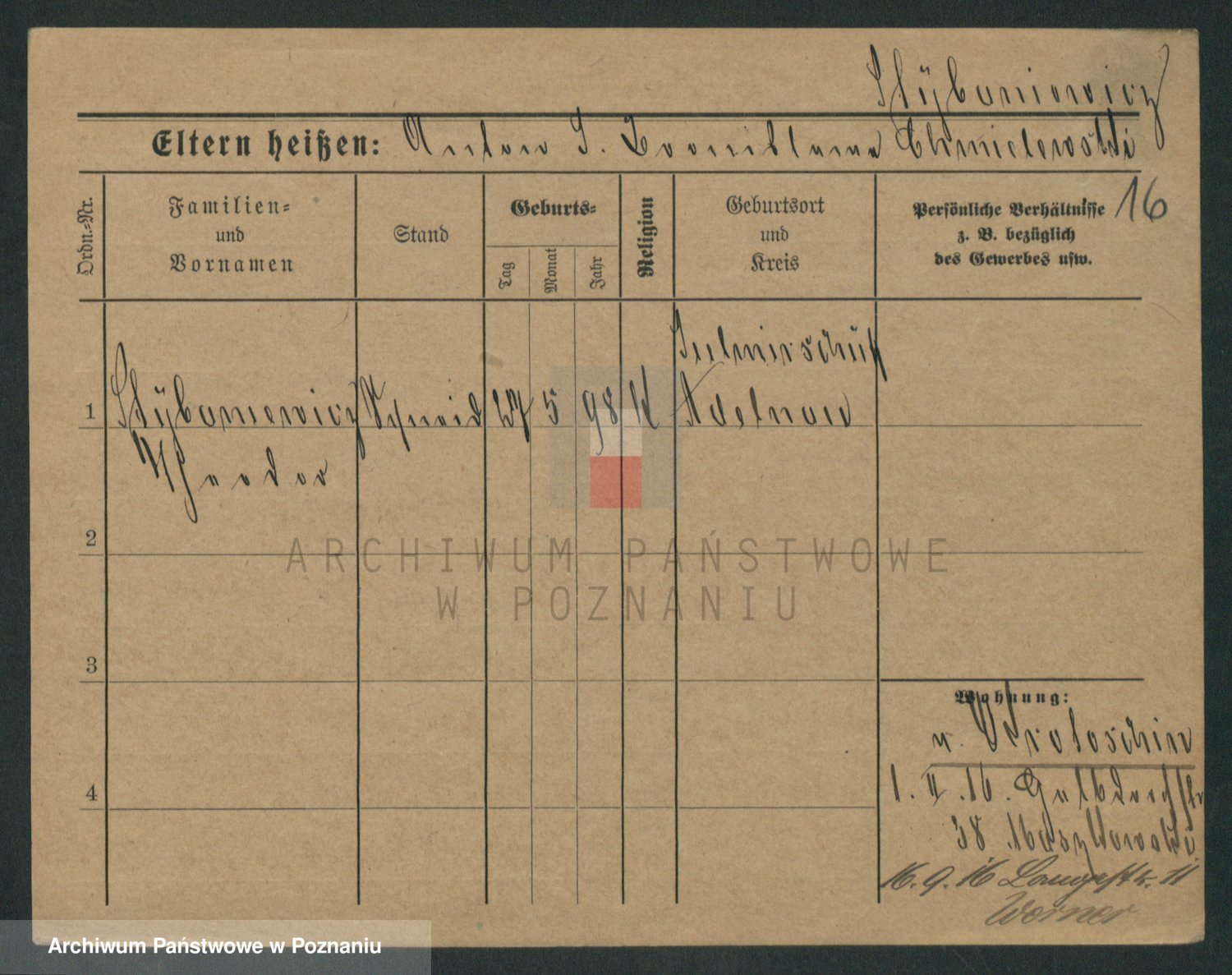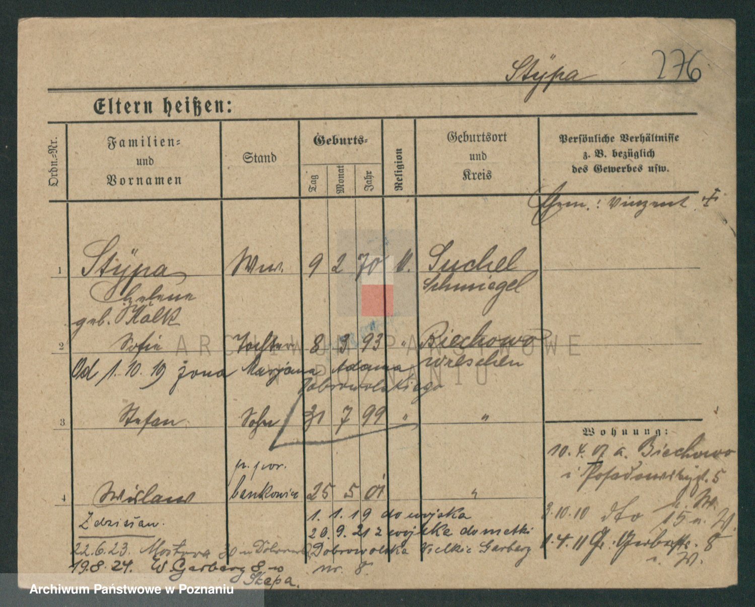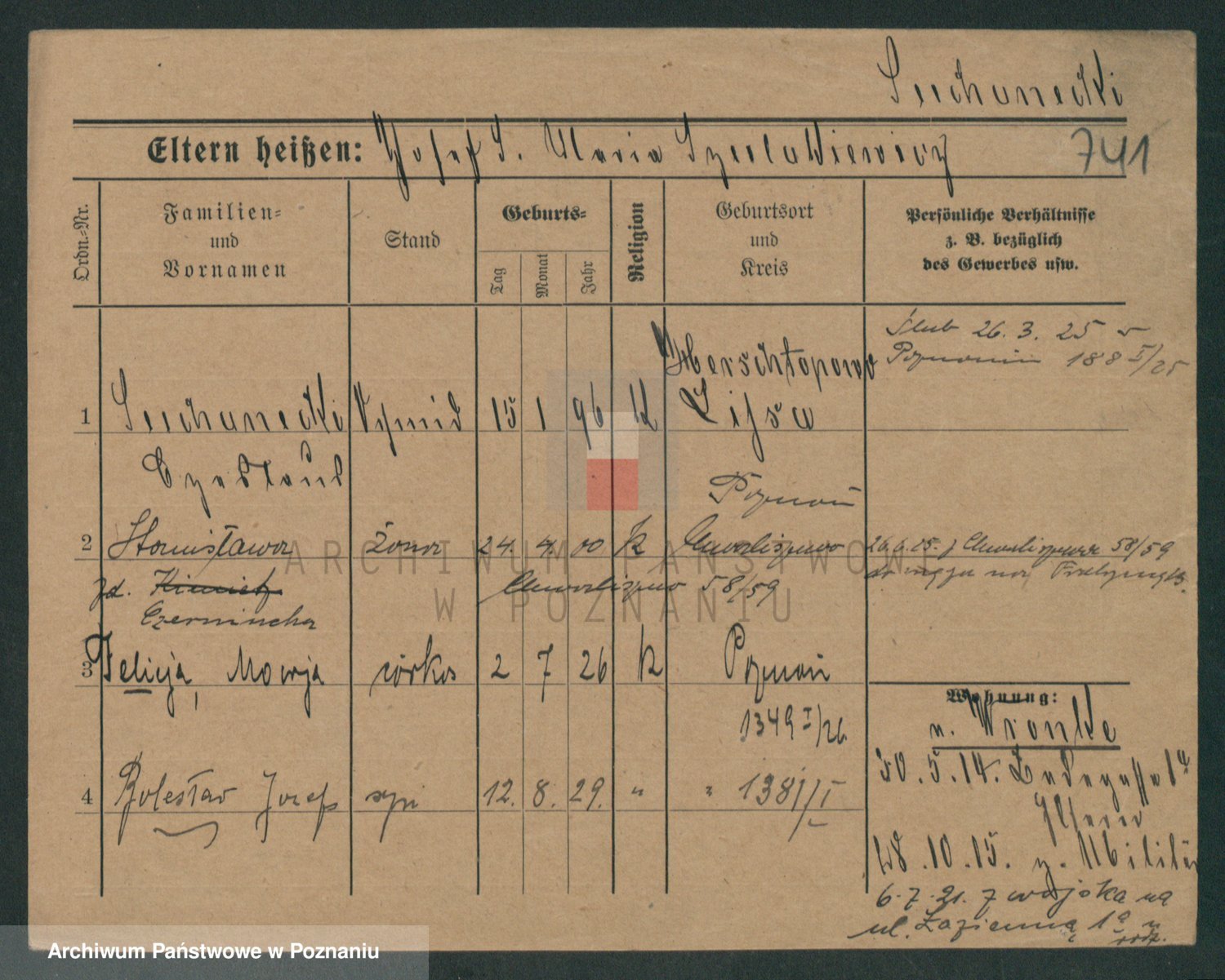 Podgląd karty osobowej dostępny jest po kliknięciu na nazwisko lub ikonkę karty. Można dokonywać powiększenia (ikony na górze) lub przechodzić między kolejnymi skanami (strzałki po bokach).