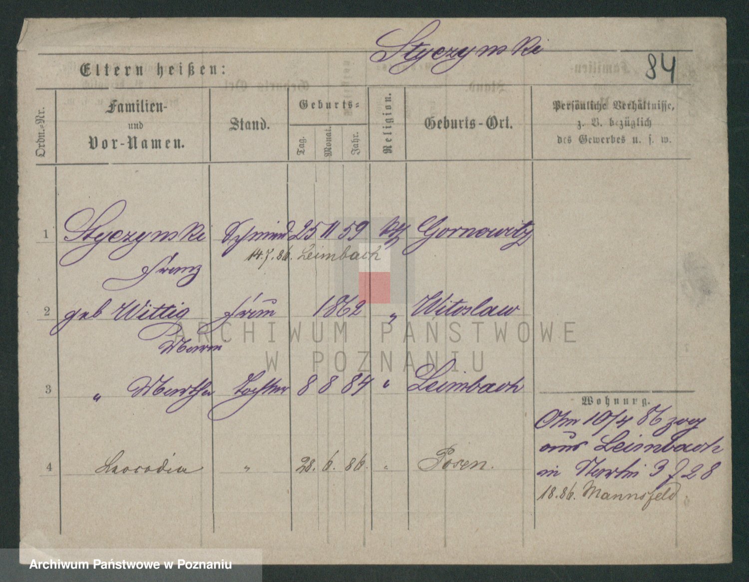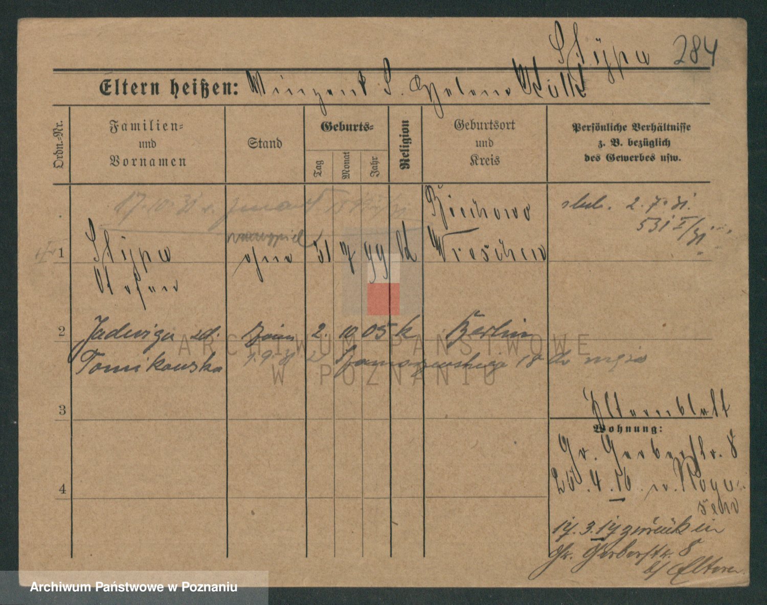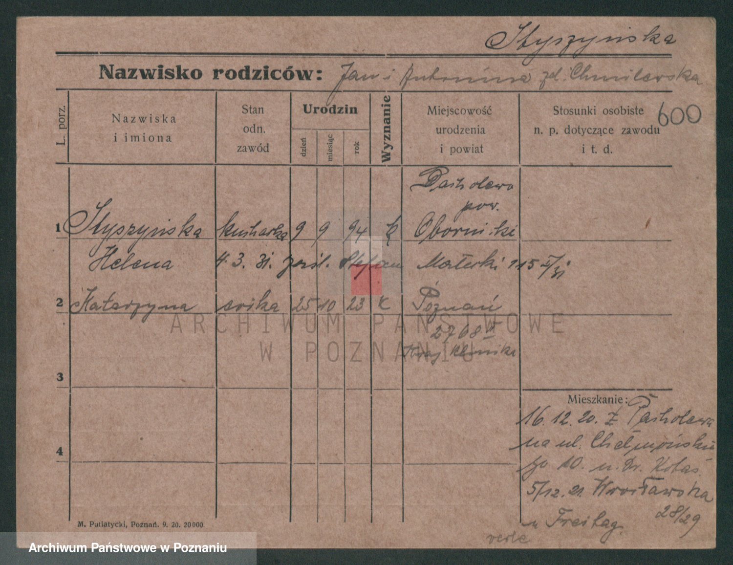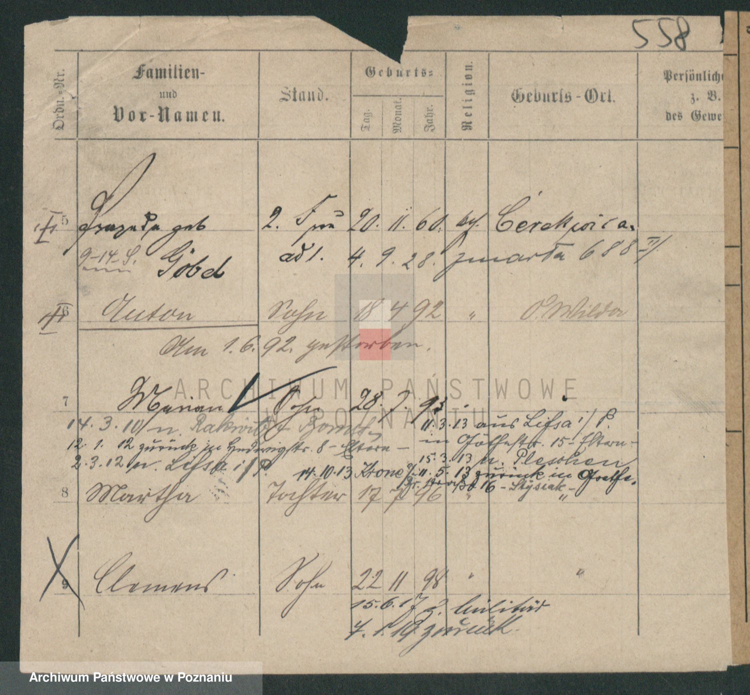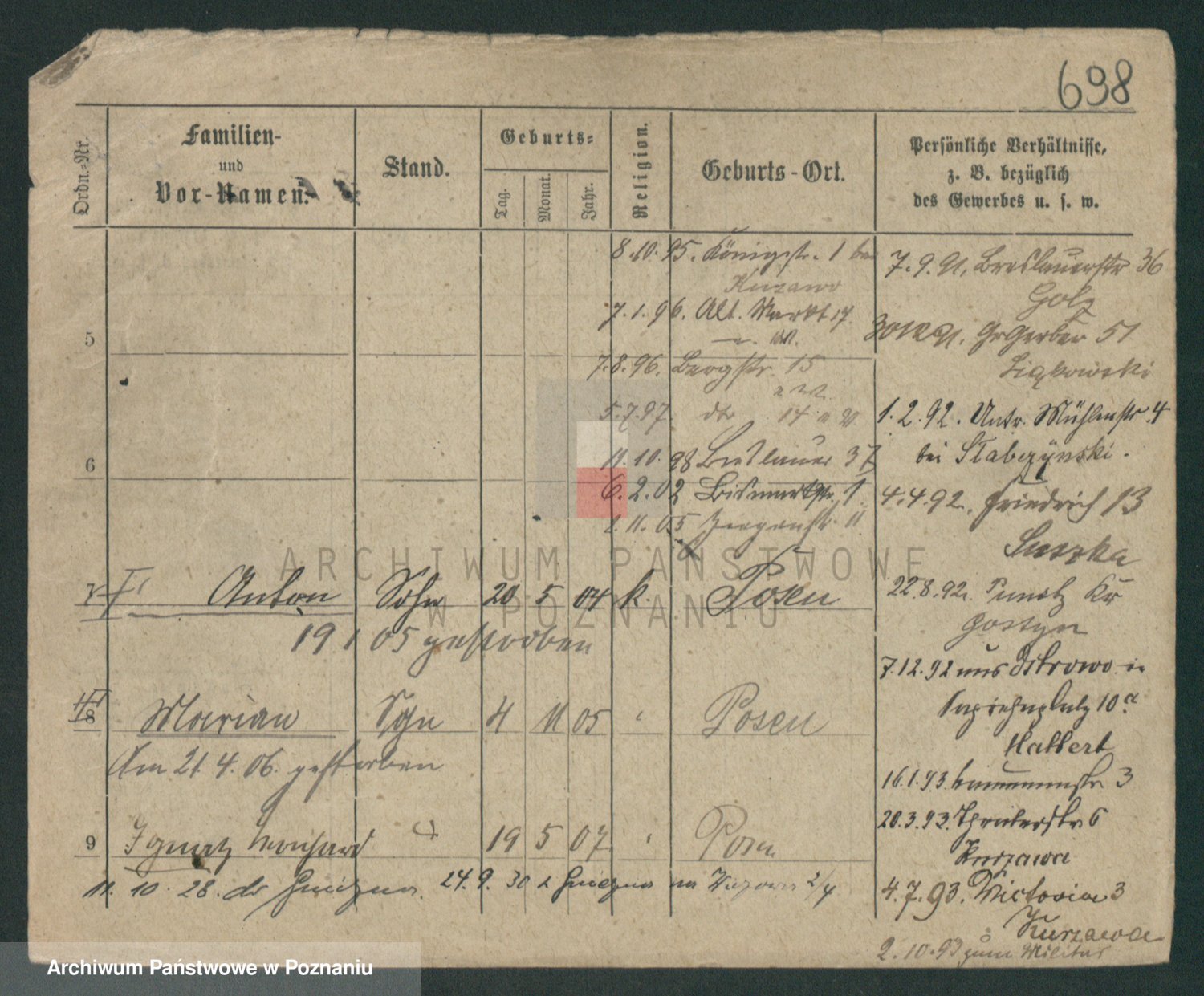 Podgląd karty osobowej dostępny jest po kliknięciu na nazwisko lub ikonkę karty. Można dokonywać powiększenia (ikony na górze) lub przechodzić między kolejnymi skanami (strzałki po bokach).