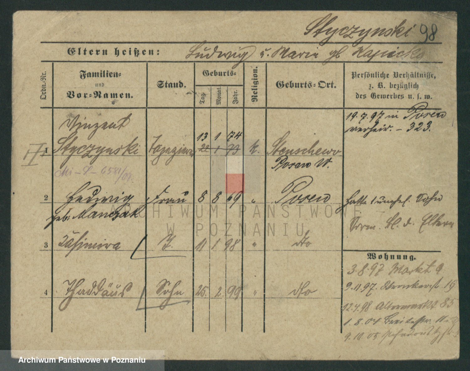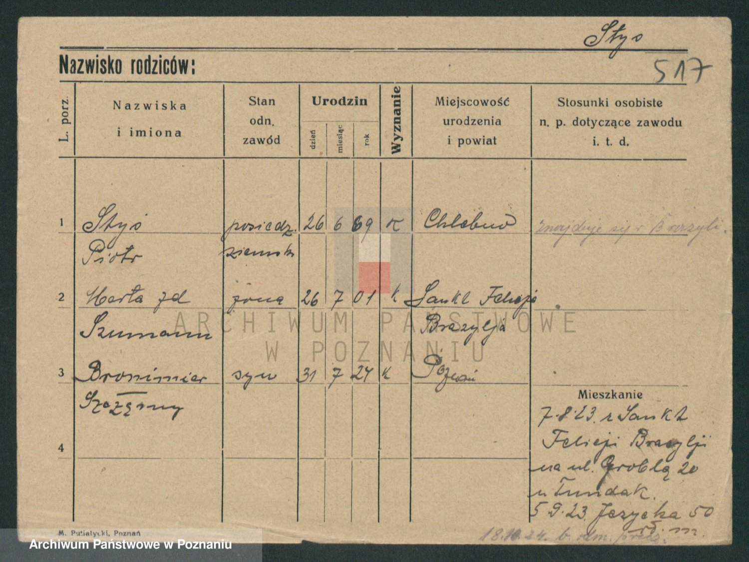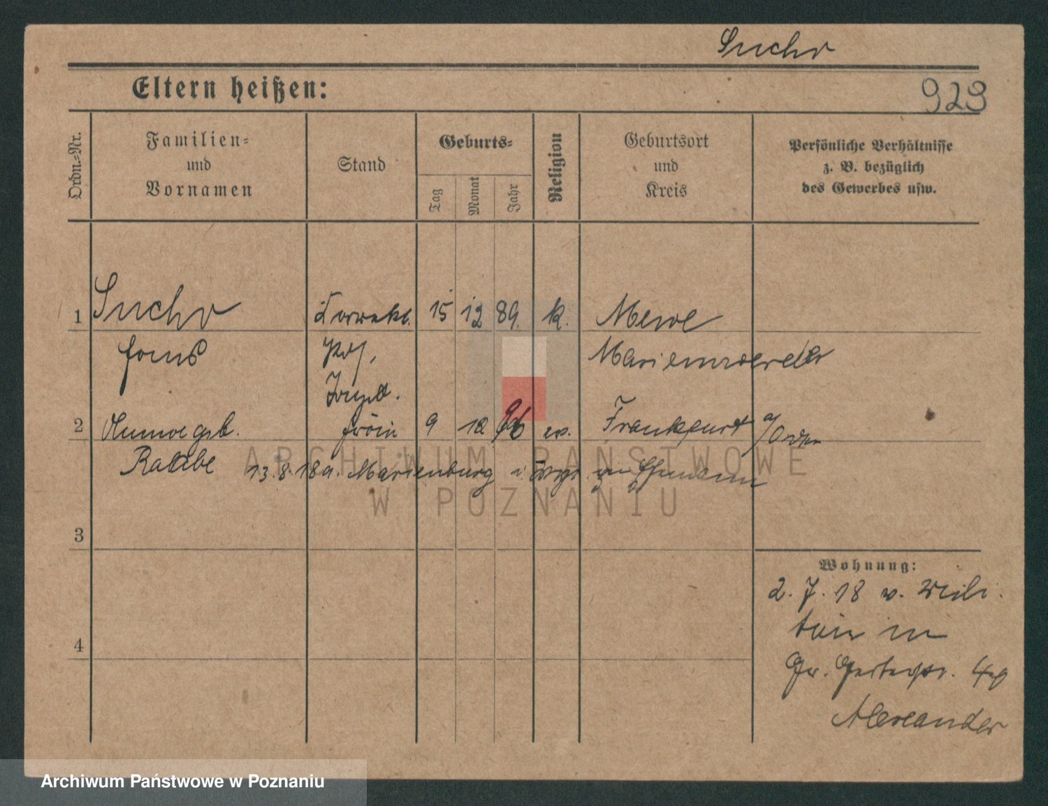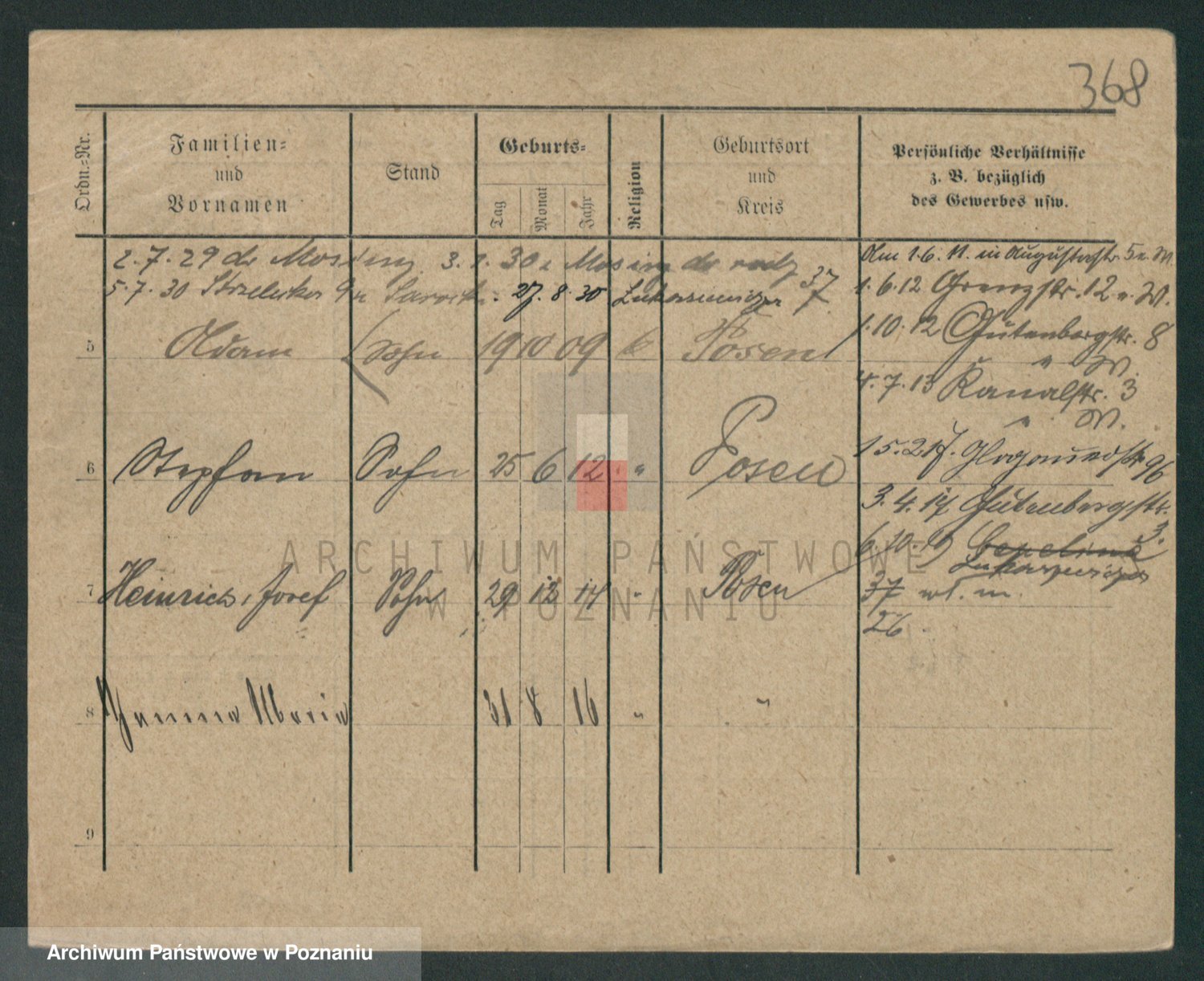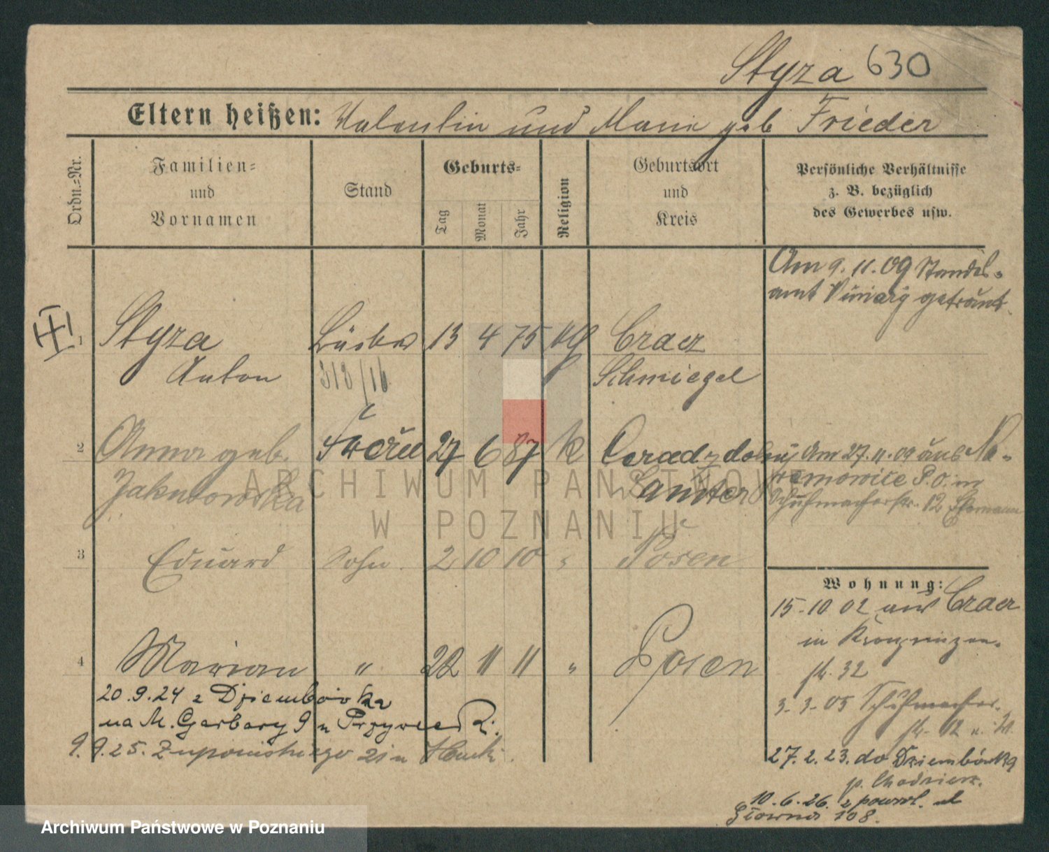 Podgląd karty osobowej dostępny jest po kliknięciu na nazwisko lub ikonkę karty. Można dokonywać powiększenia (ikony na górze) lub przechodzić między kolejnymi skanami (strzałki po bokach).