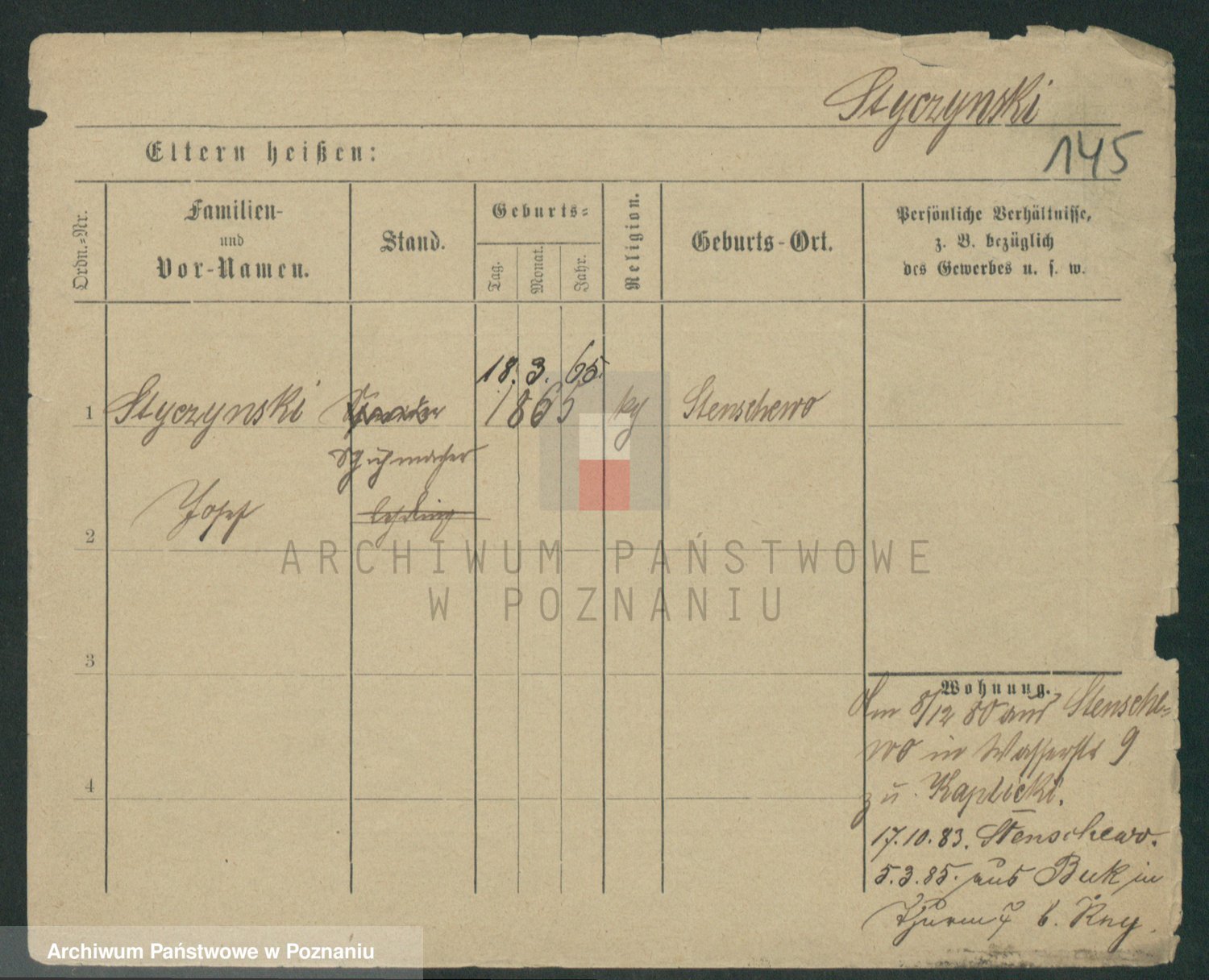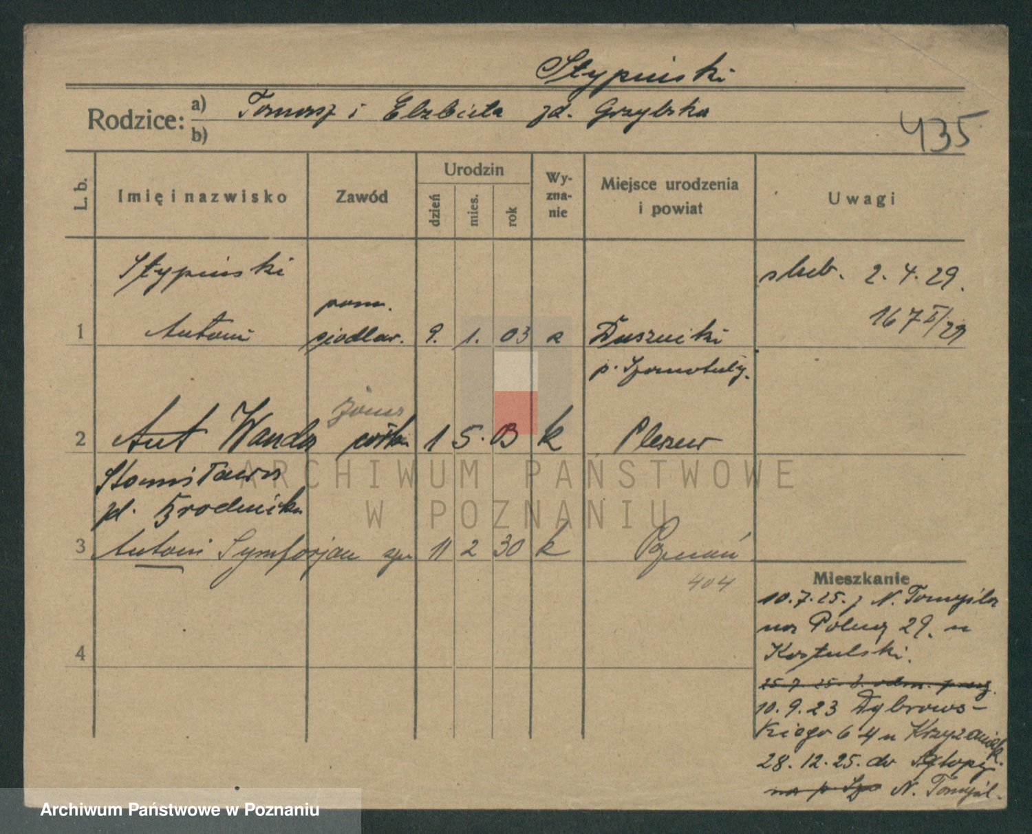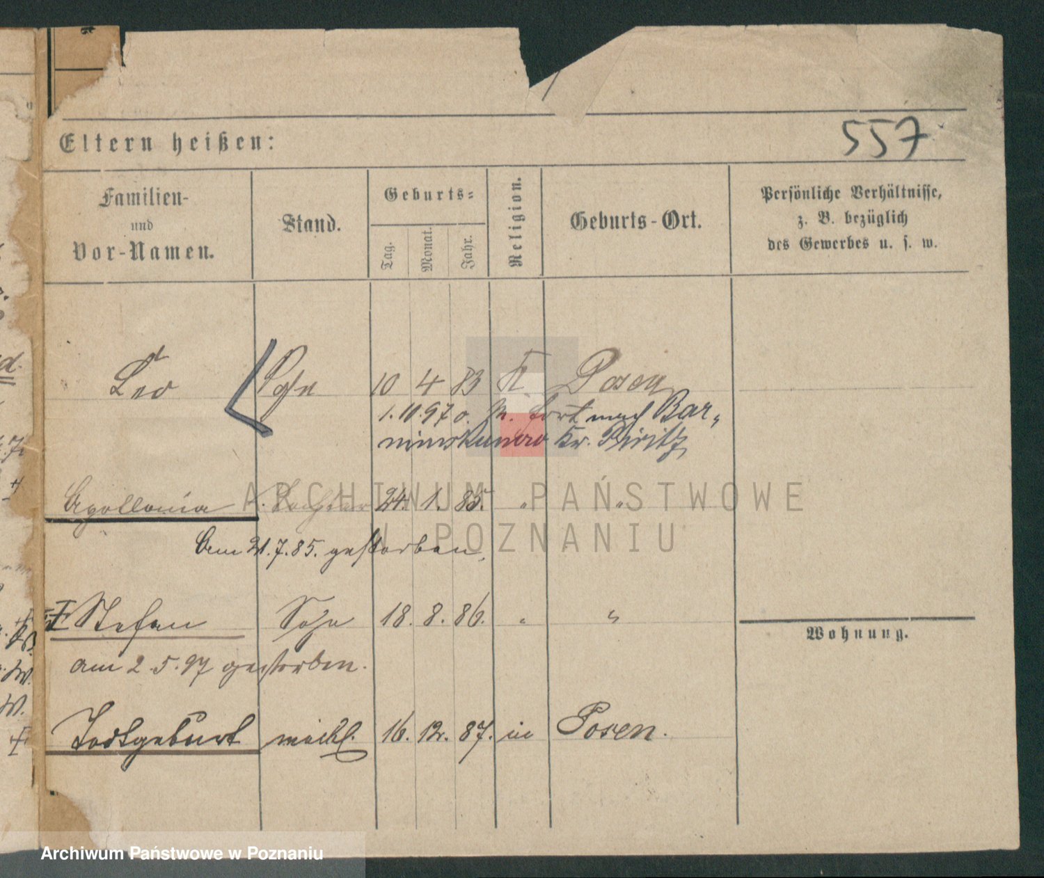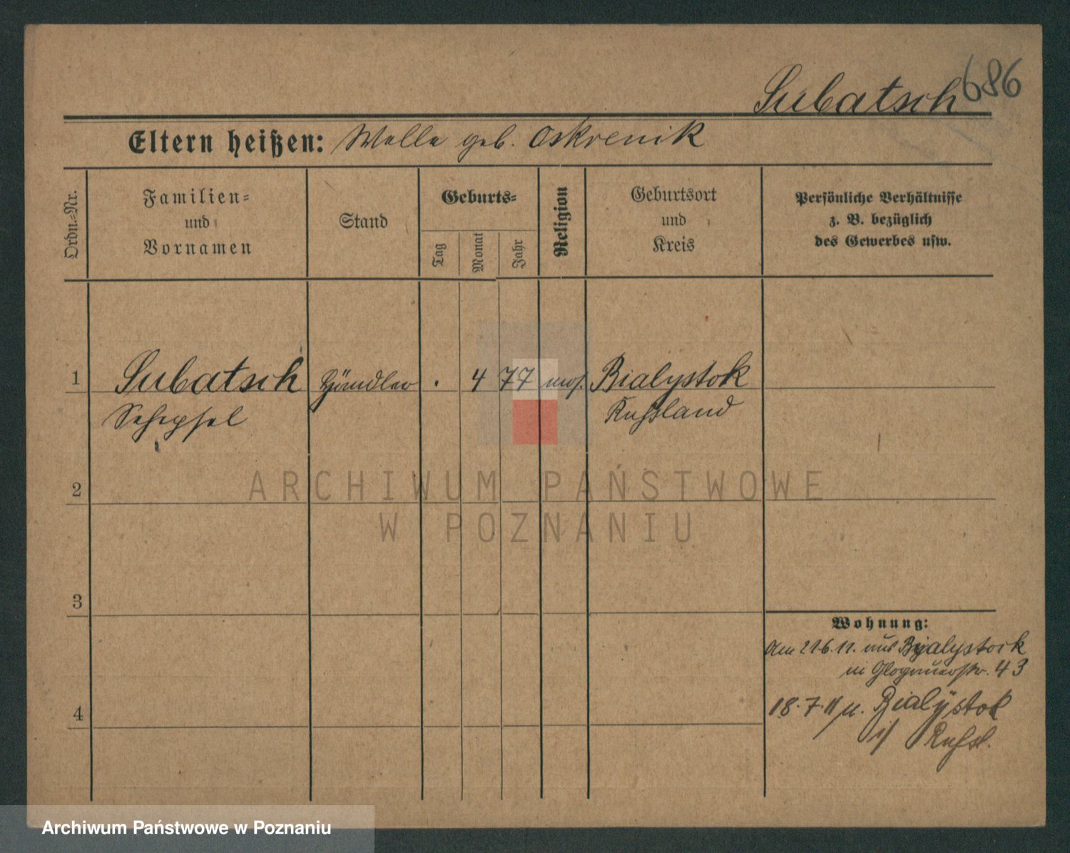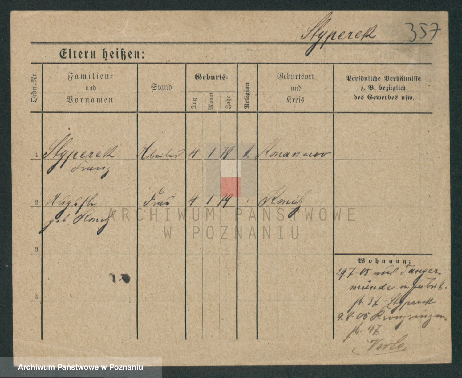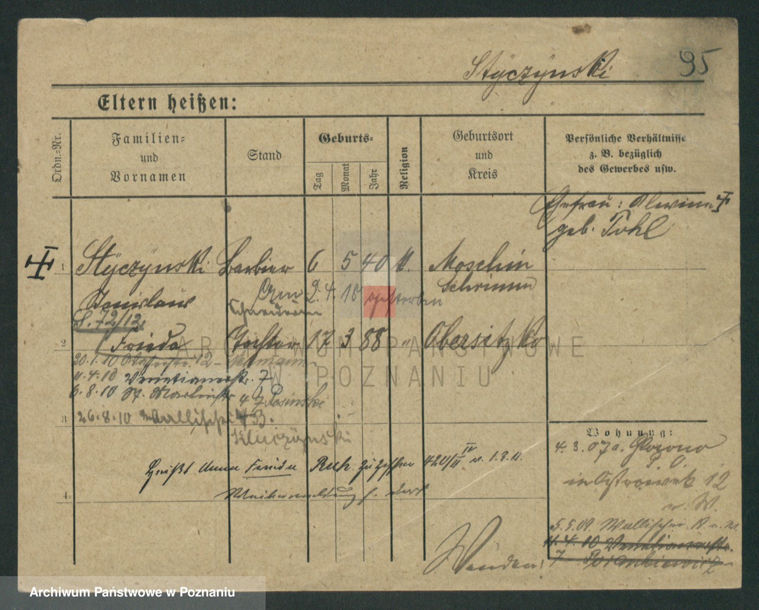 Podgląd karty osobowej dostępny jest po kliknięciu na nazwisko lub ikonkę karty. Można dokonywać powiększenia (ikony na górze) lub przechodzić między kolejnymi skanami (strzałki po bokach).