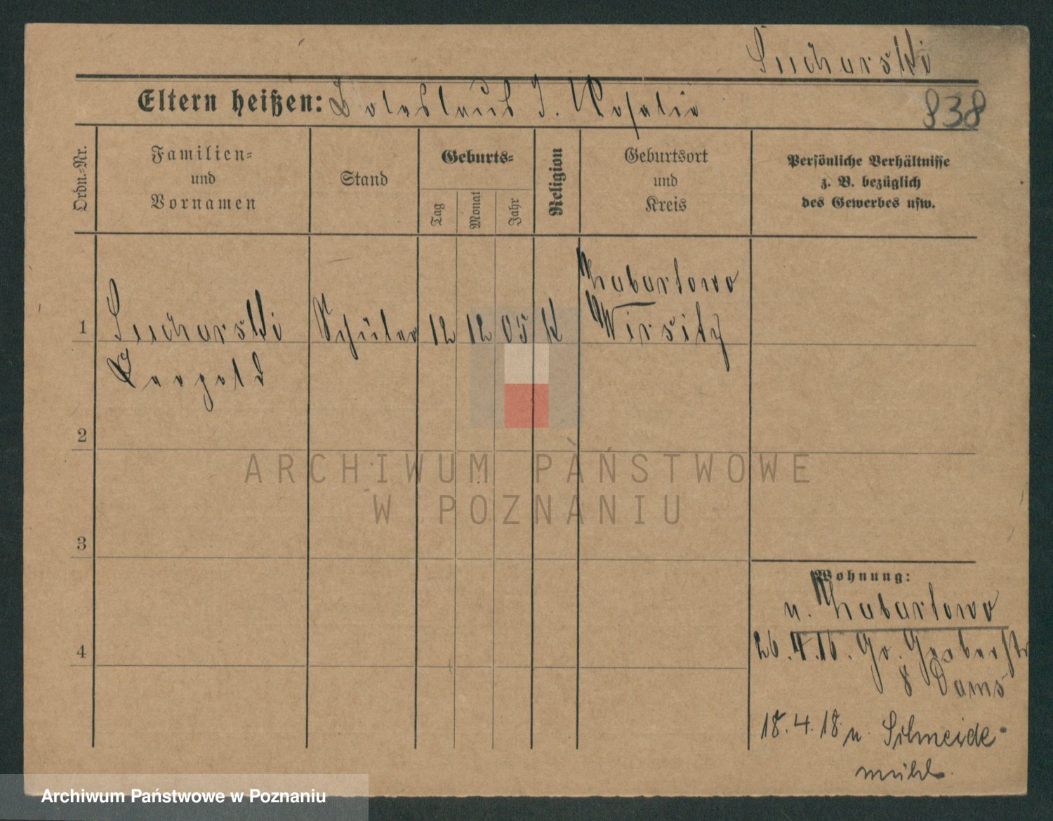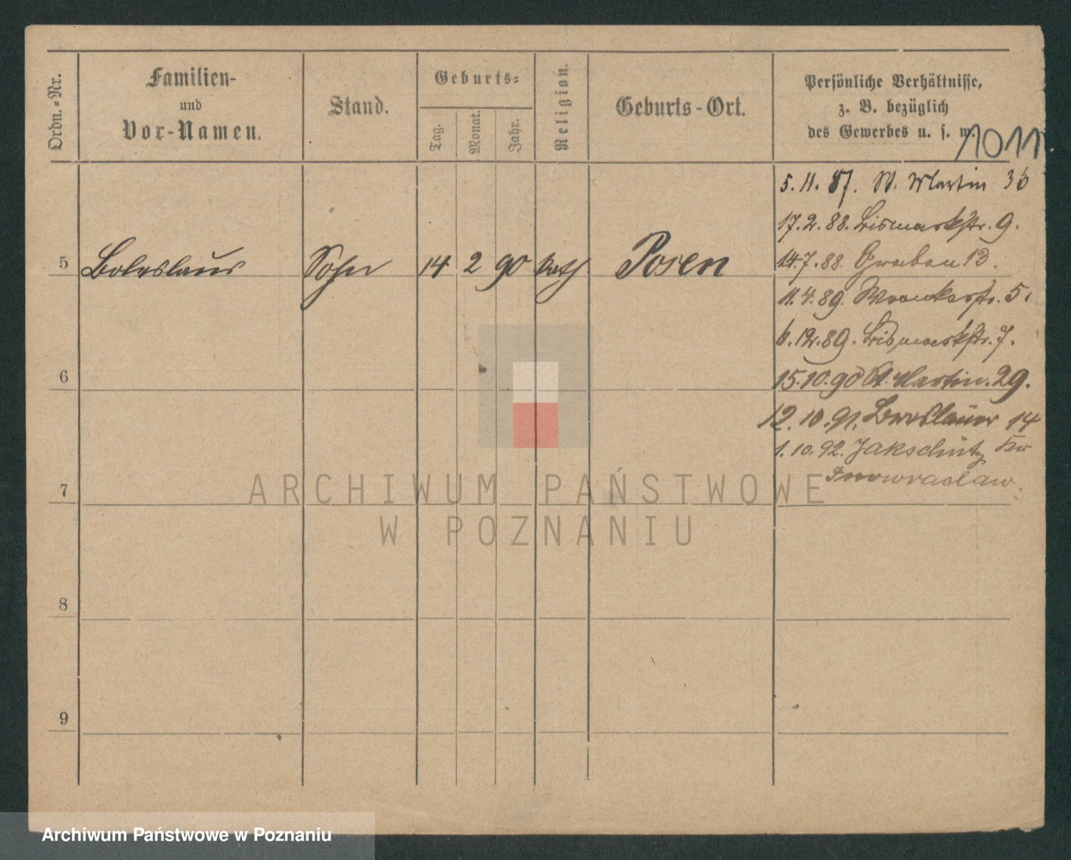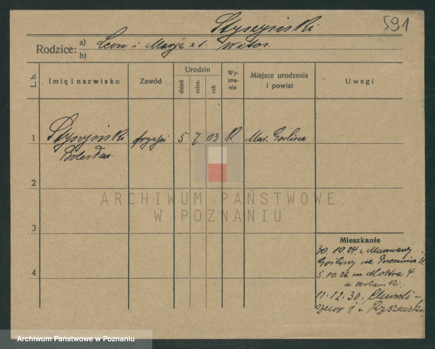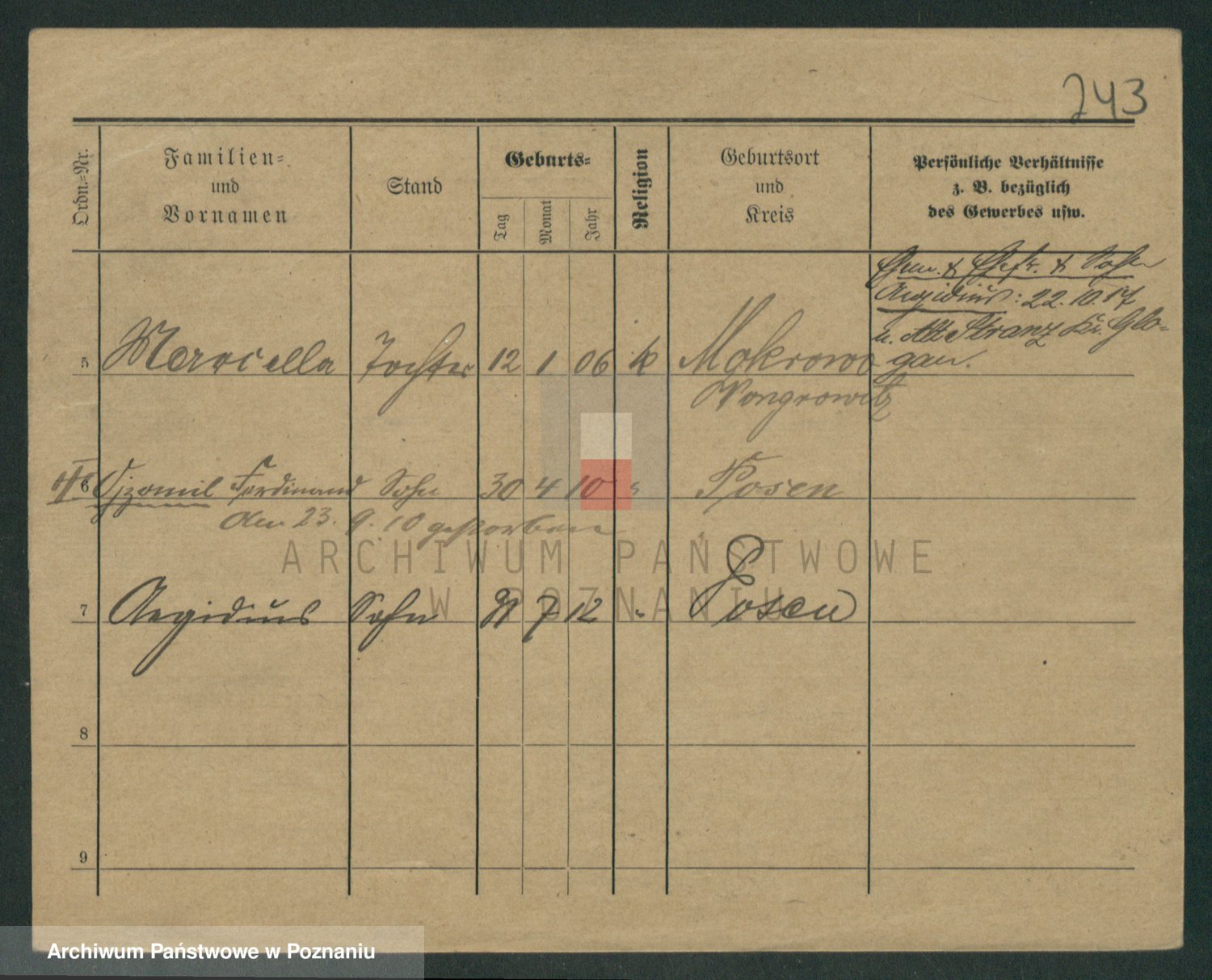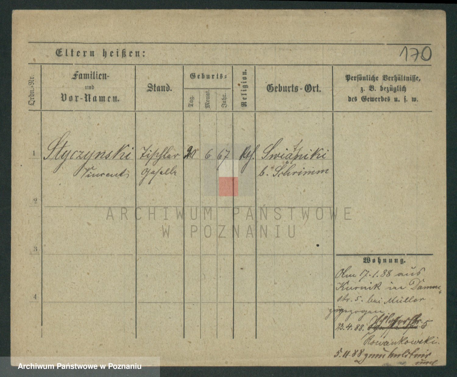 Podgląd karty osobowej dostępny jest po kliknięciu na nazwisko lub ikonkę karty. Można dokonywać powiększenia (ikony na górze) lub przechodzić między kolejnymi skanami (strzałki po bokach).