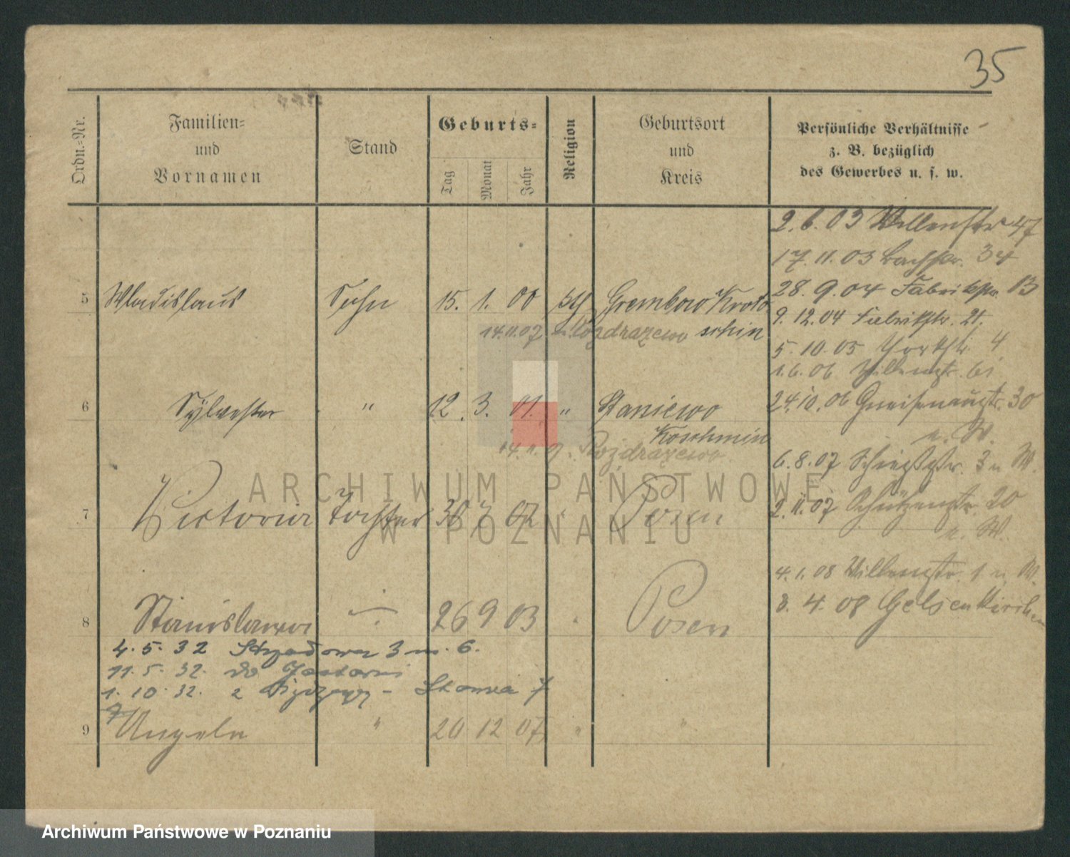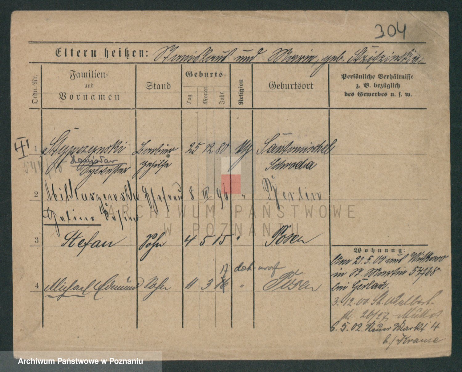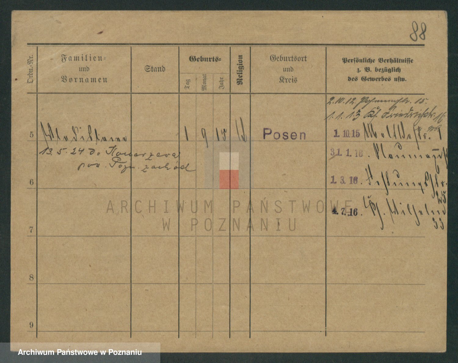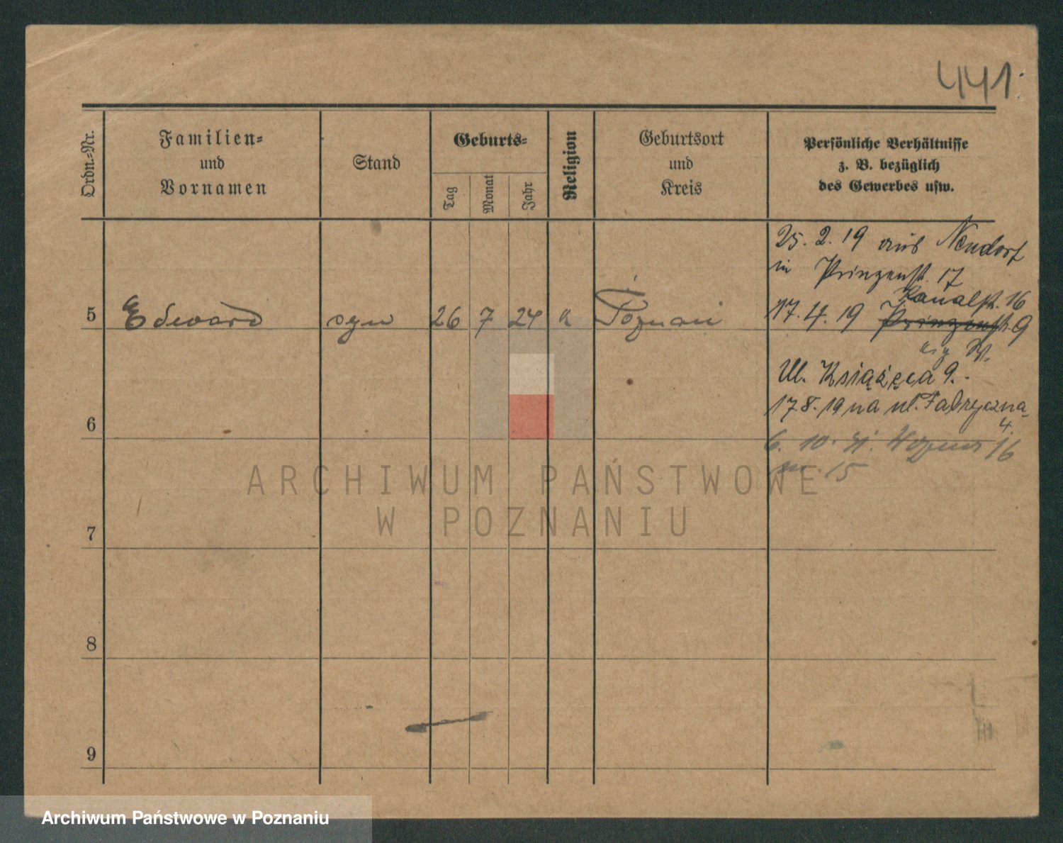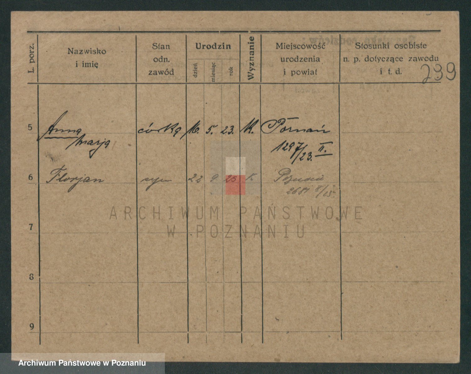 Podgląd karty osobowej dostępny jest po kliknięciu na nazwisko lub ikonkę karty. Można dokonywać powiększenia (ikony na górze) lub przechodzić między kolejnymi skanami (strzałki po bokach).