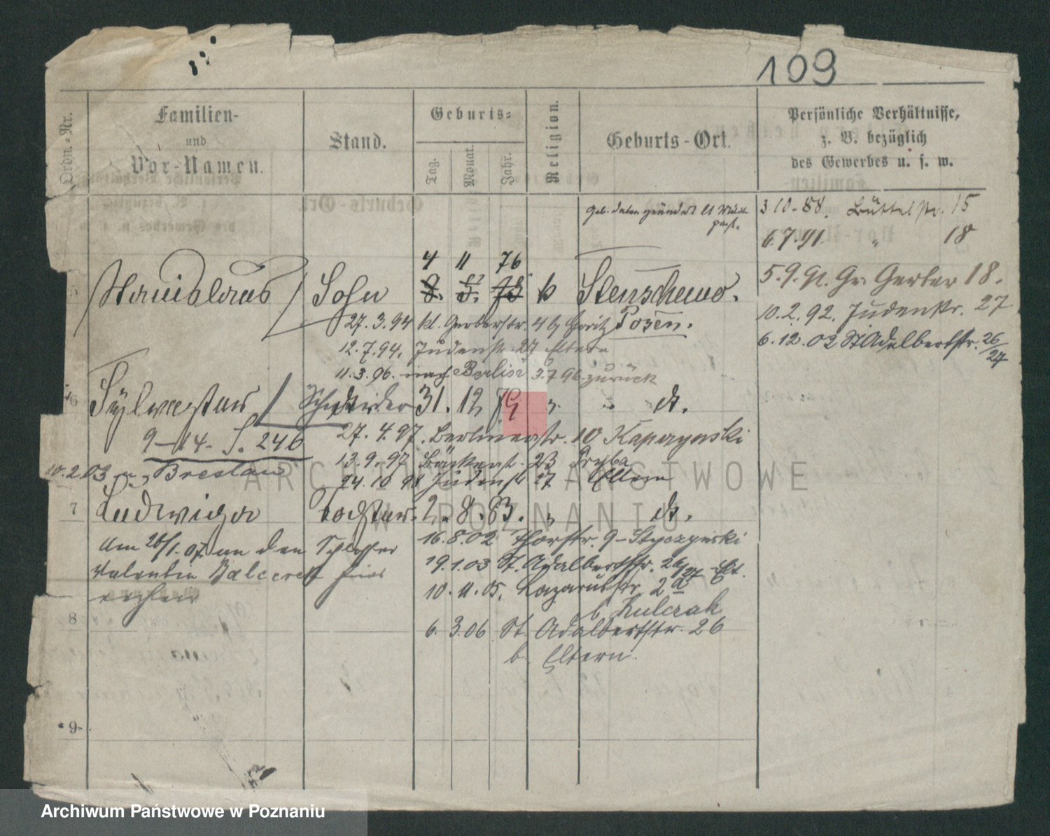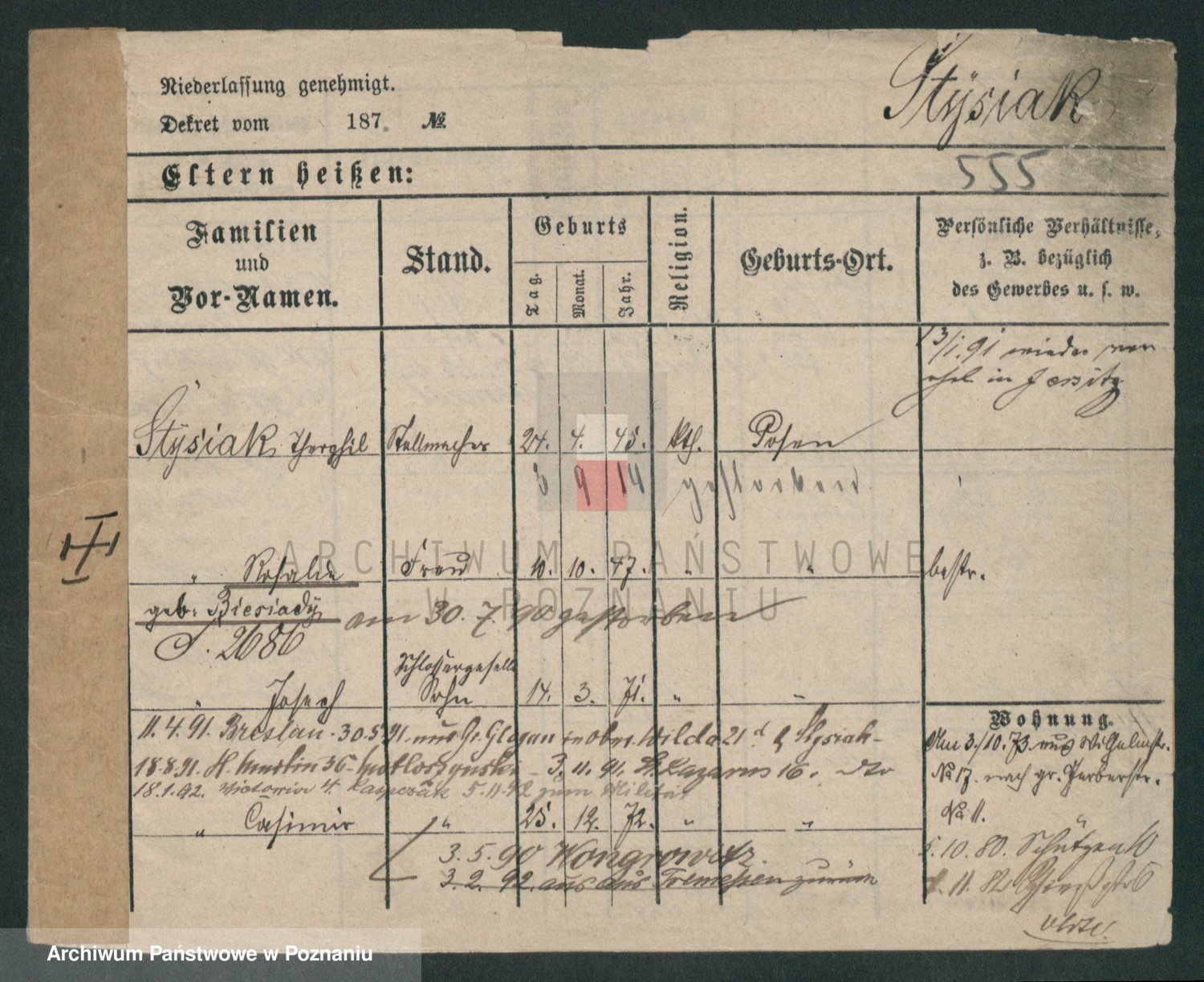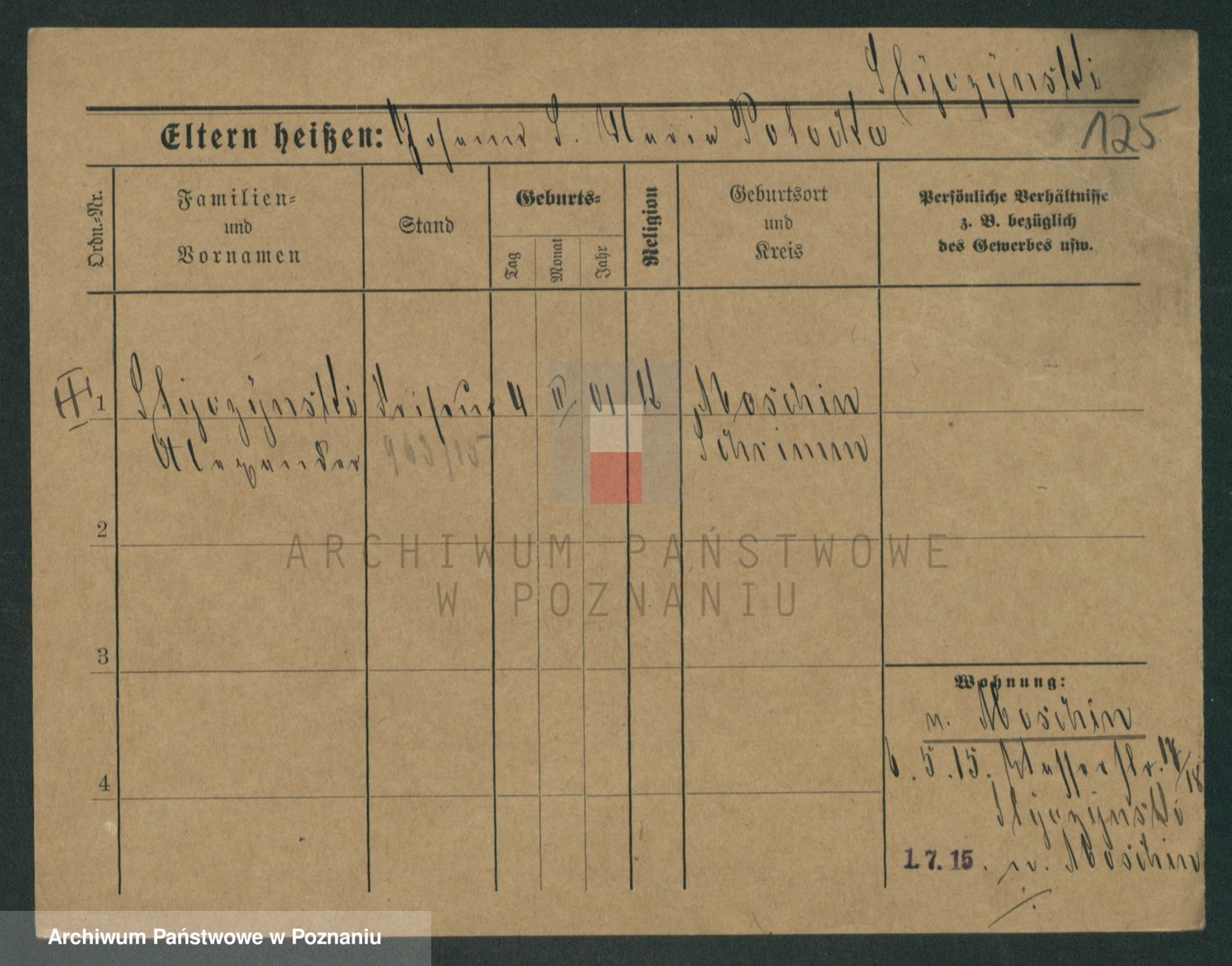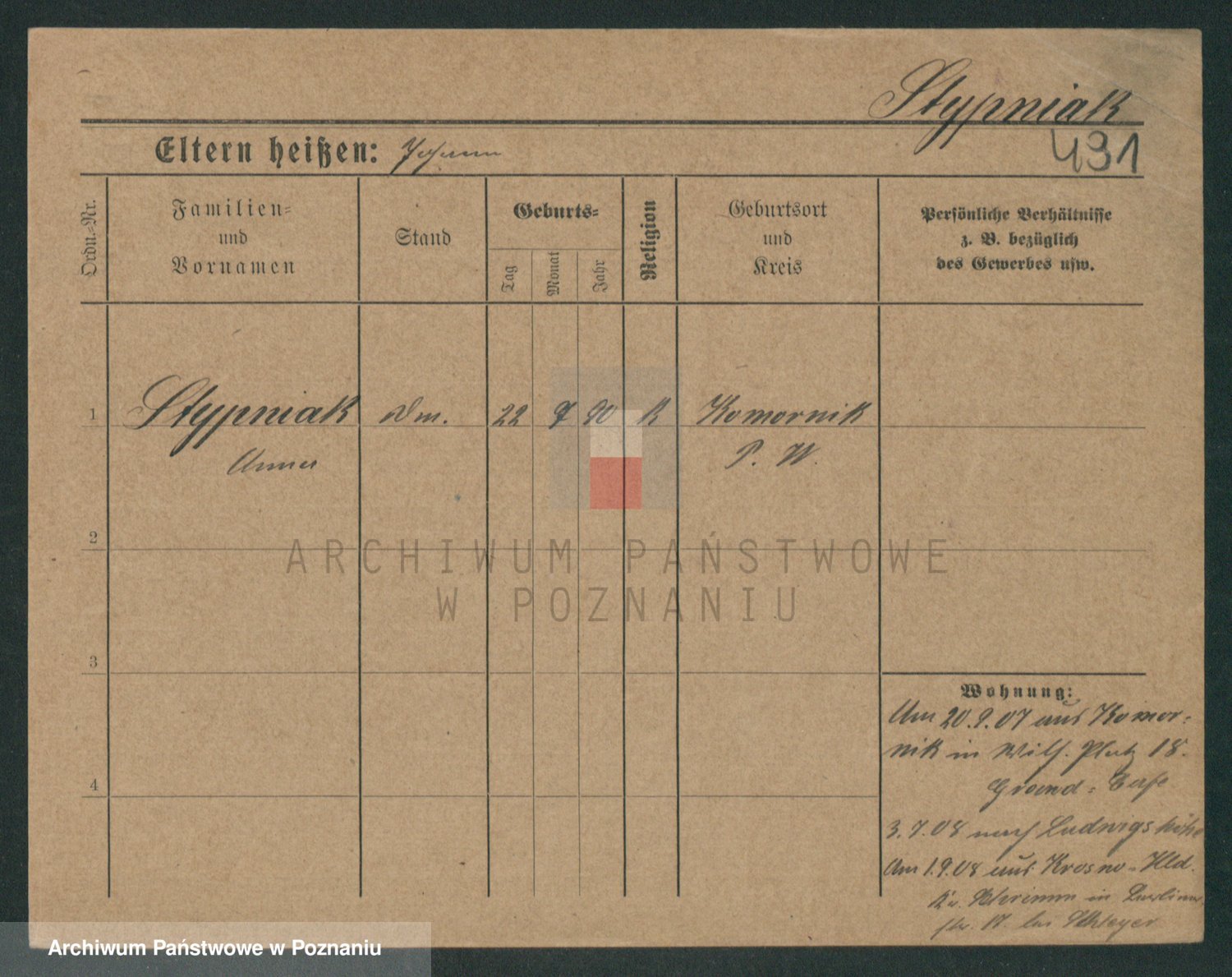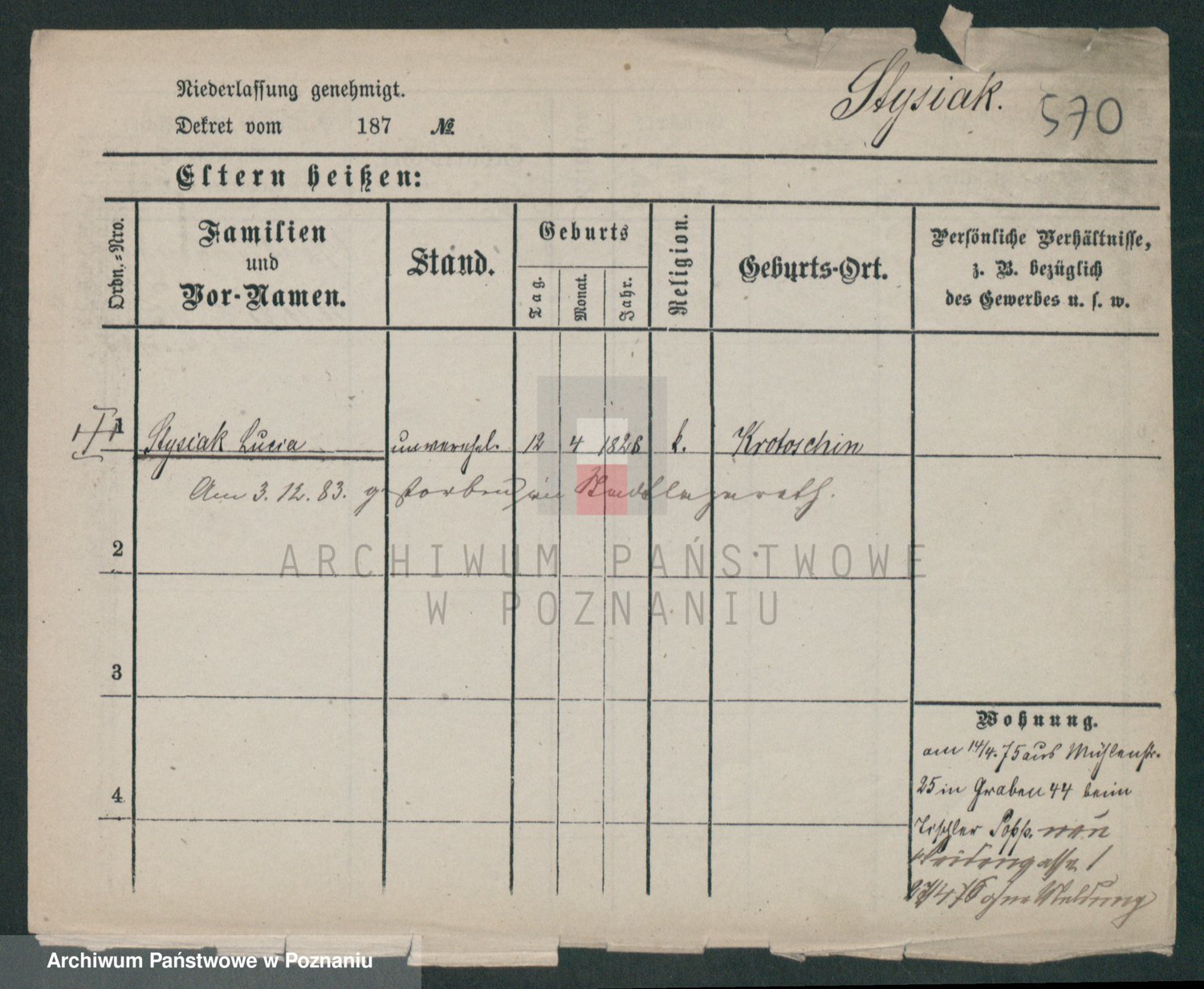 Podgląd karty osobowej dostępny jest po kliknięciu na nazwisko lub ikonkę karty. Można dokonywać powiększenia (ikony na górze) lub przechodzić między kolejnymi skanami (strzałki po bokach).