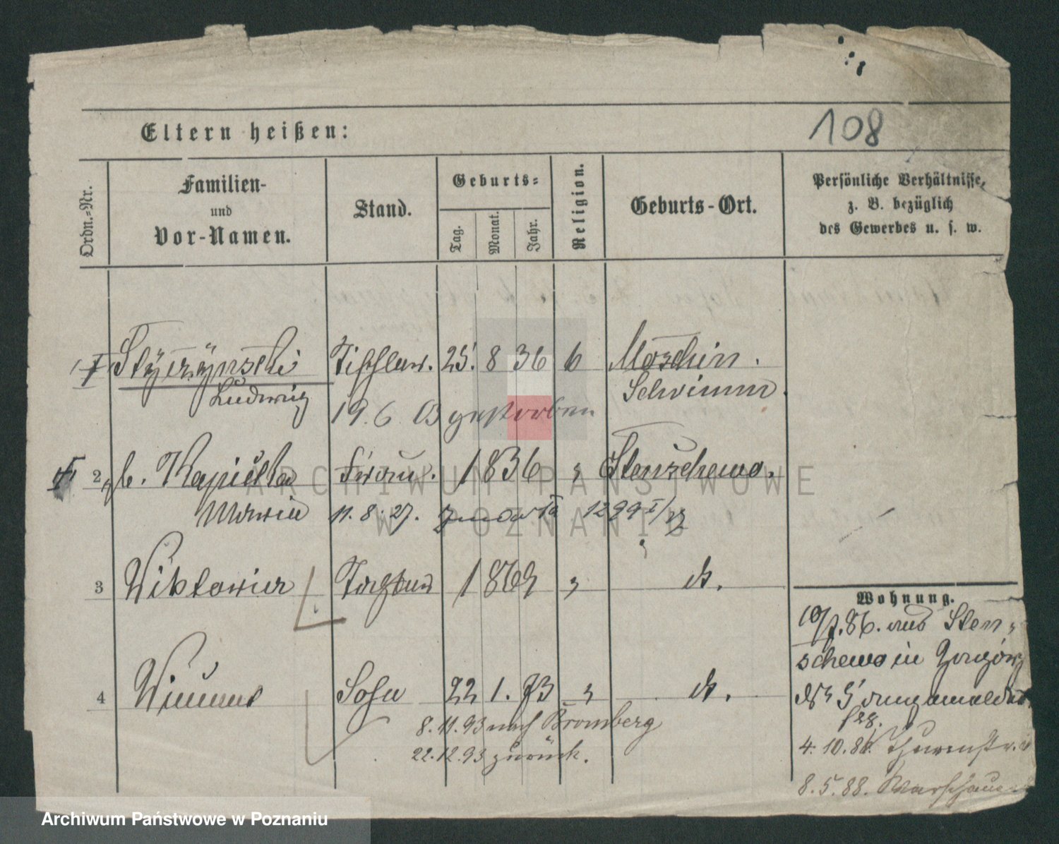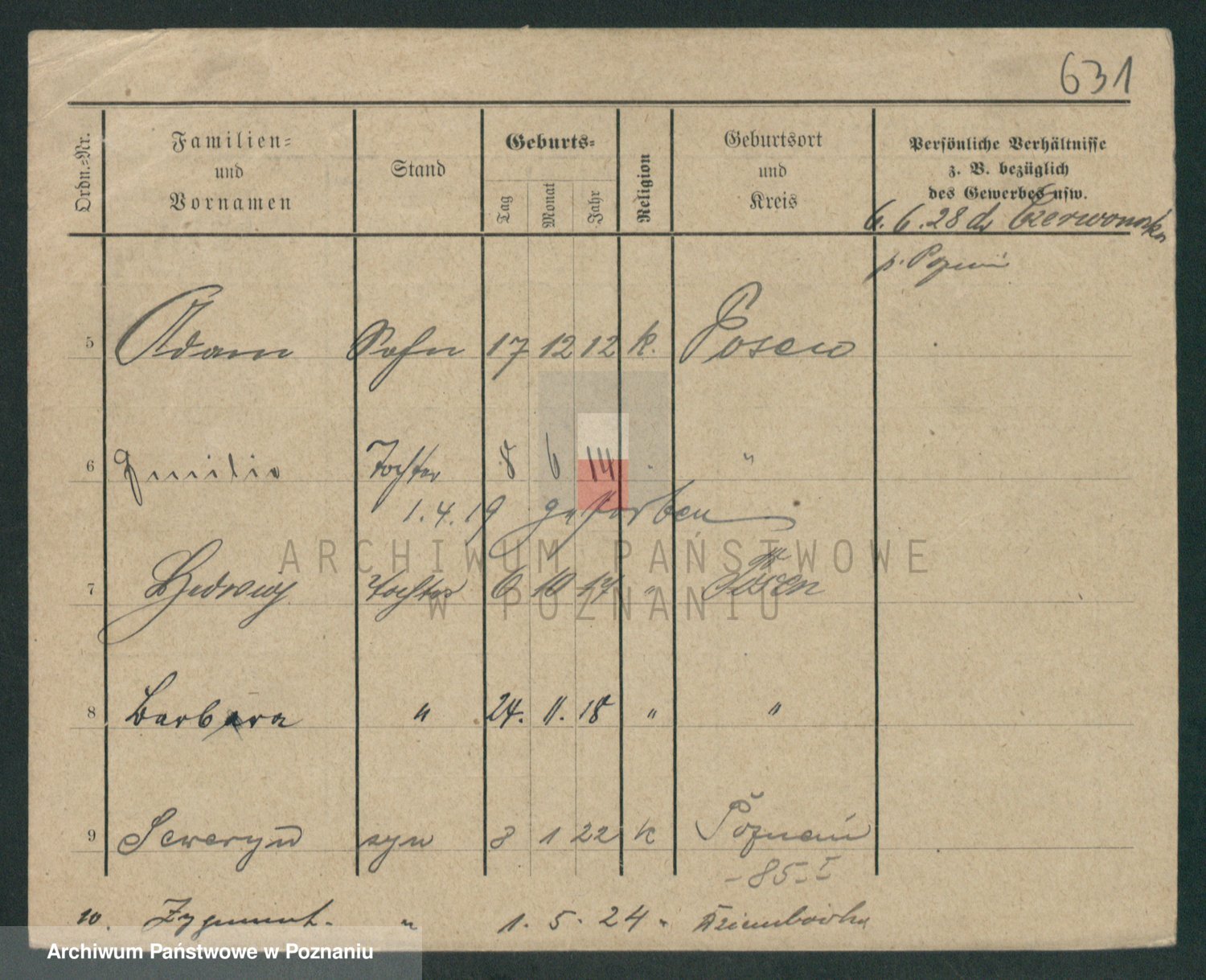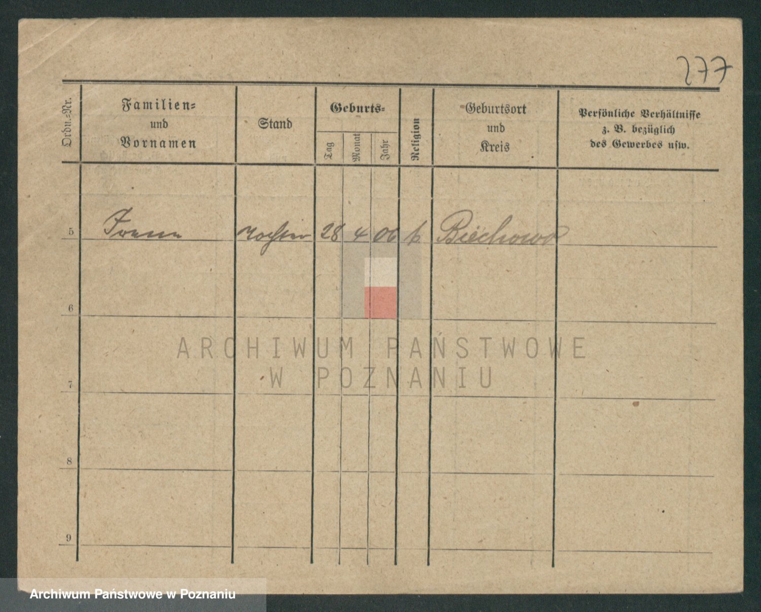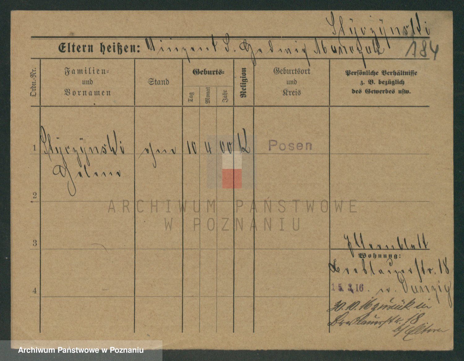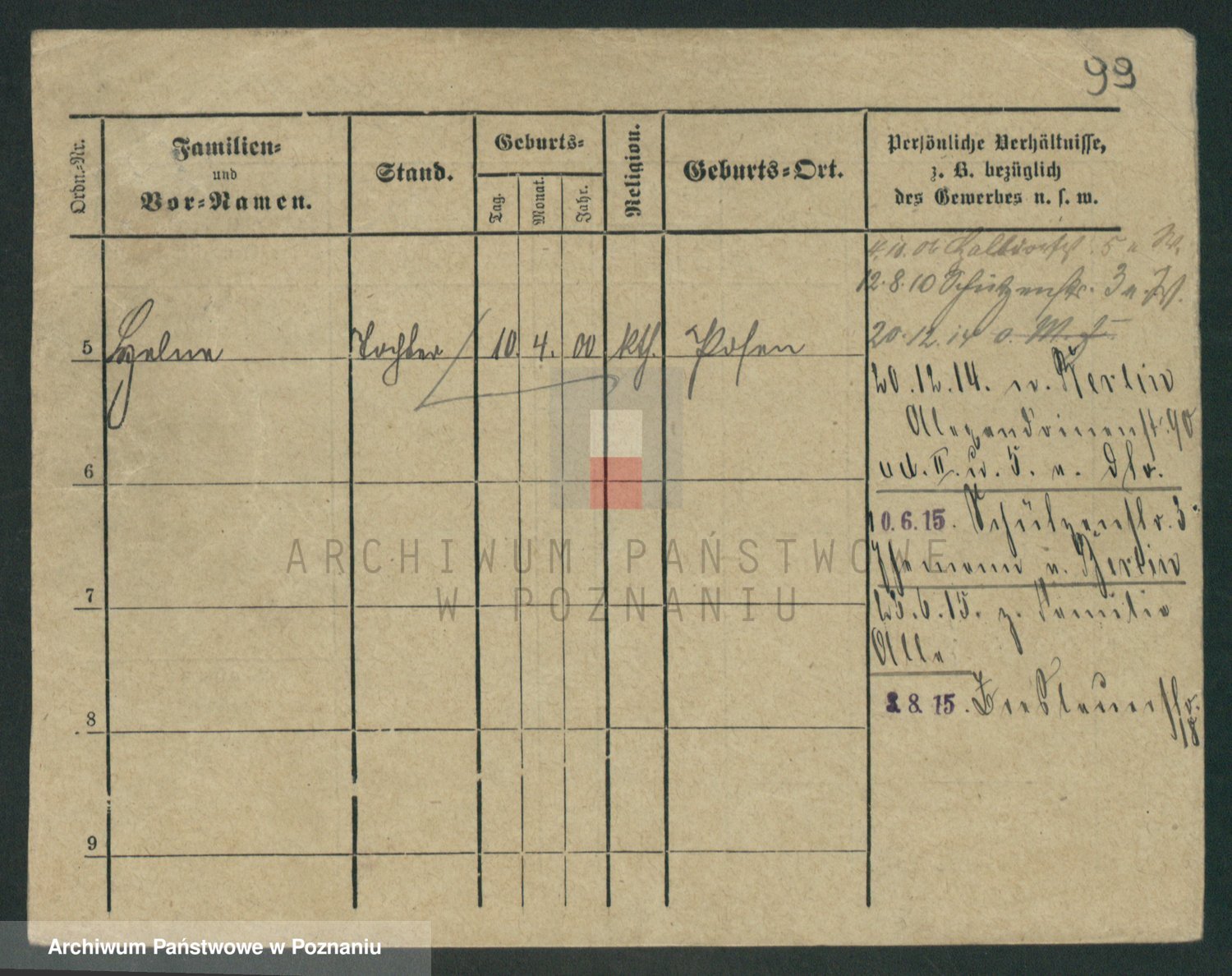 Podgląd karty osobowej dostępny jest po kliknięciu na nazwisko lub ikonkę karty. Można dokonywać powiększenia (ikony na górze) lub przechodzić między kolejnymi skanami (strzałki po bokach).