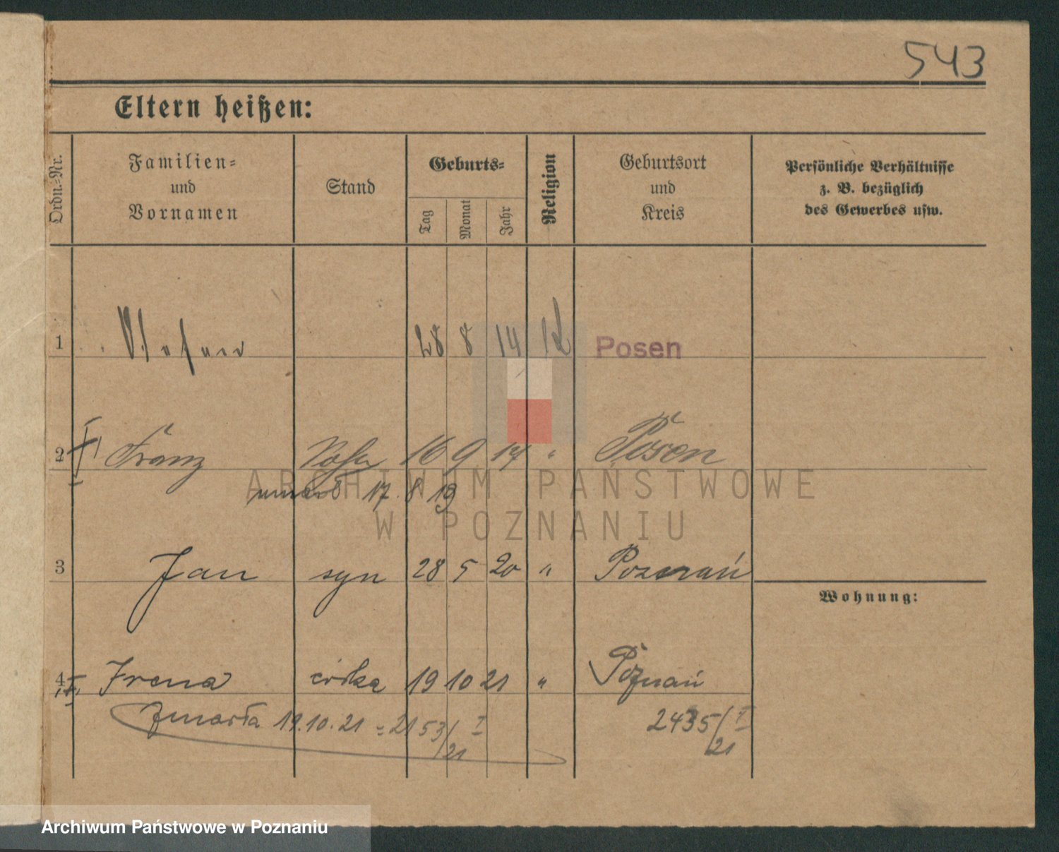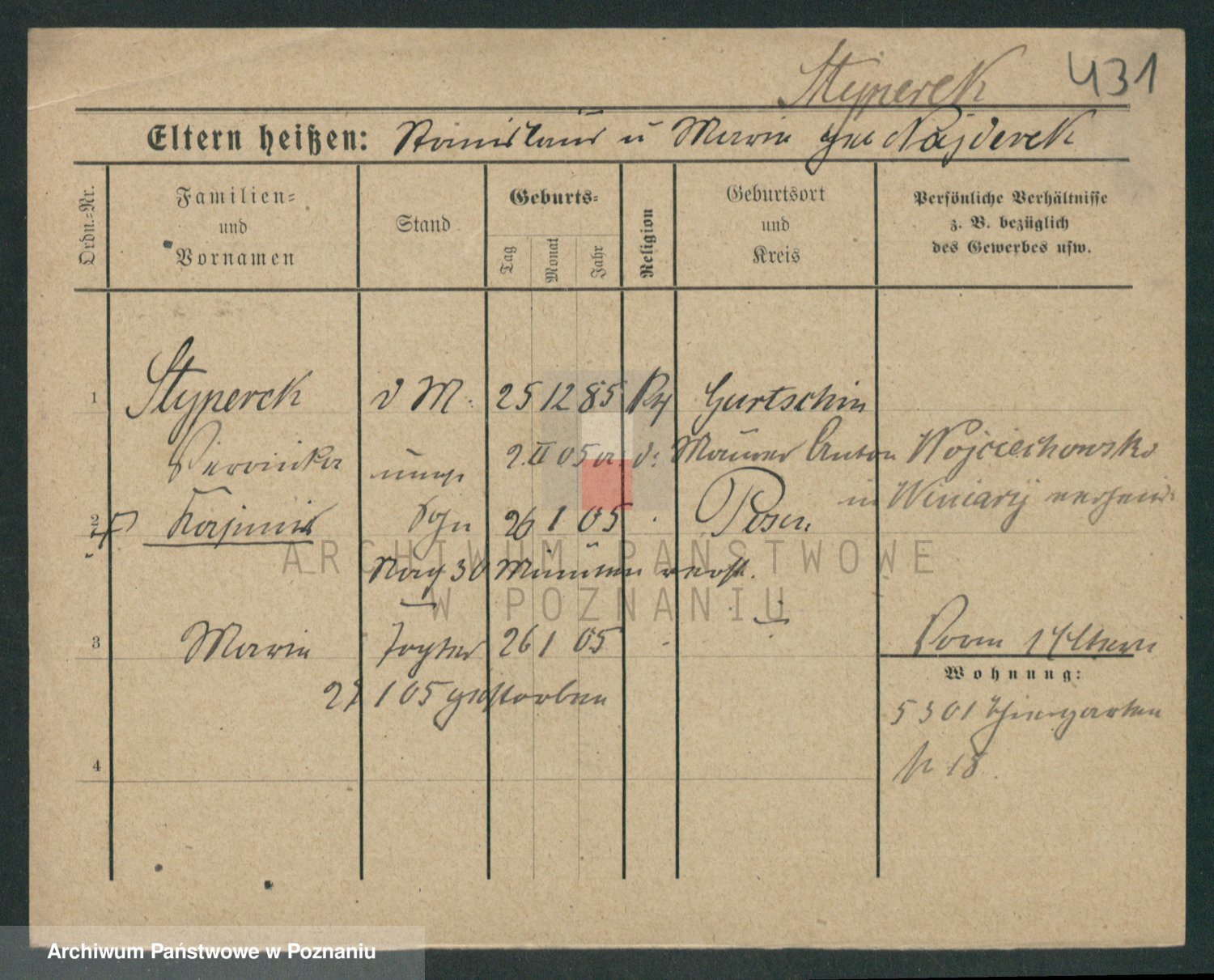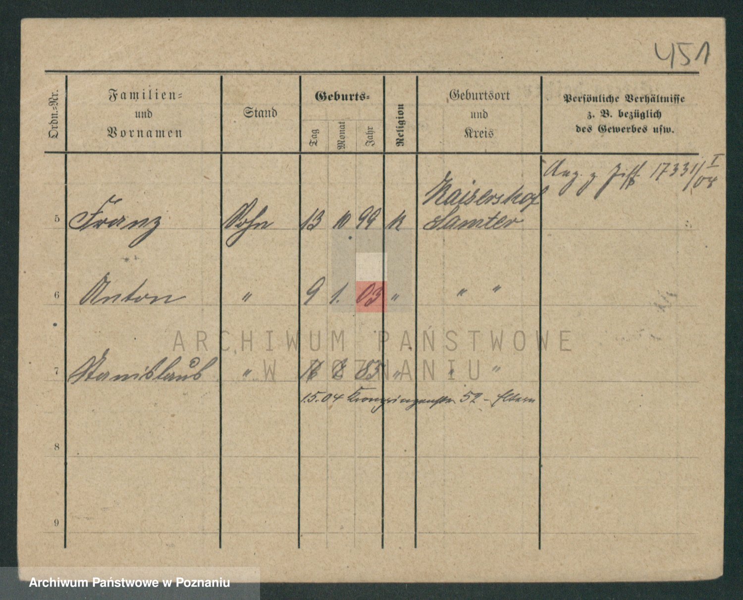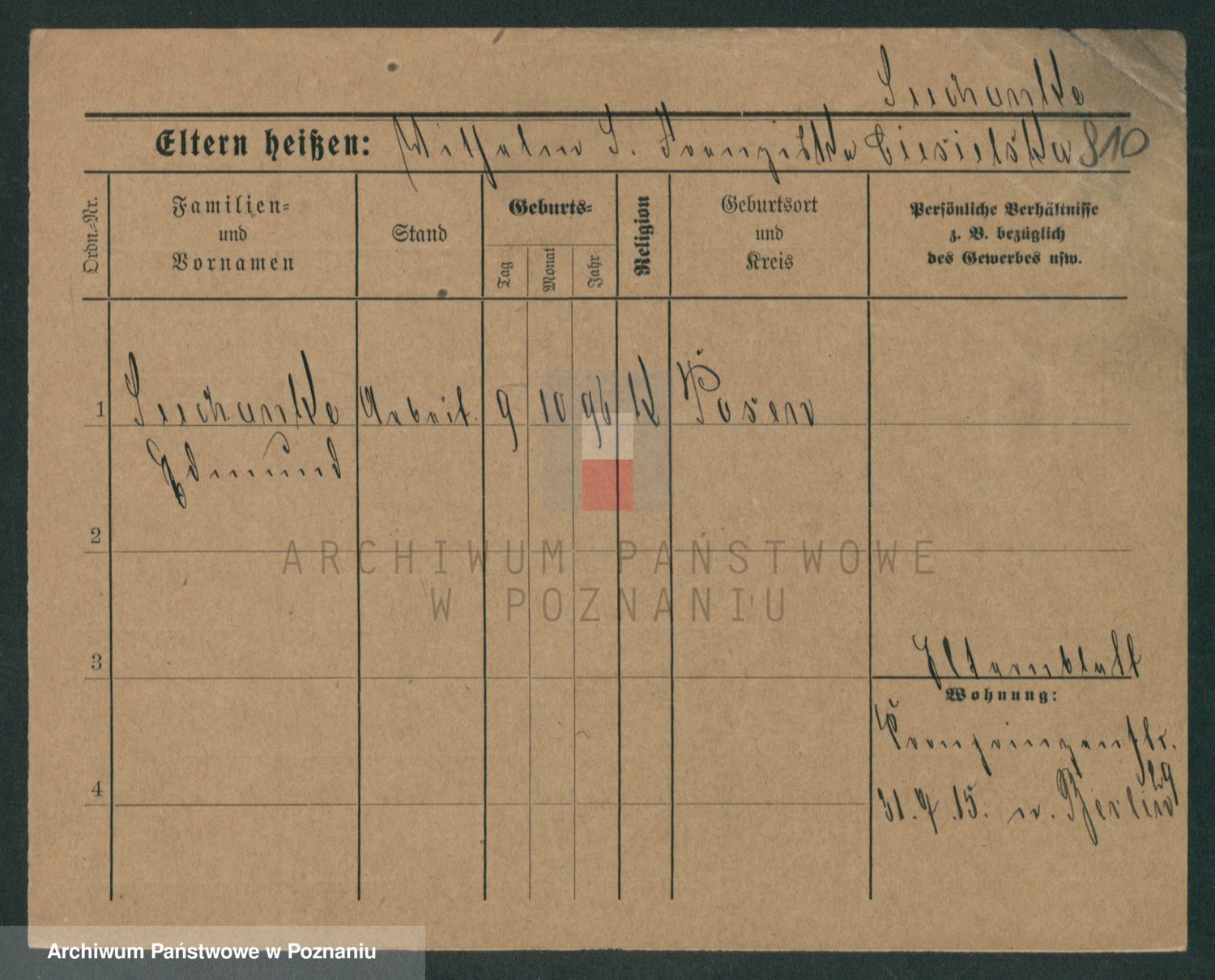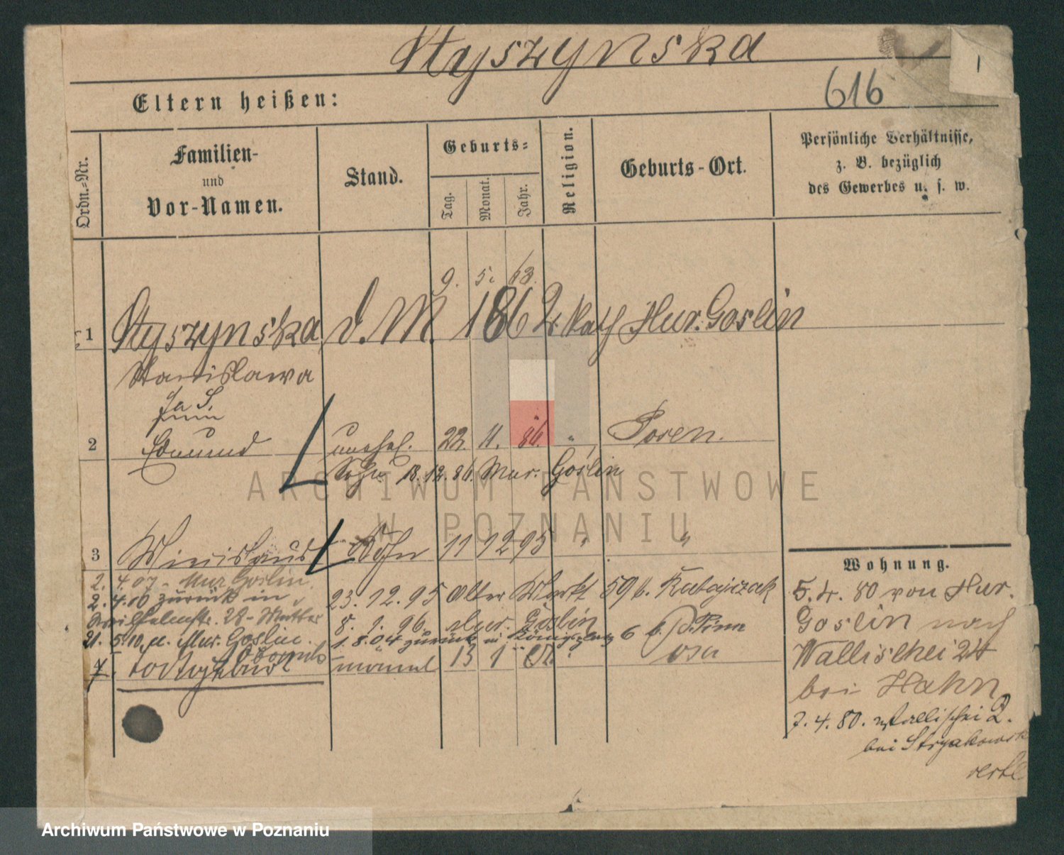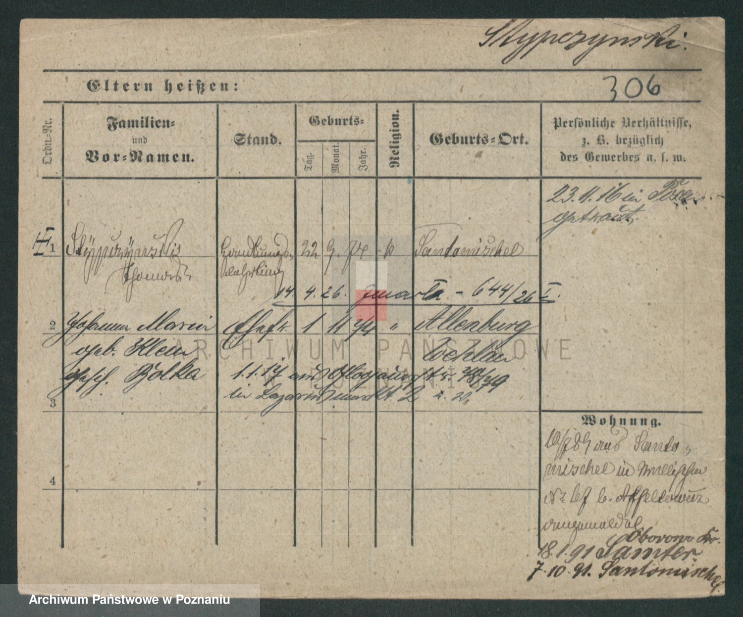 Podgląd karty osobowej dostępny jest po kliknięciu na nazwisko lub ikonkę karty. Można dokonywać powiększenia (ikony na górze) lub przechodzić między kolejnymi skanami (strzałki po bokach).
