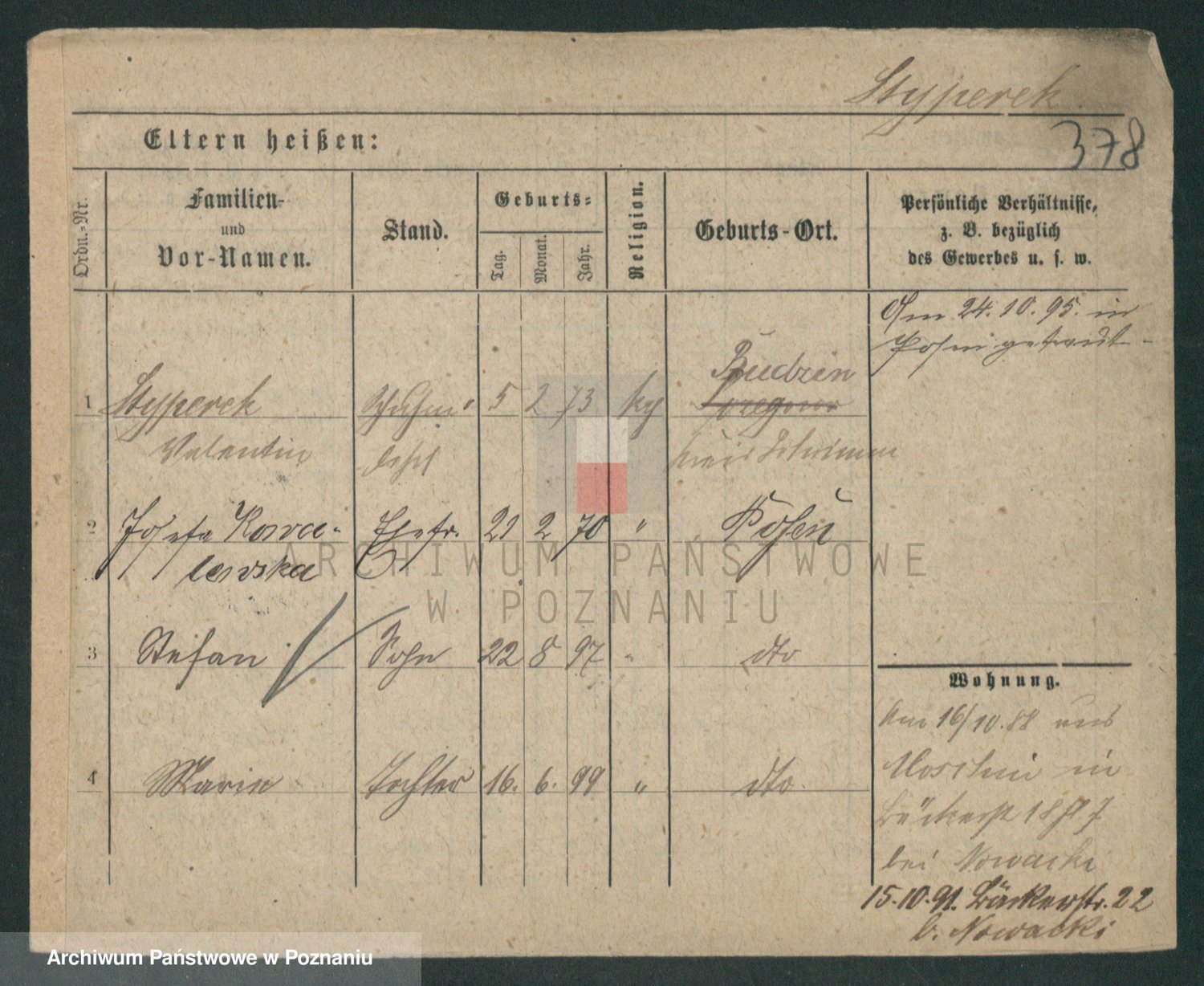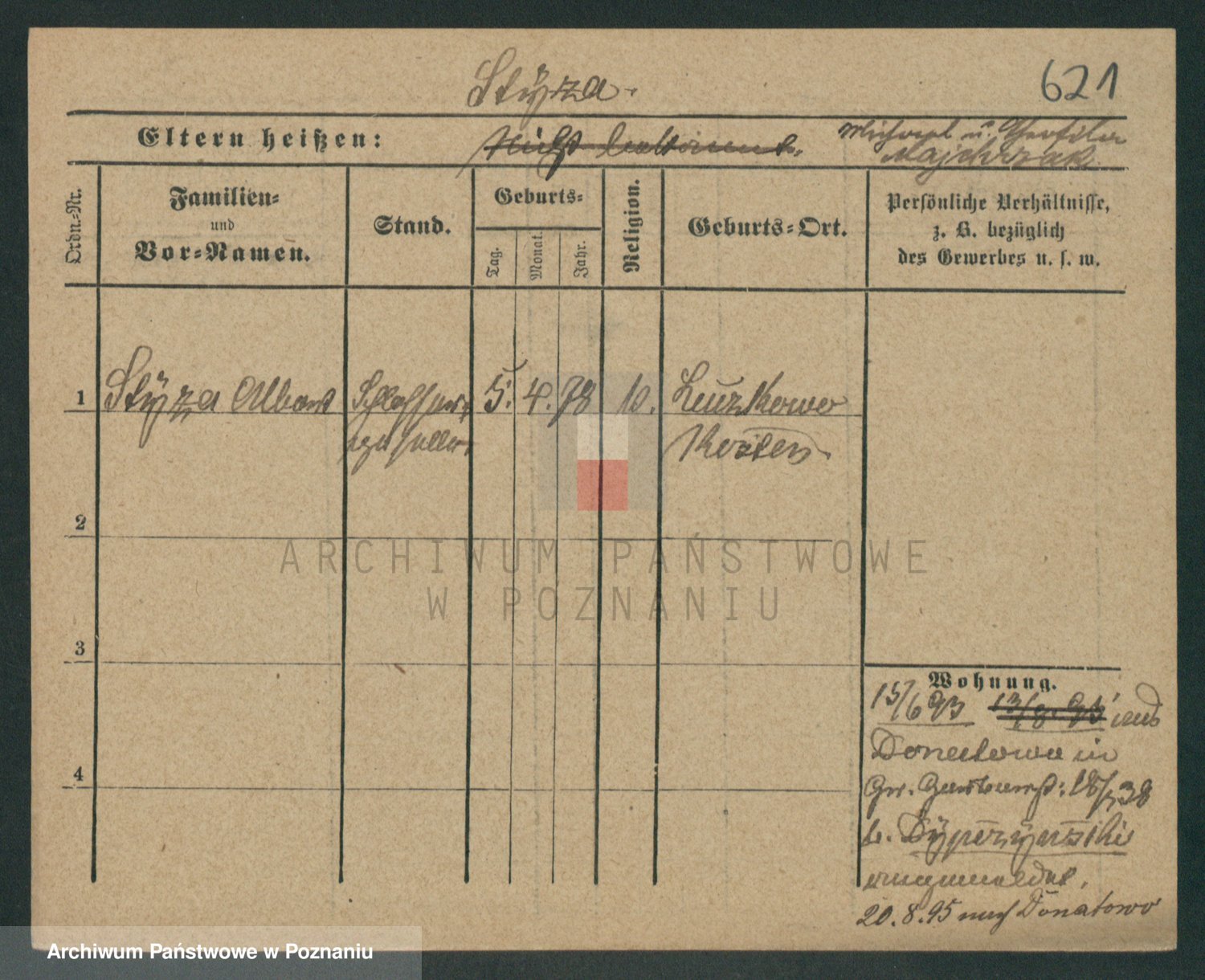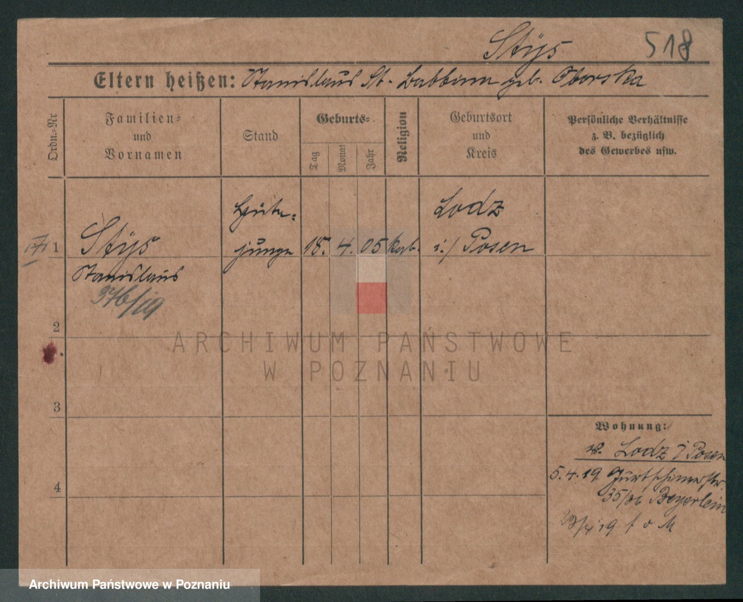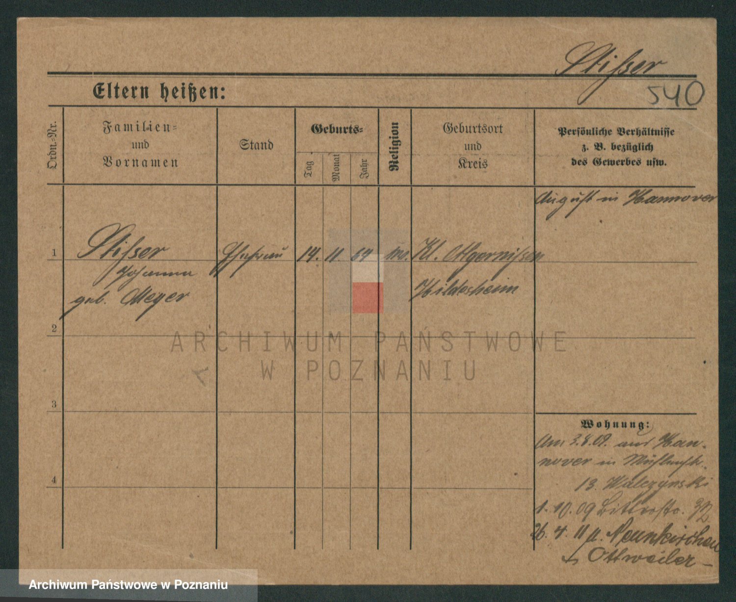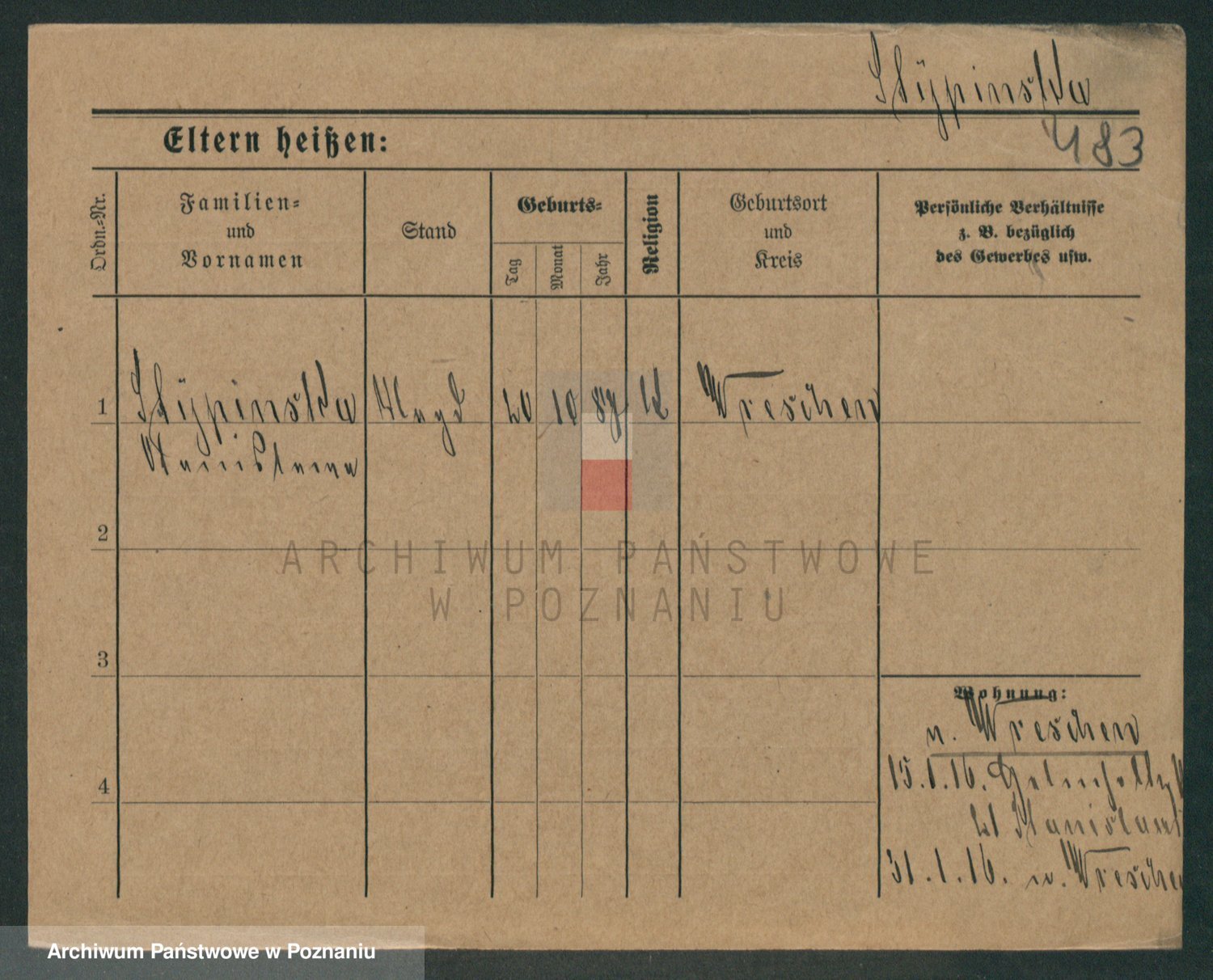 Podgląd karty osobowej dostępny jest po kliknięciu na nazwisko lub ikonkę karty. Można dokonywać powiększenia (ikony na górze) lub przechodzić między kolejnymi skanami (strzałki po bokach).